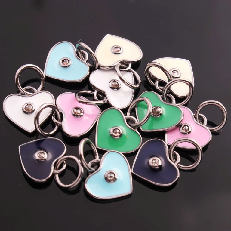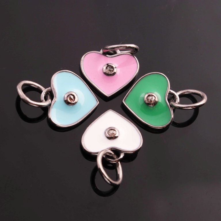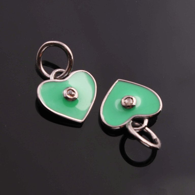 1 Pc Pave Diamond Multi Color Bakelite Heart Pendant, Designer Charm Sterling Silver Charm Pendant Pave Diamond Jewelry 14mmx10mm PDC00195