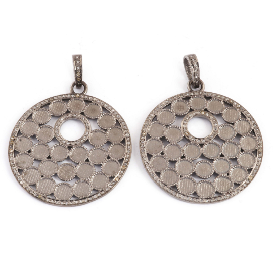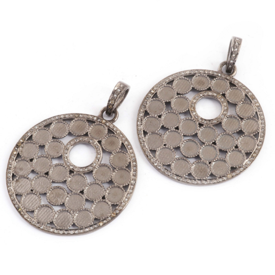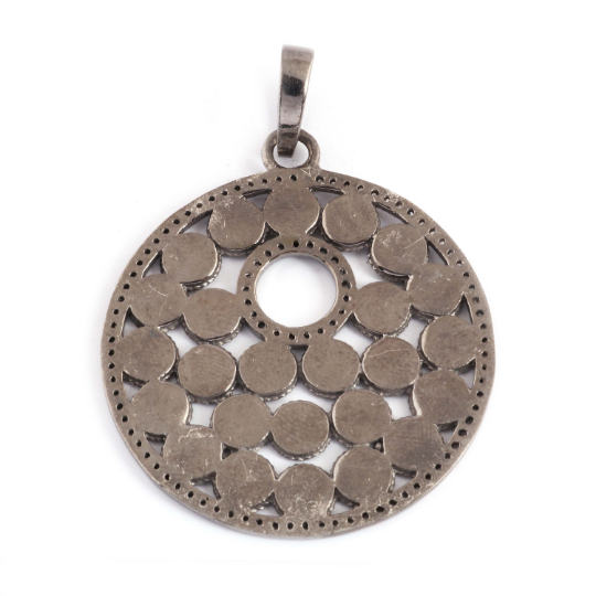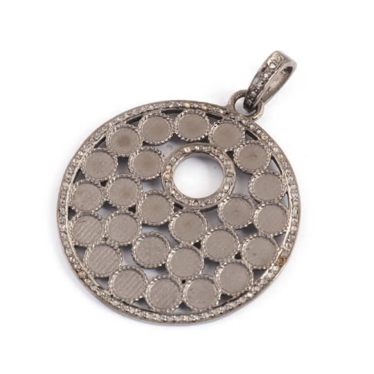 1 Pc Pave Diamond Round Pendant - 925 Sterling Silver- Scratch Finish Circle Pendant 39mmx34mm PD1170