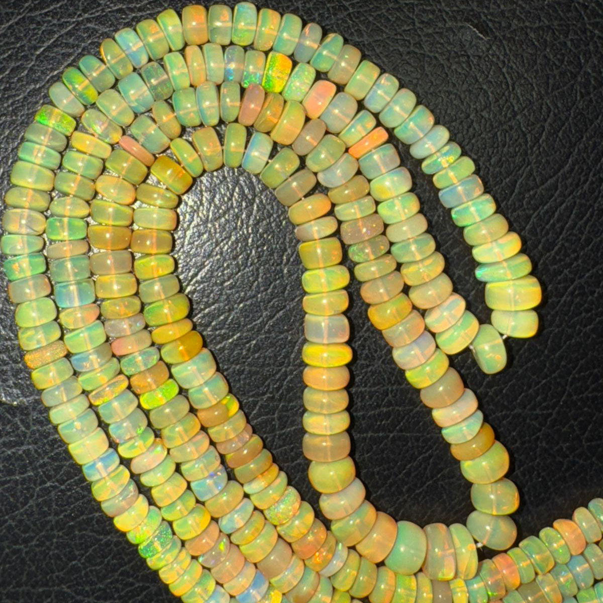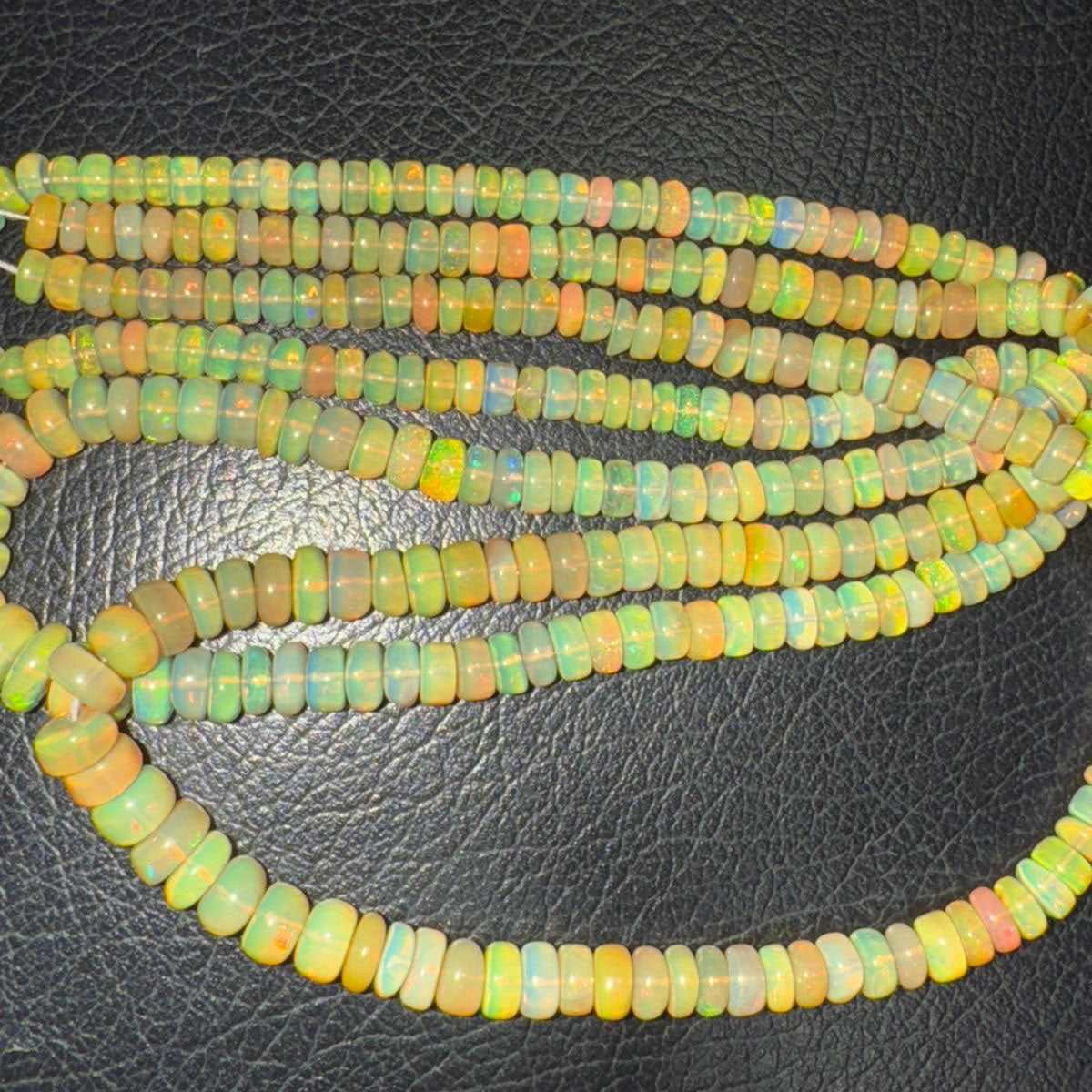 1 Strand 100% Natural Top Quality Ethiopian Welo Opal Smooth Gemstone Rondelles Beads - 5mm-8mm-17 Inches BR02274