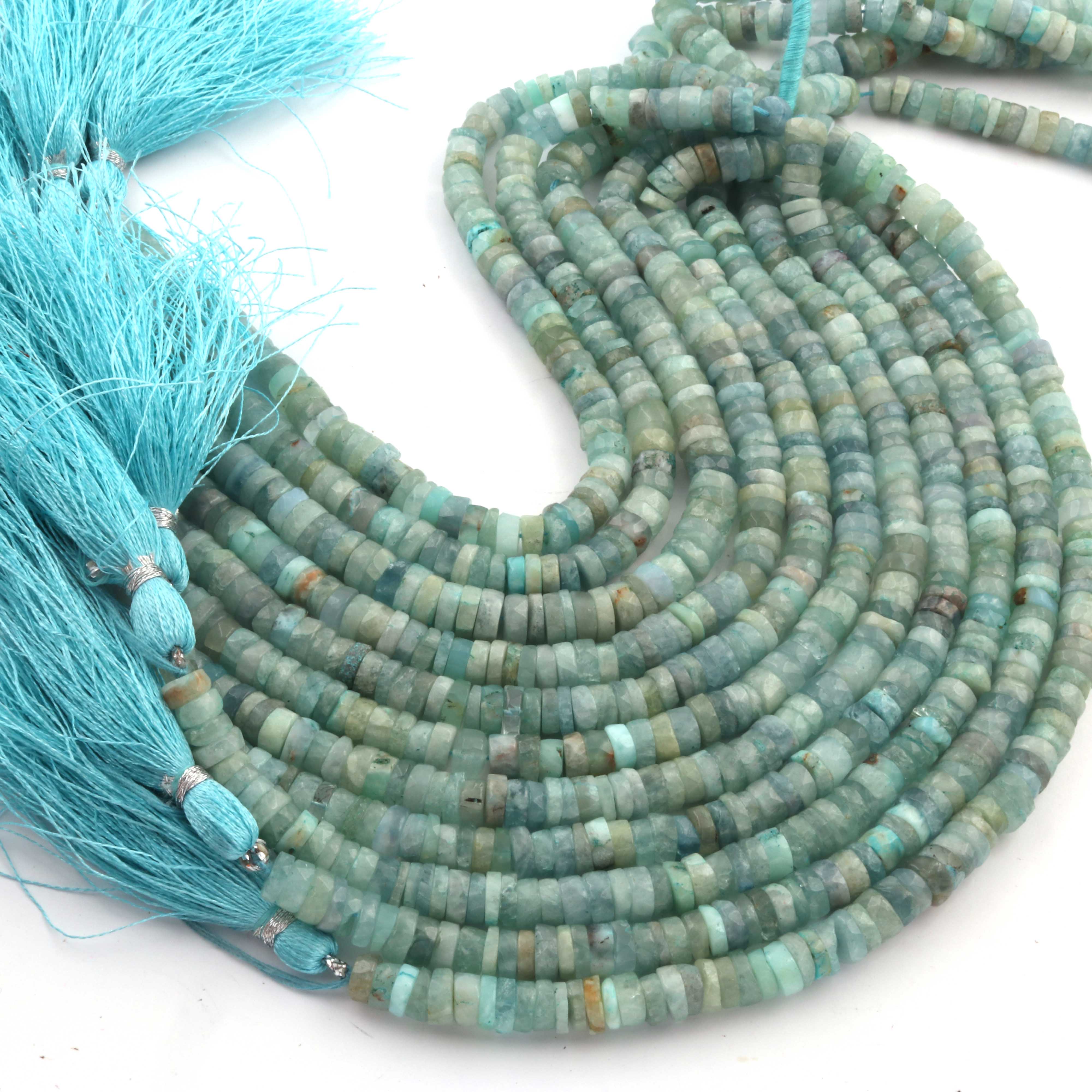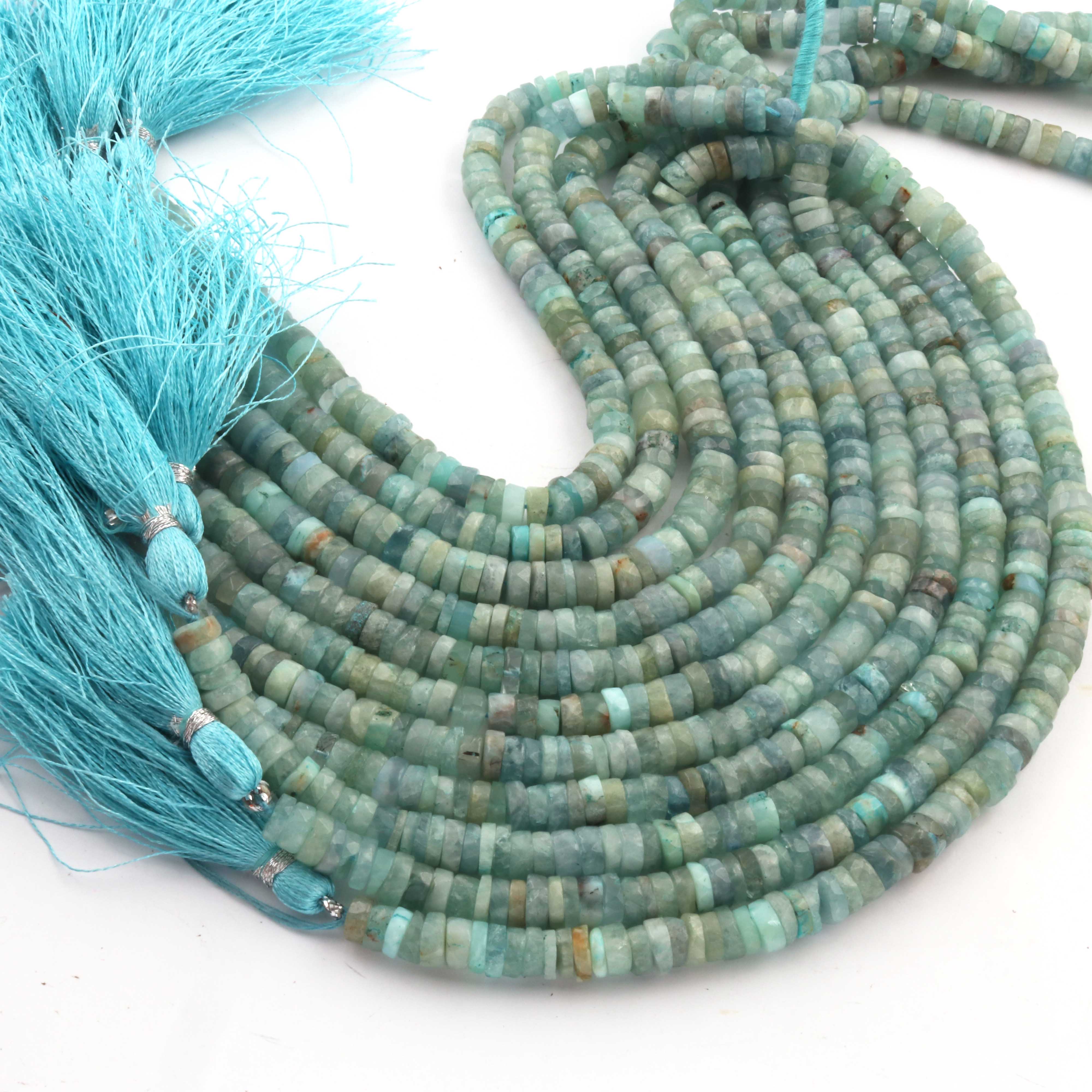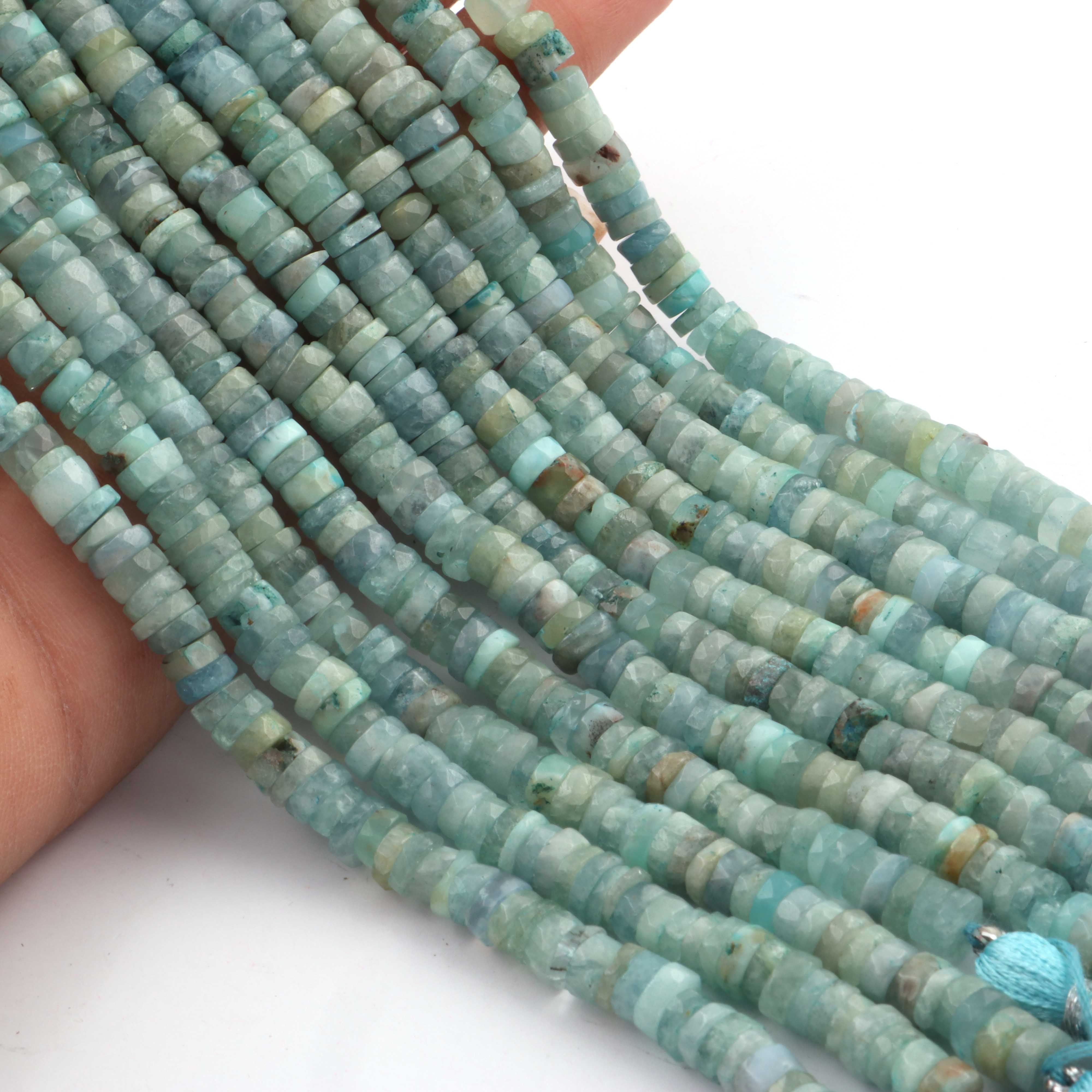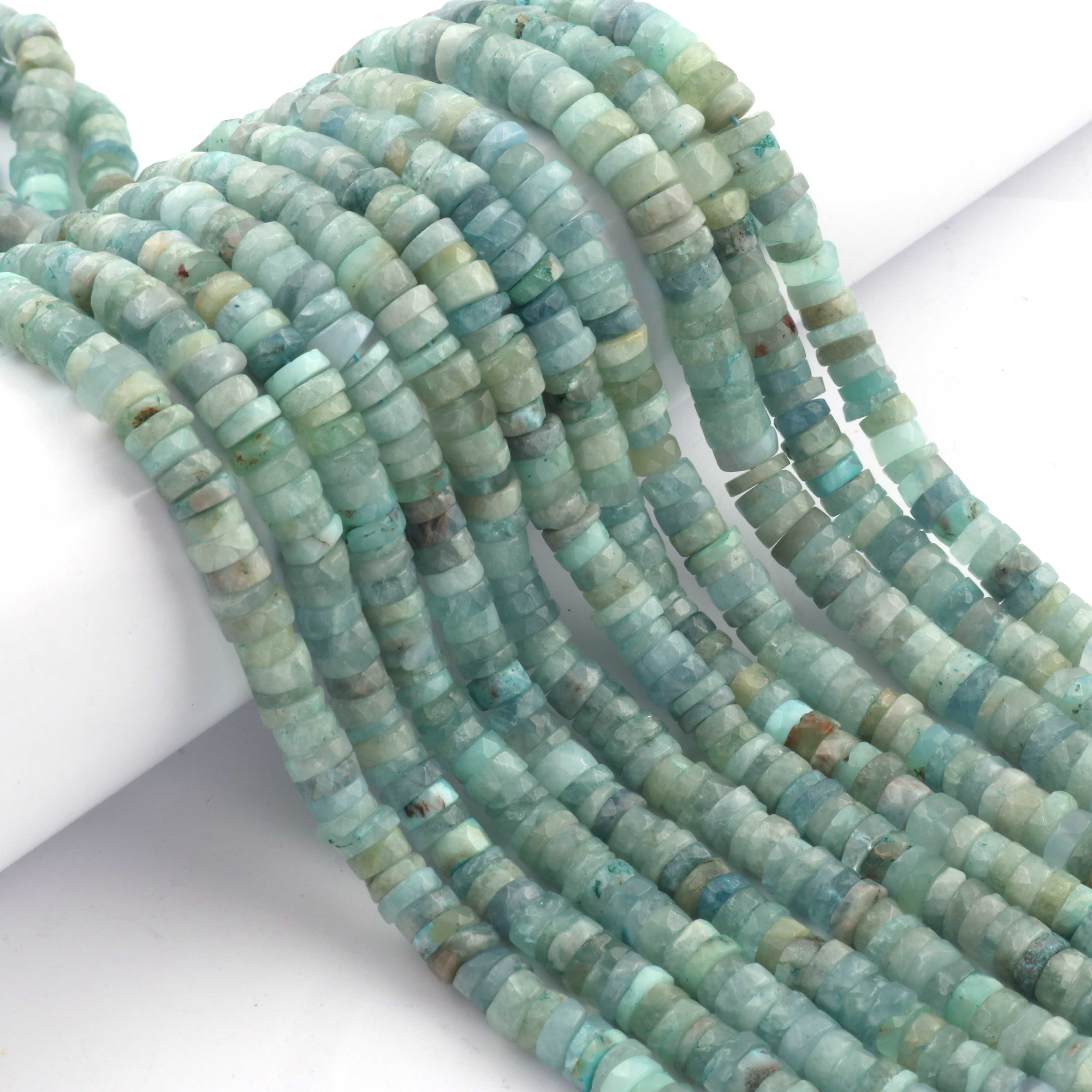 1 Strand AAA+ Aquamarine Smooth Tyre, Wheel Shape Beads - Heishi Shape Gemstone Beads 6mm-8 Inches BR03923