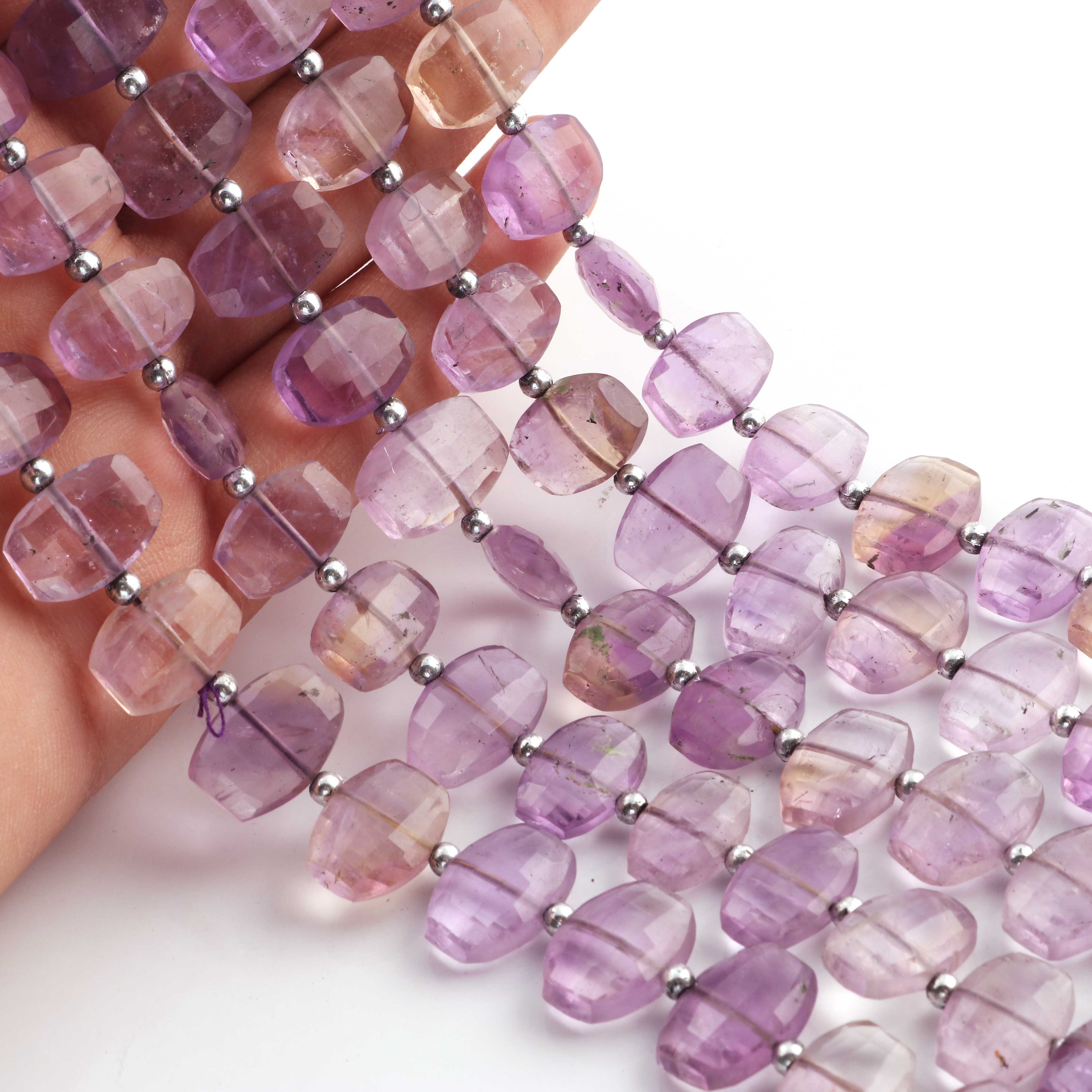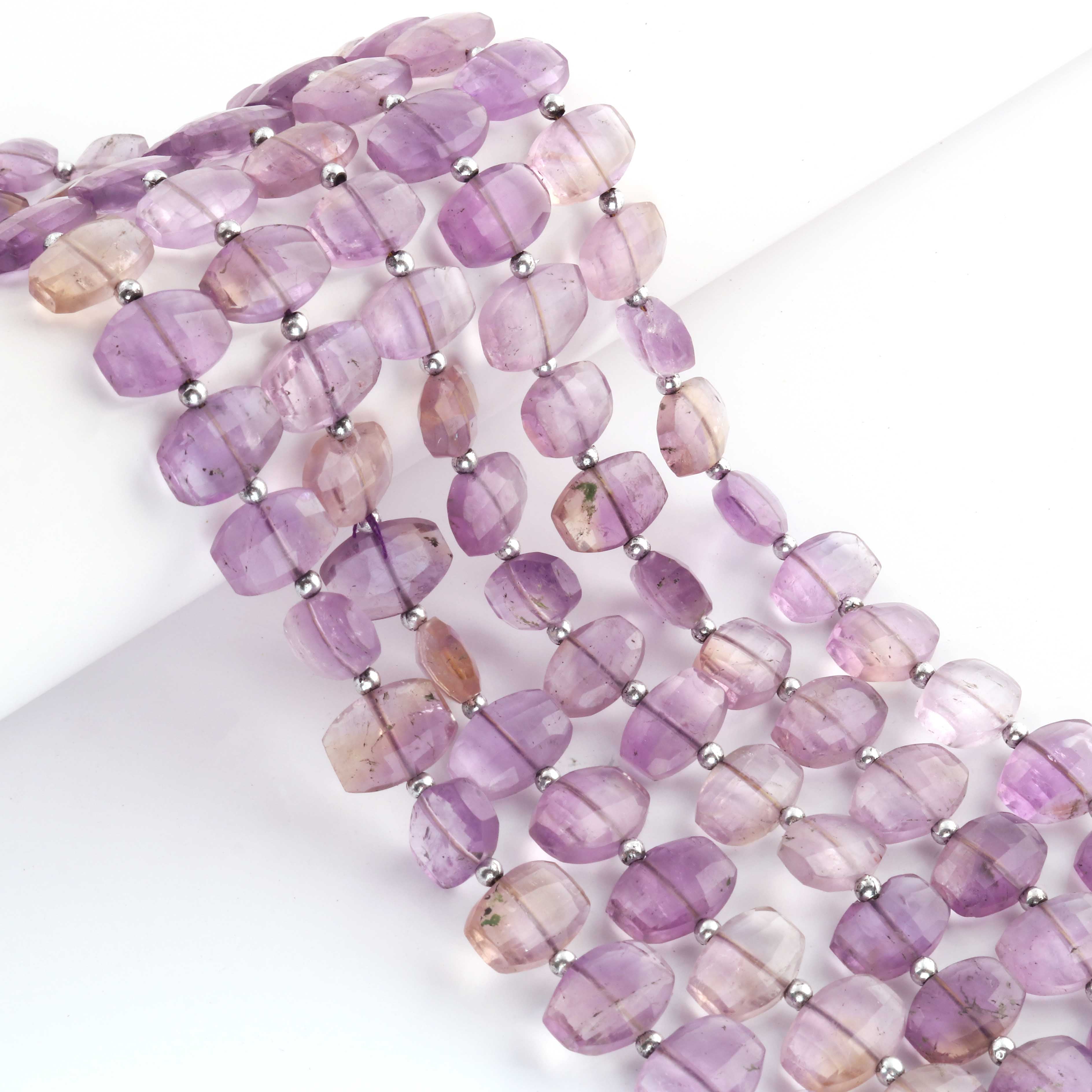 1 Strand Ametrine Faceted Fancy Shape Beads, Straight Drill Amethyst Fancy Beads, Faceted Briolettes 10mmx14mm - 10 Inches BR03308
