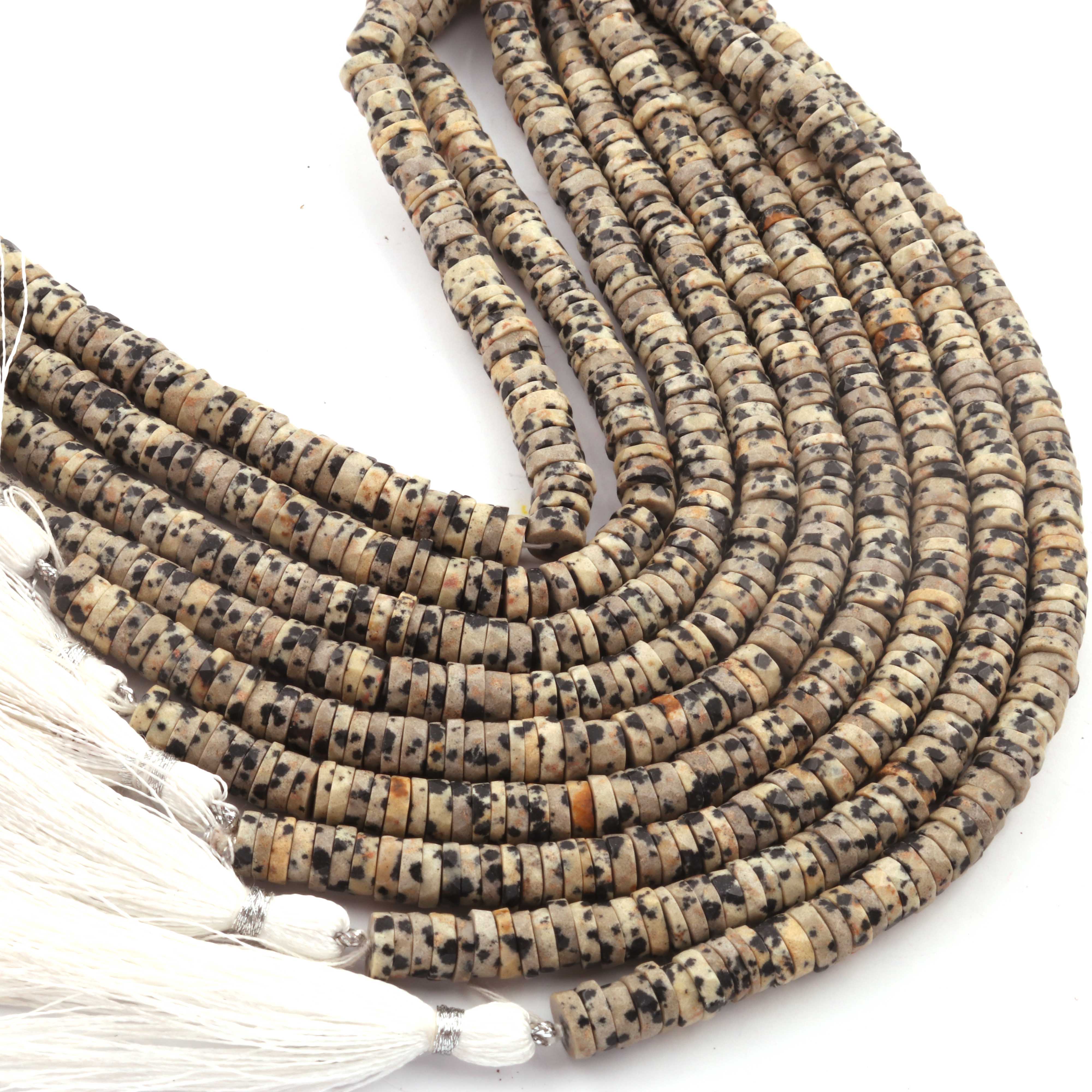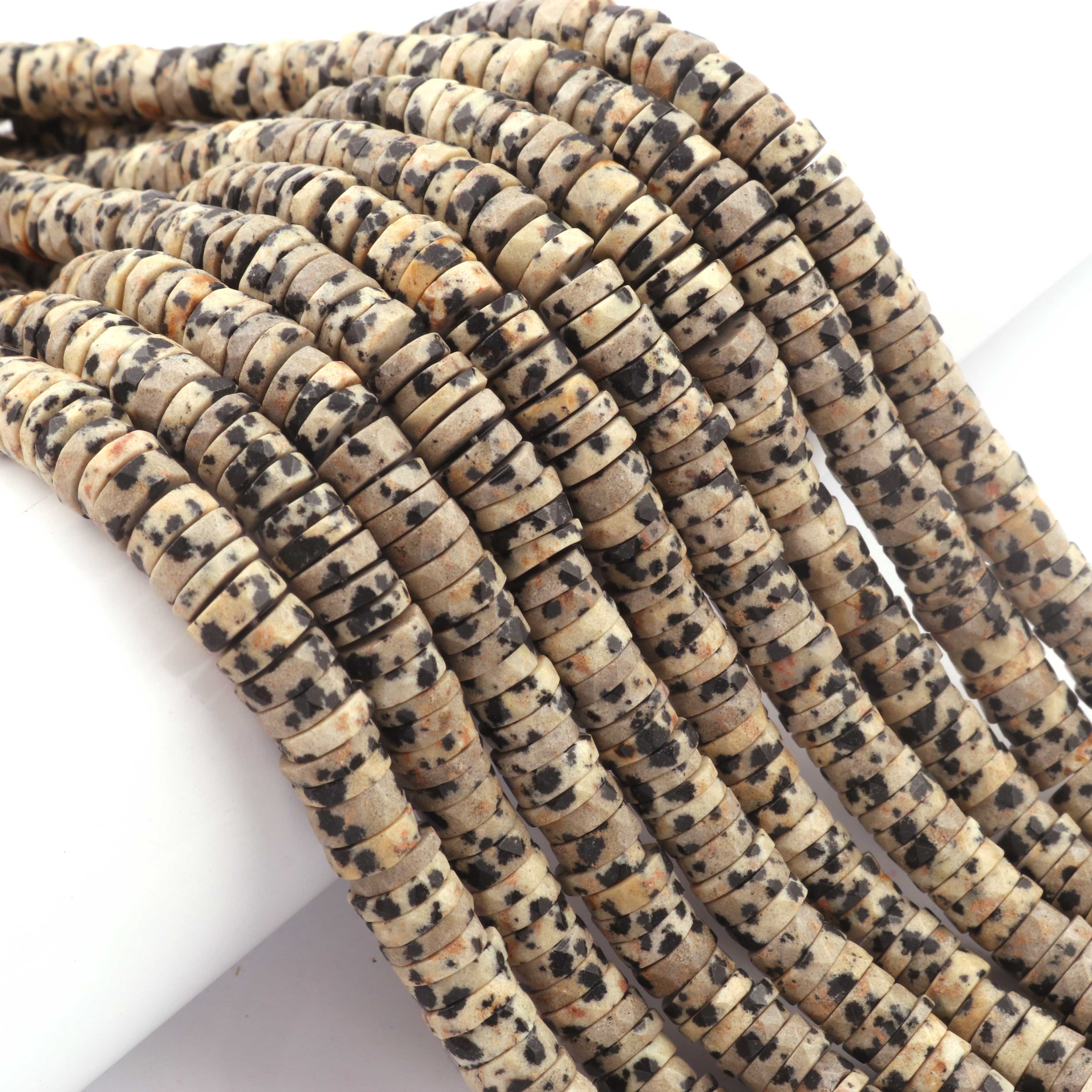 1 Strand Dalmatian Jasper Faceted Tyre Shape Beads 7mm - Dalmatian Jasper Wheel cut Beads ,Heishi Tyre beads BR03931