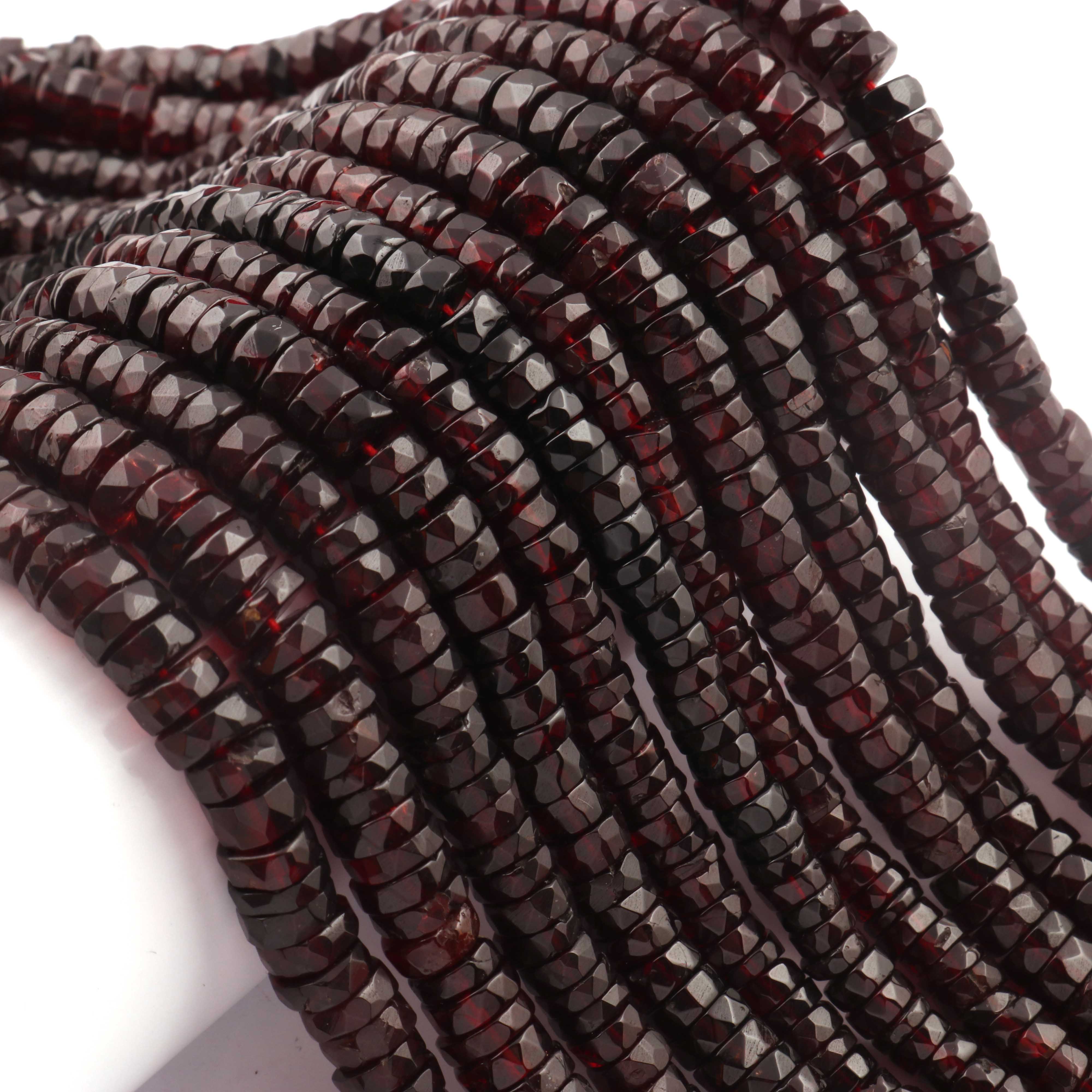 1 Strand Garnet Faceted Tyre Shape Beads -6mm- 7mm -Garnet Wheel cut Beads ,Heishi Tyre beads BR03926
