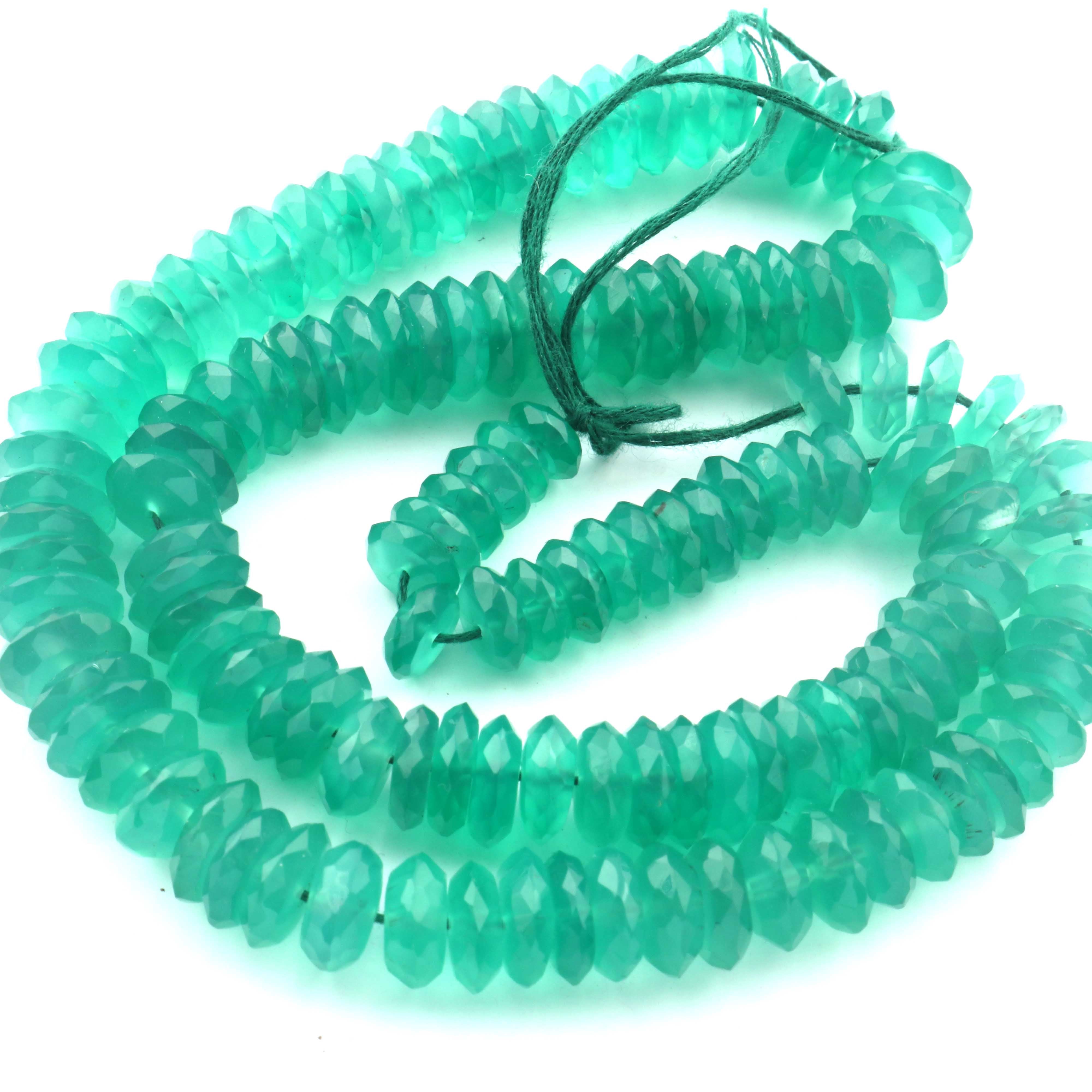 1 Strand Green Onyx Faceted Tyre Shape Beads - 7mm-8mm Green Onyx Wheel cut Beads ,Heishi Tyre beads BR3918