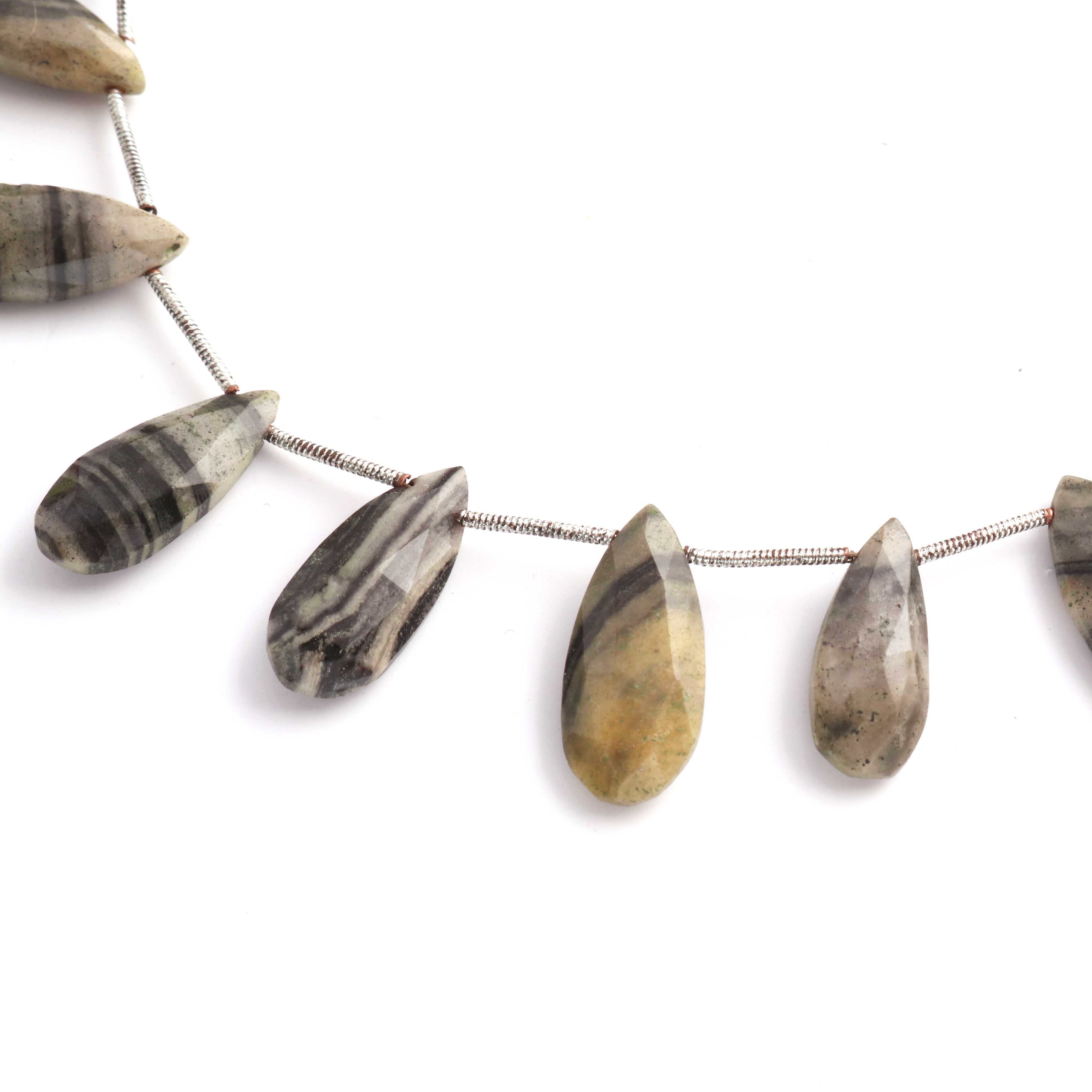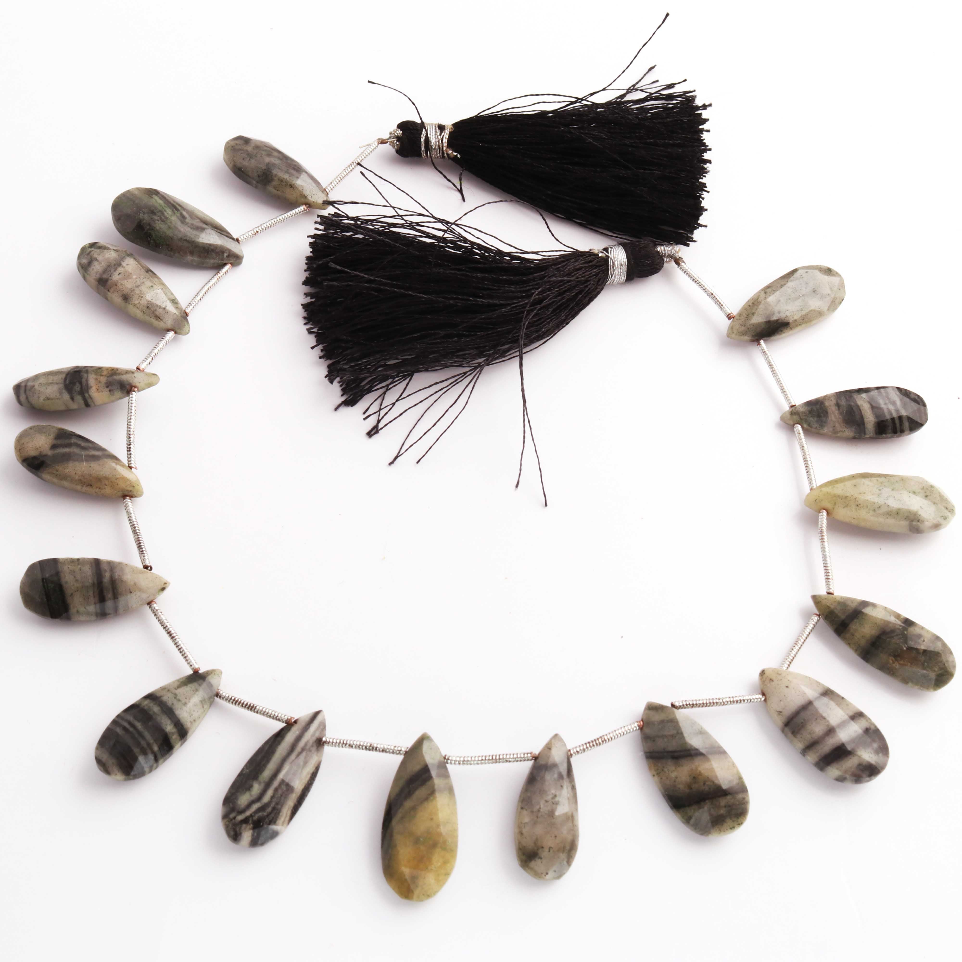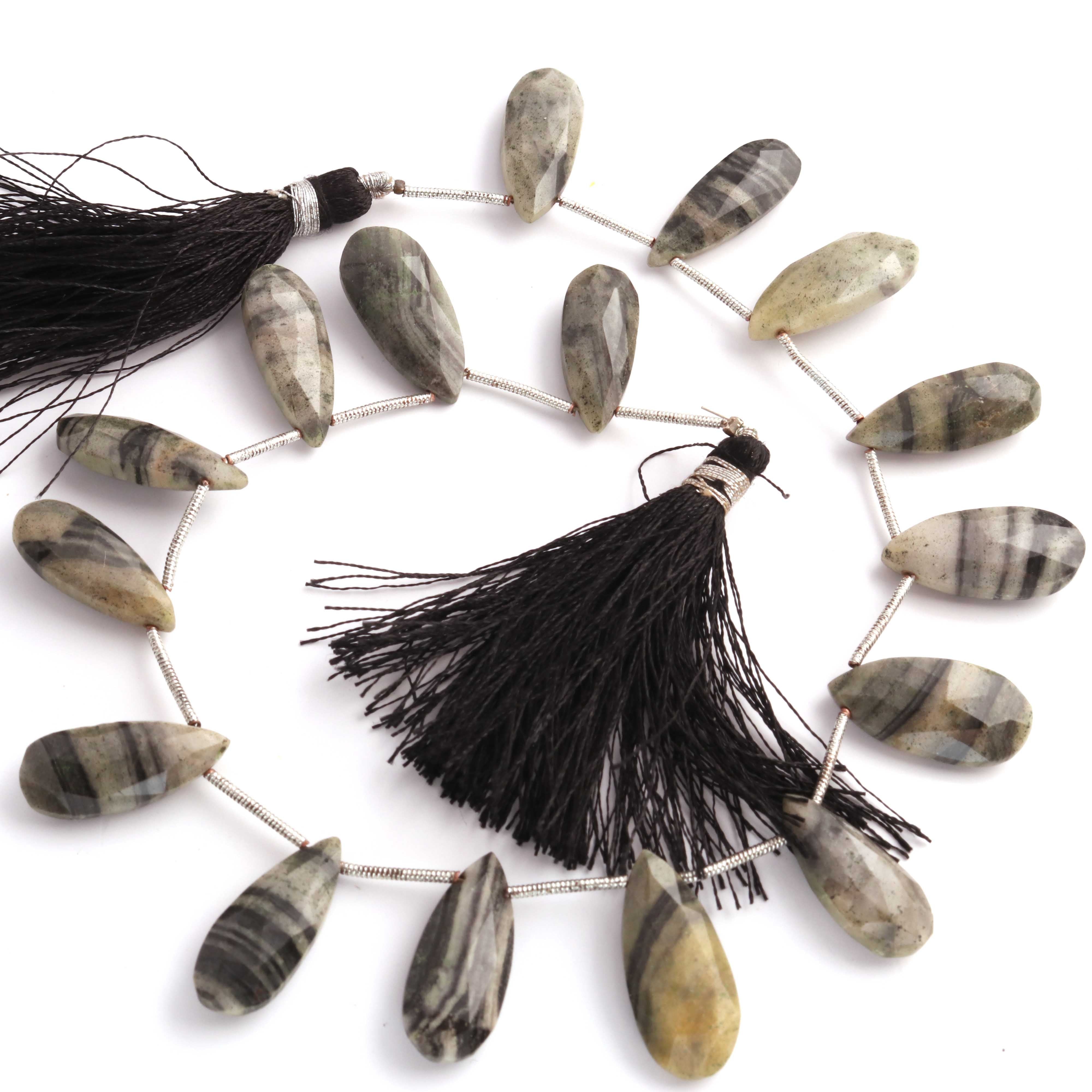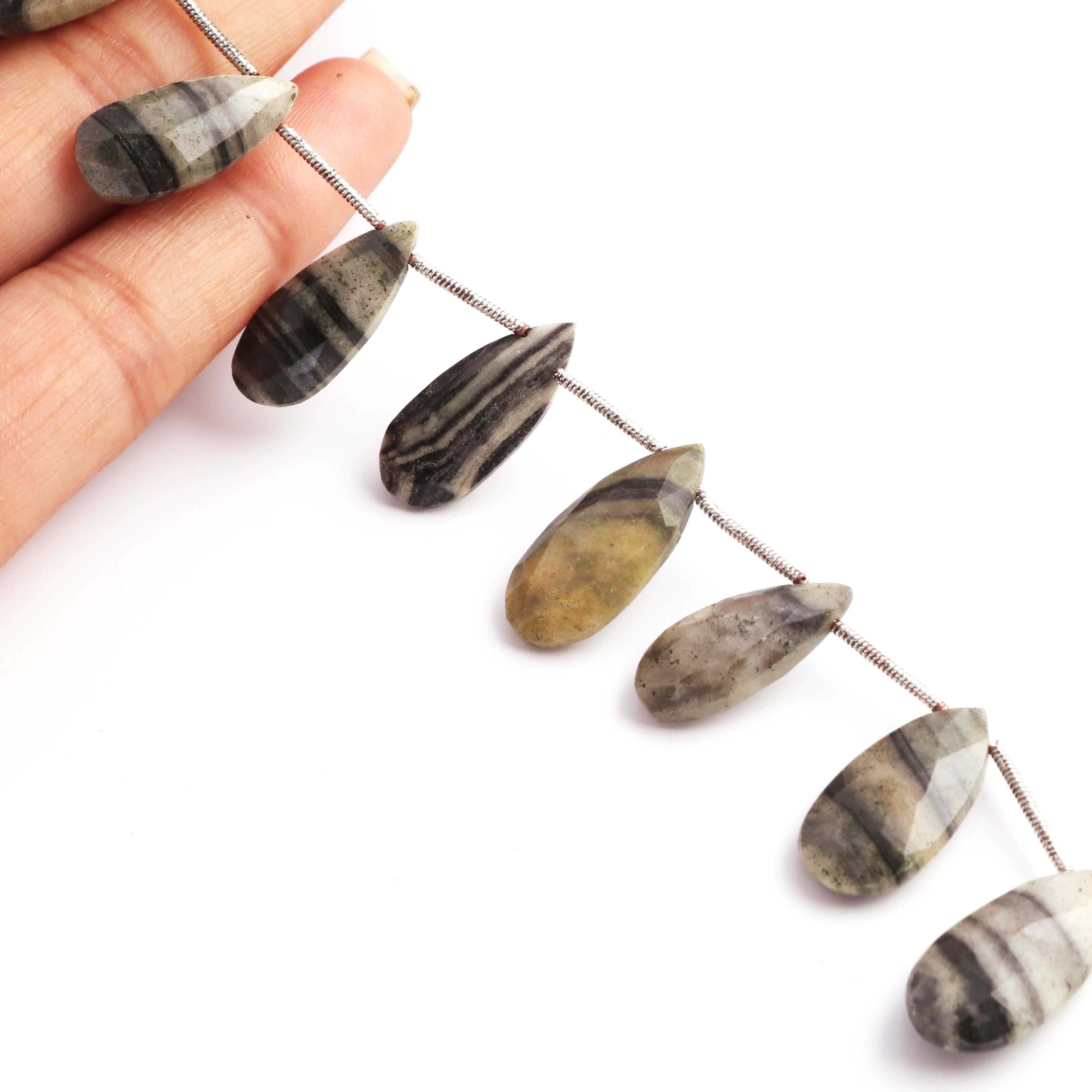 1 Strand Grey Jasper Faceted Pear Briolettes -Grey Jasper Pear Gemstone Beads - 19mmx8mm-23mmx10mm -10 inches BR3836