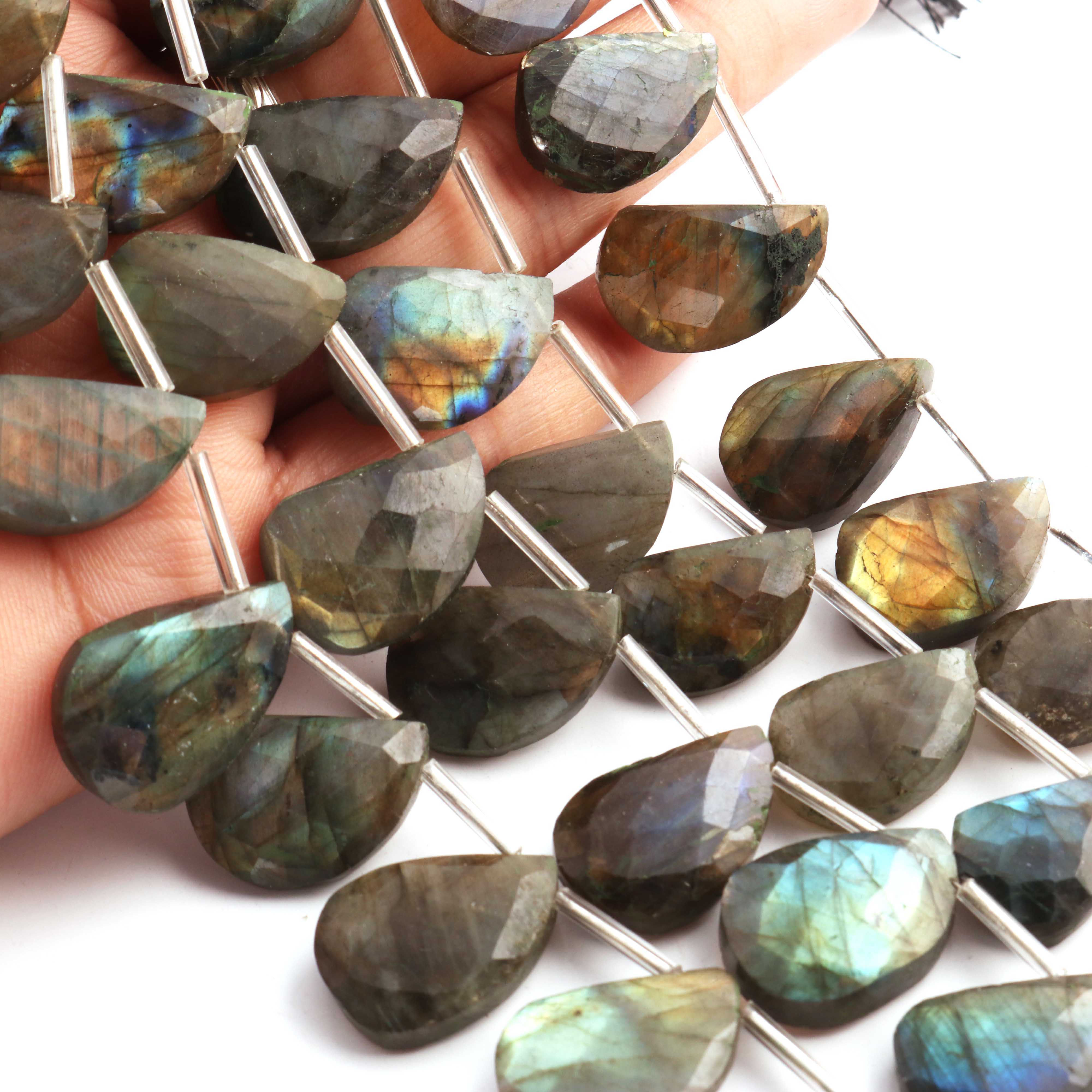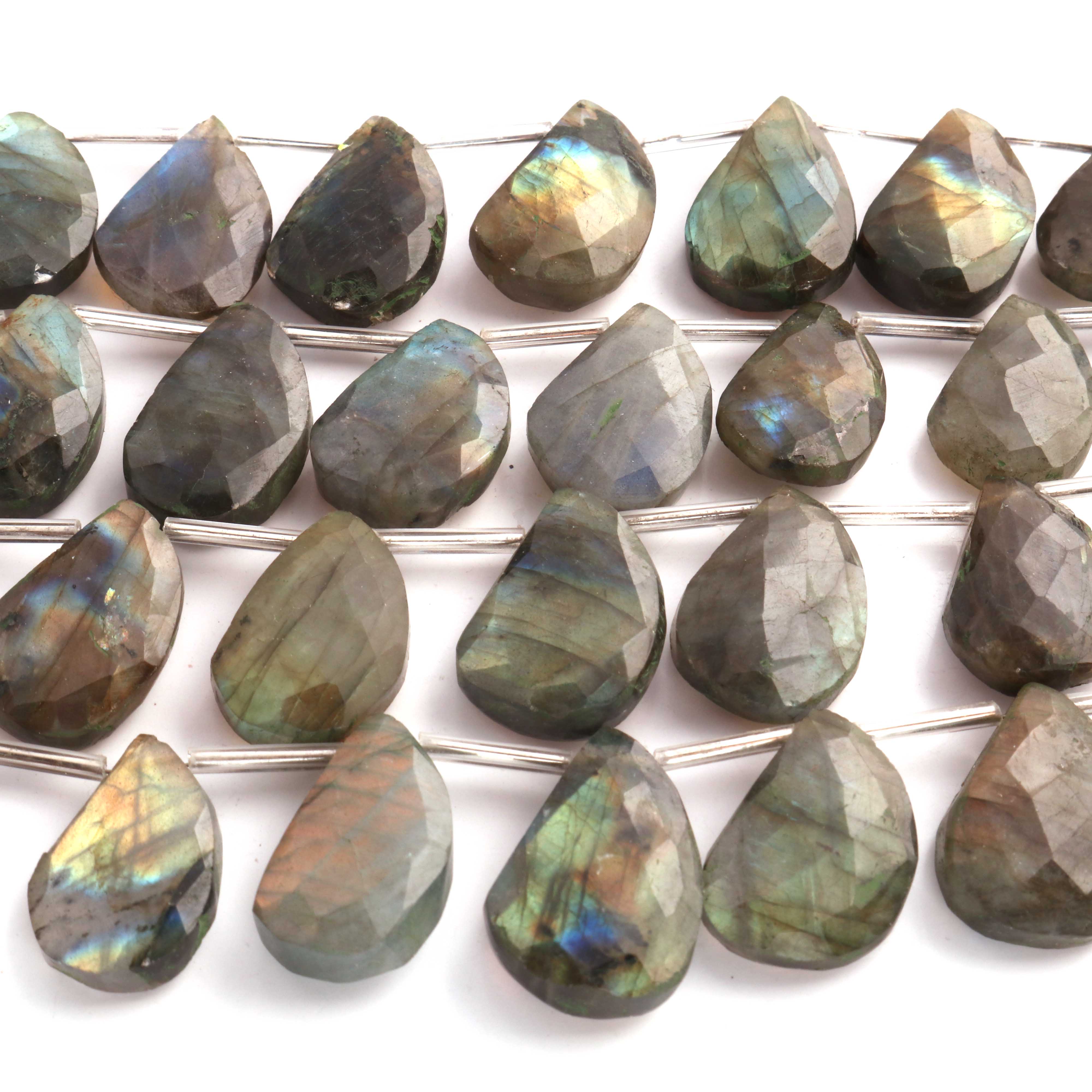 1 Strand Labradorite Faceted Fancy Briolettes - Fancy Briolettes 14mmxx11mm-23mmx16mm-9 inches BR03845