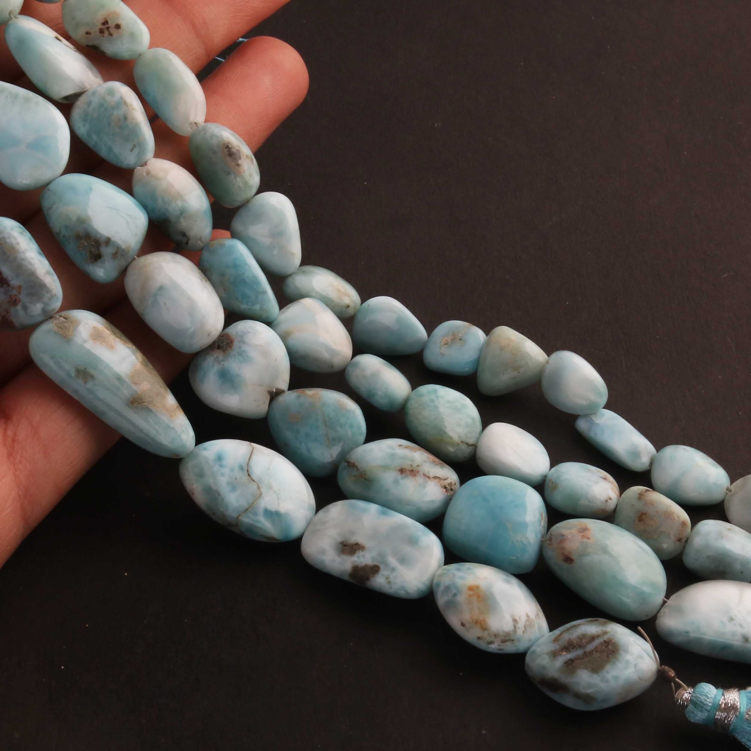 1 Strand Larimar Smooth Nuggets Briolettes -Semi Precious Gemstone Assorted Nuggets Shape Larimar Briolettes -10mmx9mm-28mmx13mm-8 Inches BR03339
