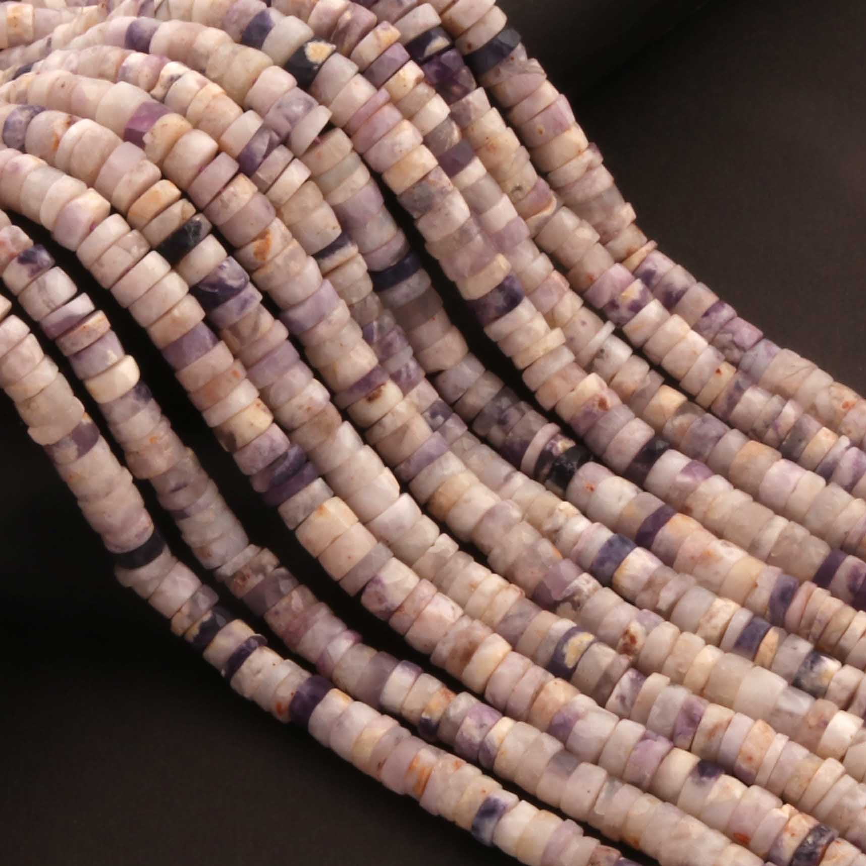 1 Strand Lilac Jasper Faceted Tyre Shape Beads - 6mm-8mm Lilac Jasper Wheel cut Beads ,Heishi Tyre beads BR03930
