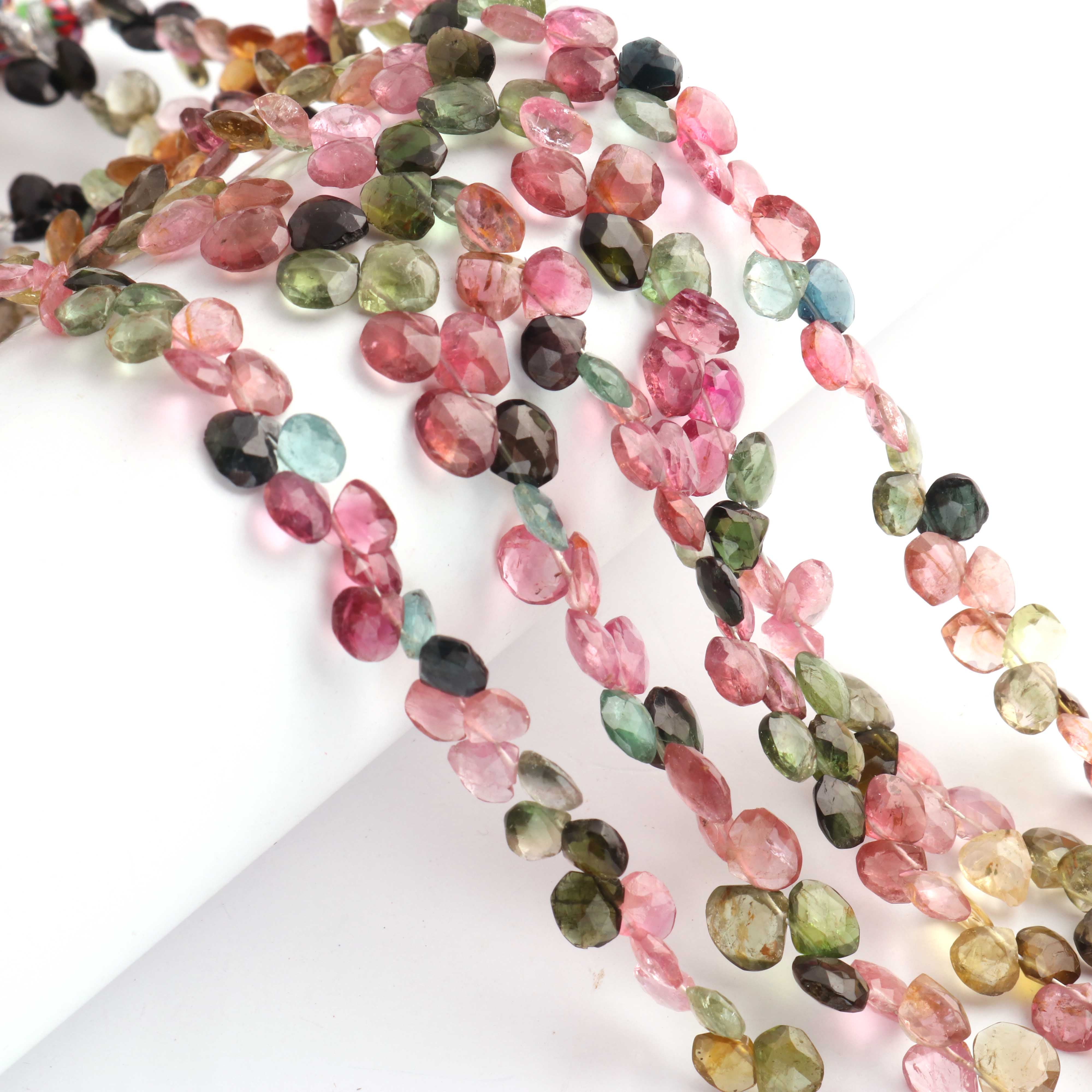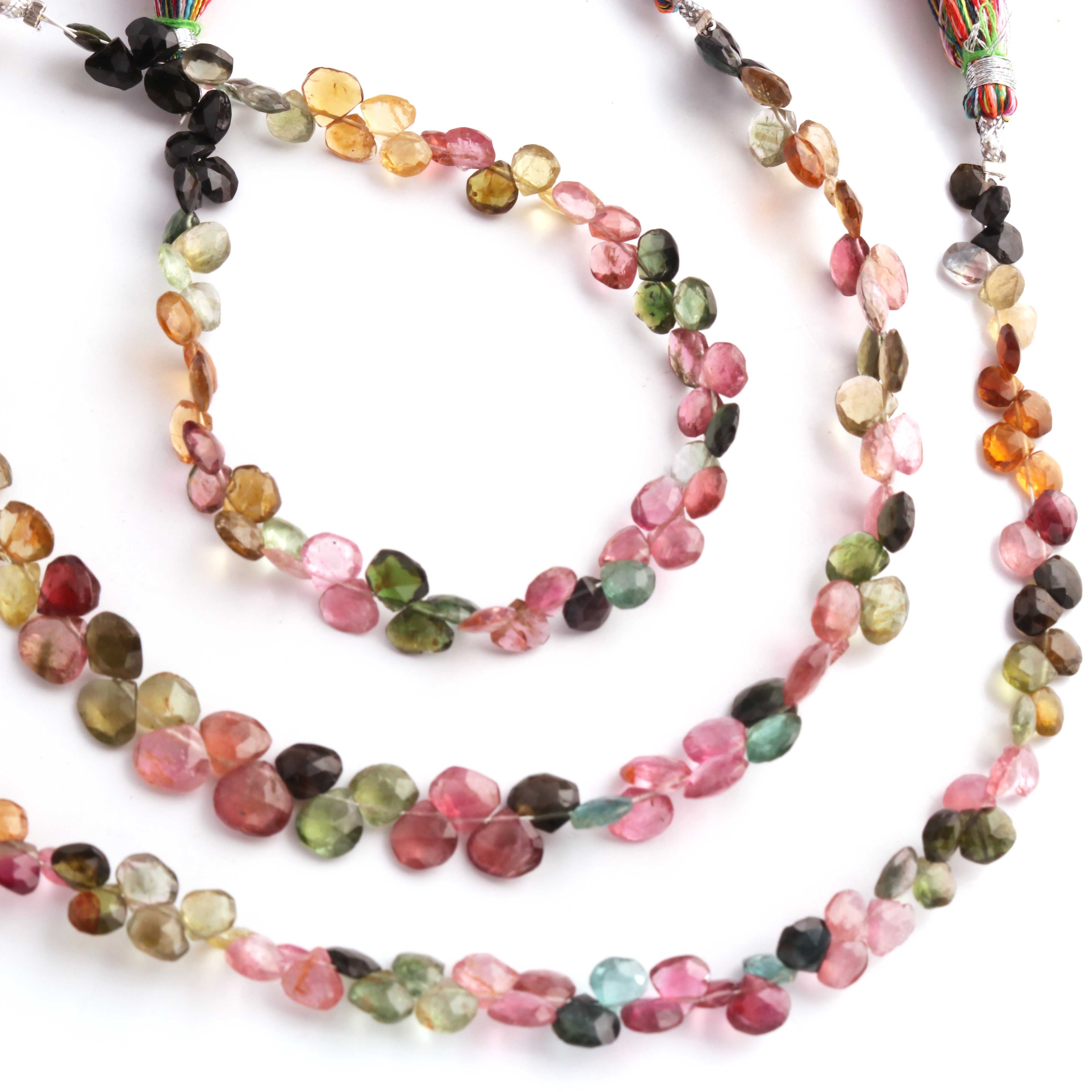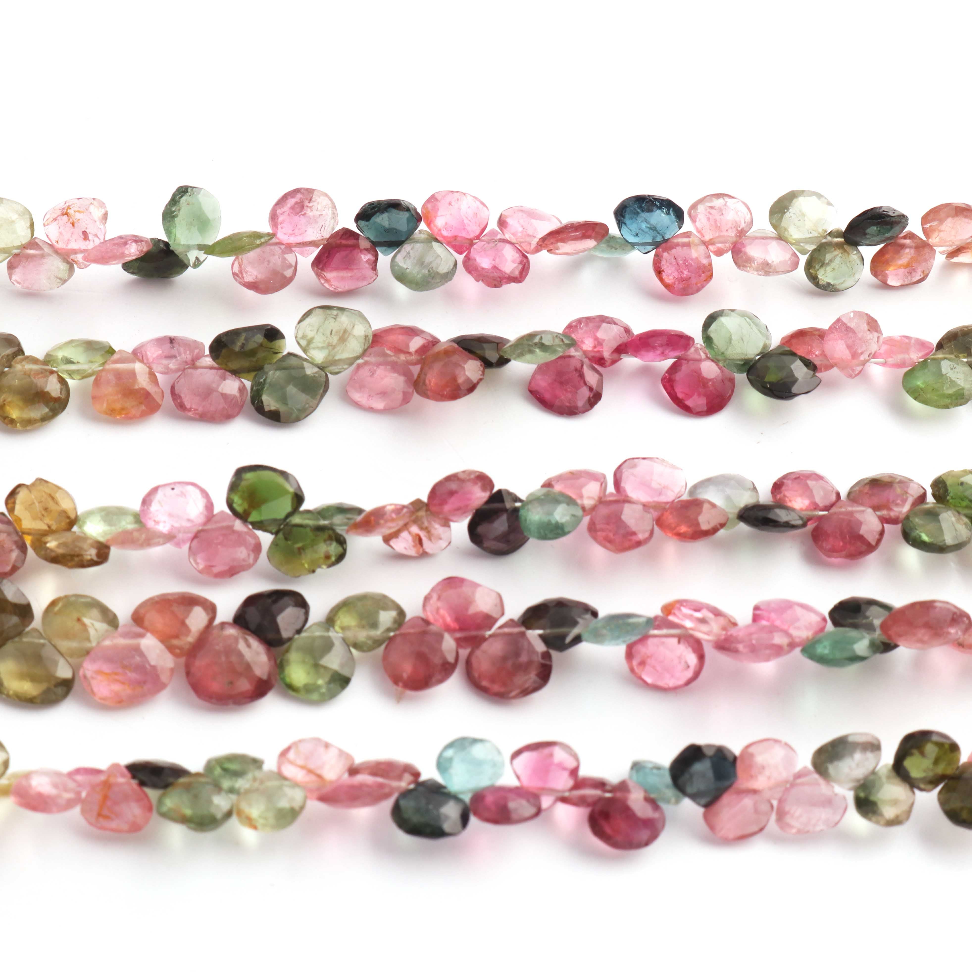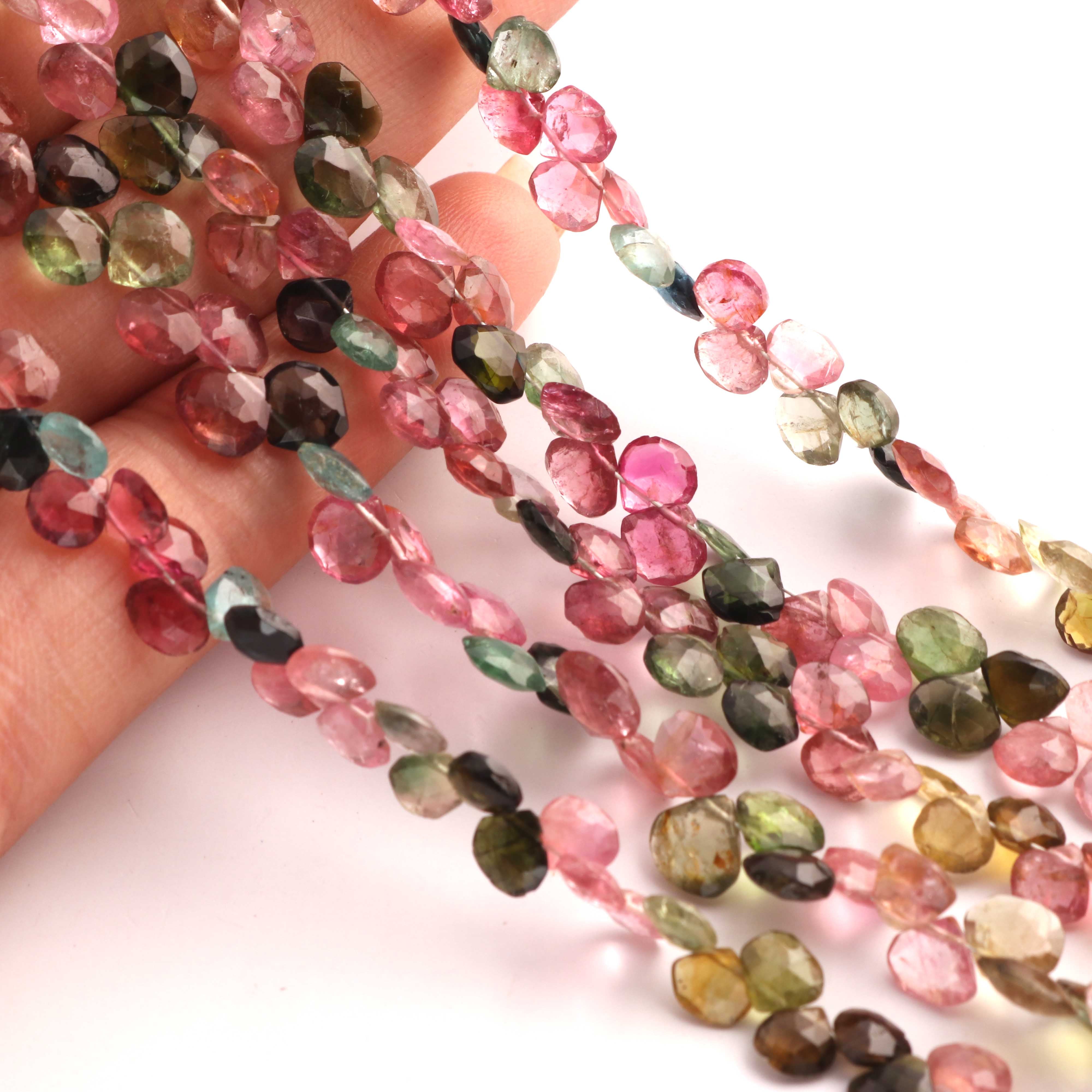 1 Strand Multi Tourmaline Faceted Heart Shape Briolettes - Multi Tourmaline Heart Shape Beads 5mm-6mm 8 Inches BR0080