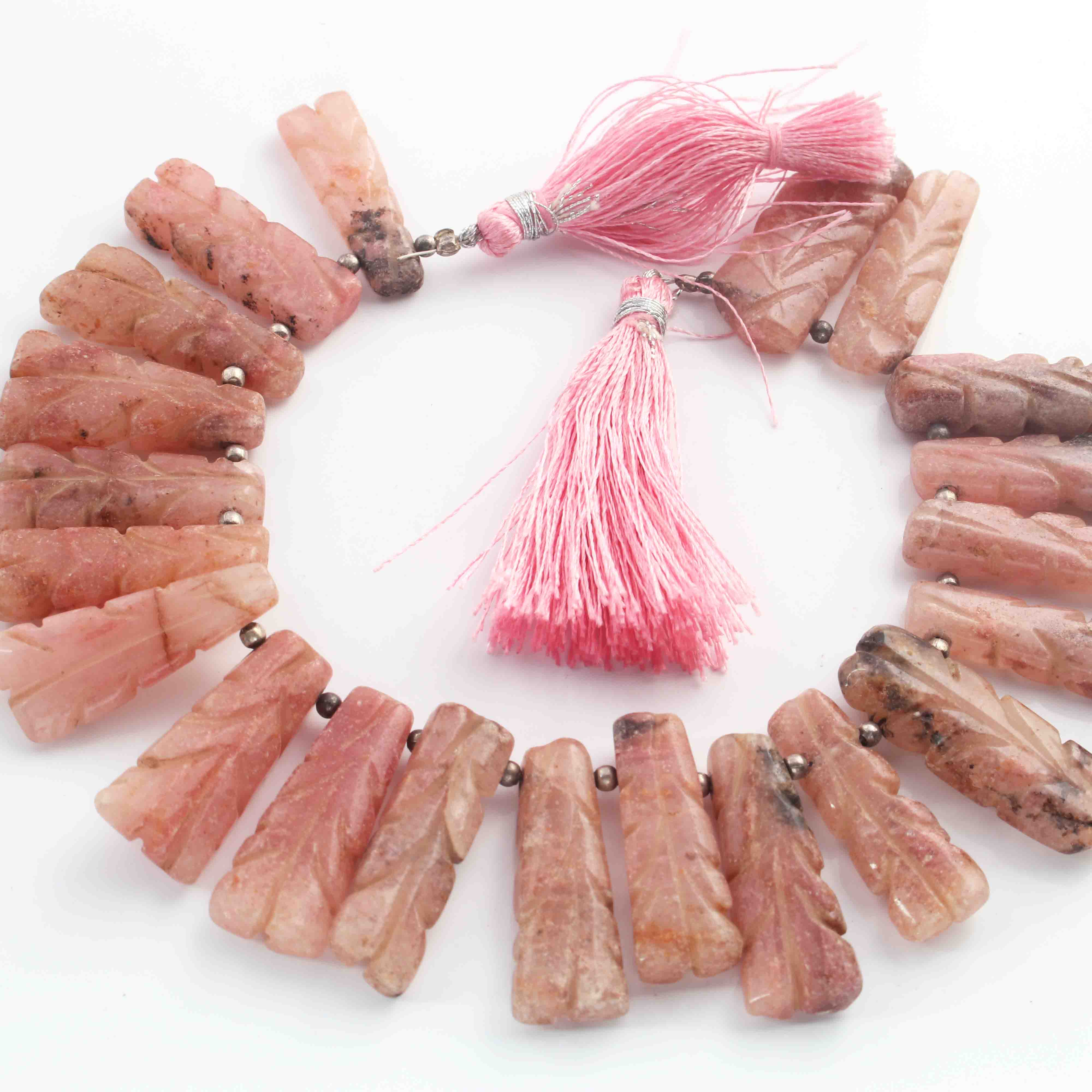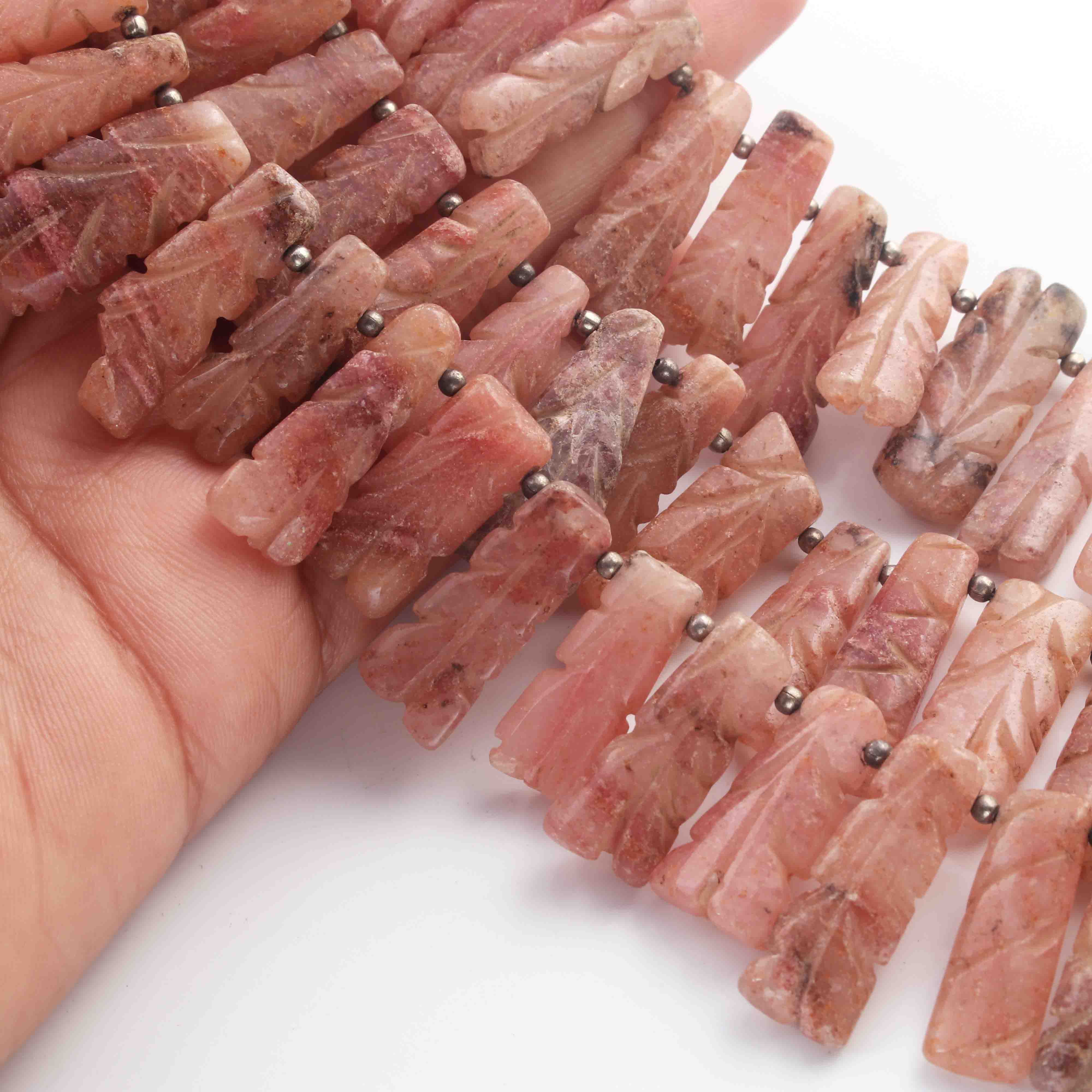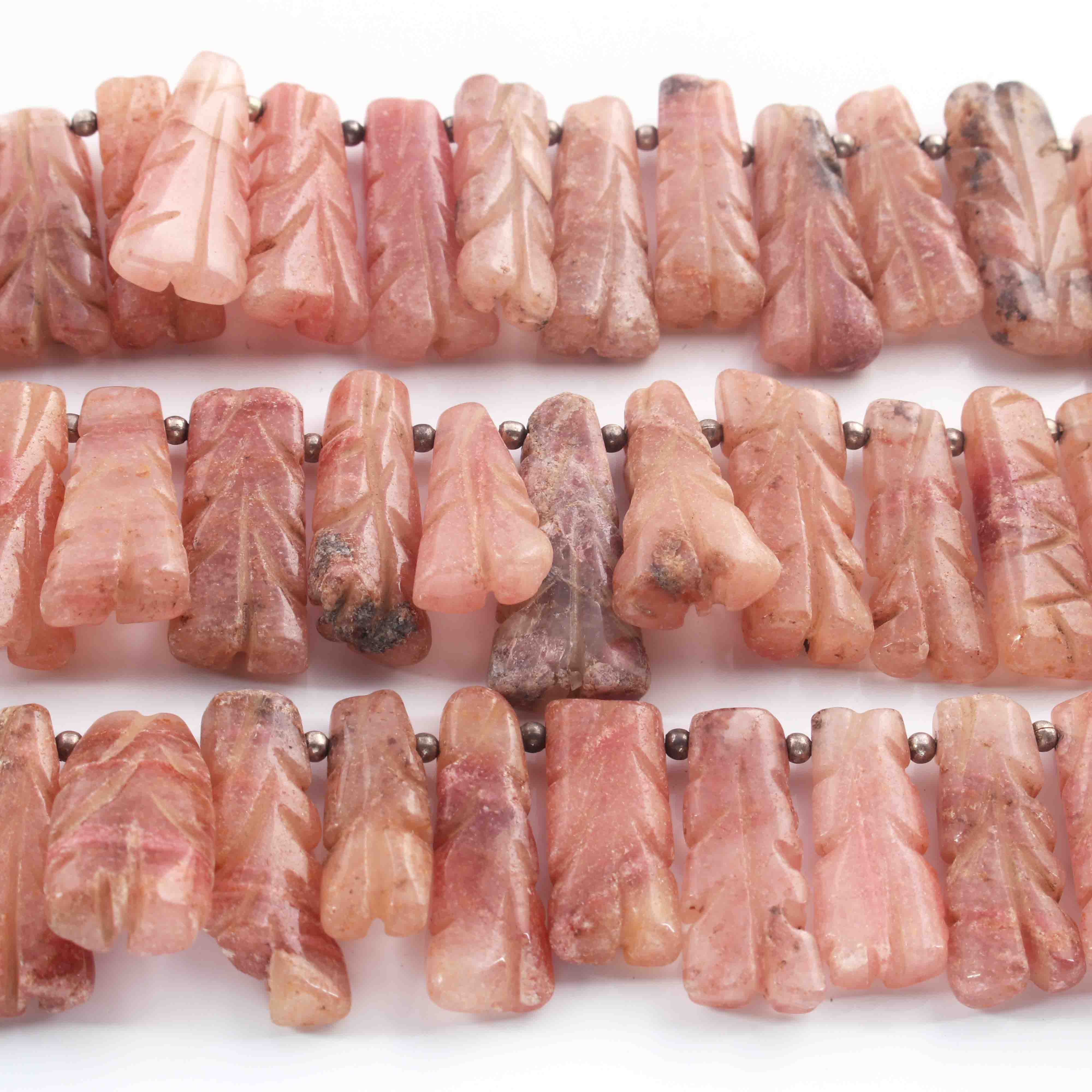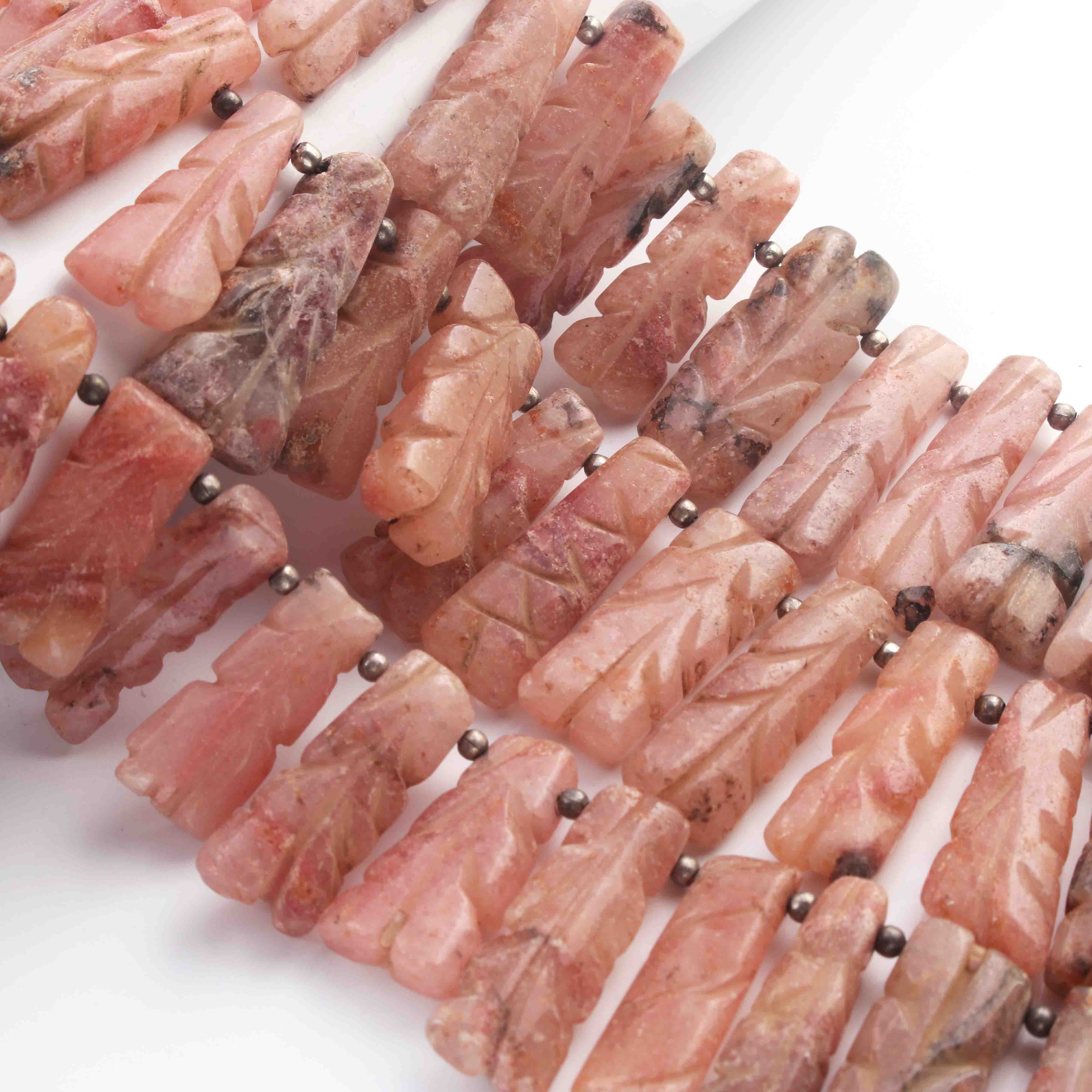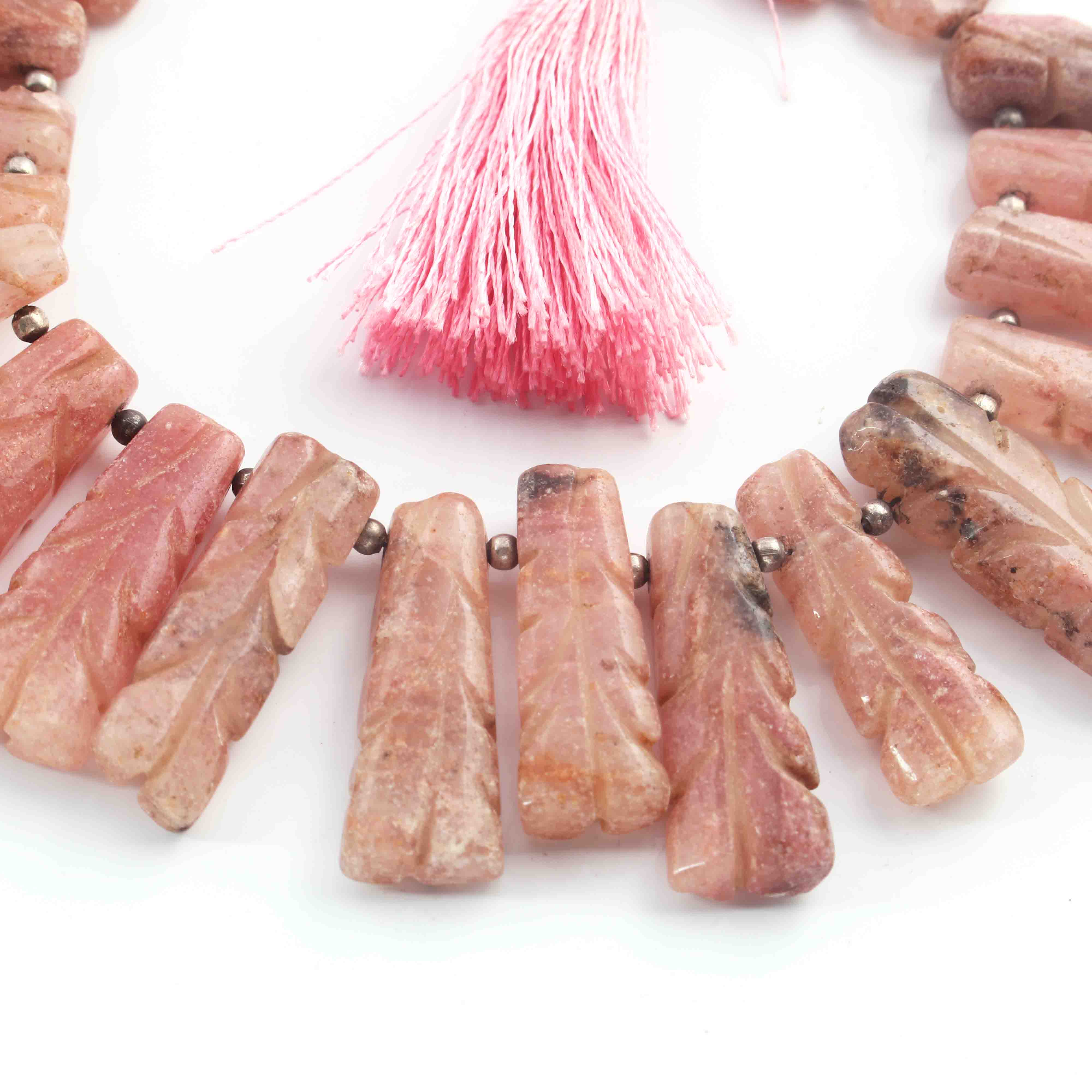 1 Strand Rhodochrosite Carving Briolettes -Rectangle Shape Briolettes -31mmx10mm-20mmx8mm - 8 Inches BR01737