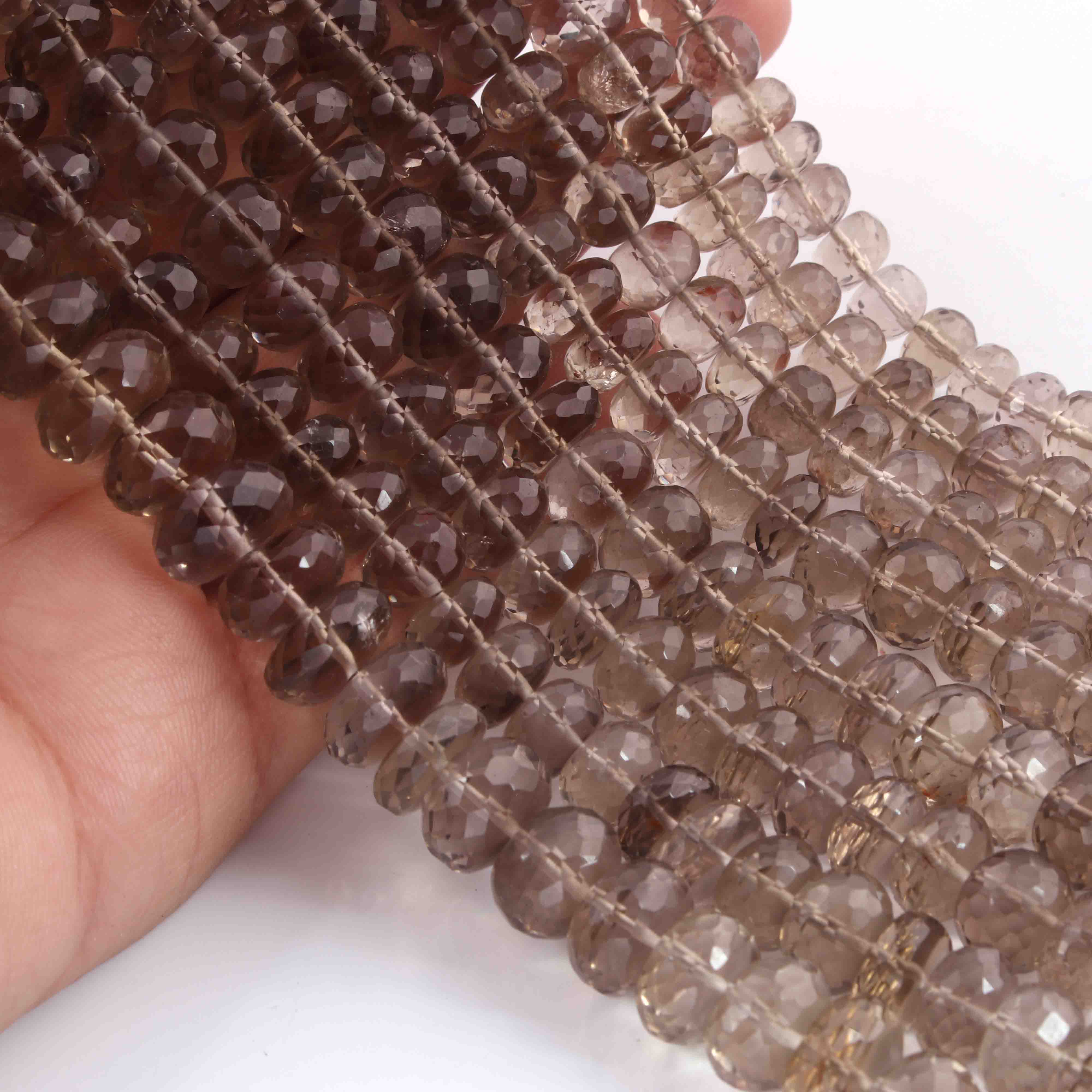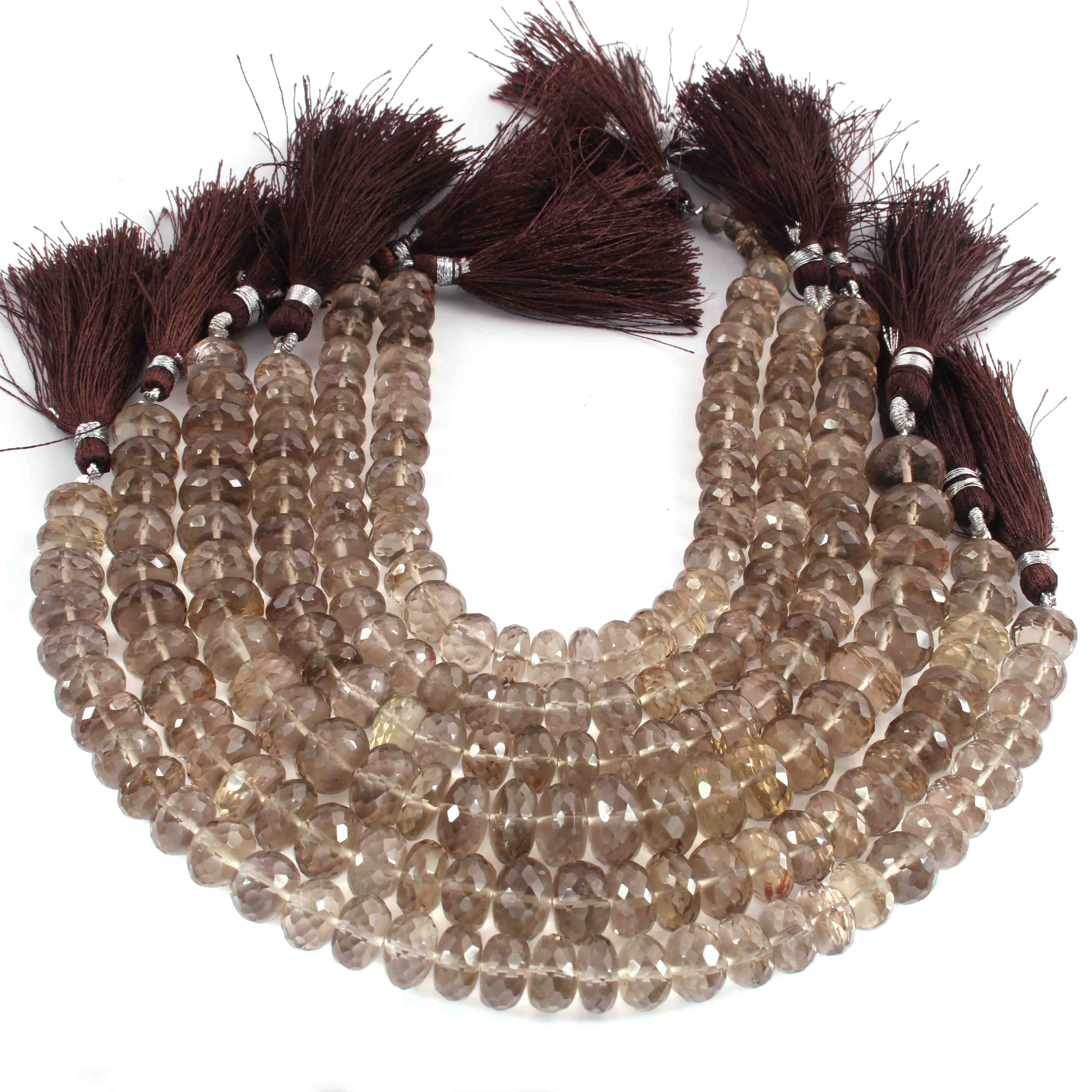 1 Strand Smoky Quartz Faceted Rondelles - Rondelles Shape Beads - 7mm-11mm - 8.5 Inches BR02136