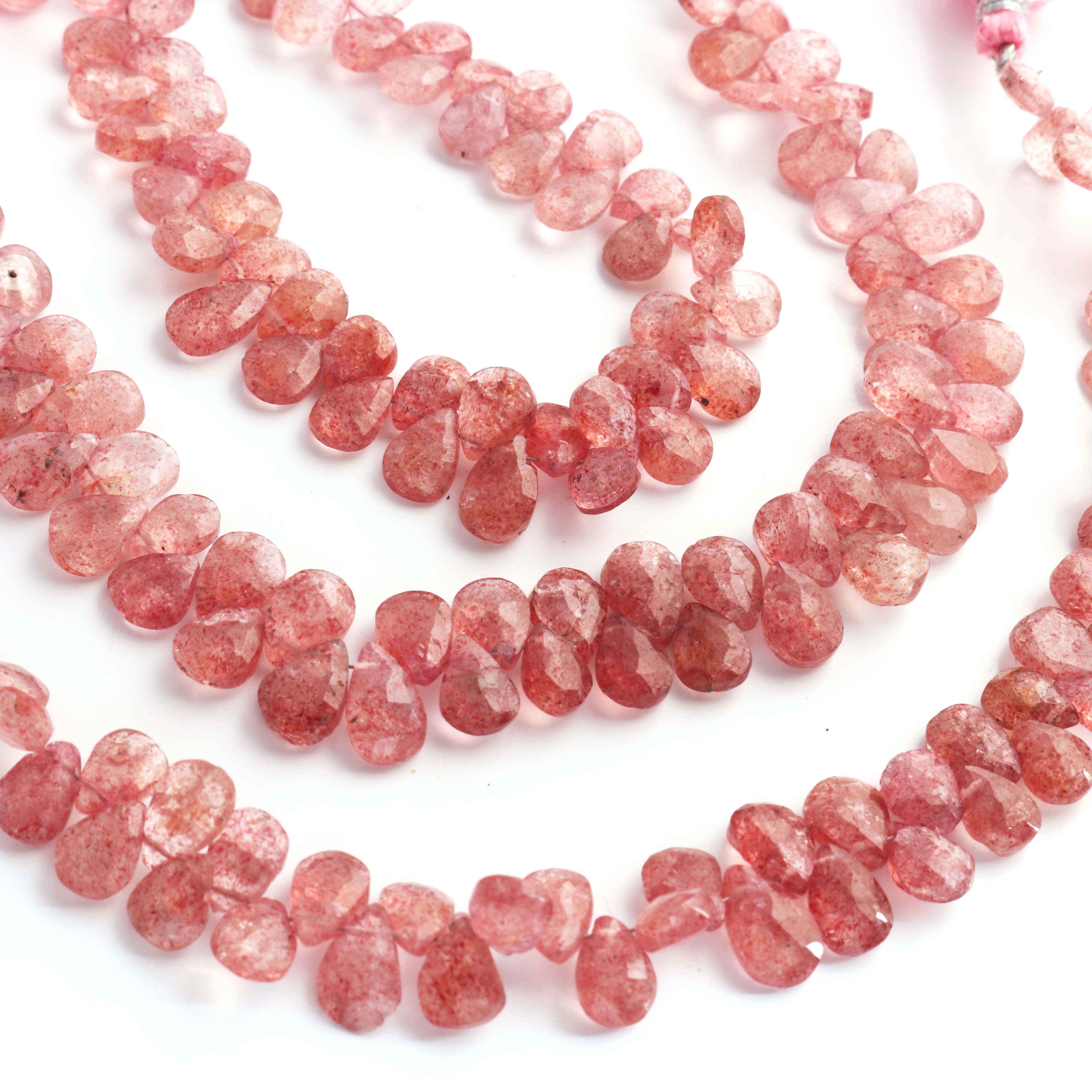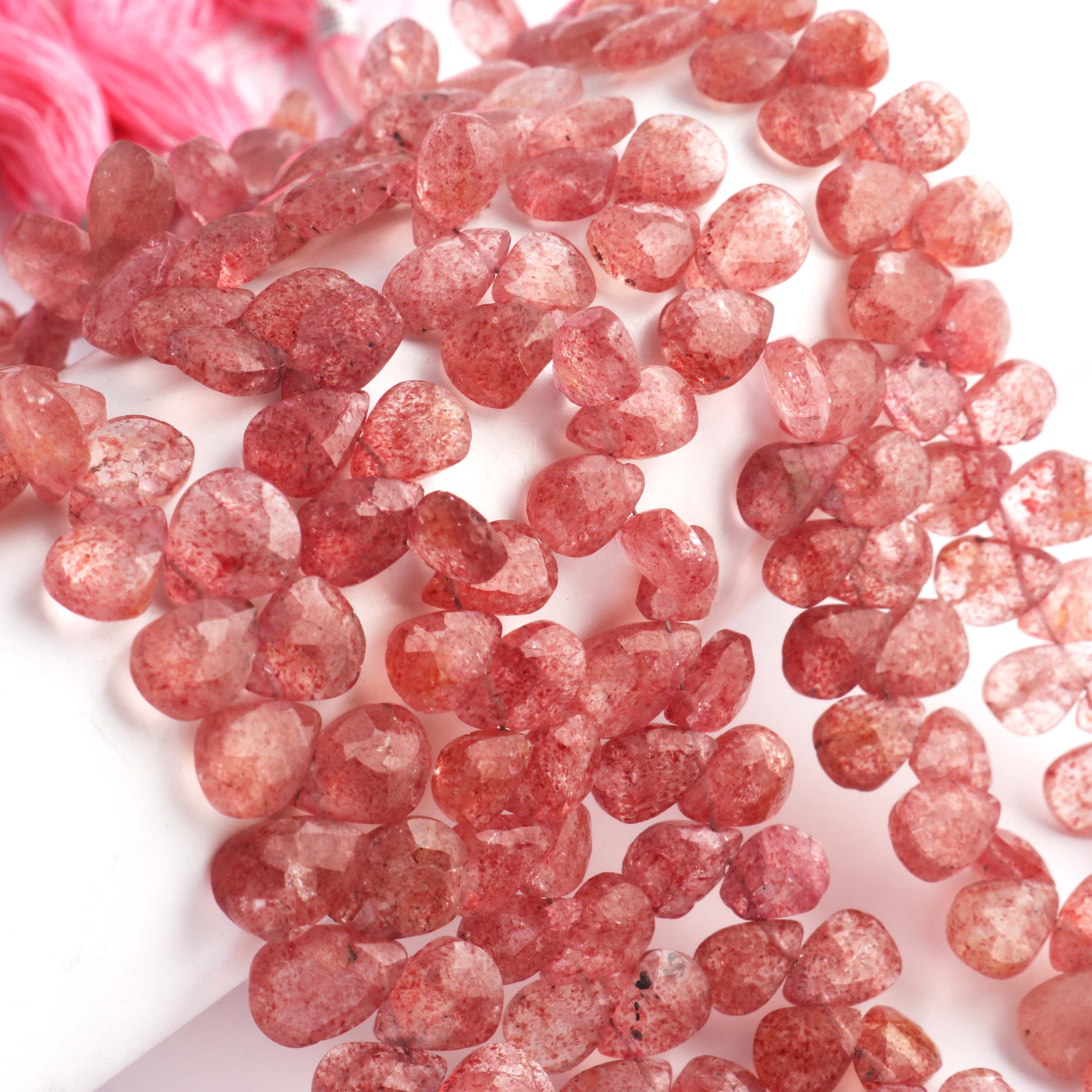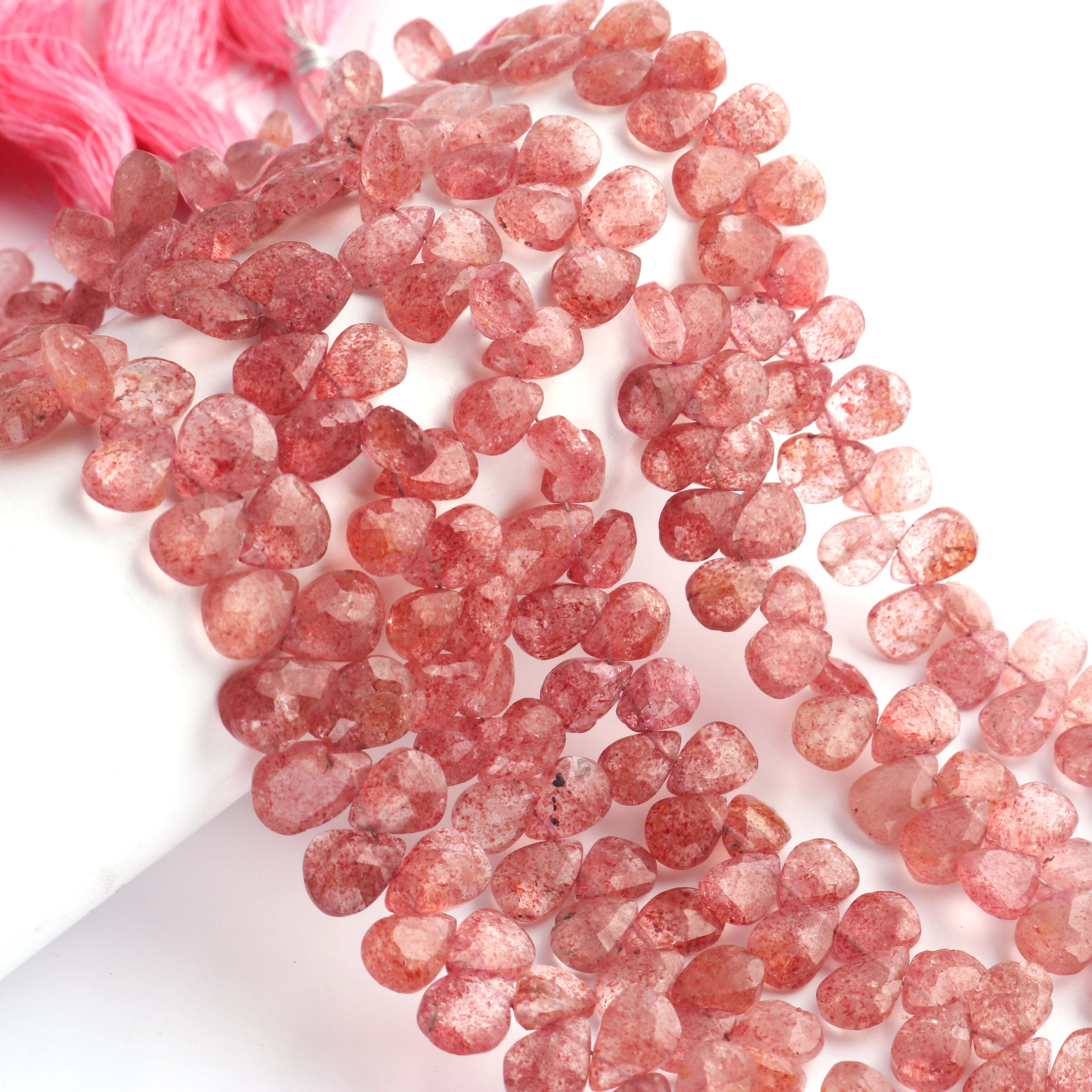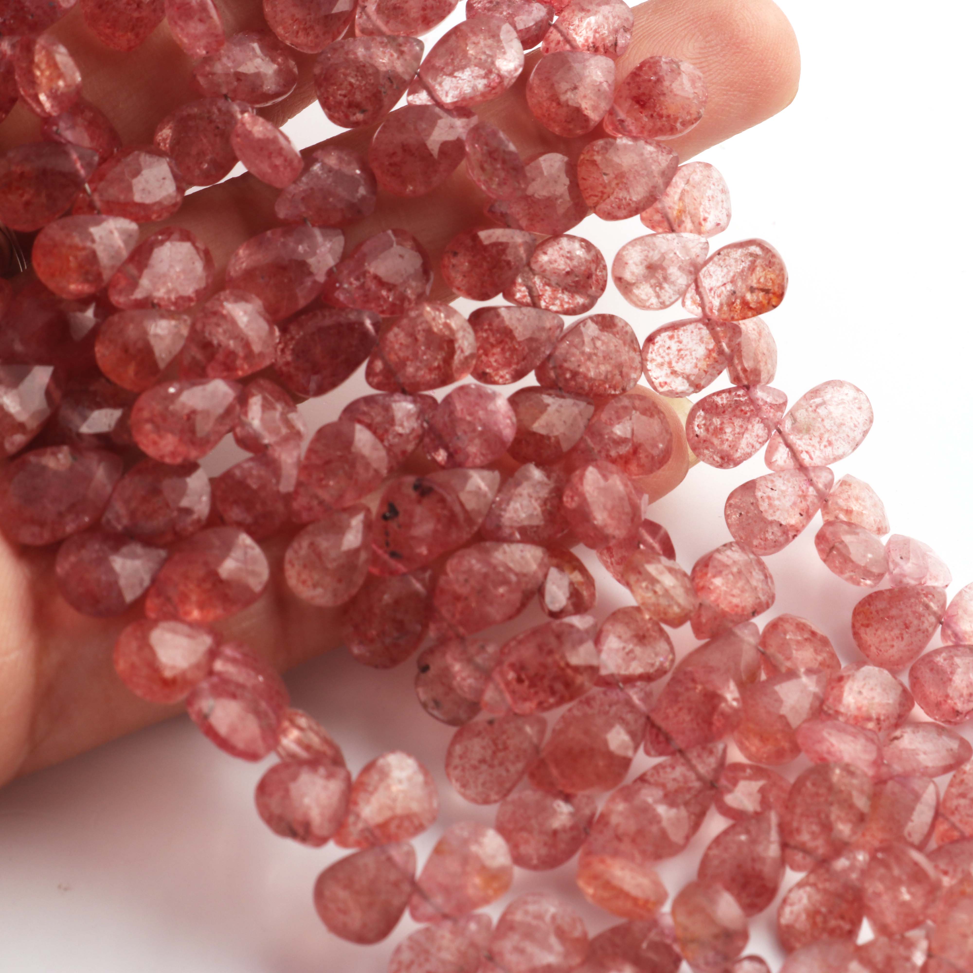 1  Strand  Strawberry Quartz Faceted Briolettes - Pear Shape Briolettes -10mmx7mm-8mmx6mm- 7.5 Inches BR02929