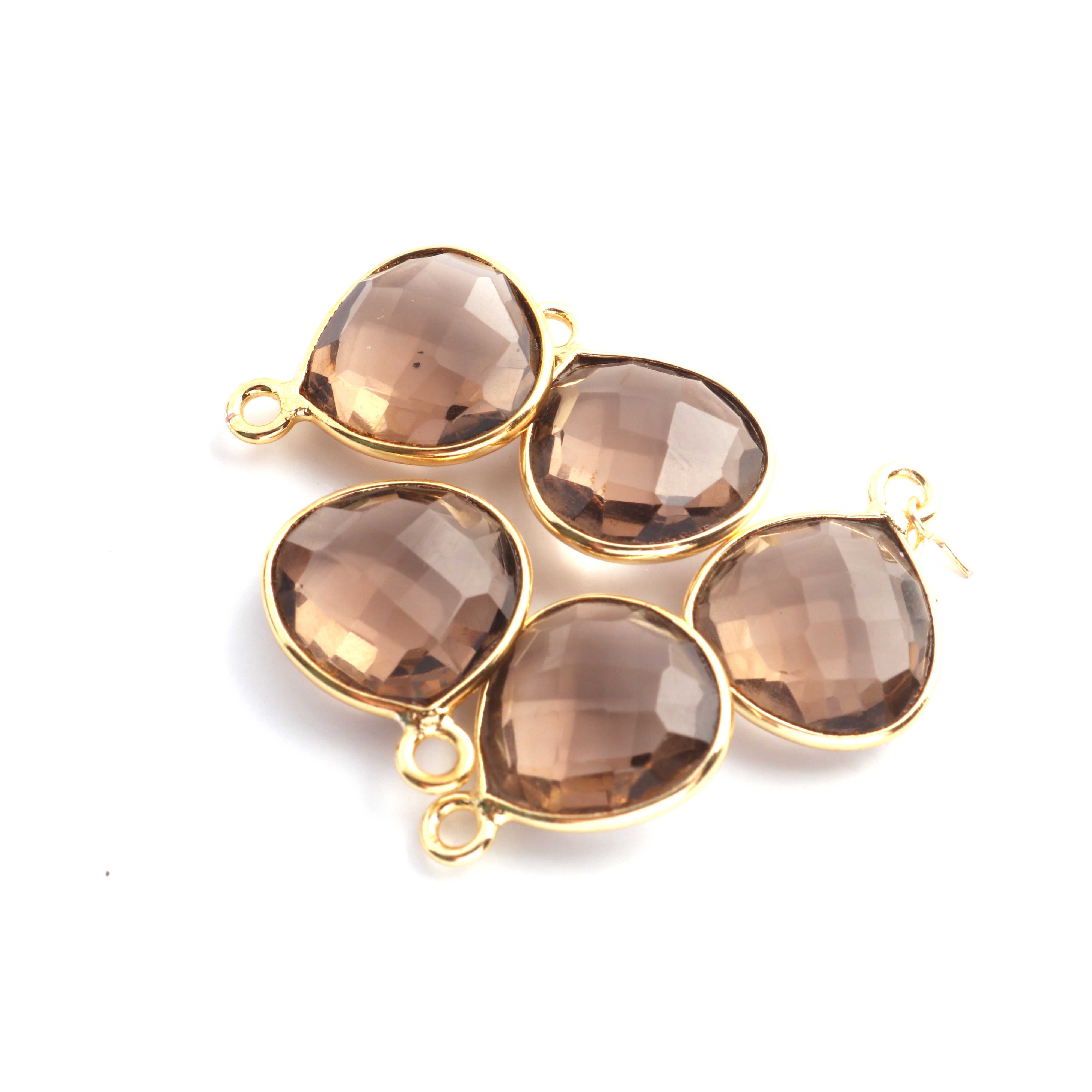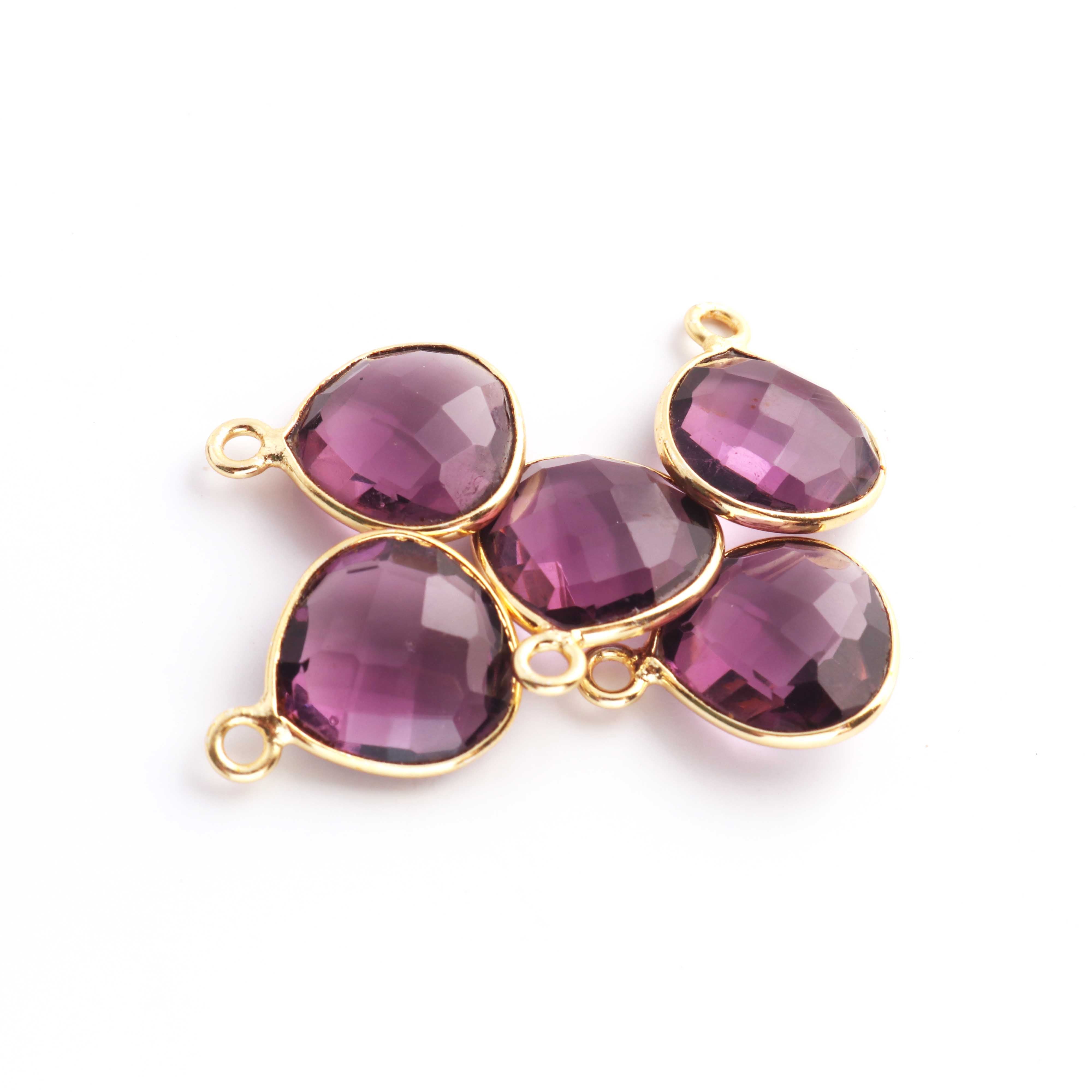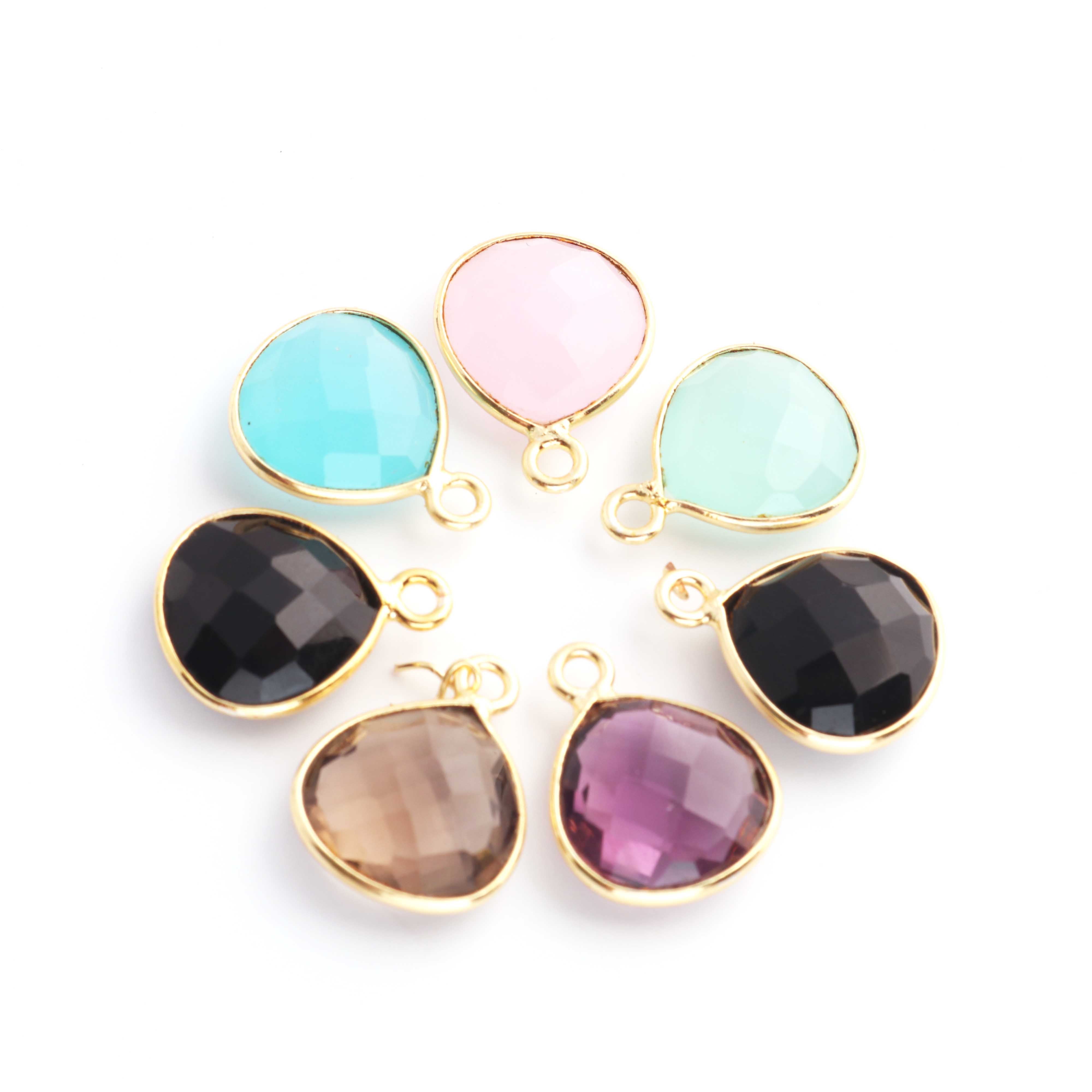 5 Pcs Birth Stone Heart Shape 24k Gold Plated Pendant- Multi Stone Faceted Pendant 17mmx13mm PC0012(You Choose)