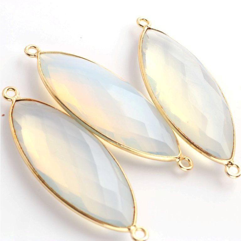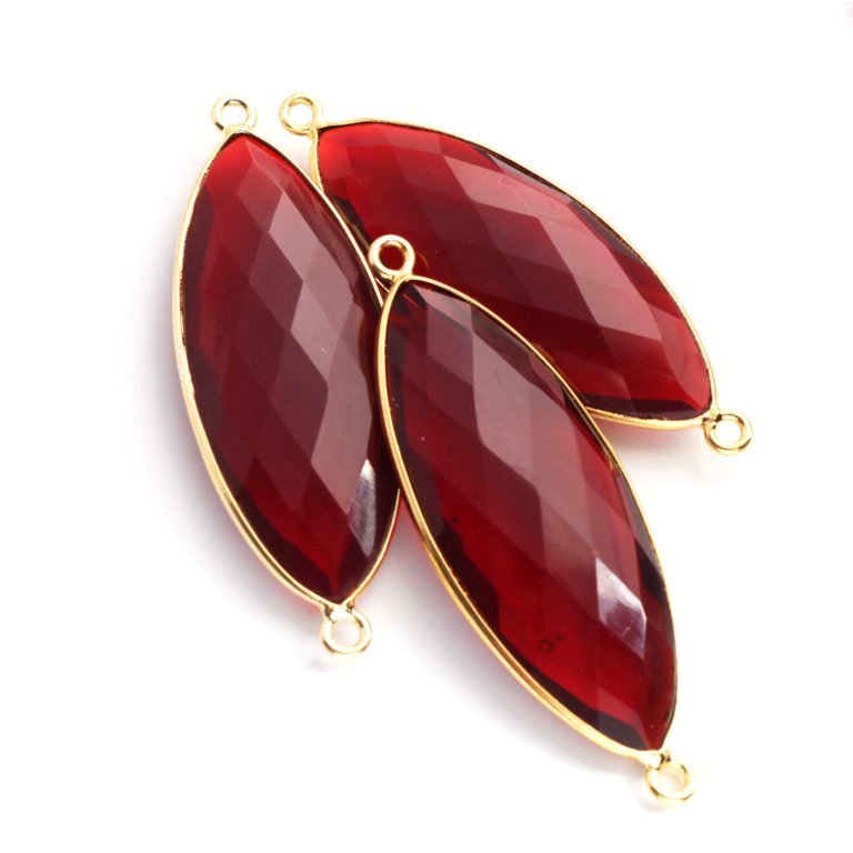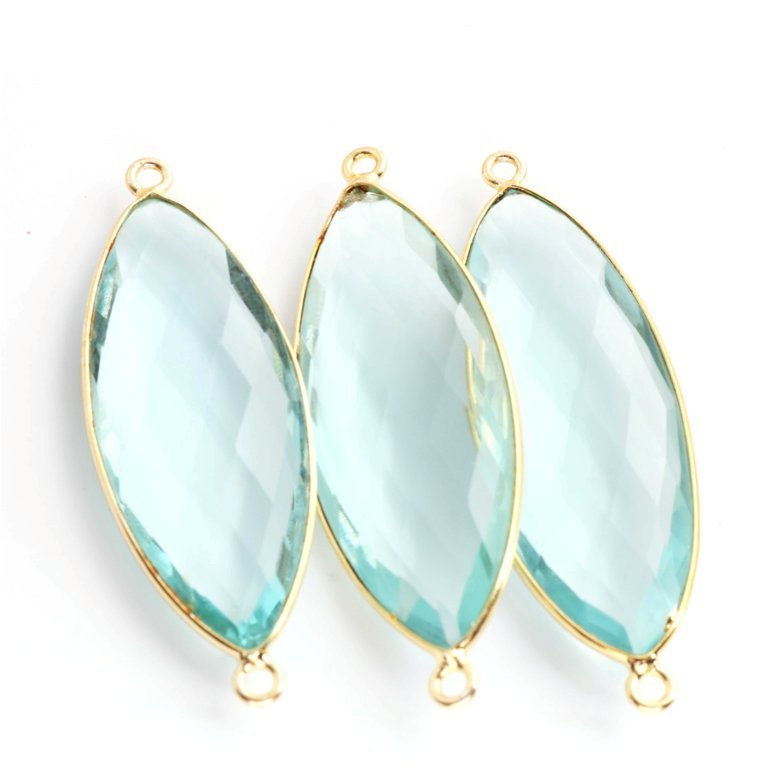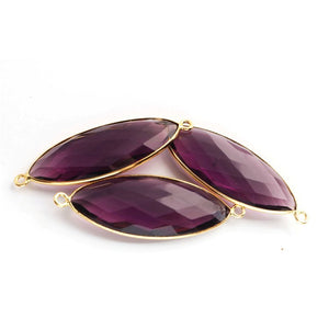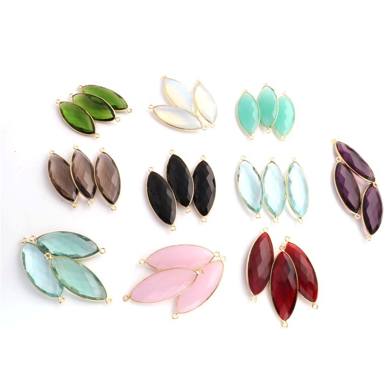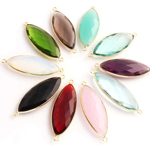 5 Pcs Birth Stone Marquise Shape 24k Gold Plated Double Bail Connector- Multi Stone Faceted Connector 44mmx15mm PC0002(You Choose)