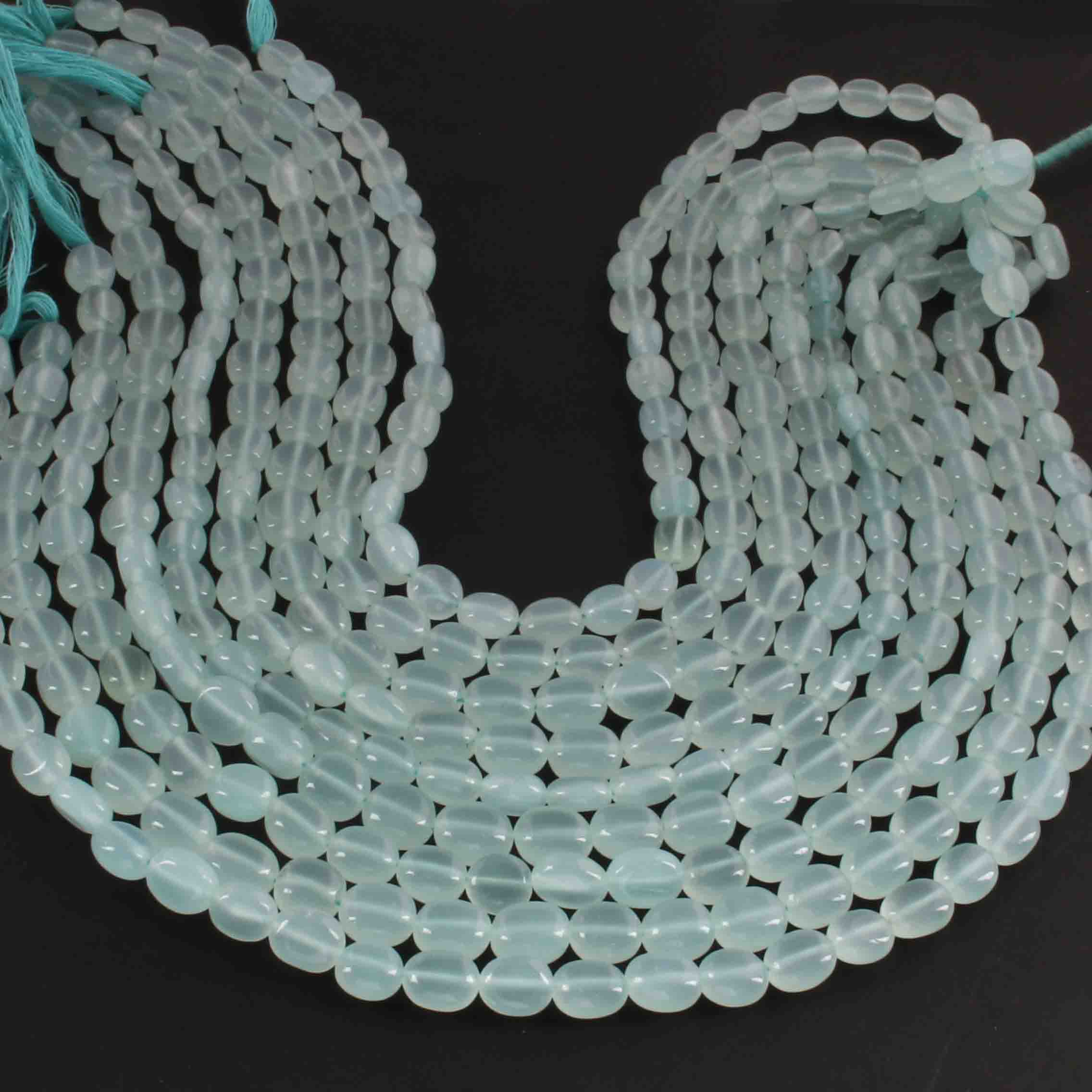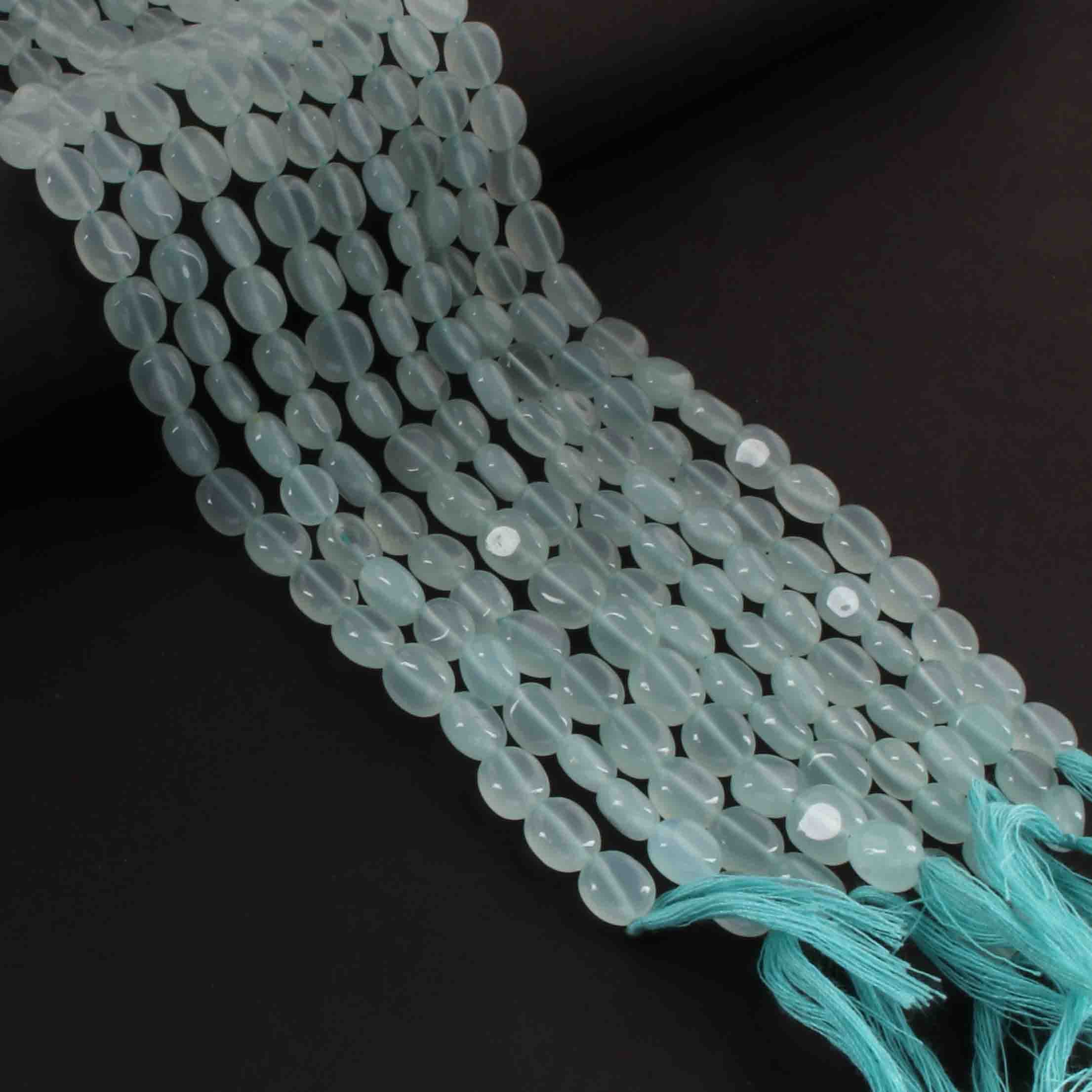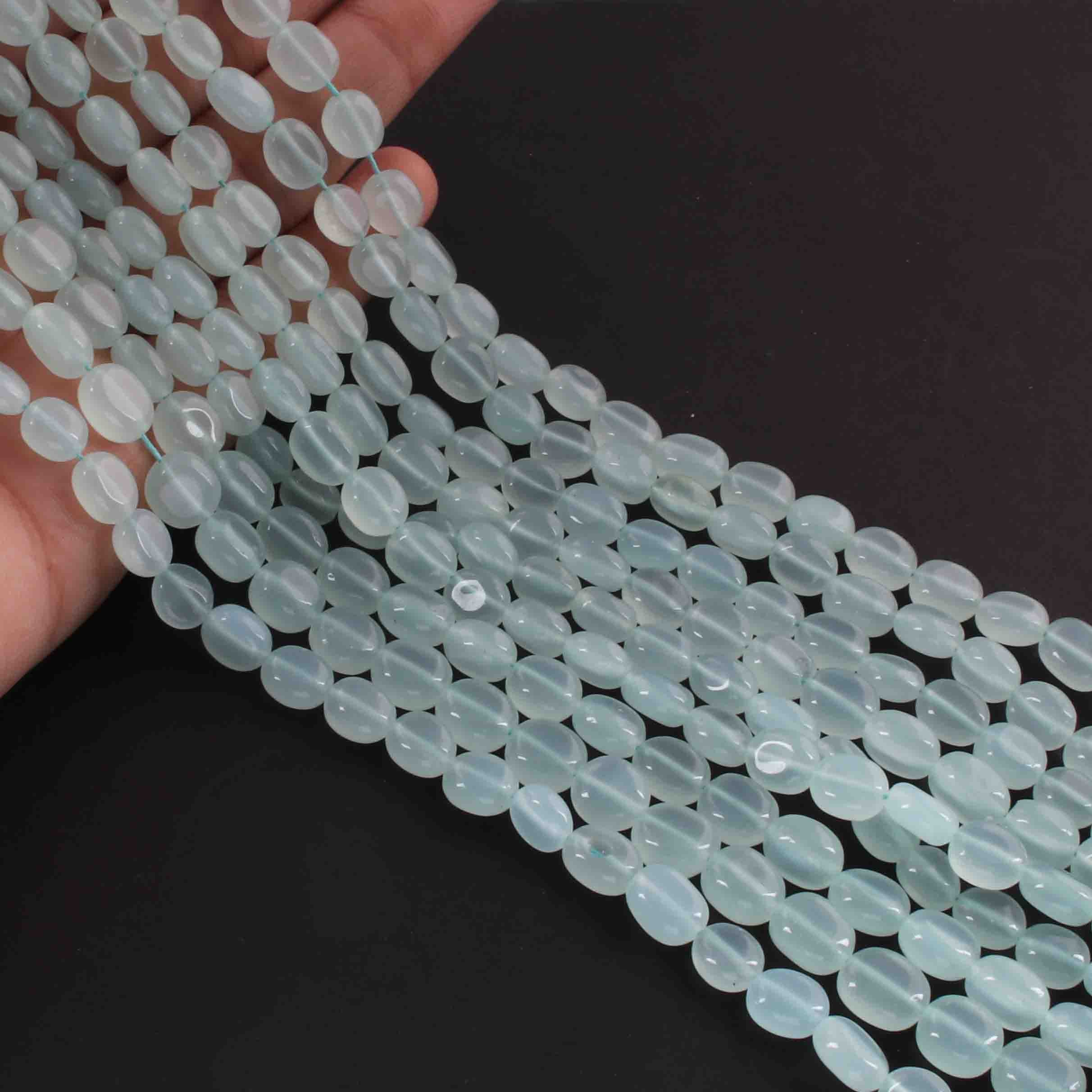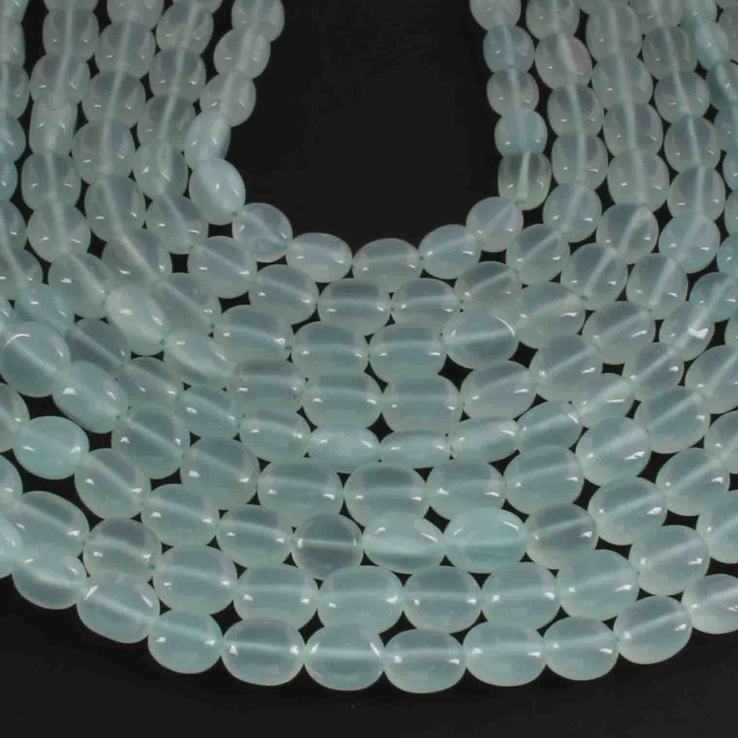 1 Long Strand Aqua Chalcedony Smooth Briolettes - Oval Shape Briolettes - 7mmx7mm-9mmx7mm -12.5 Inches BR02180
