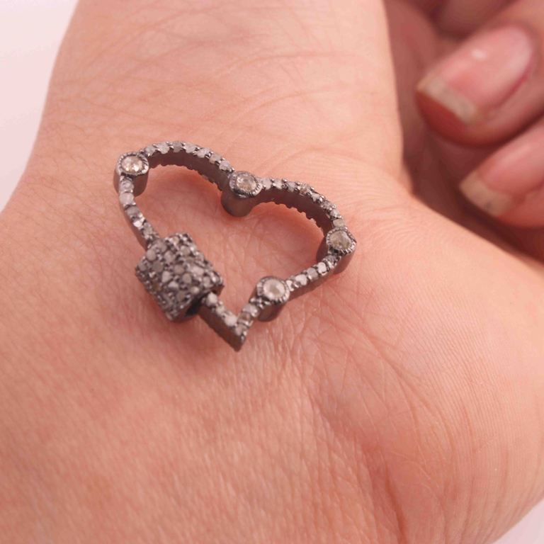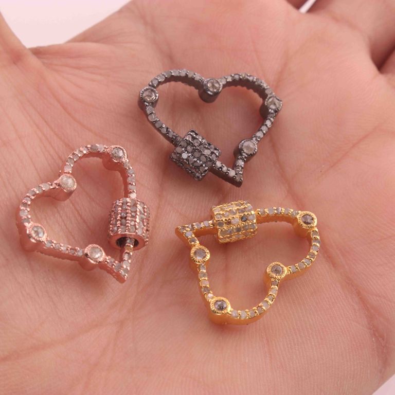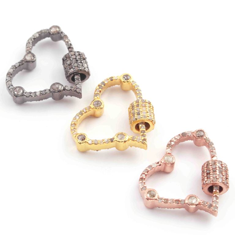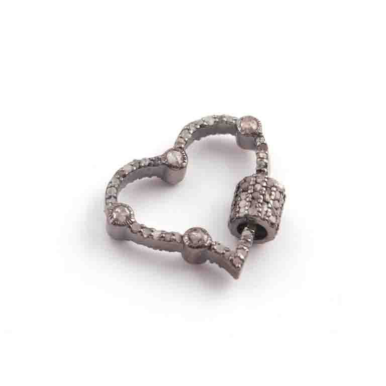 1 Pc Pave Diamond Heart Shape Designer Carabiner - Diamond Lock with Screw On Mechanism 24mmx20mm C00329