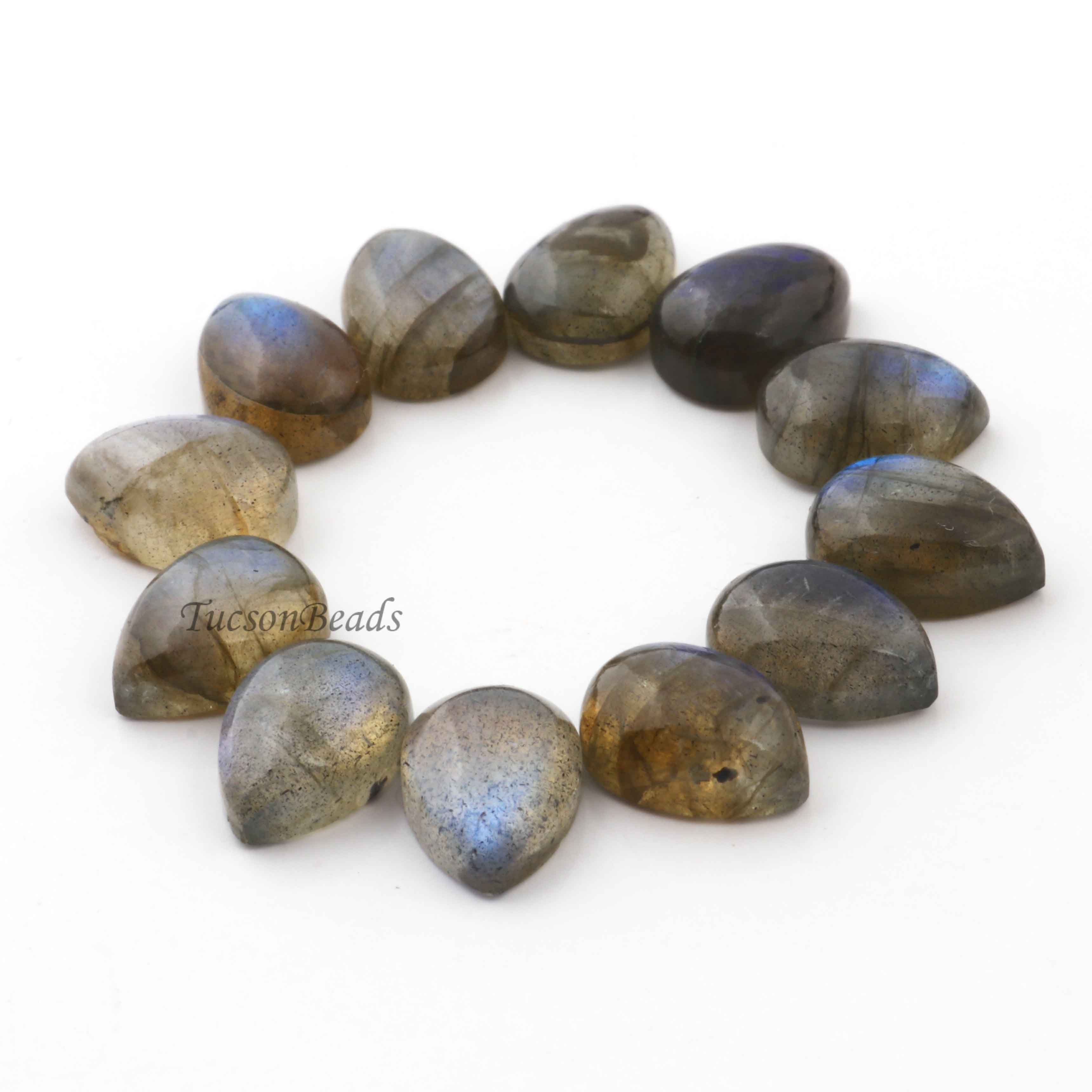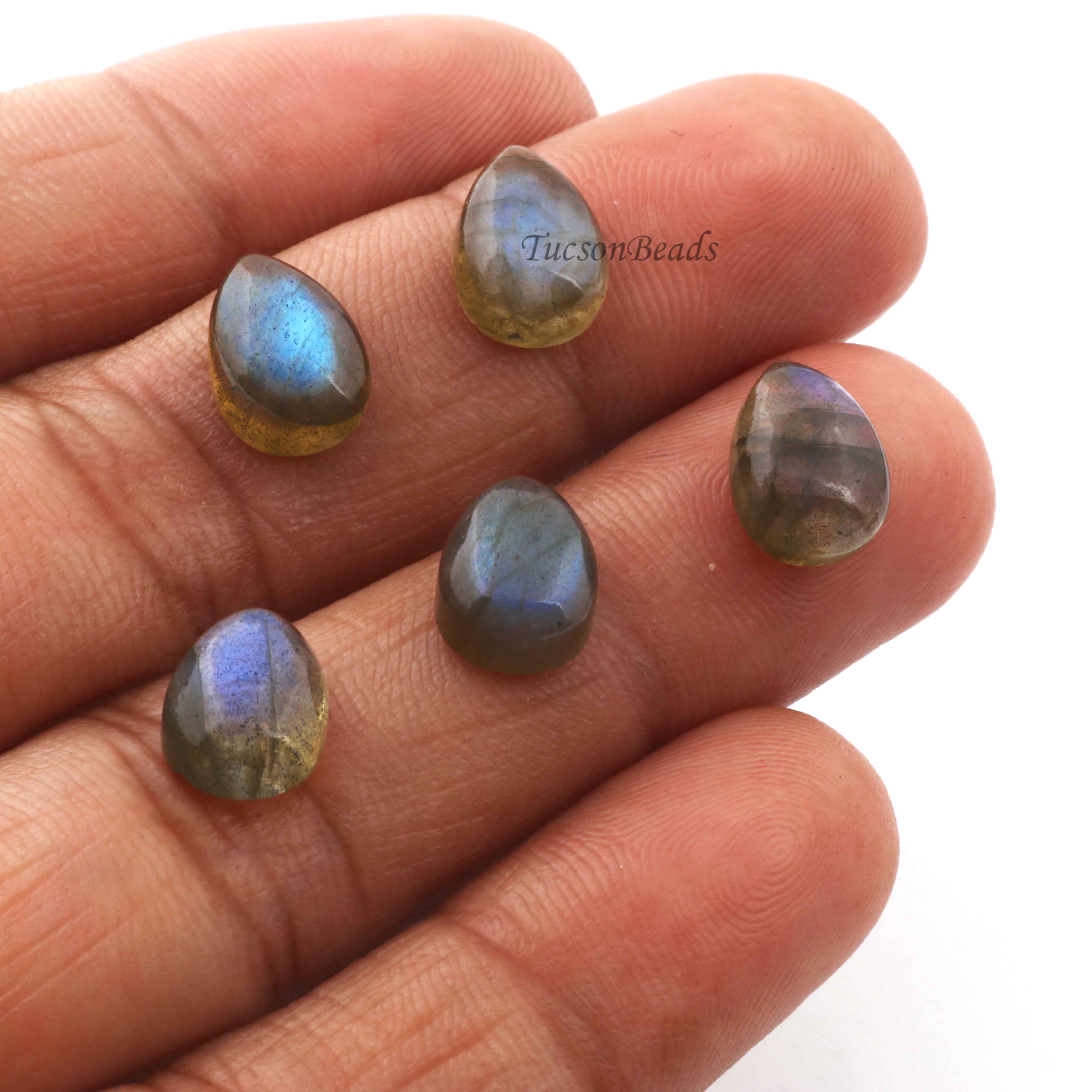 17 Pcs Amazing Labradorite Smooth Cabochon Spectrolite - Pear Shape Multi Fire Loose Gemstone -5mmx2mm LGS133