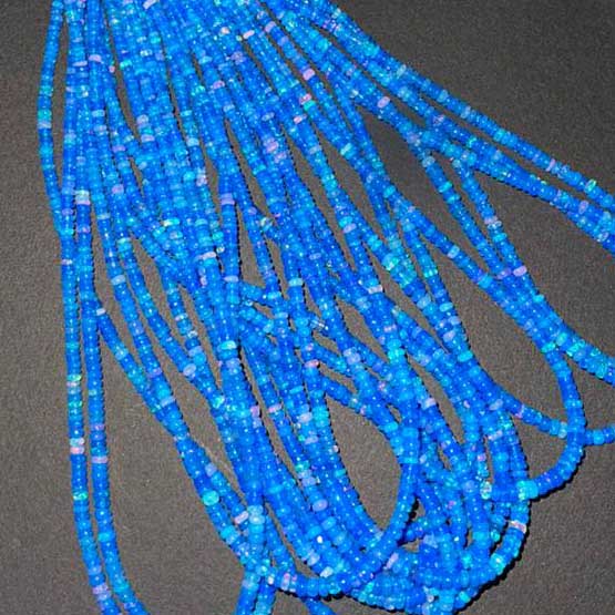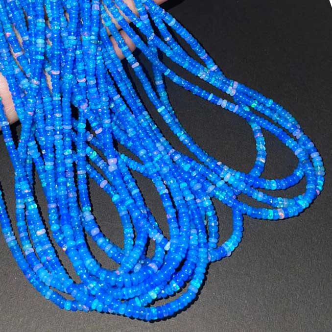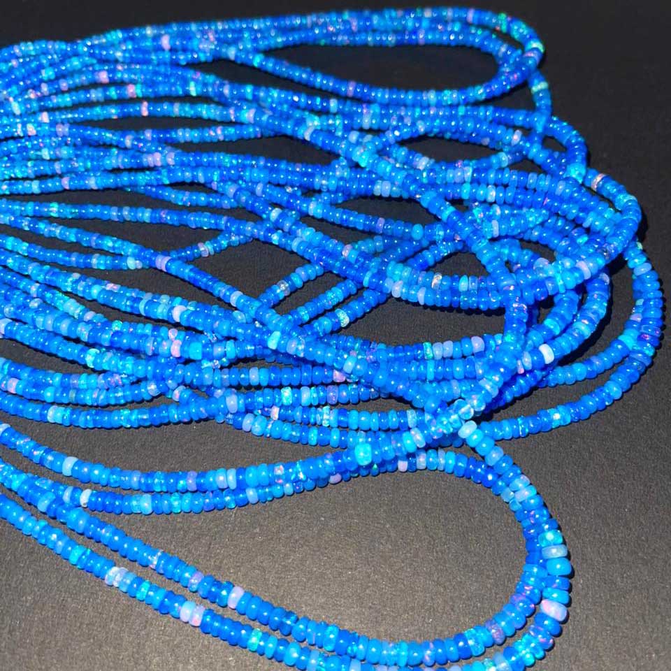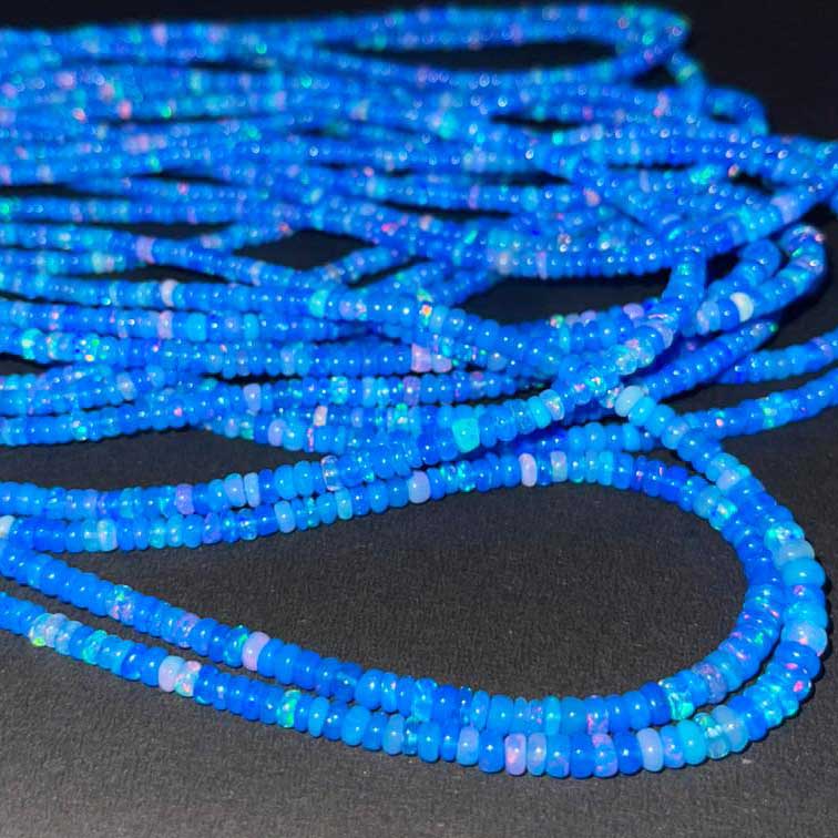 1 Long Strand Amazing Blue Ethiopian Welo Opal Smooth Rondelles - Blue Ethiopian Rondelles Beads 3mm-5mm 16 Inches BR03215