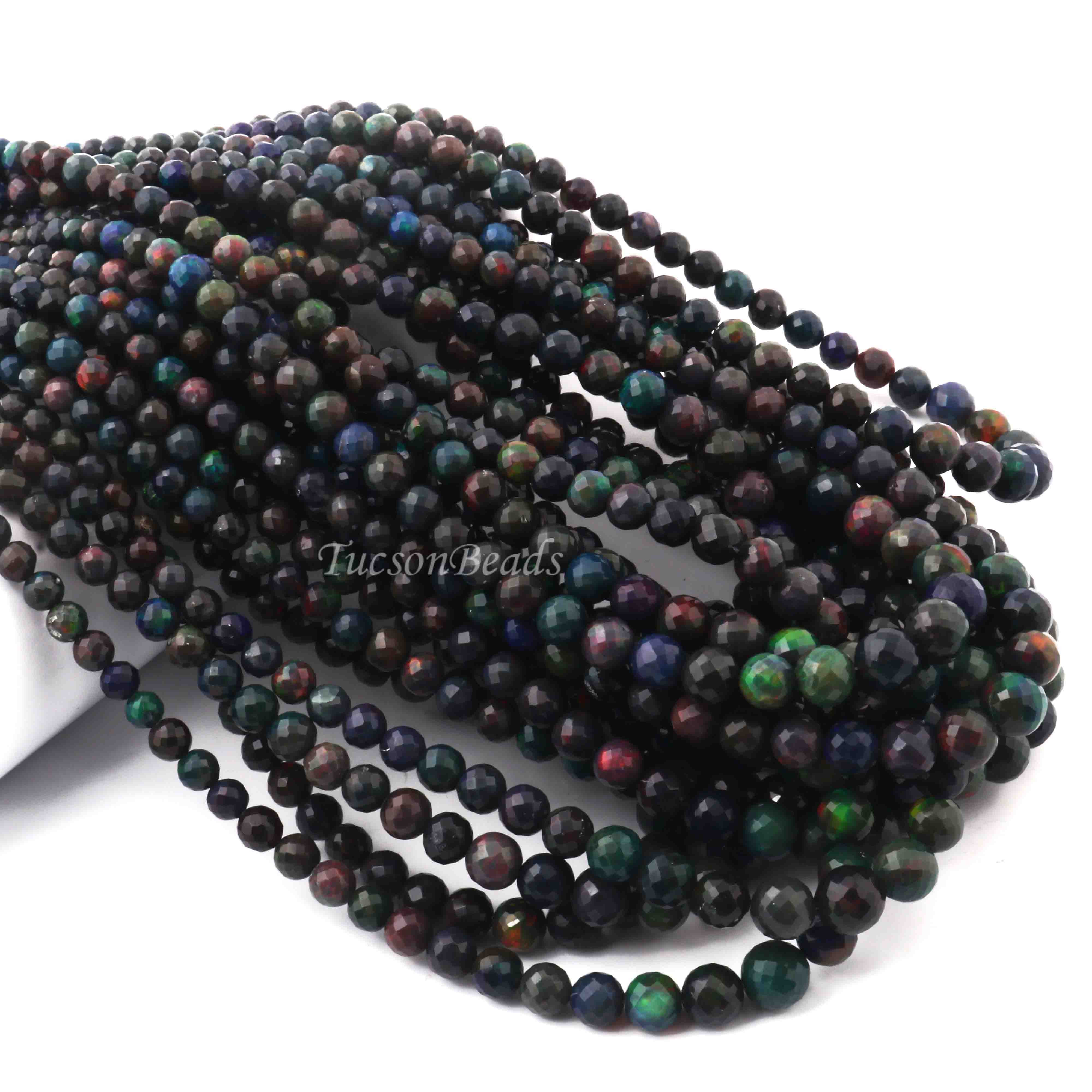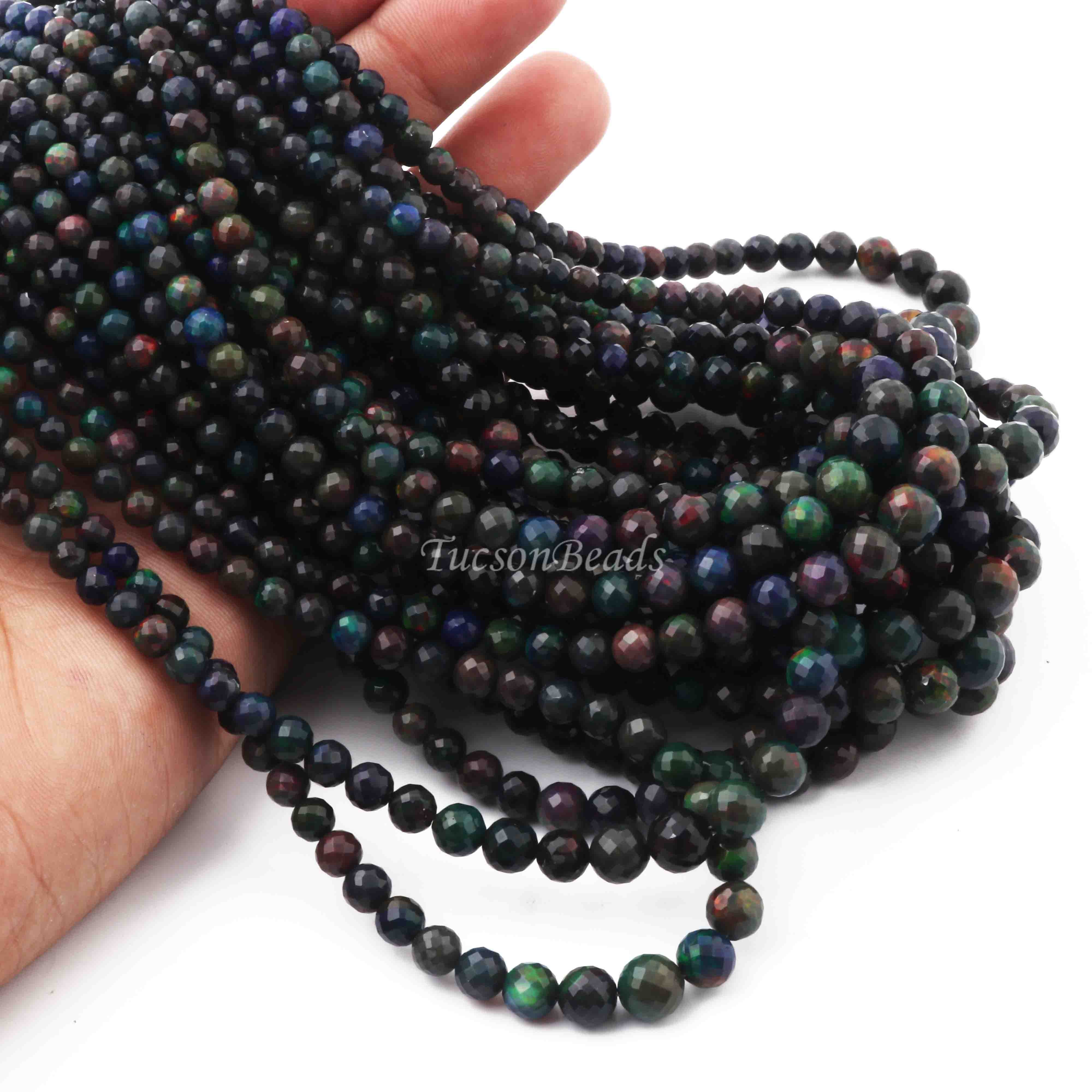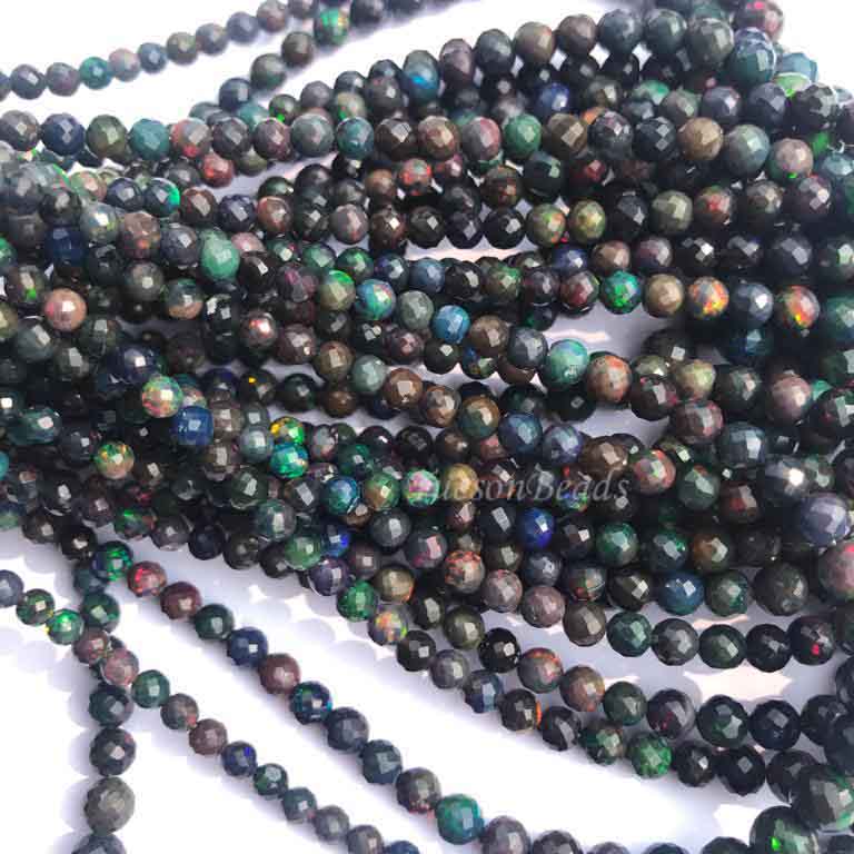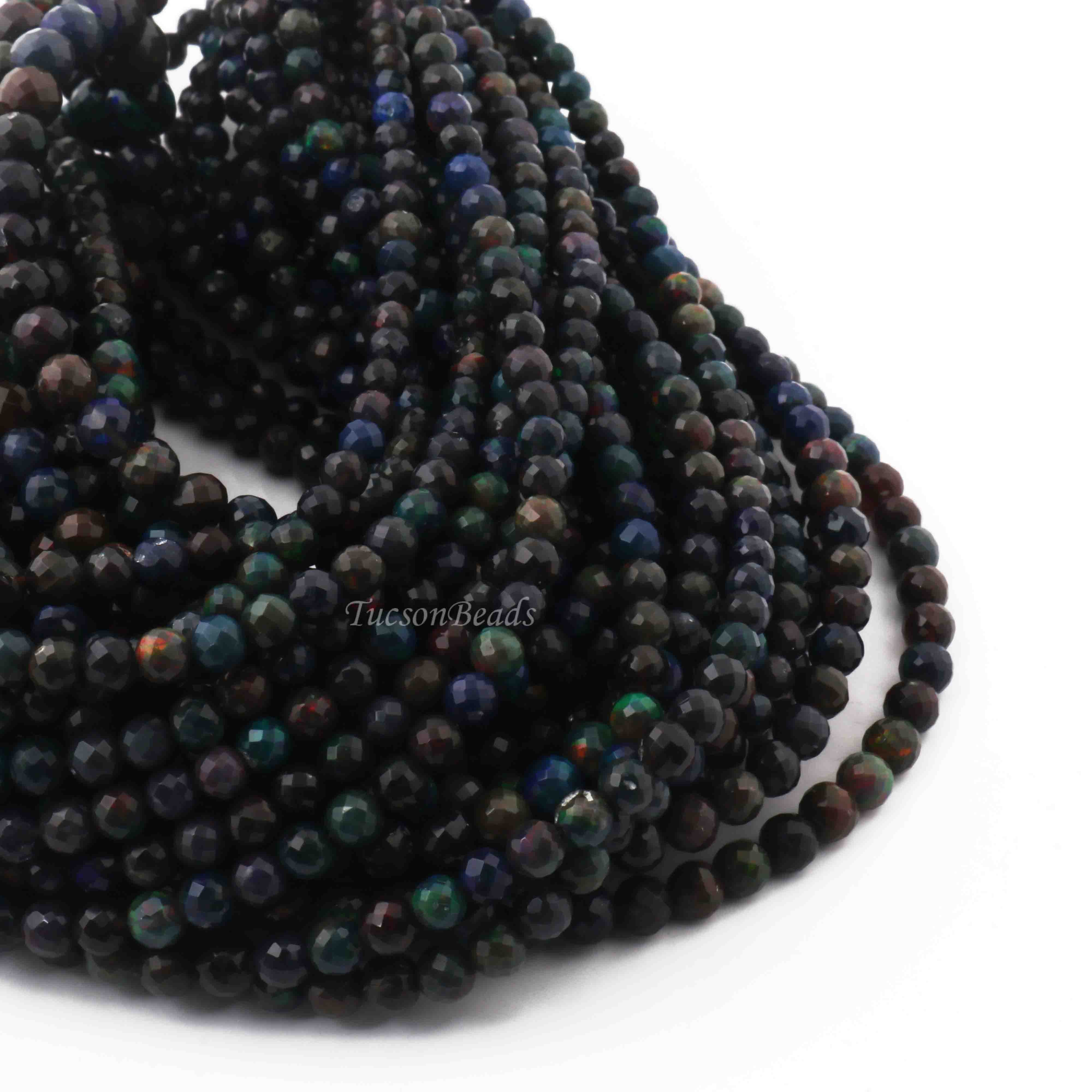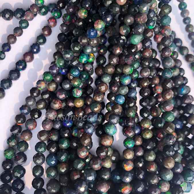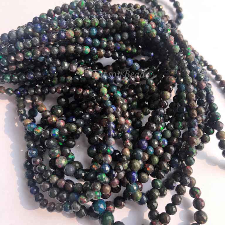 17 Inches Long strand Black Ethiopian Opal Faceted Rondelles
