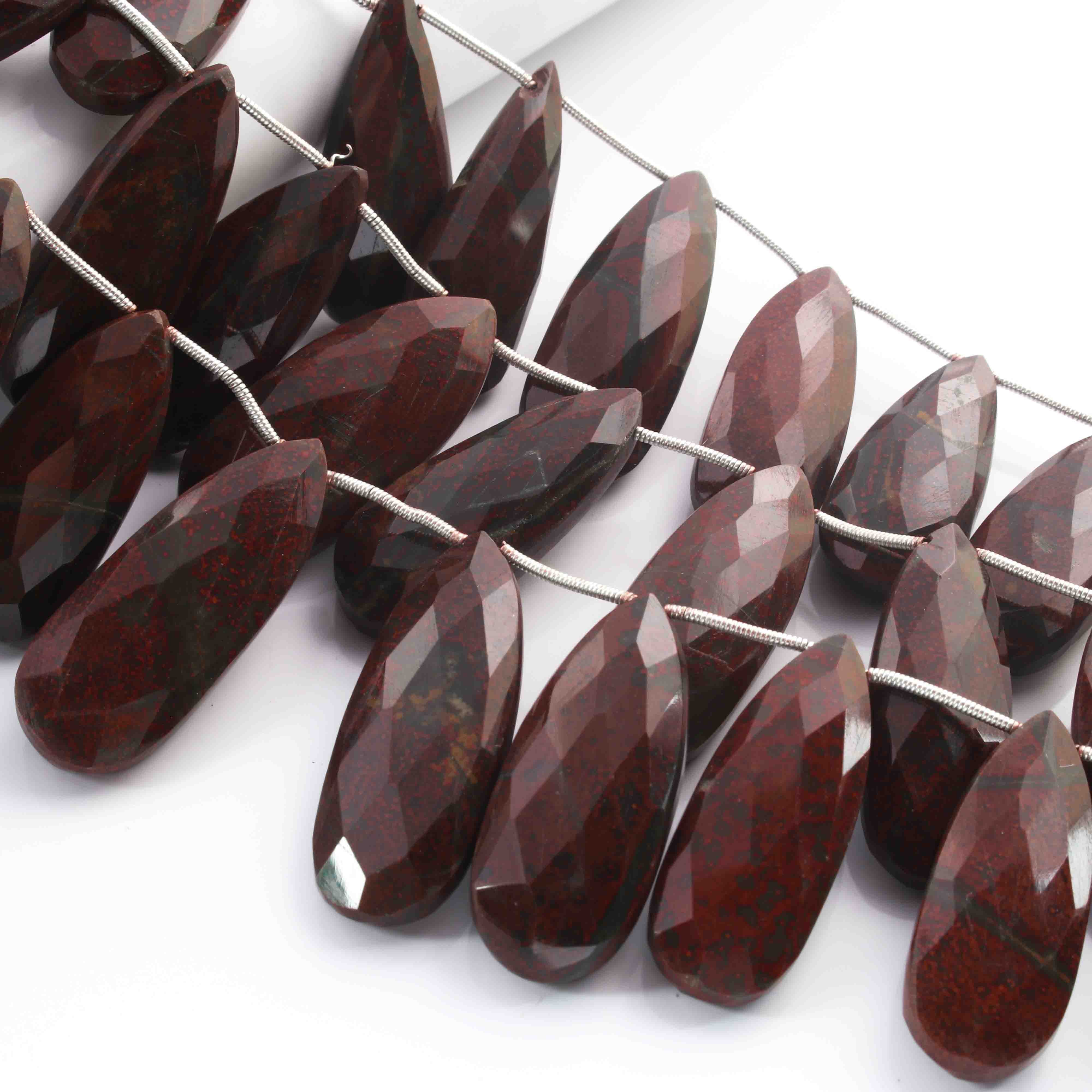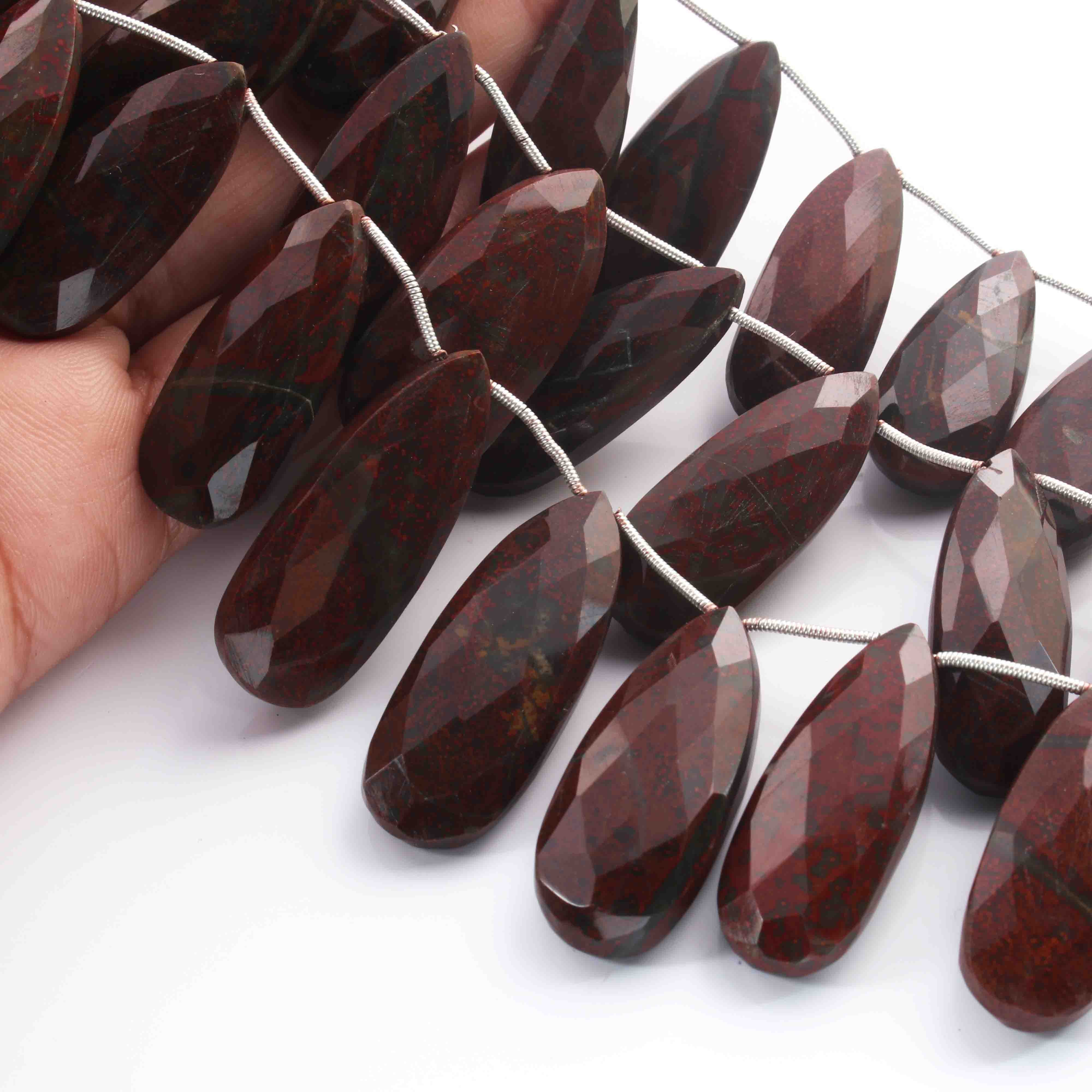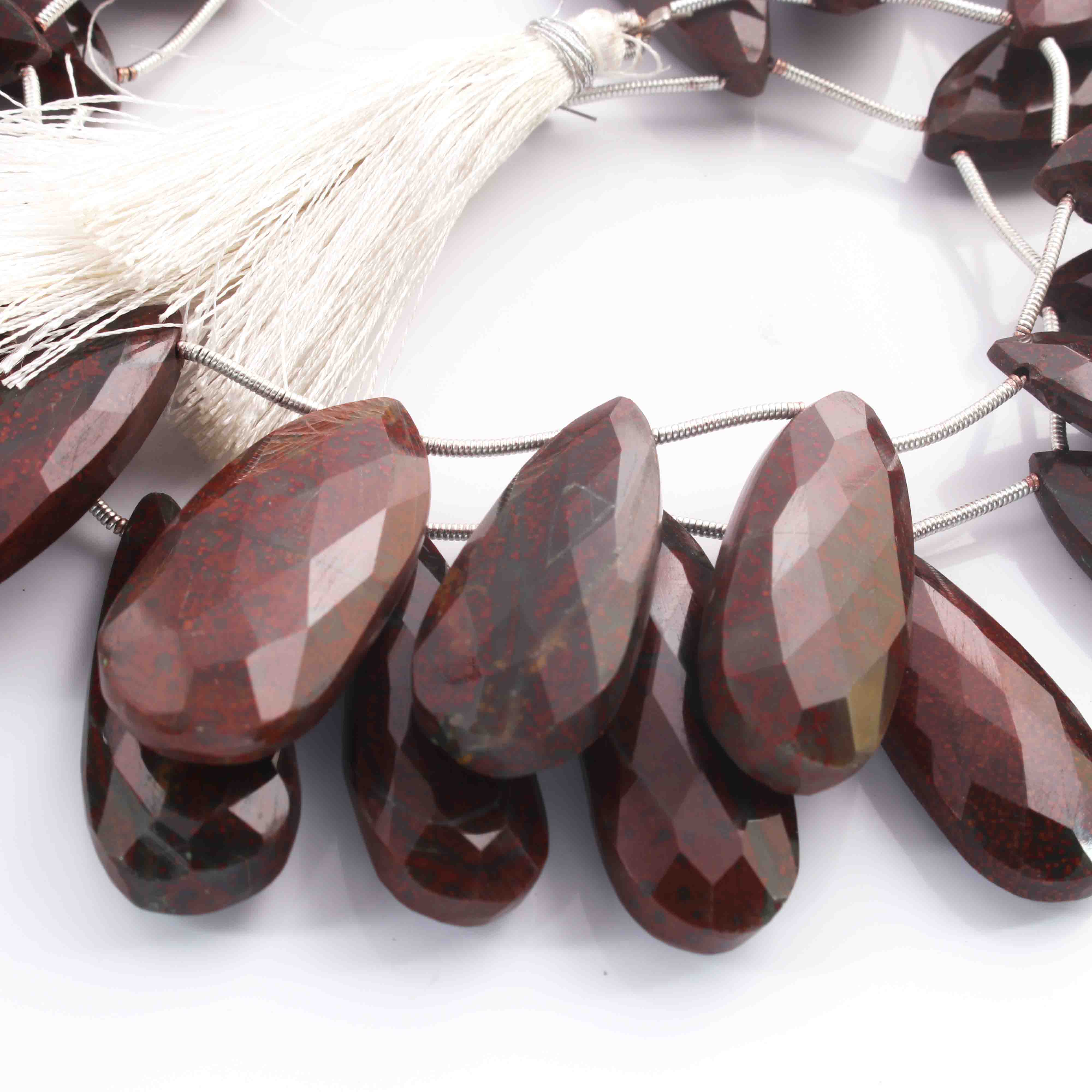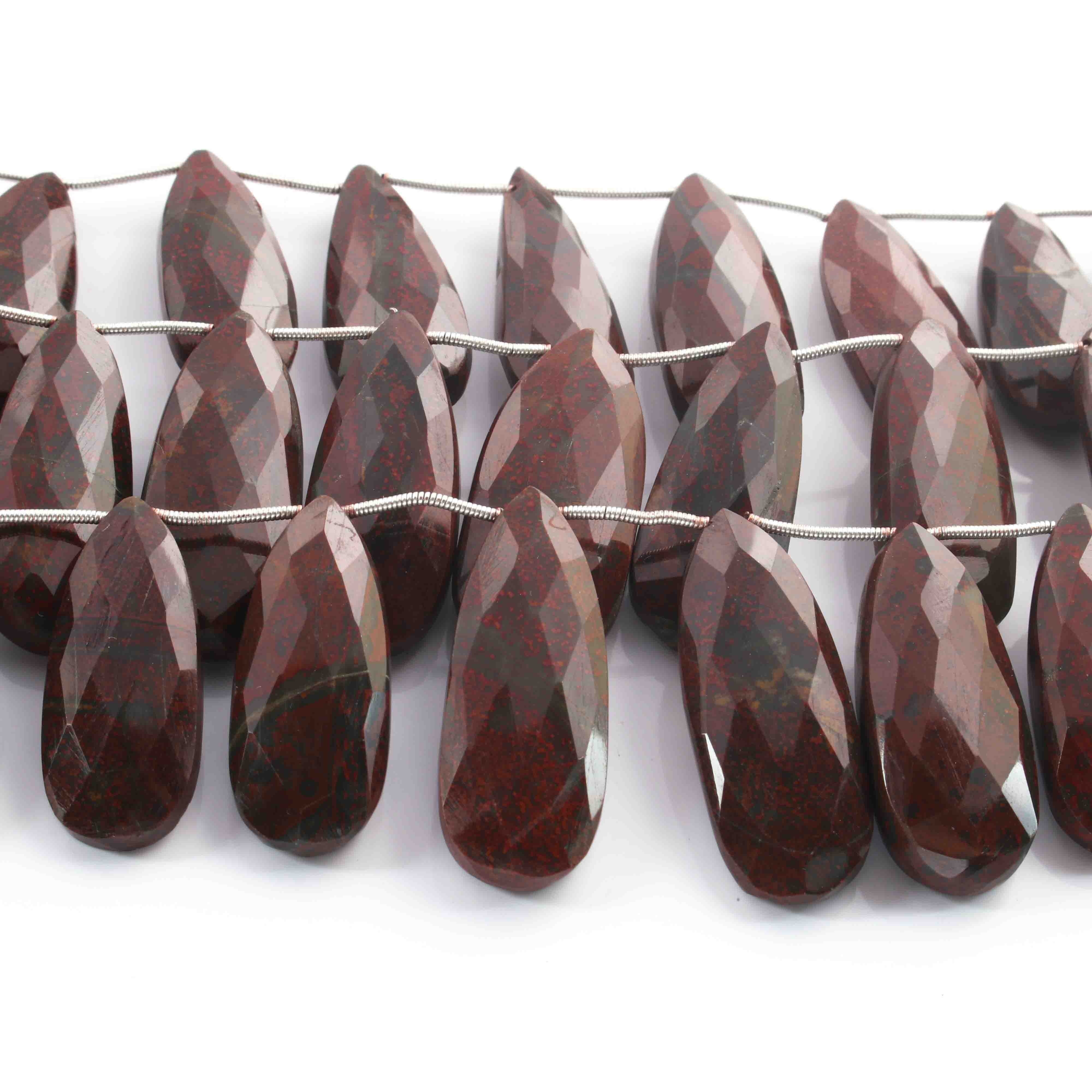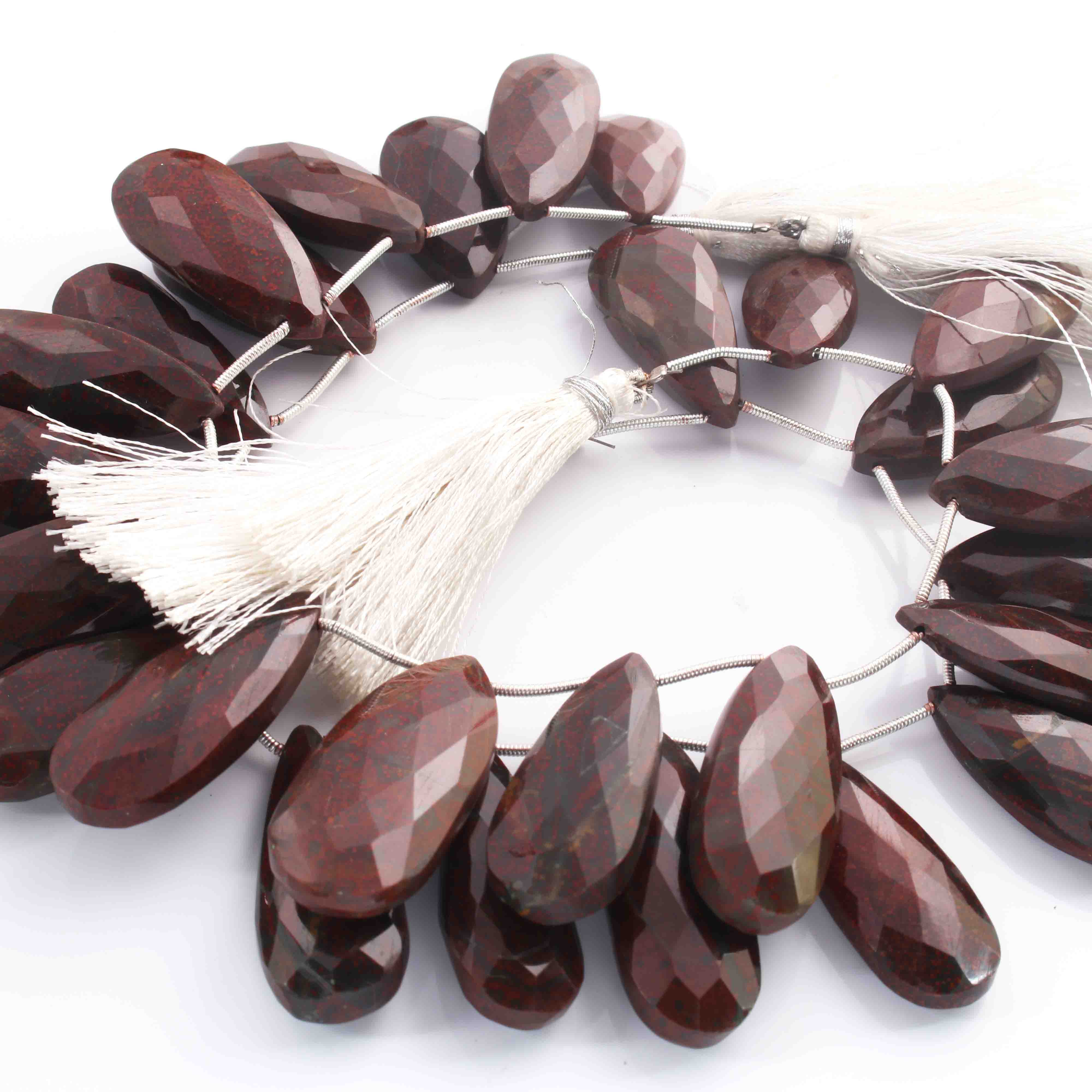1  Long Strand  Brown Jasper Faceted Briolettes - Pear Shape Briolettes -22mmx11mm-30mmx13mm - 9.5 Inches BR01495
