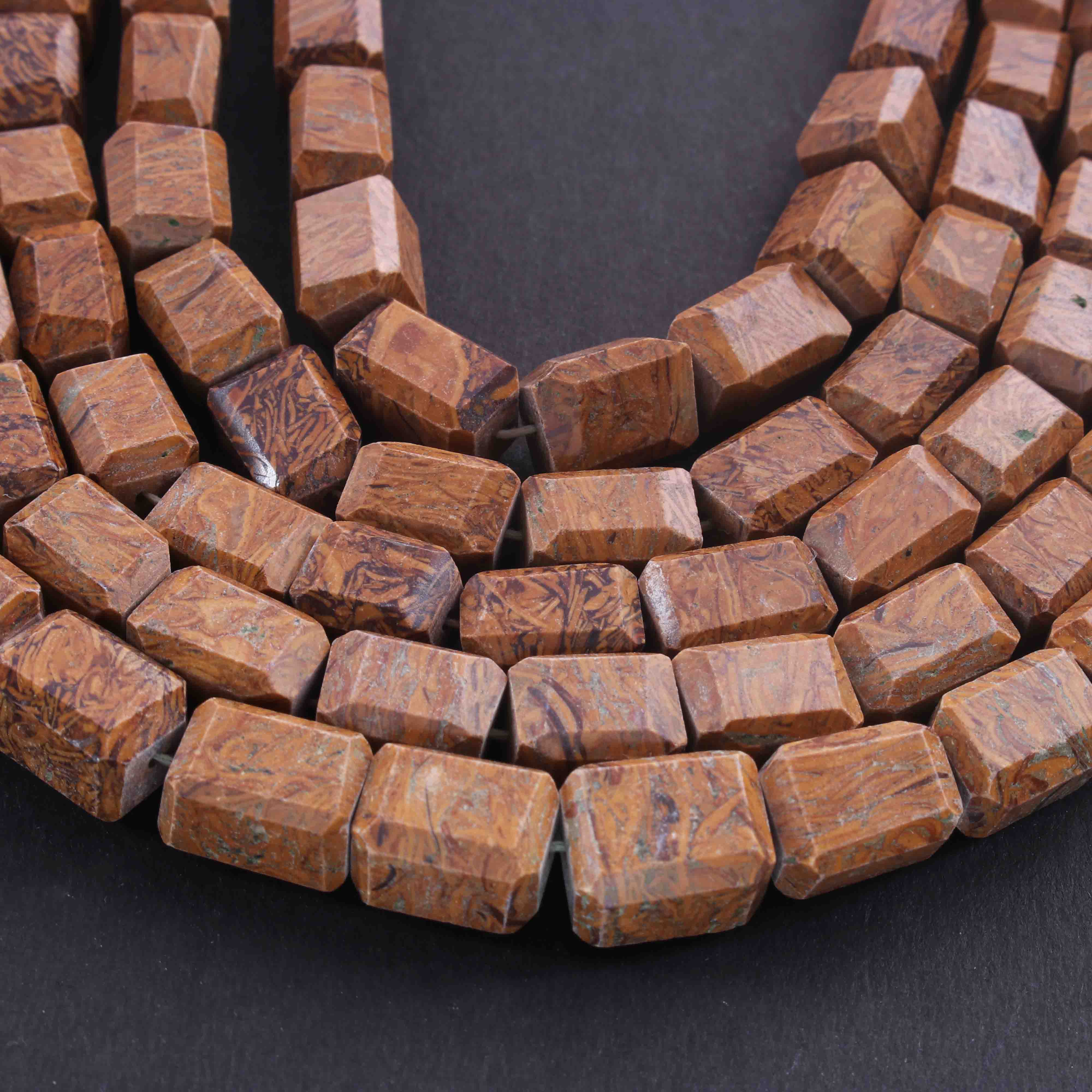 1 Long Strand Brown Jasper Faceted Tumbled Shape, Nuggets Beads , Step Cut , Briolettes - 11mmx9mm-13mmx10mm- 9.5 inches BR01431