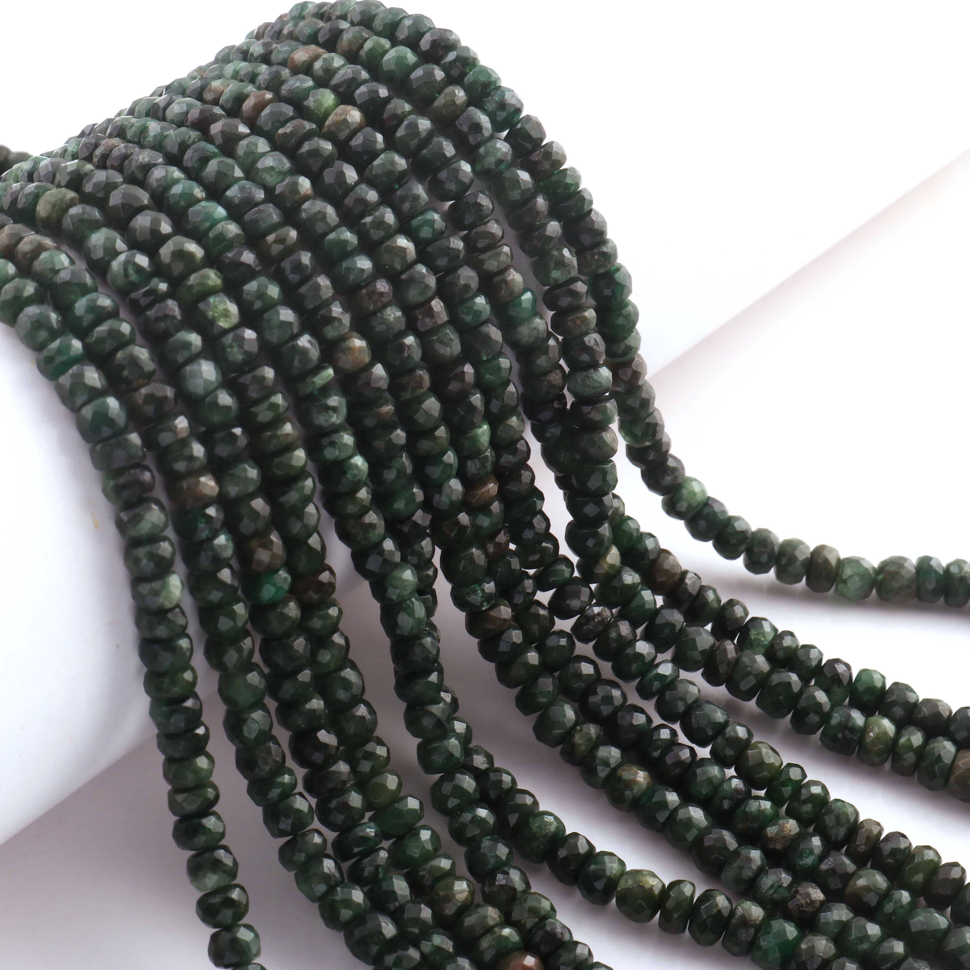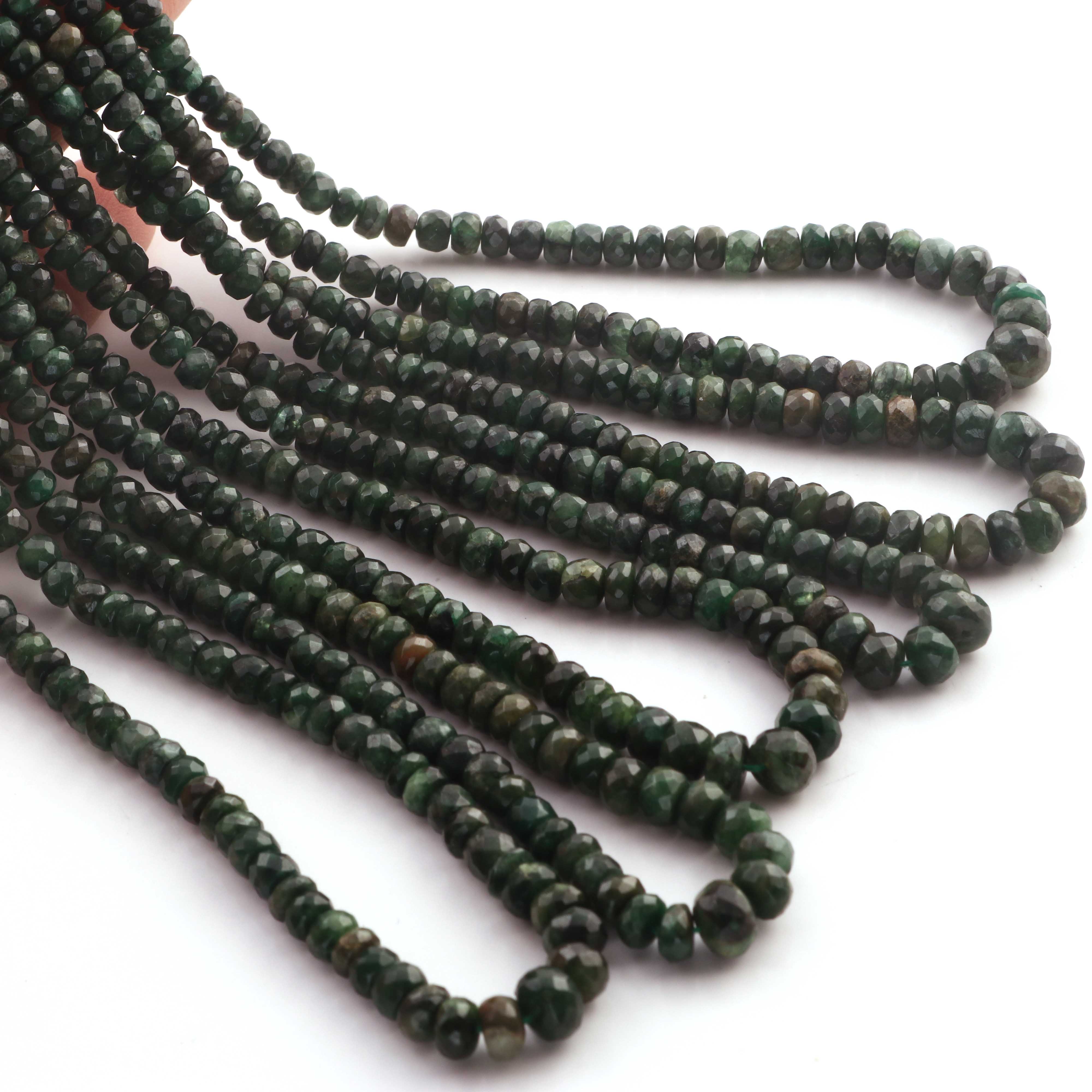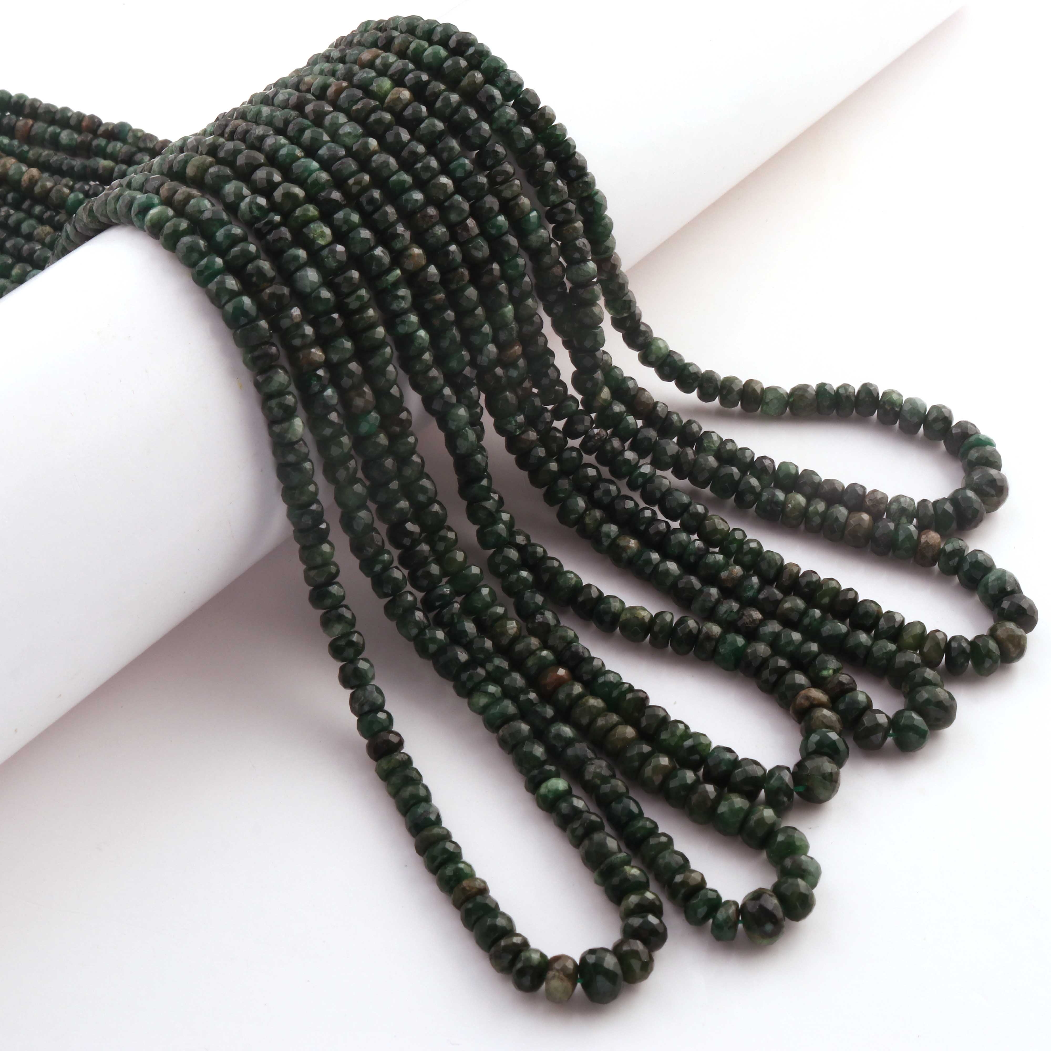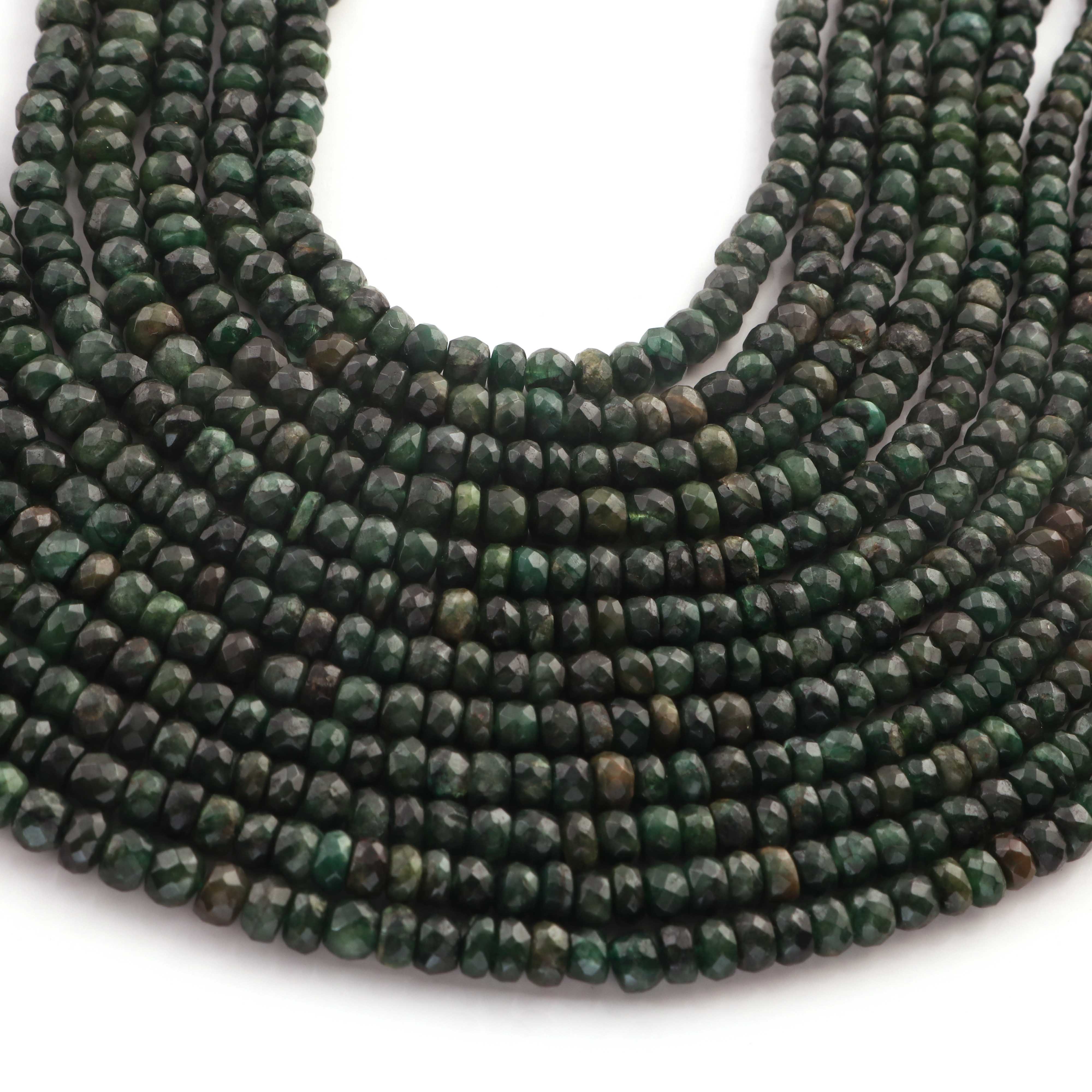 1 Long Strand Emerald Faceted Rondelles - Semi Precious Gemstone Rondelles Beads-3mm-6mm-16.5 Inches BR03216