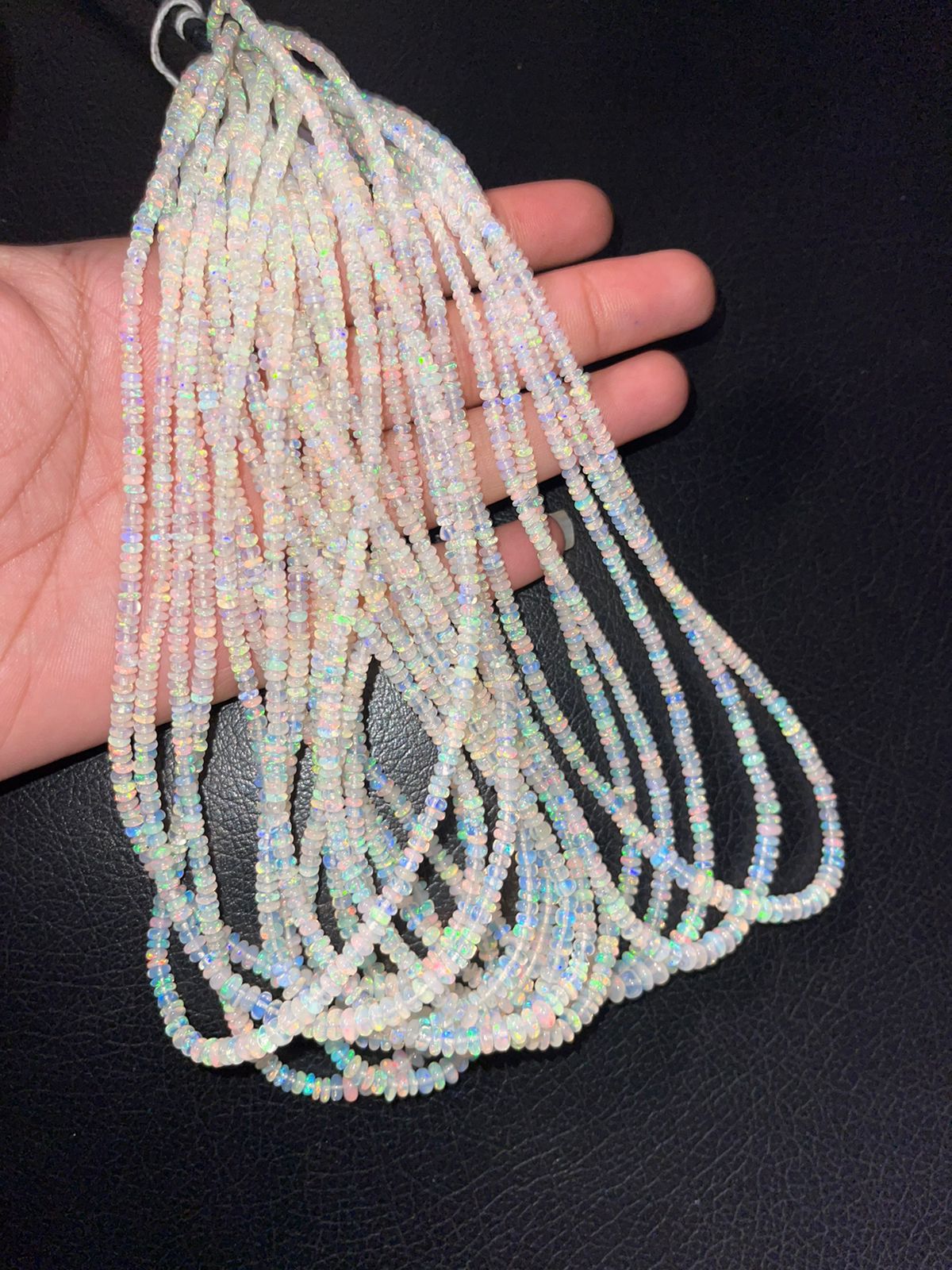 1 Long Strand Ethiopian Welo Opal Smooth Rondelles - Ethiopian Roundelles Beads 3mm-5mm 16 Inches BR03179