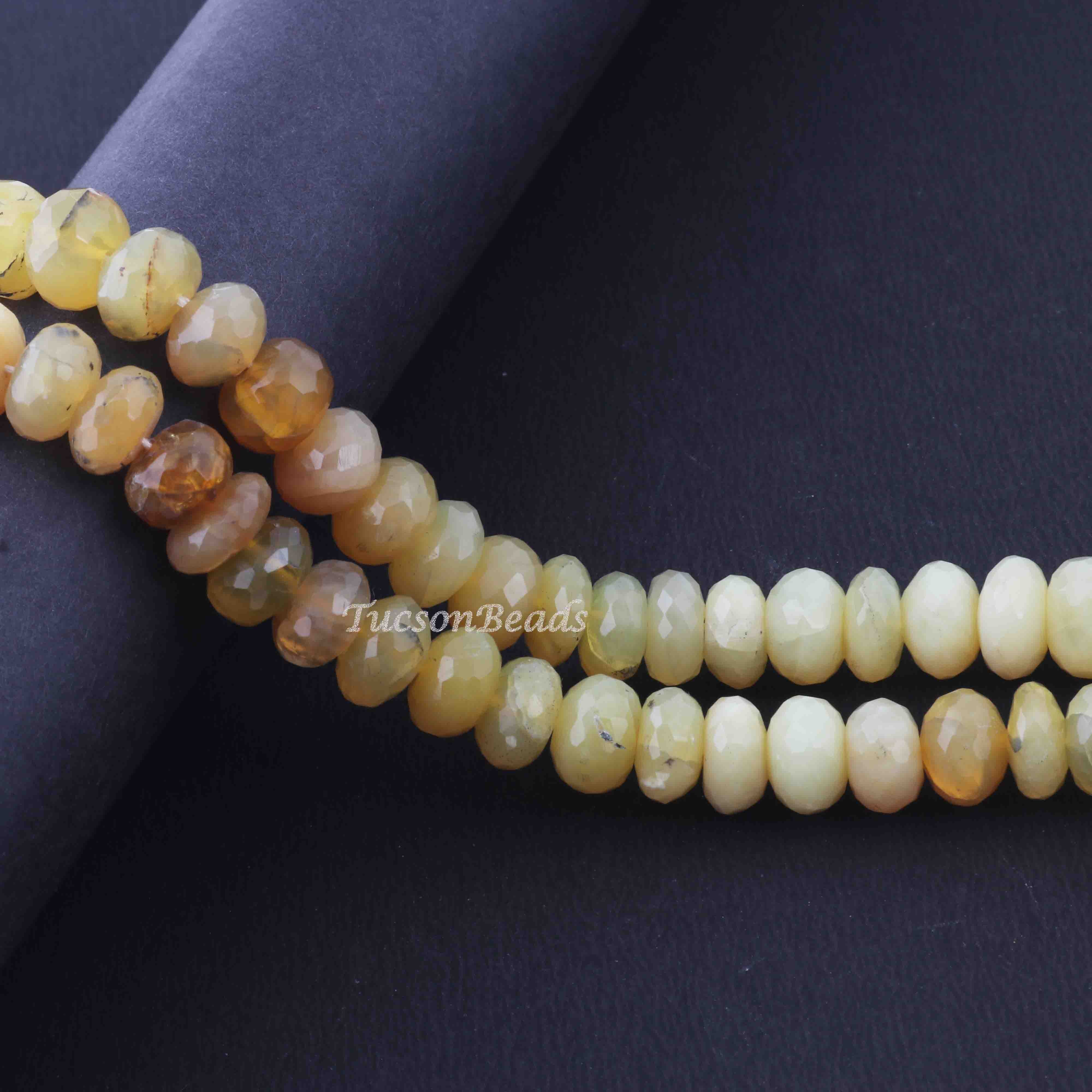 1 Long Strand Shaded Yellow opal Faceted Roundels - Round Shape Roundels 9mm-10mm -14.5 Inches BR3036