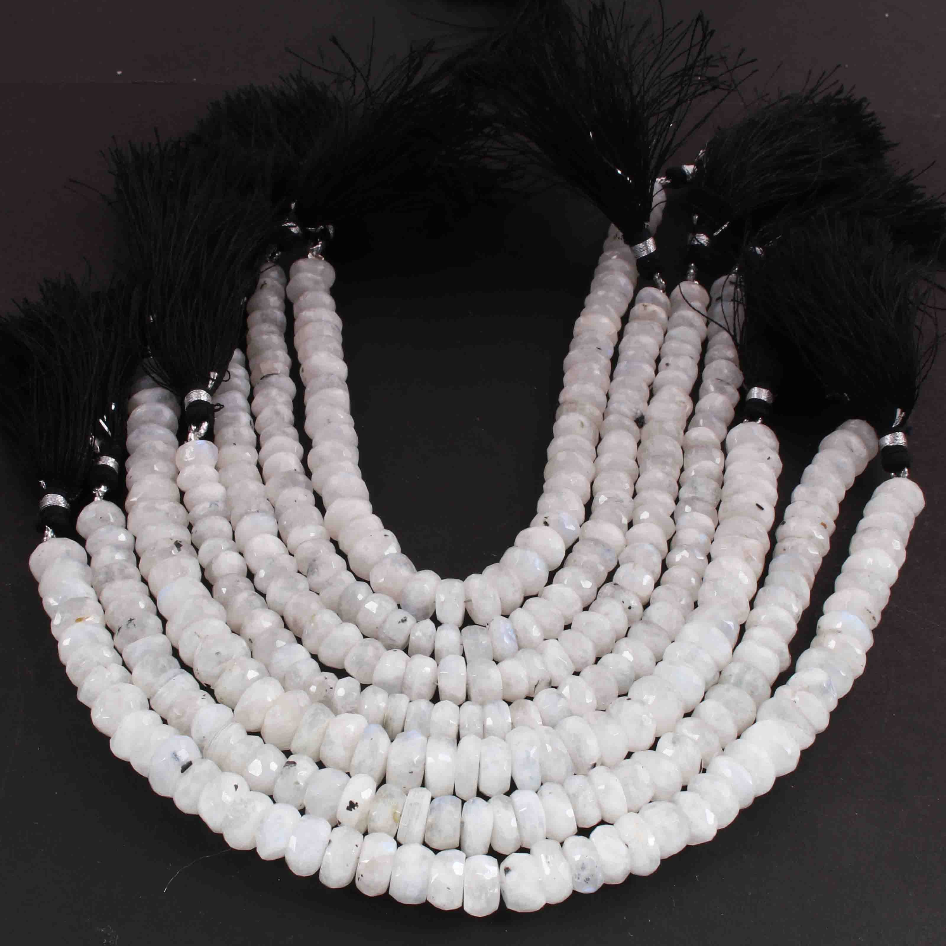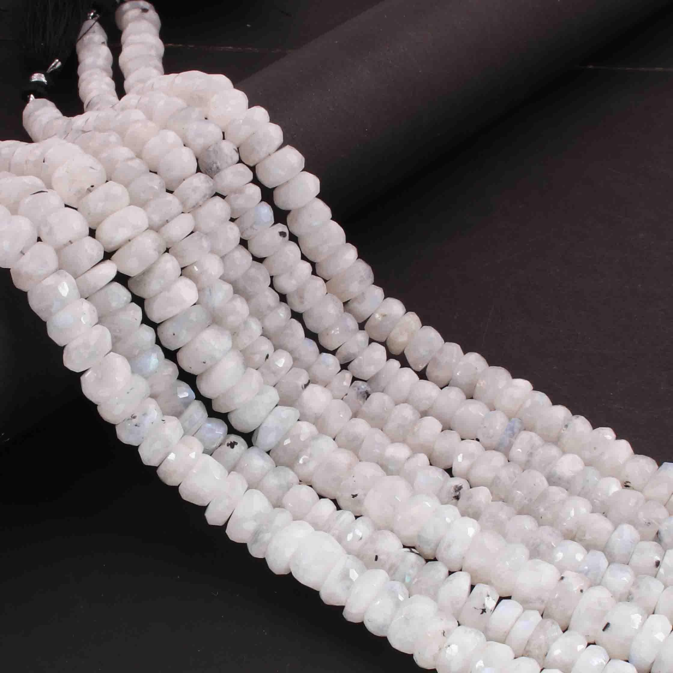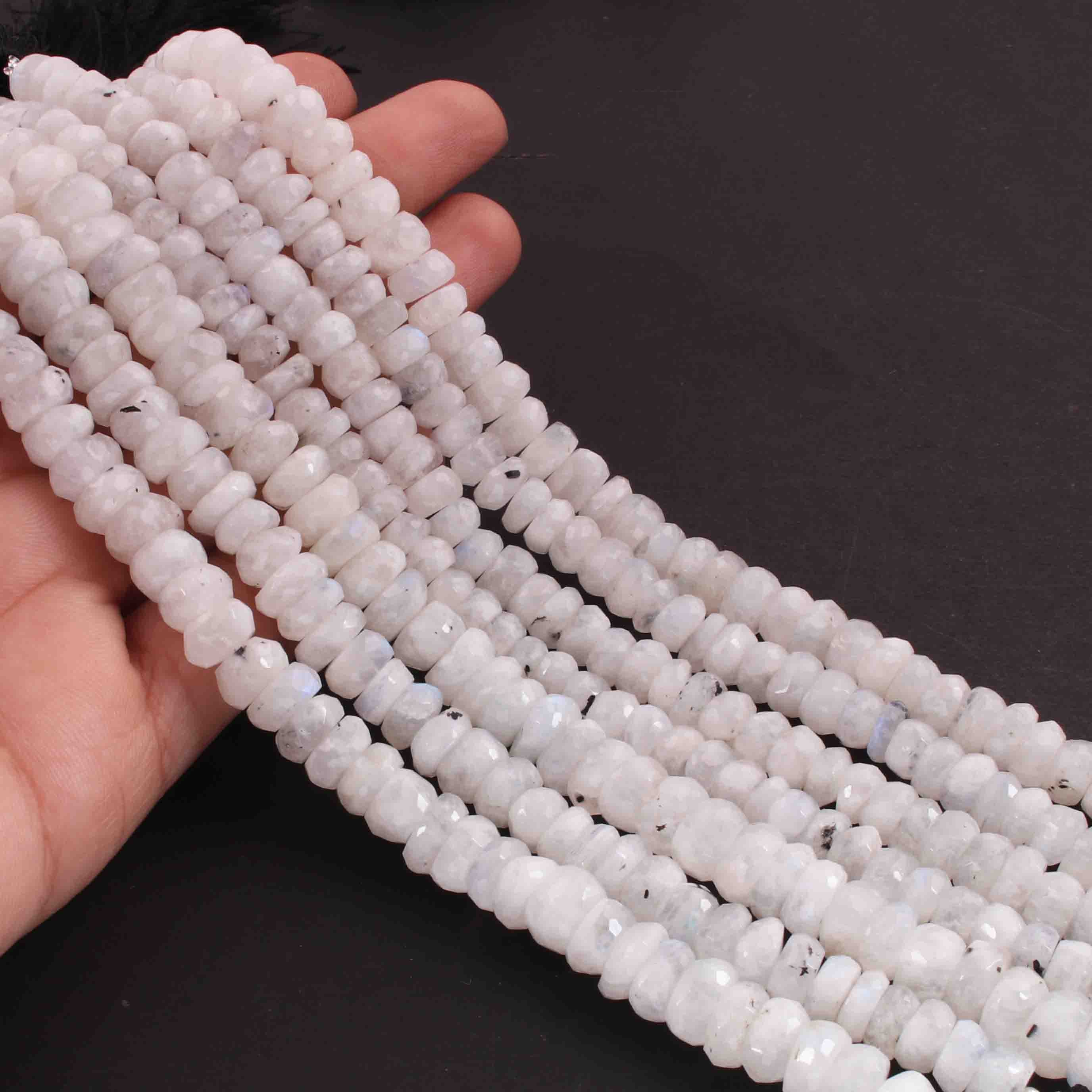 1 Long Strand White Rainbow Moonstone Faceted Rondelles - 7mm-13mm -8 Inches BR02184