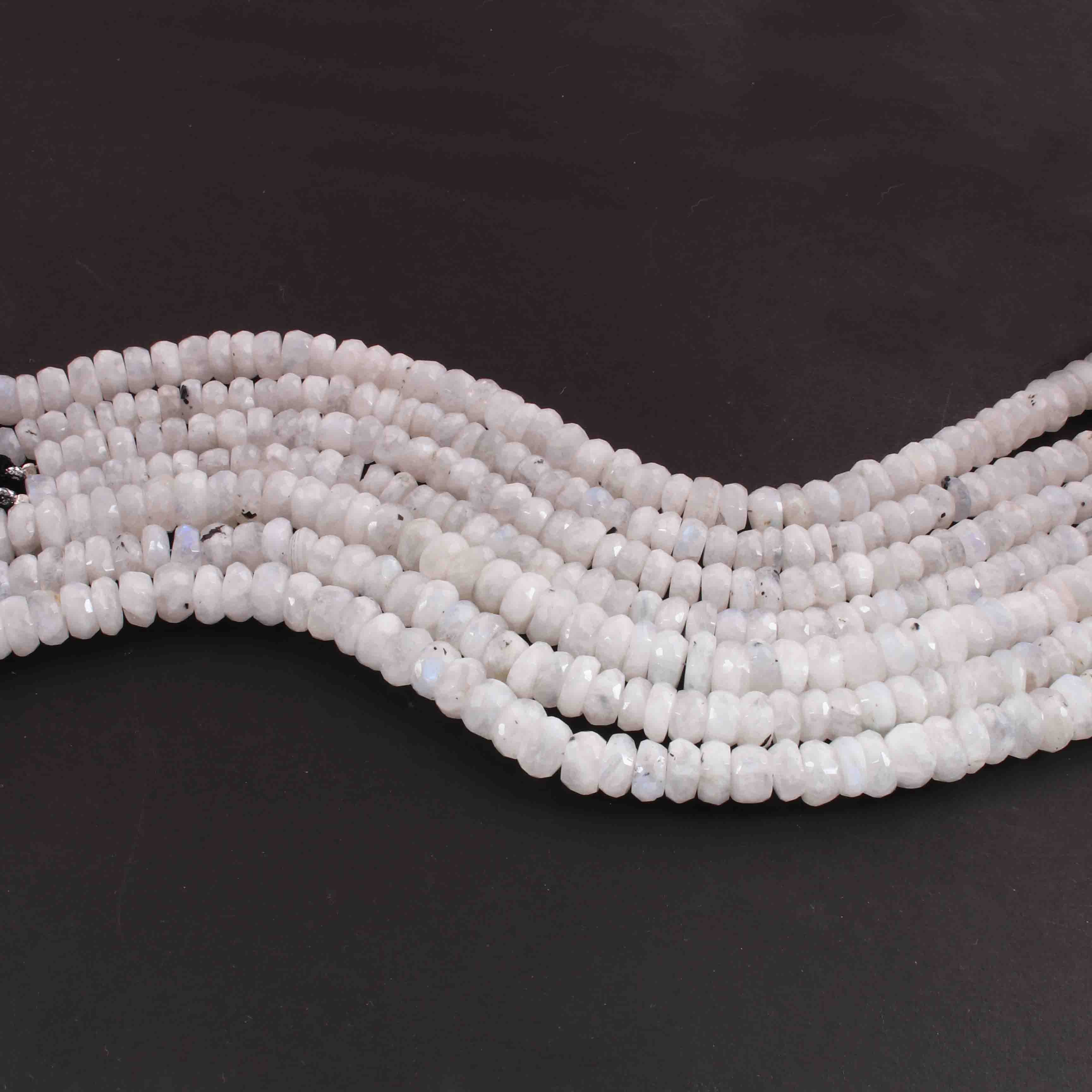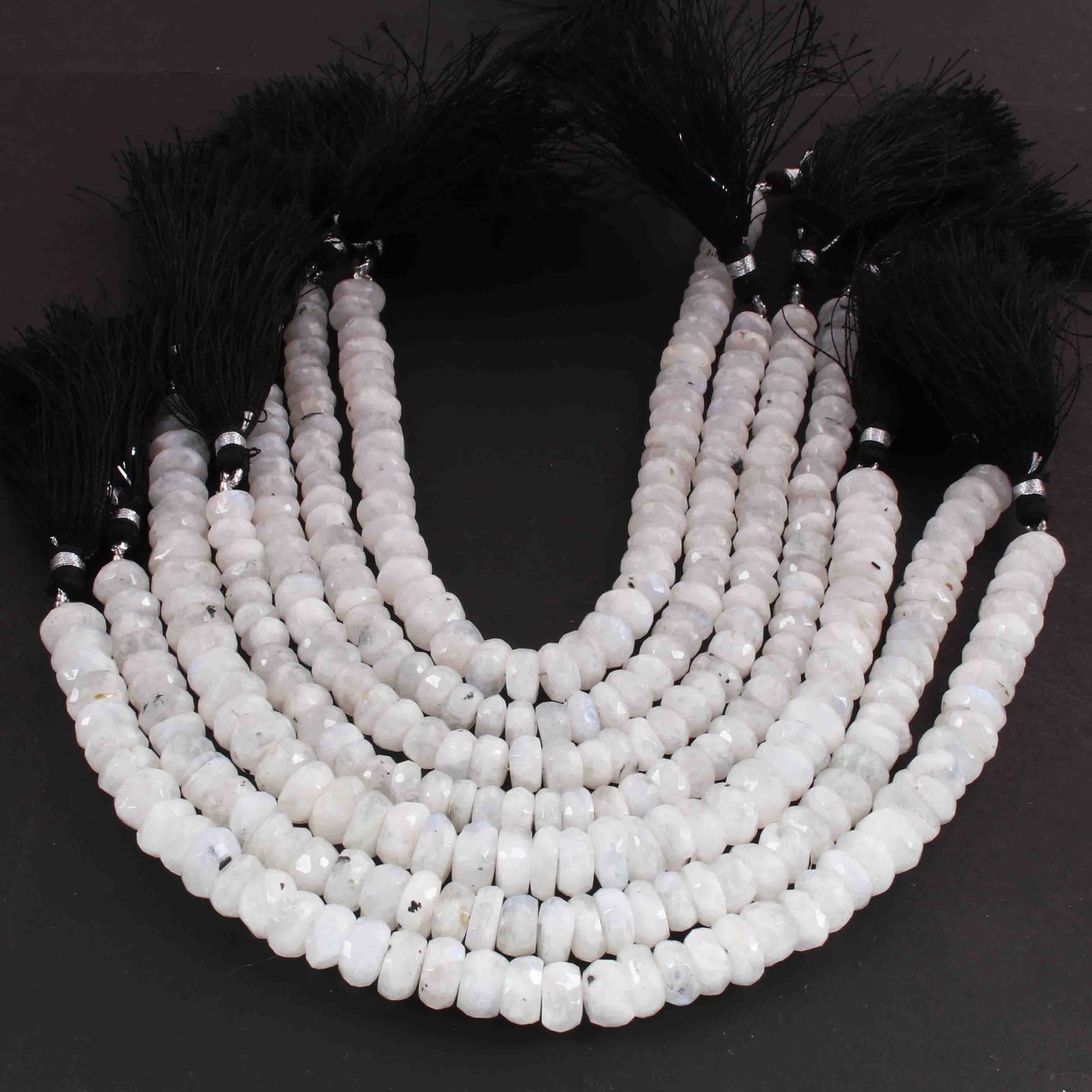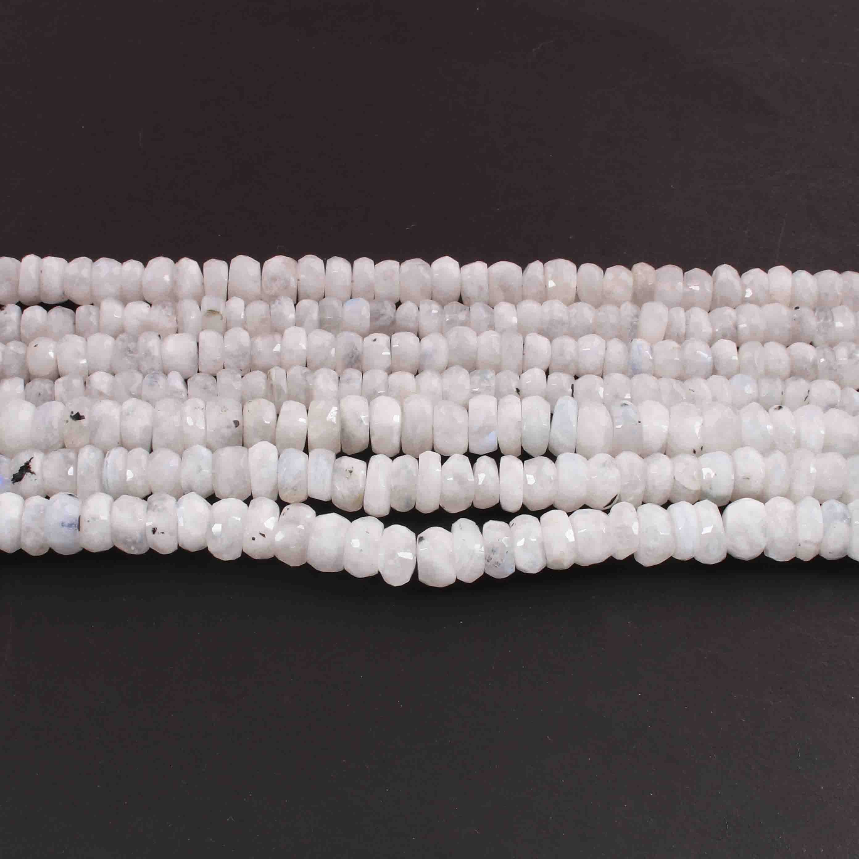 1 Long Strand White Rainbow Moonstone Faceted Rondelles - 7mm-13mm -8 Inches BR02184