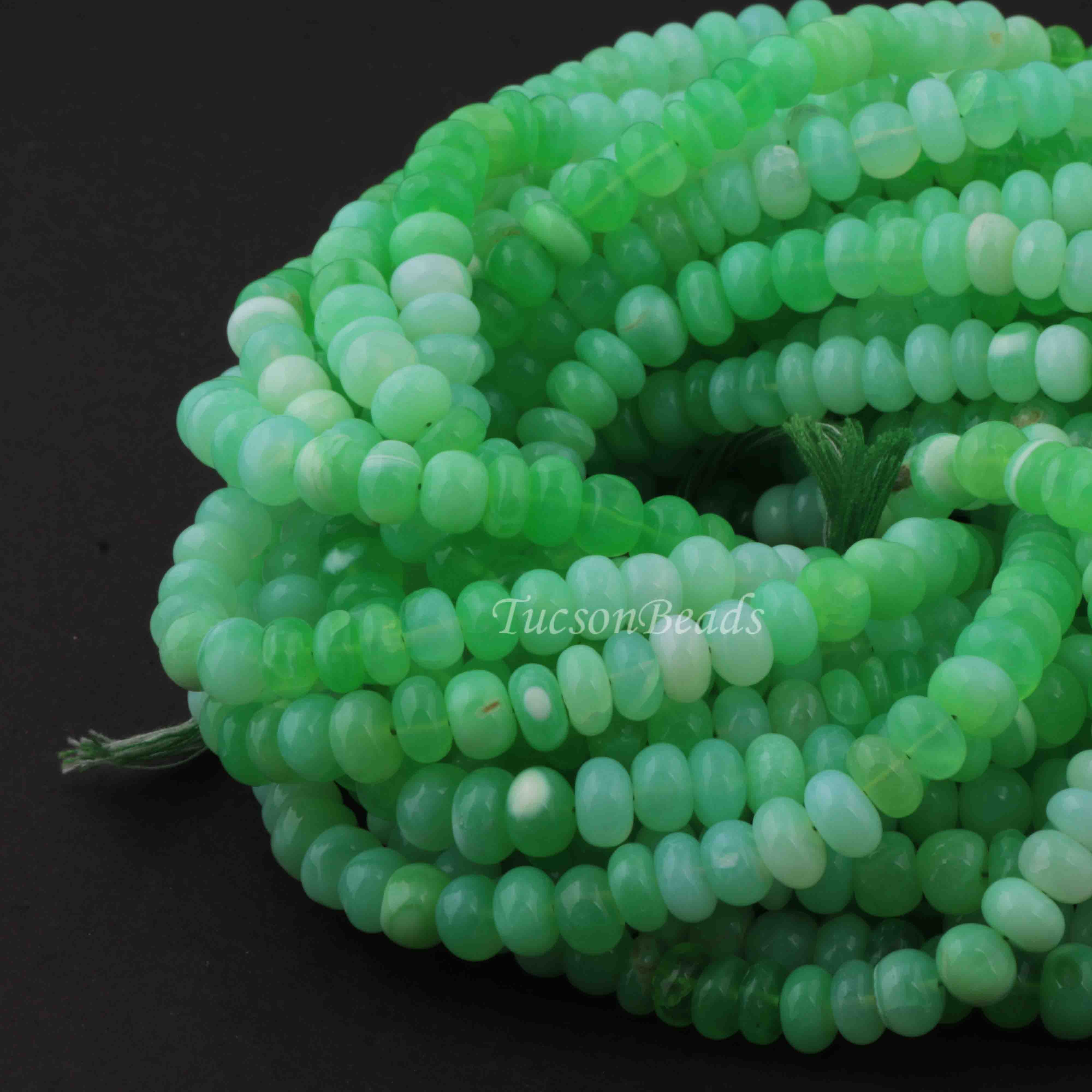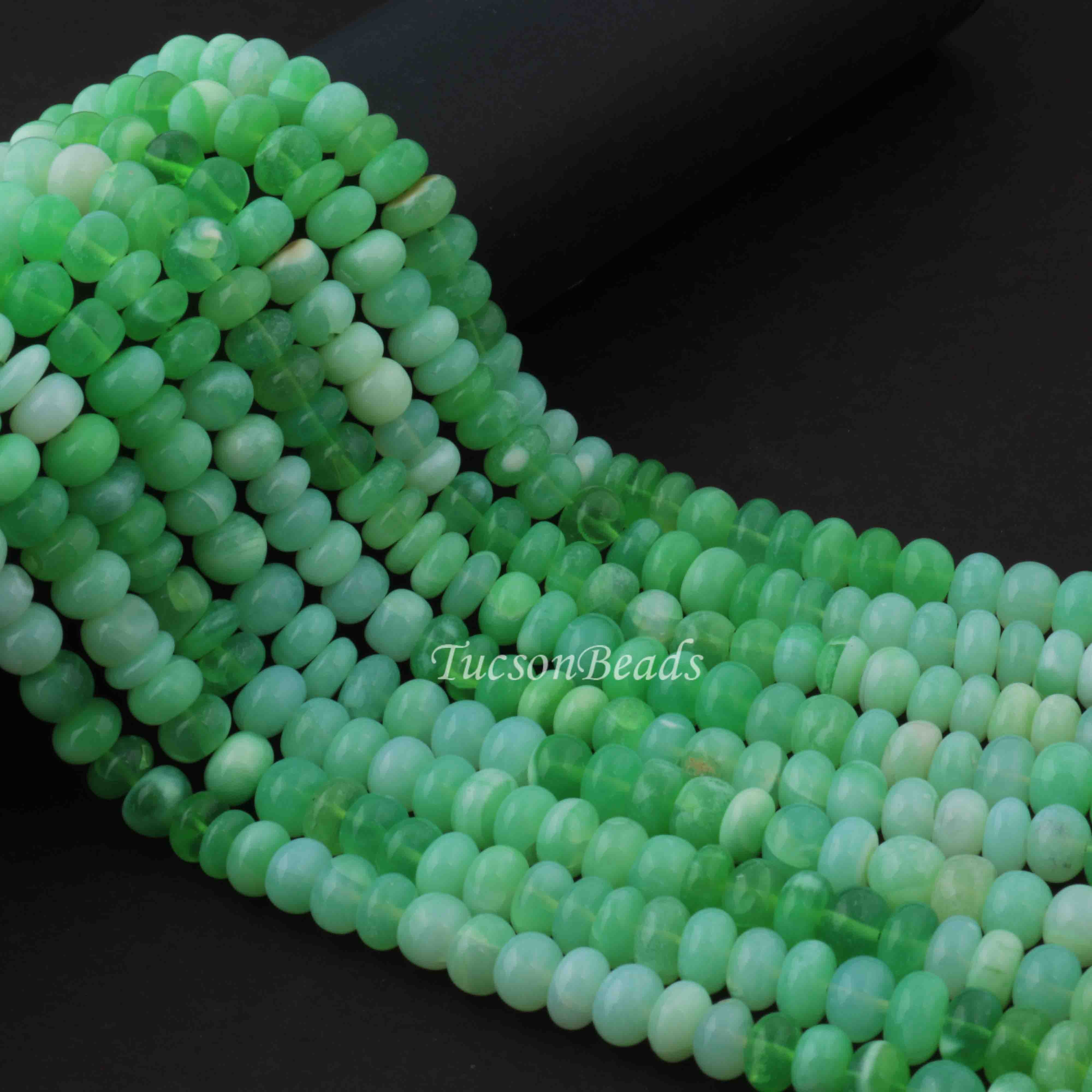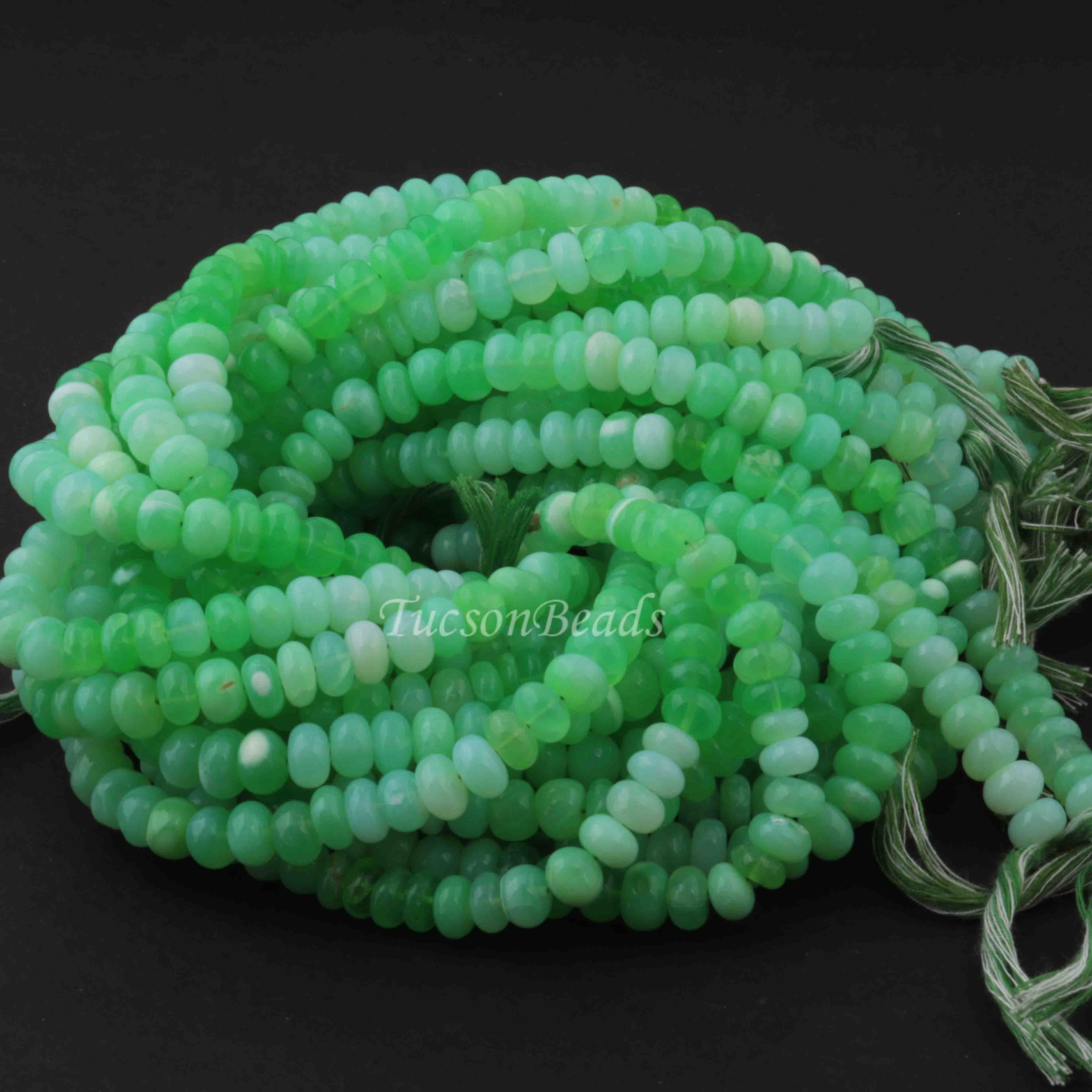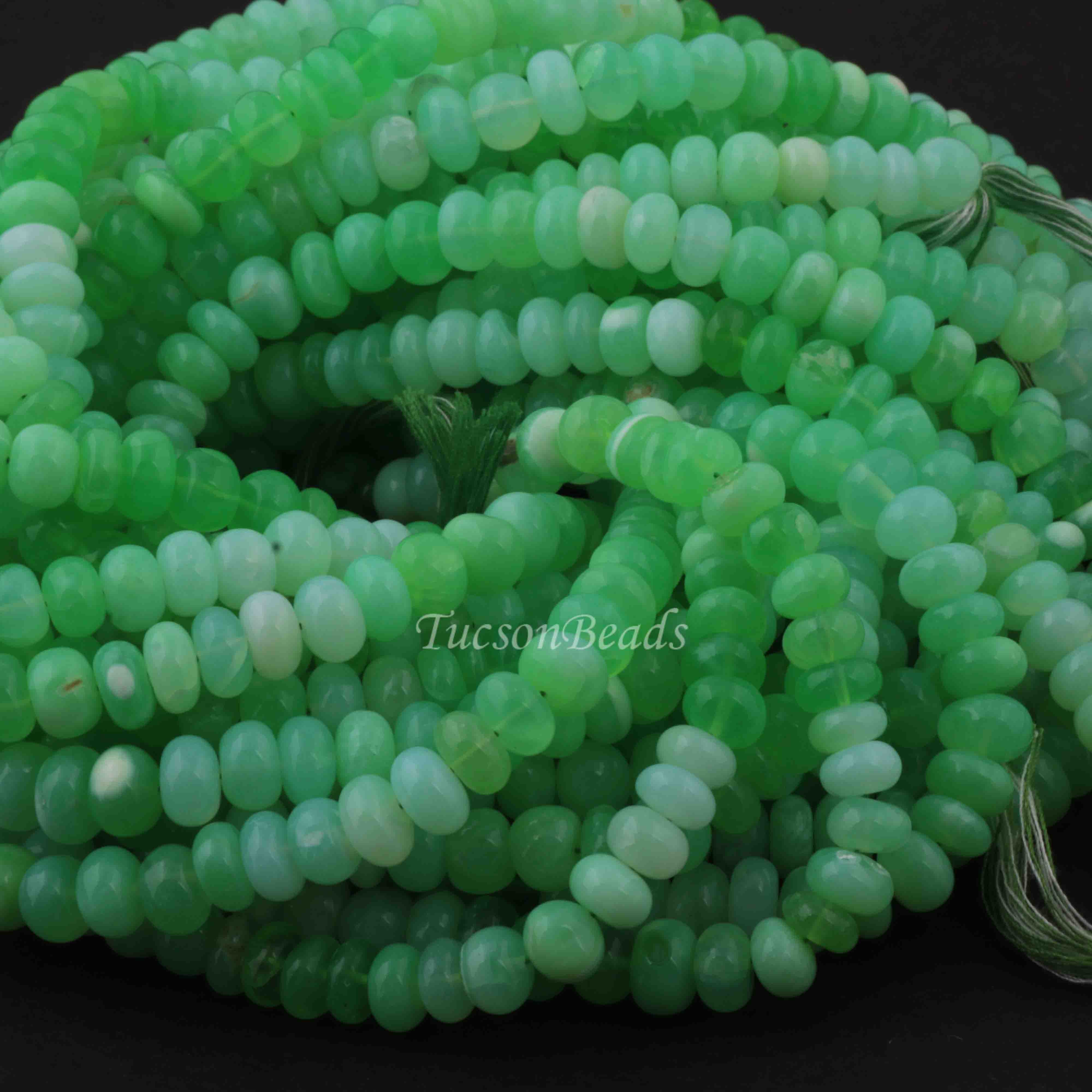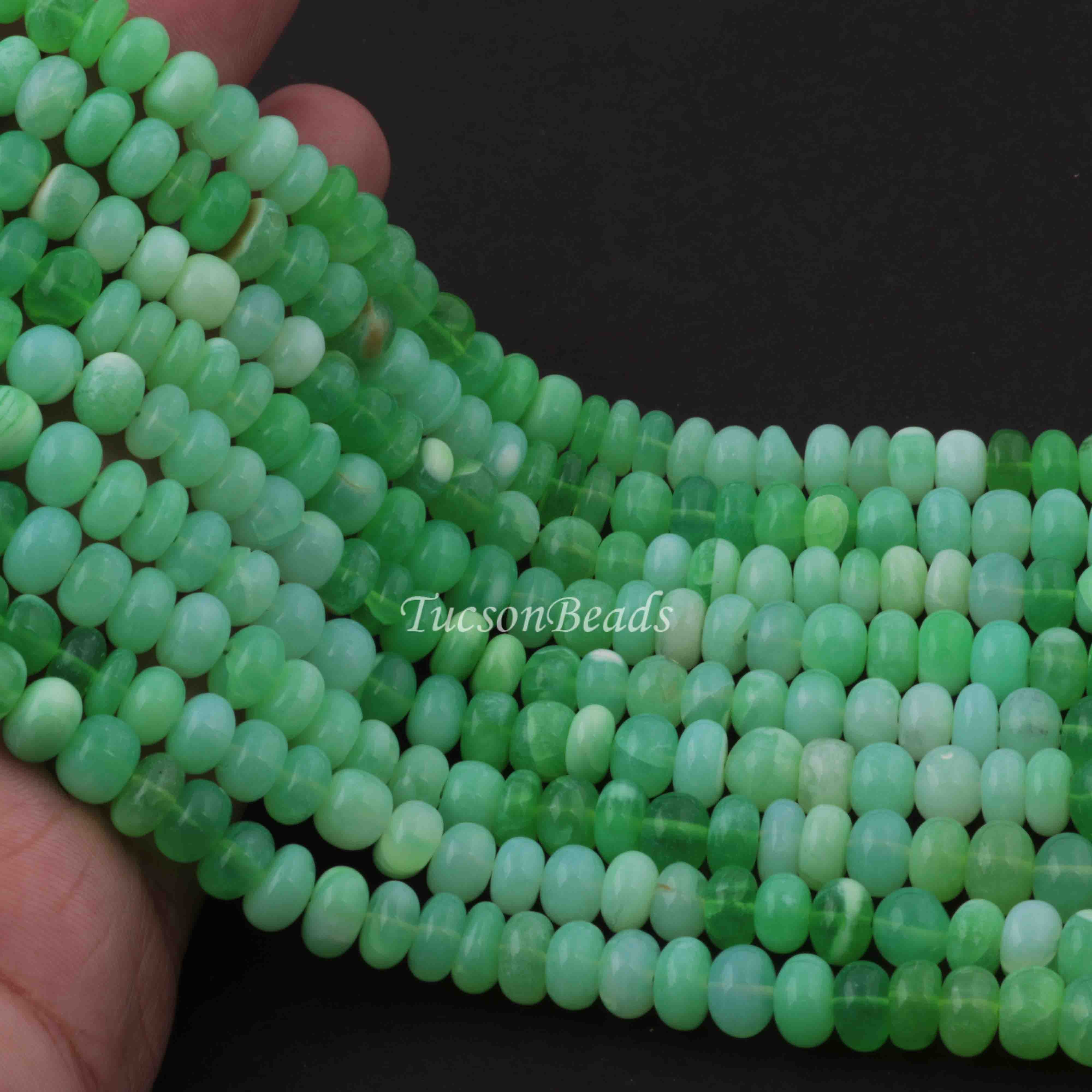 1 Long Strands Green Opal Smooth Rondelles - Green Opal Roundel Beads 7mm 14 Inches BR0217