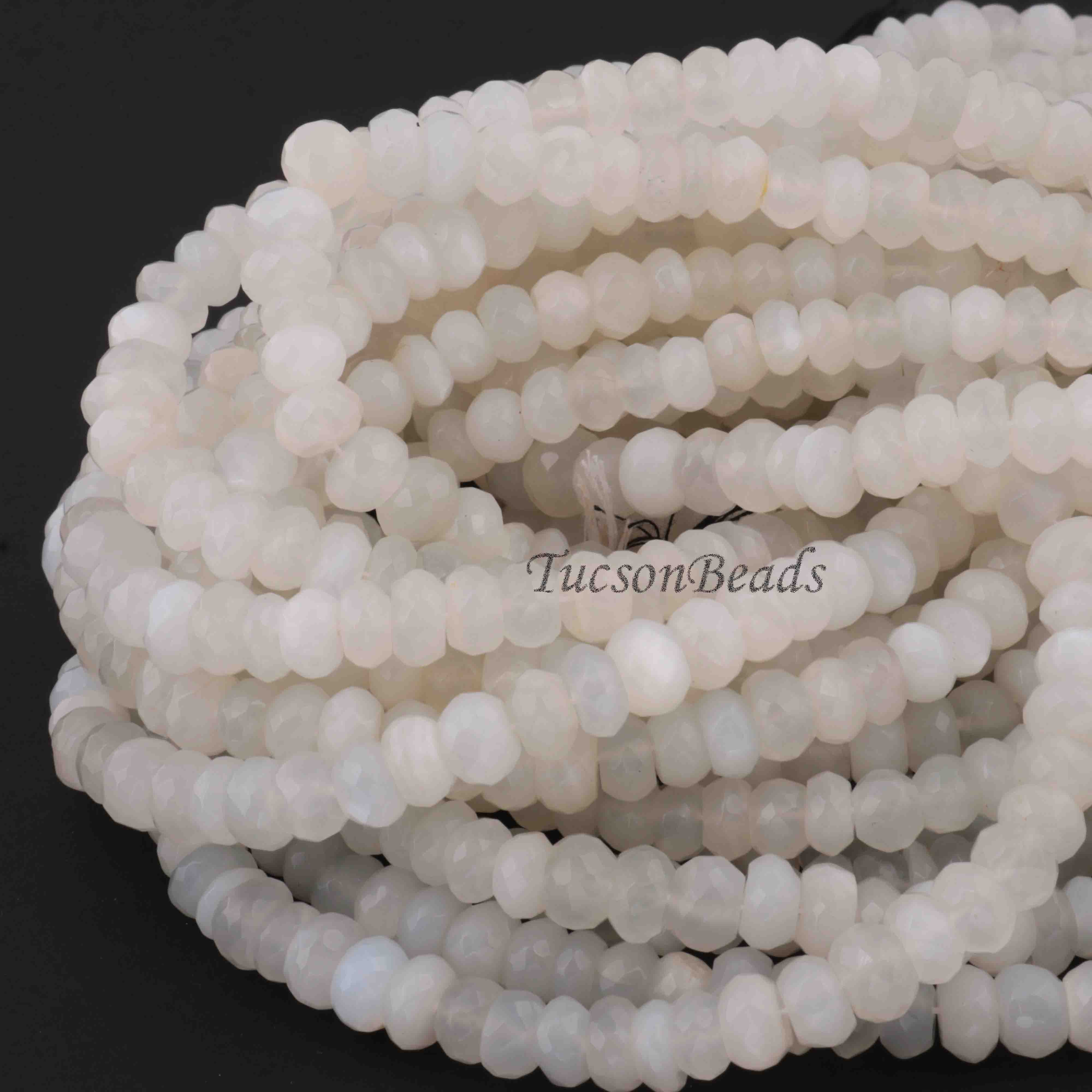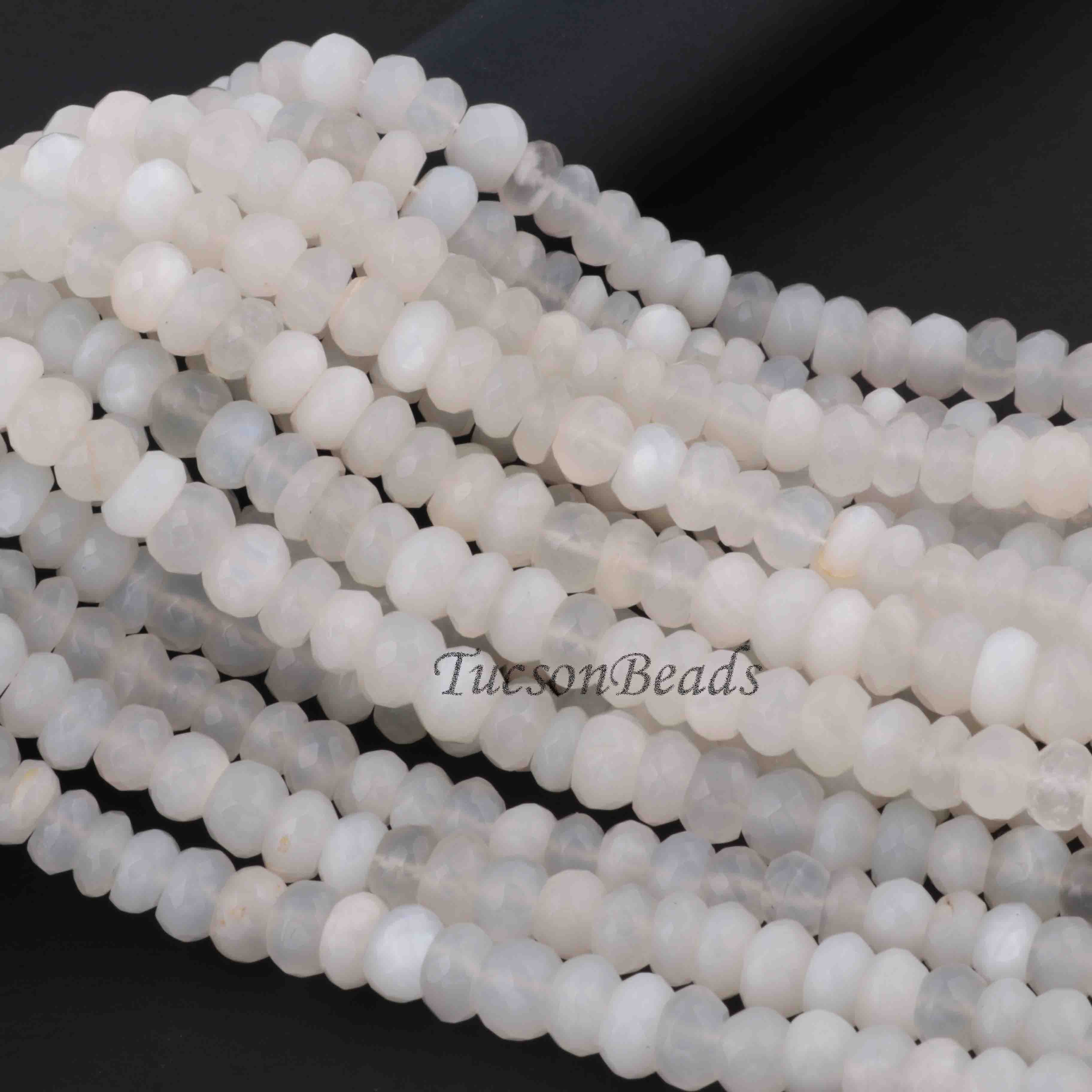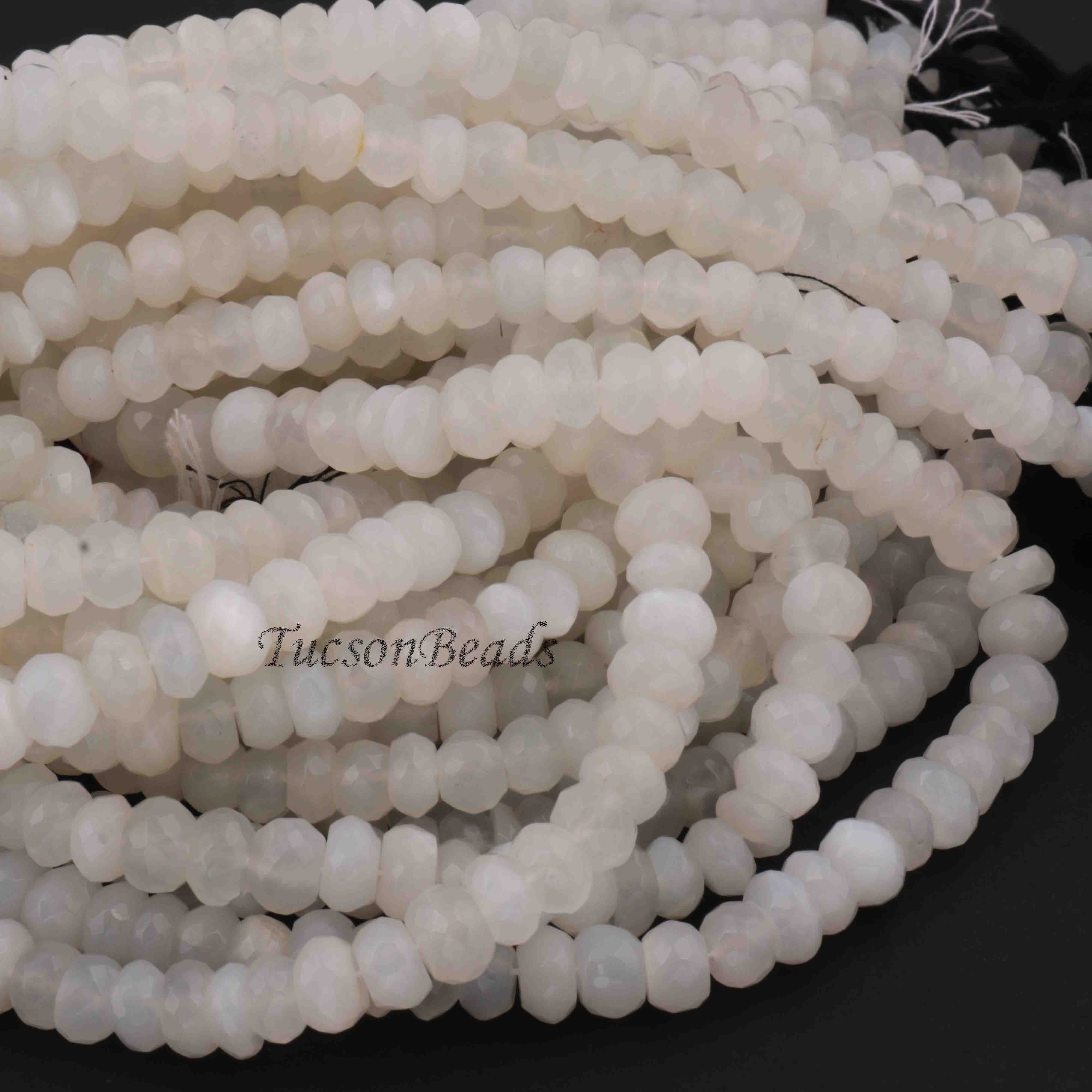 1 Long Strand White Moonstone Faceted Rondelles - Moonstone rondelles - 7mmx9mm -14 Inches BR0497