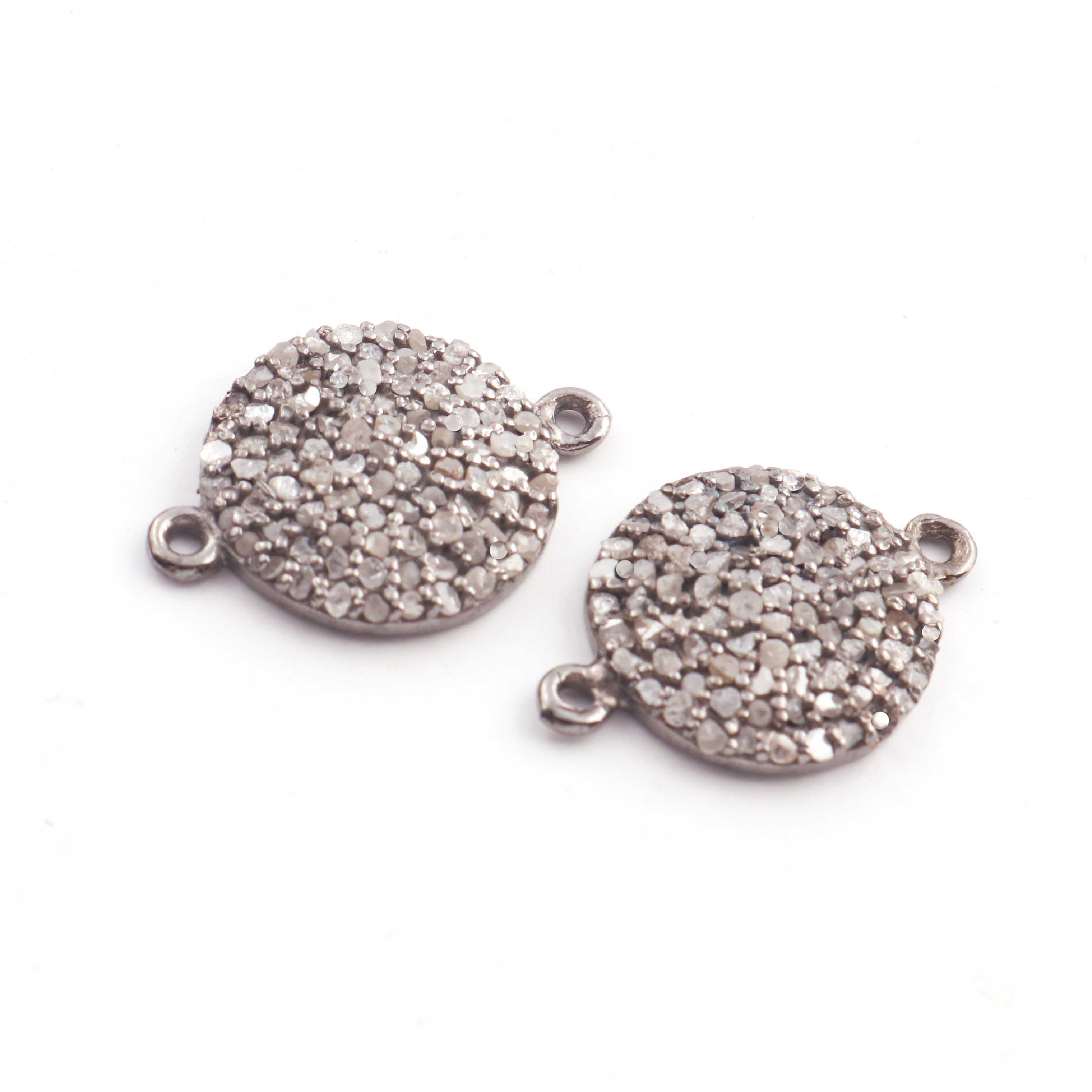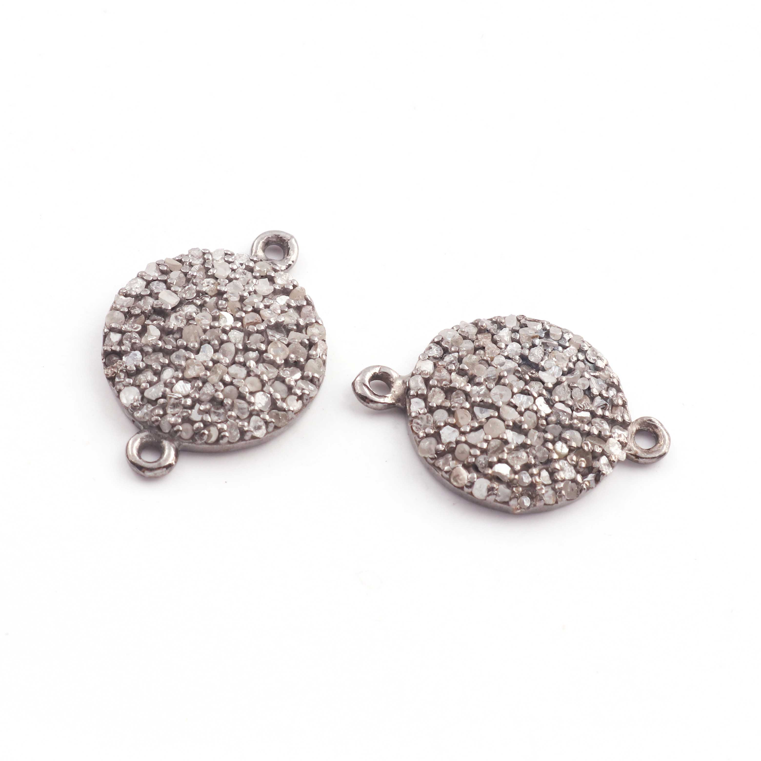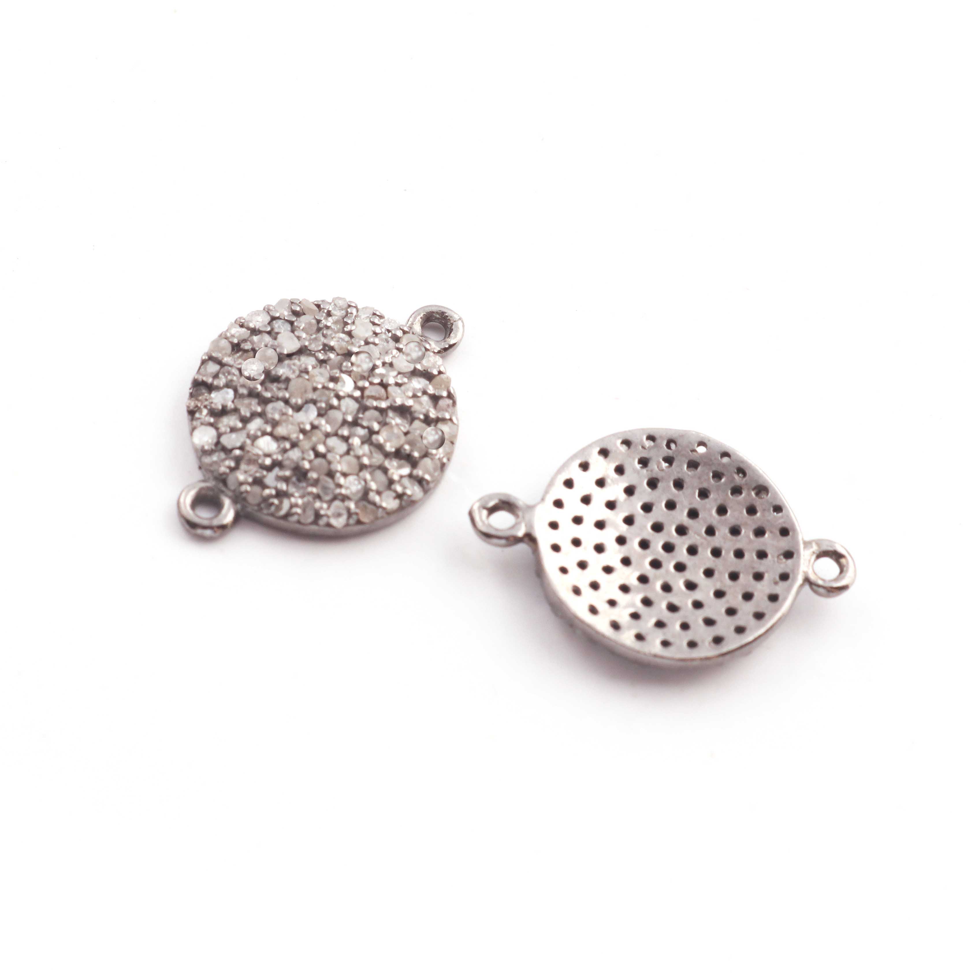 1 Pc Pave Diamond Round Disc 925 Sterling Silver Double Bail Connector - Diamond Connector 16mmx11mm Pdc1380