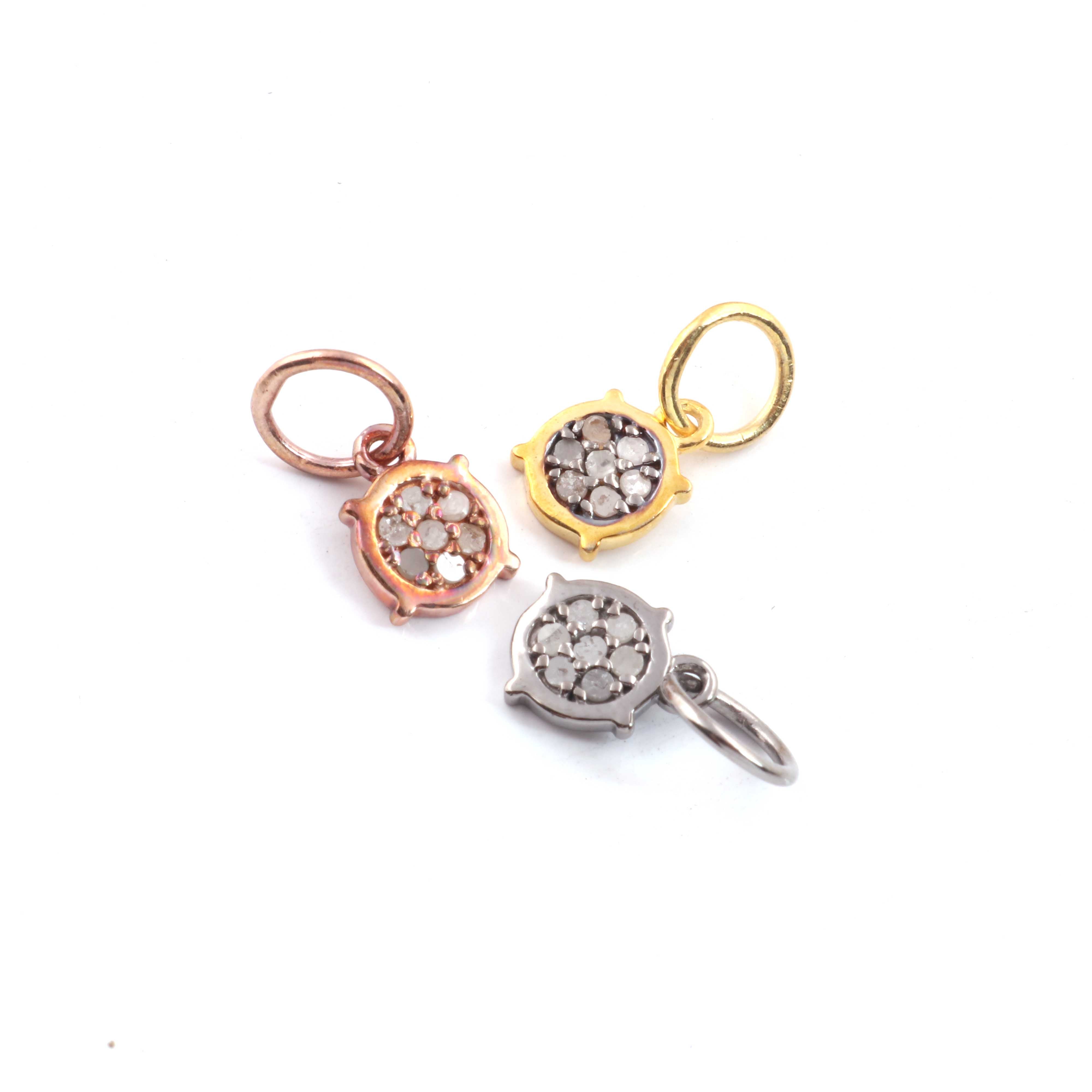 1 Pc Pave Diamond Round Disc Charm 925 Sterling Silver, Rose & Yellow Gold Vermeil Pendant, 9mmx7mm You Choose PDC000405