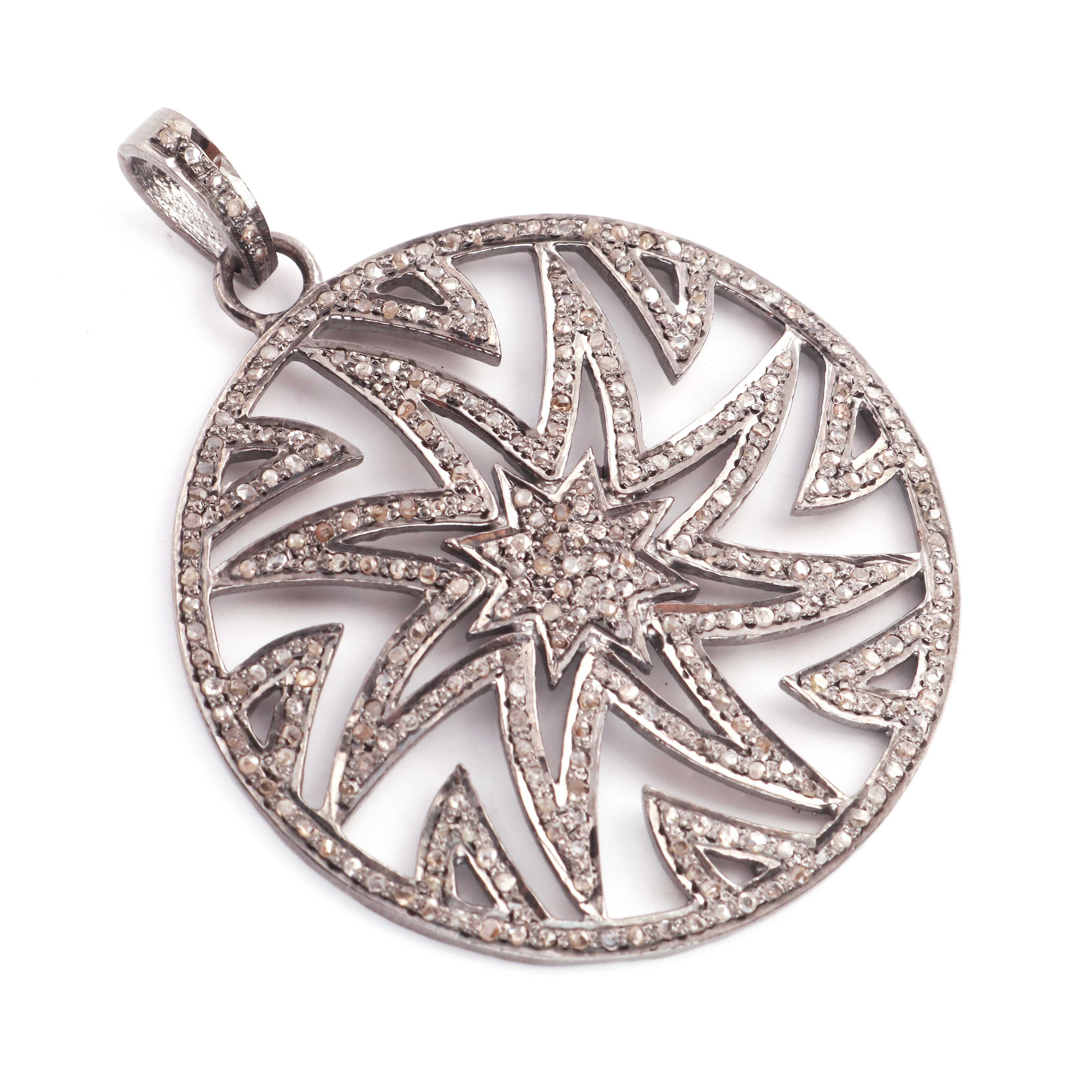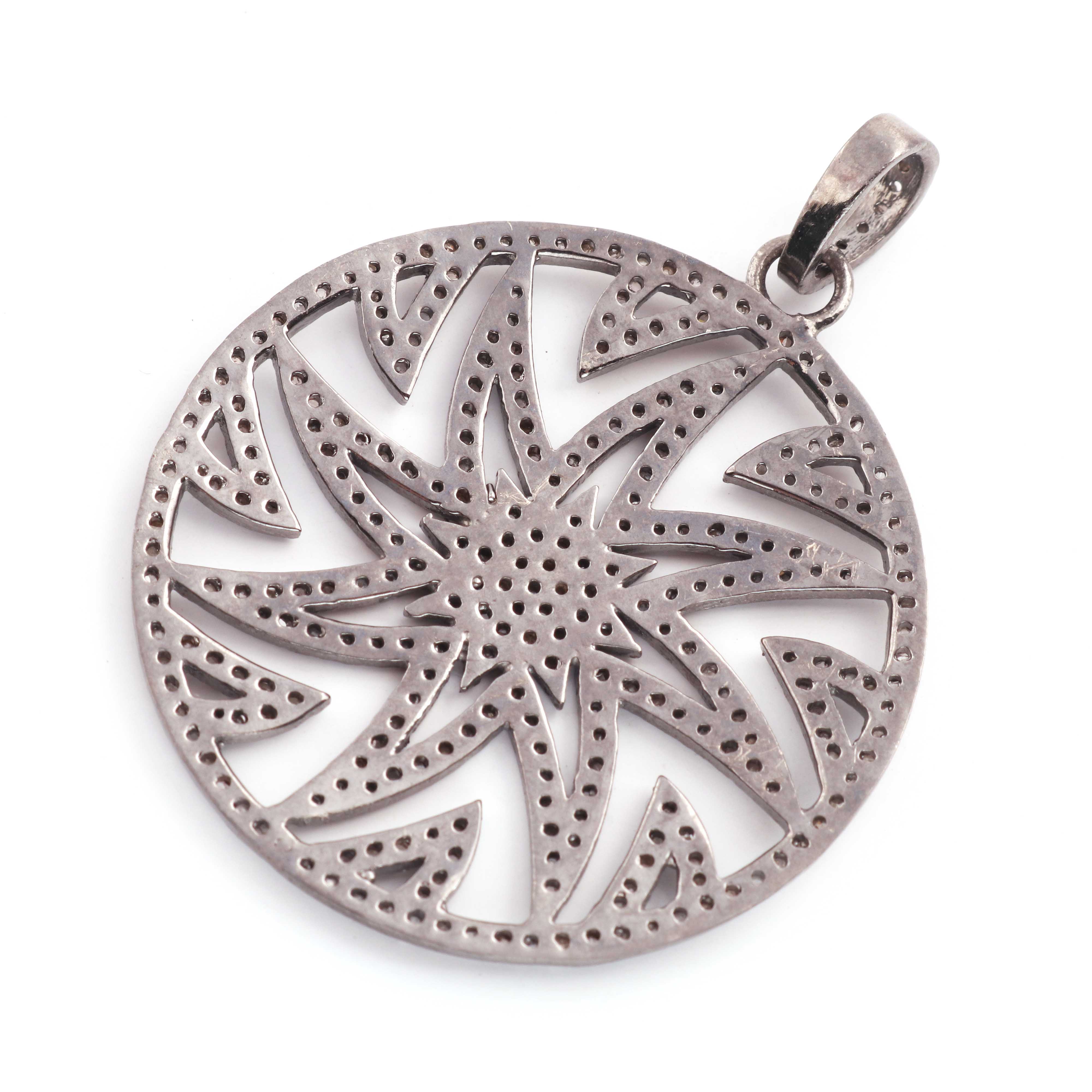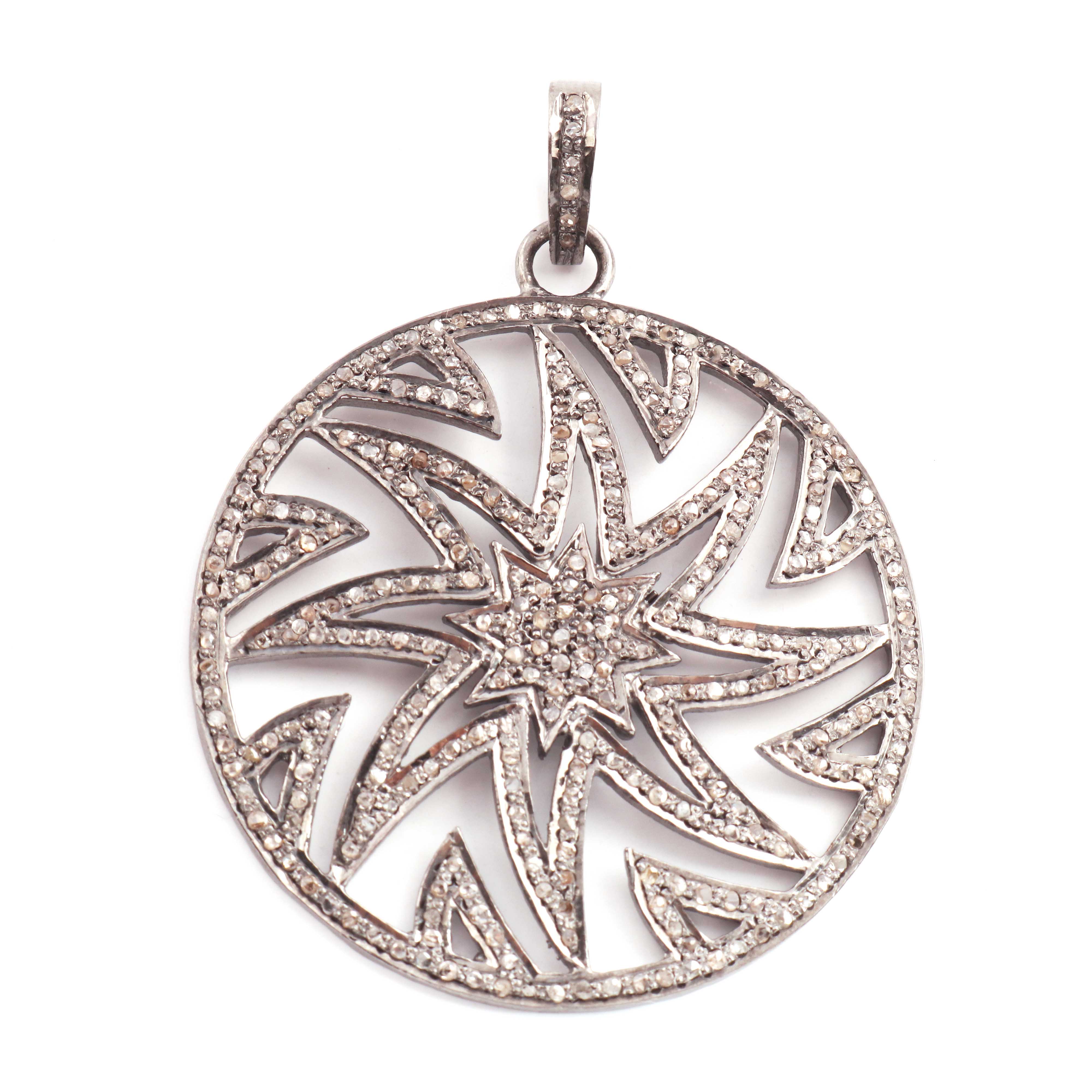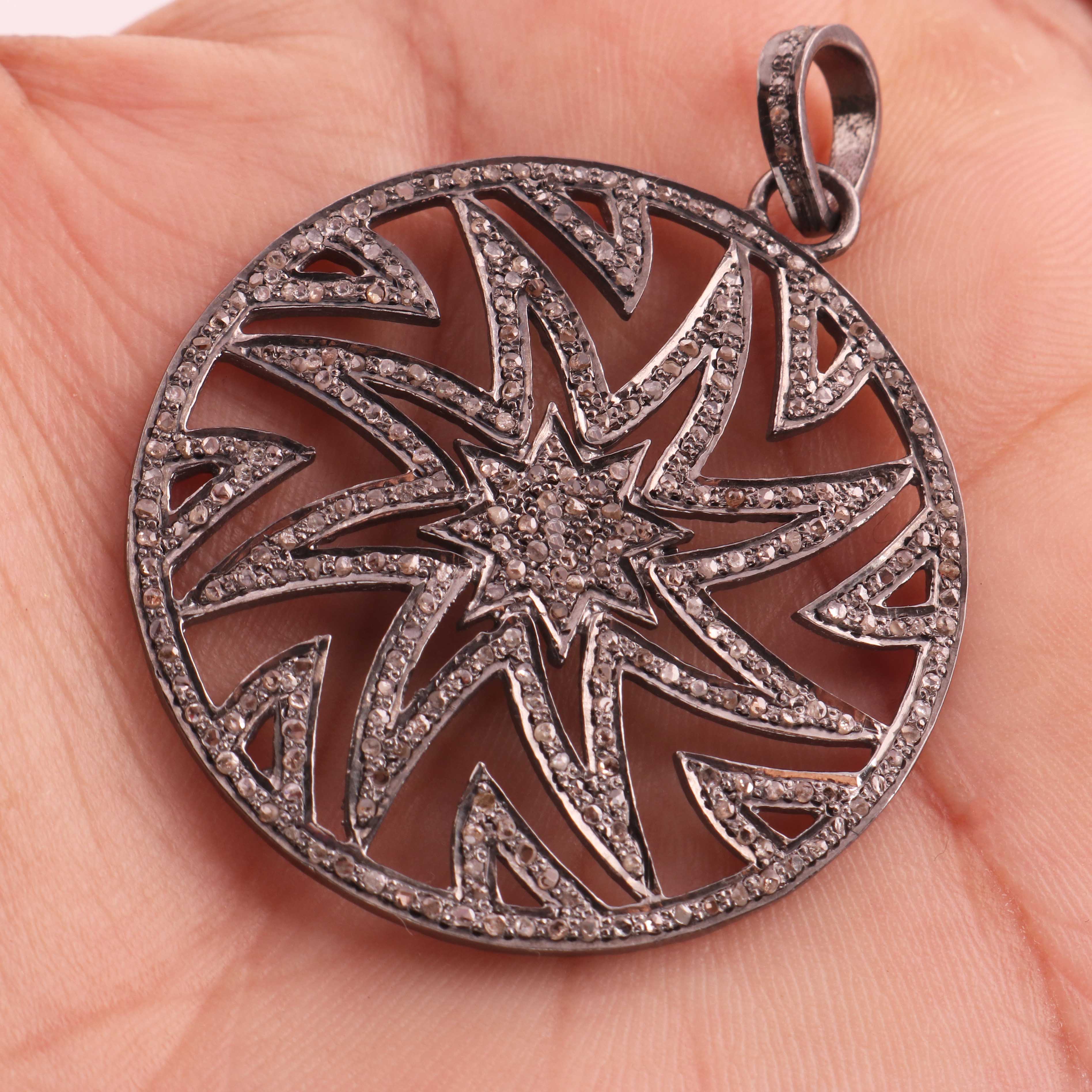 1 Pc Pave Diamond Round Shape Star Pendant Over 925 Sterling Silver- Necklace Pendant 45mmx40mm PD102