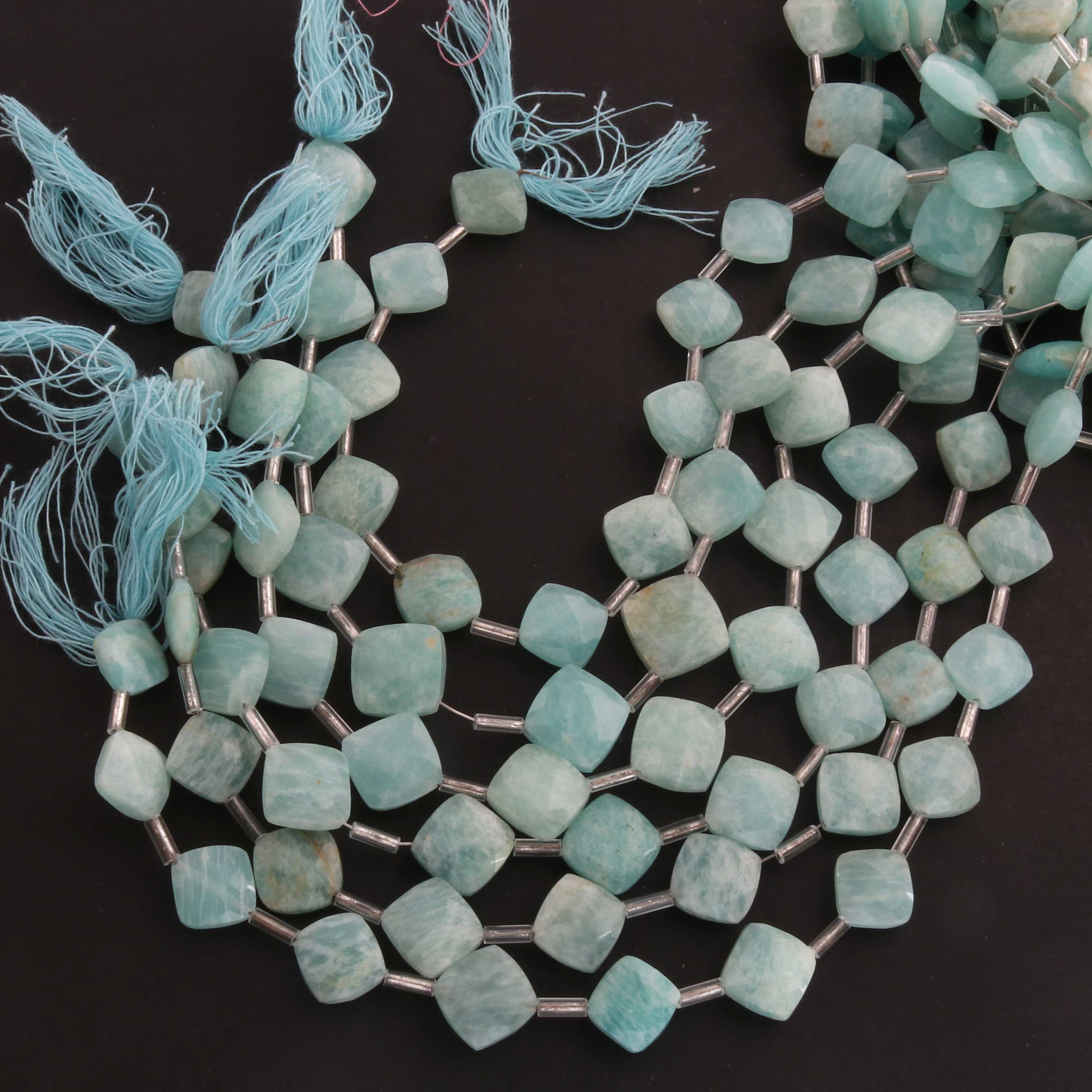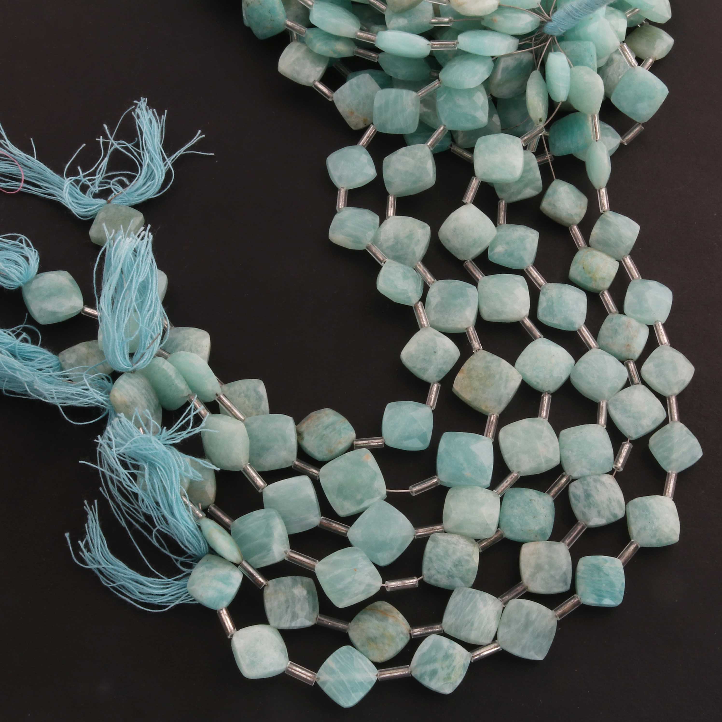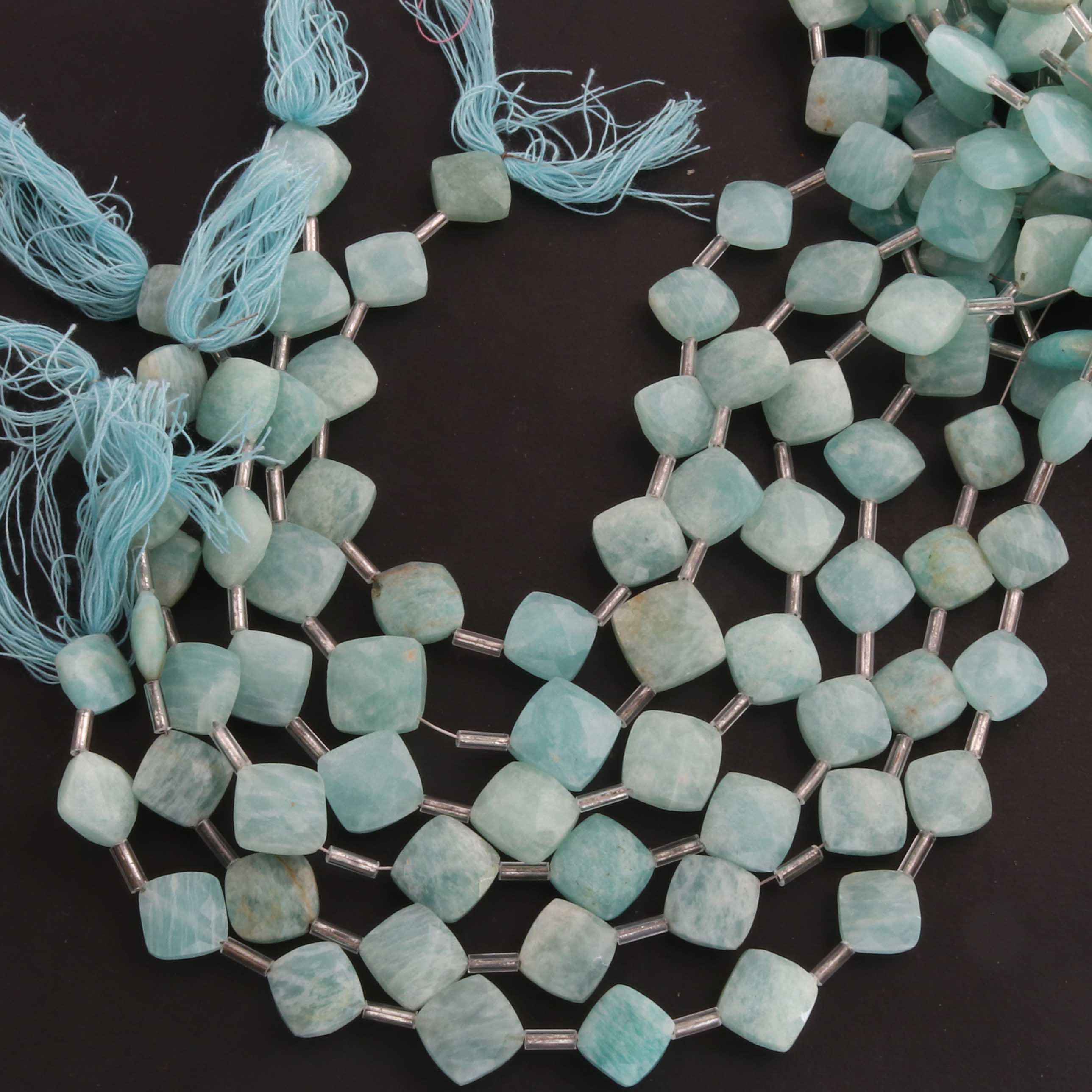 1 Strand Amazonite Faceted Cushion Shape Briolettes -Semi Precious Briolettes Beads 11 mm-15mm -9 Inches BR01763