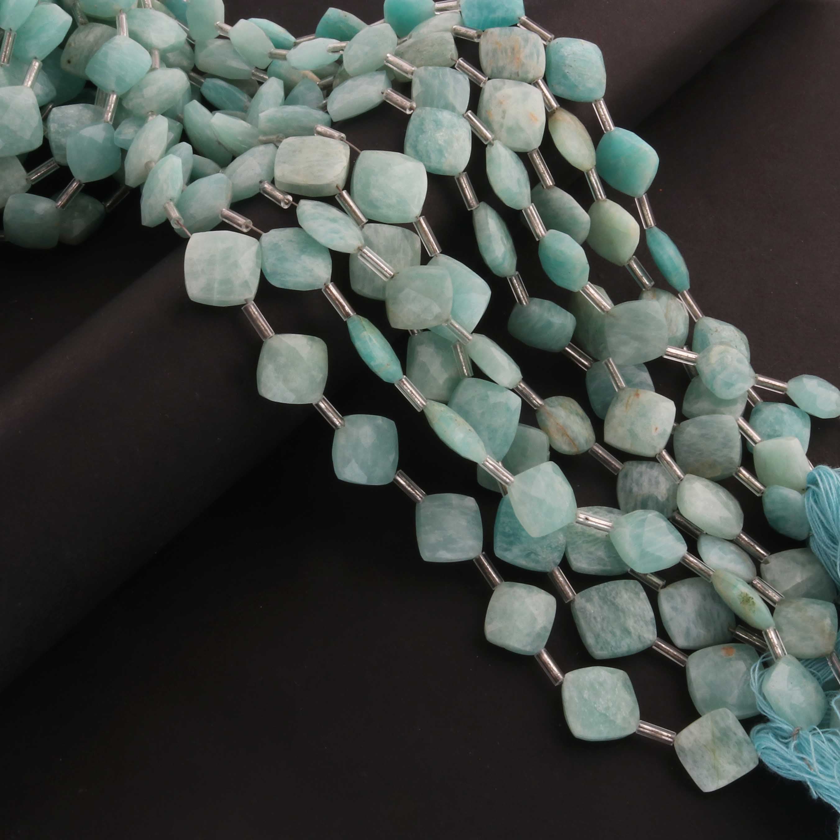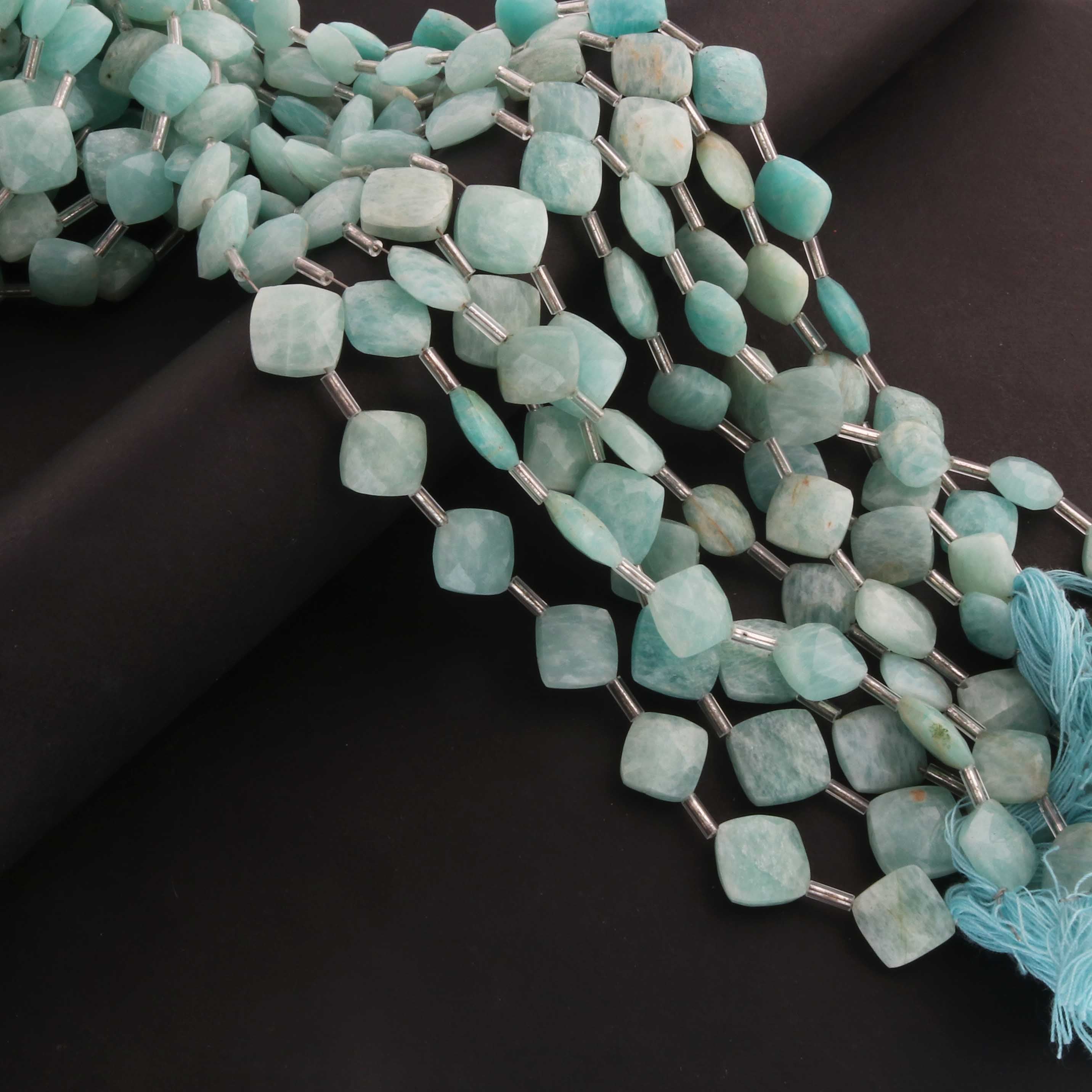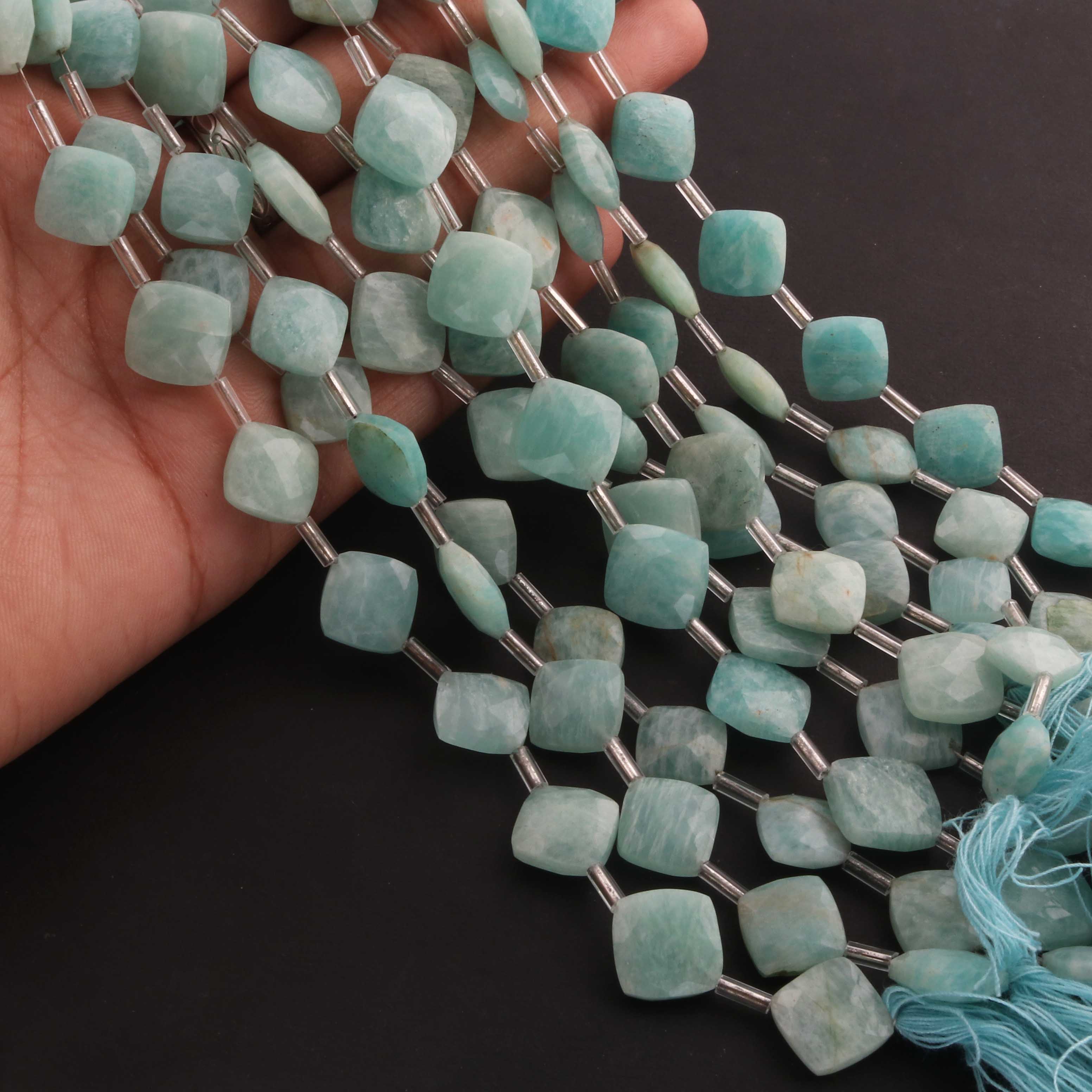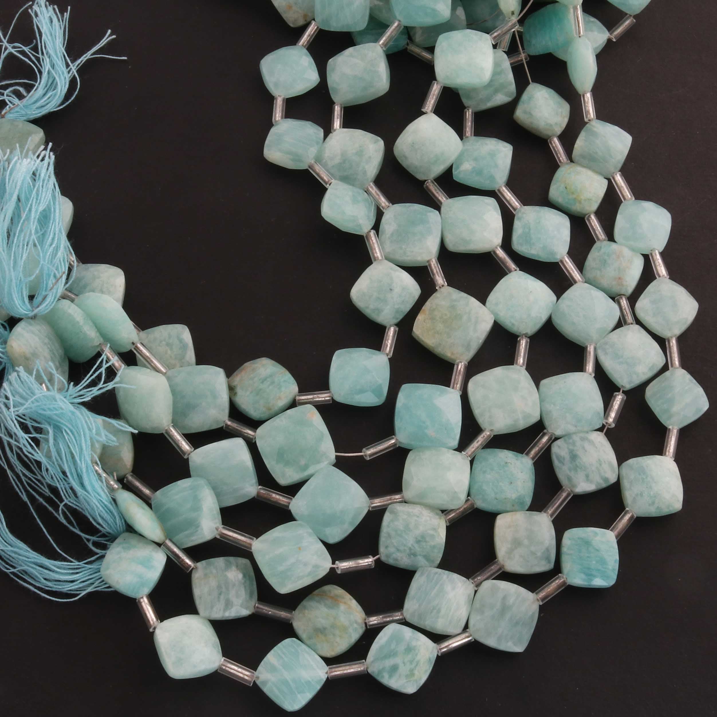 1 Strand Amazonite Faceted Cushion Shape Briolettes -Semi Precious Briolettes Beads 11 mm-15mm -9 Inches BR01763