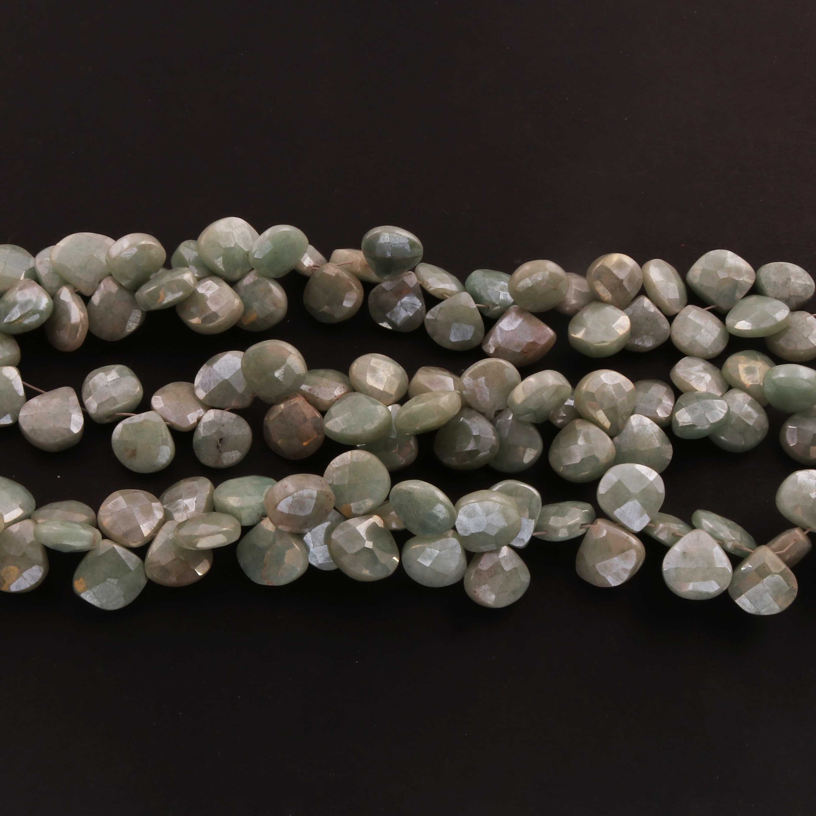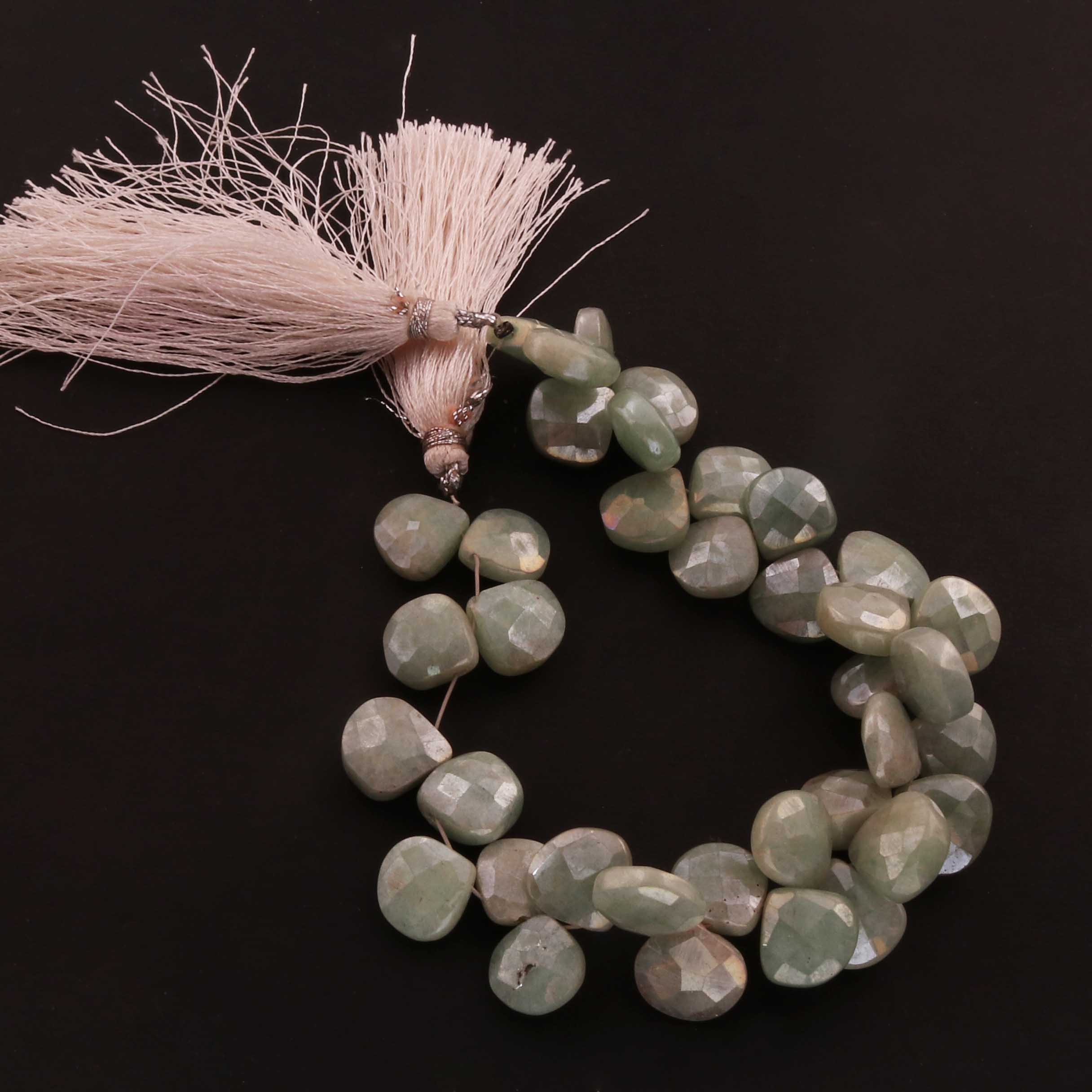 1 Strand Amezonite Silver Cocated Faceted Briolettes -Heart Shape Briolettes -8mmx9mm -16mmx8mm-7 Inches -BR 03635
