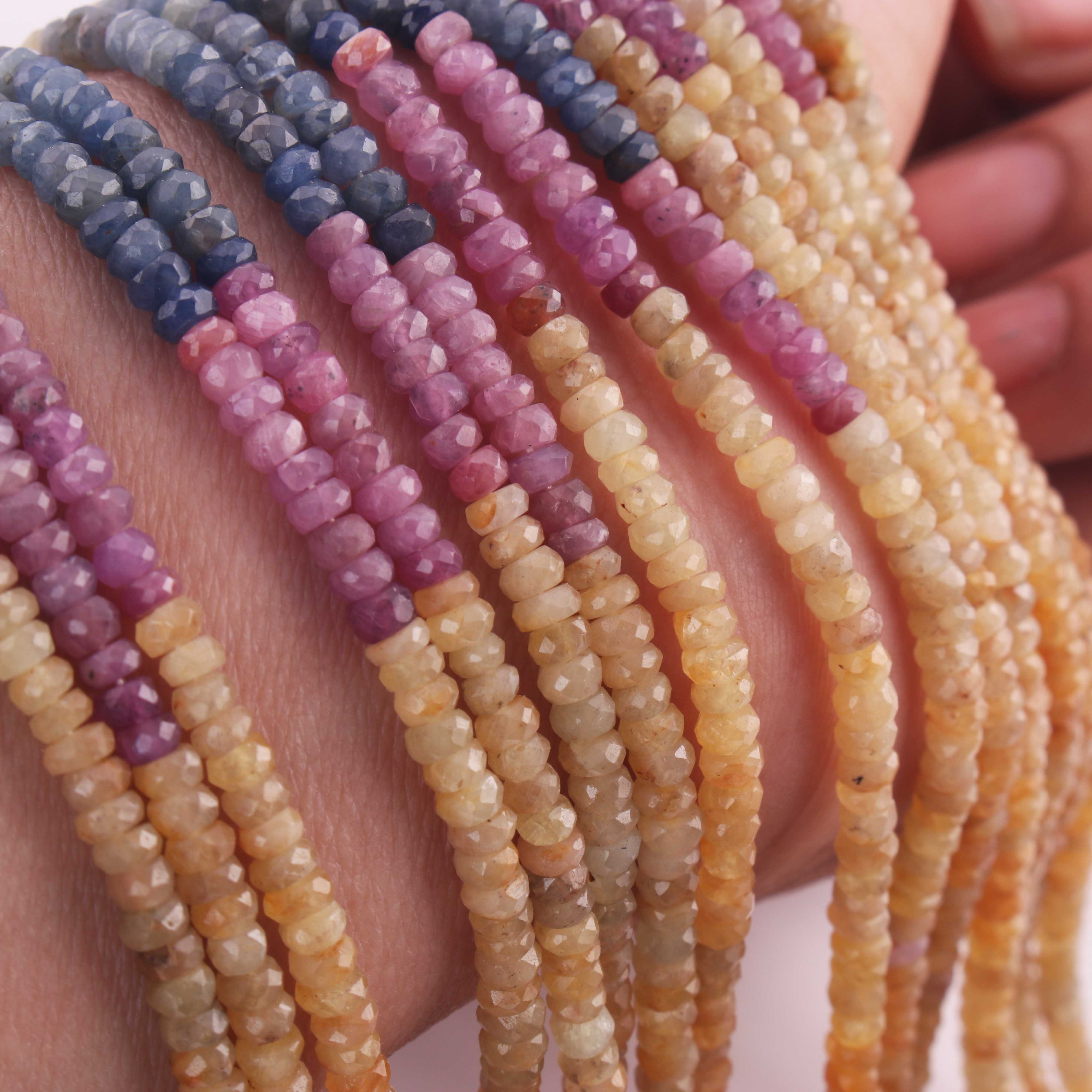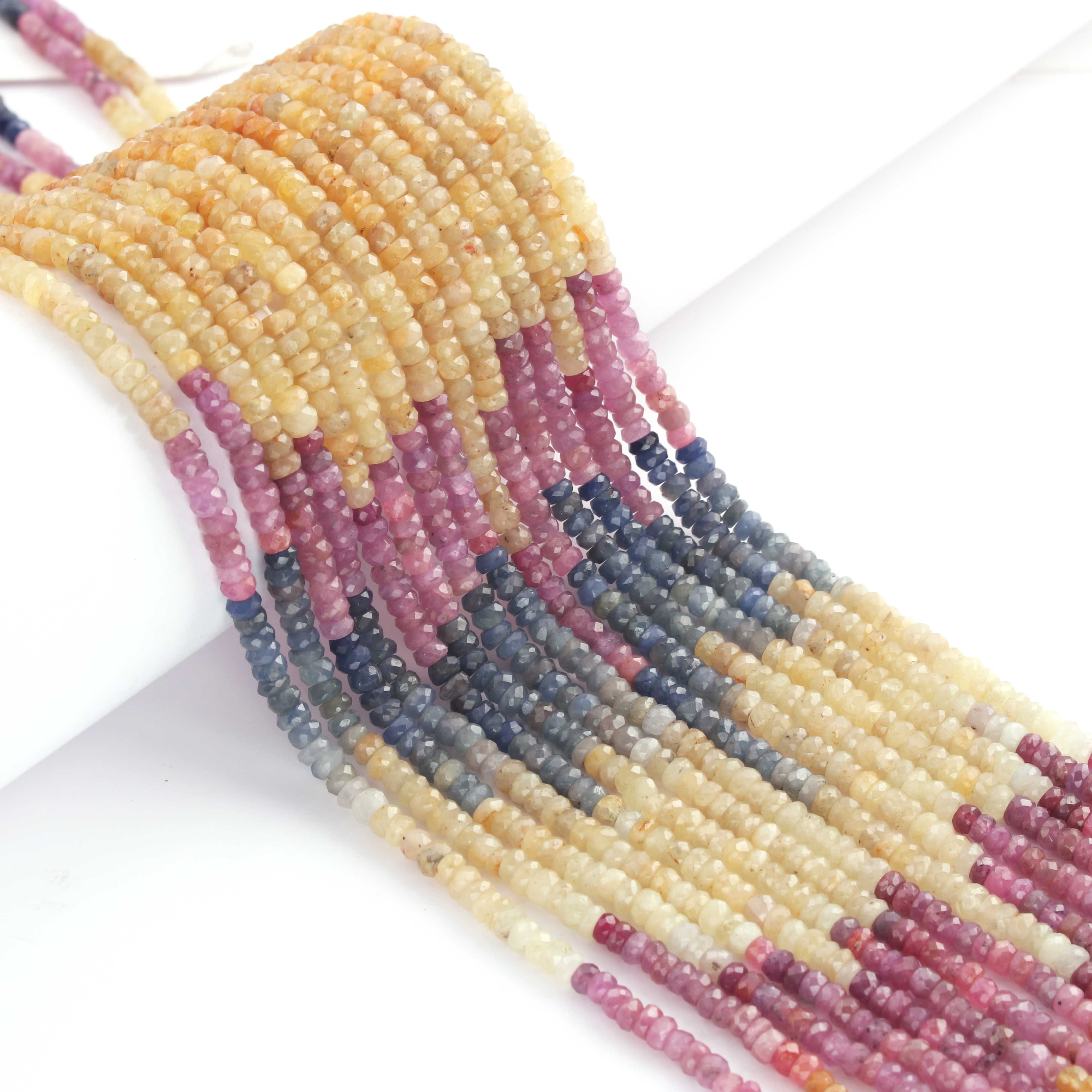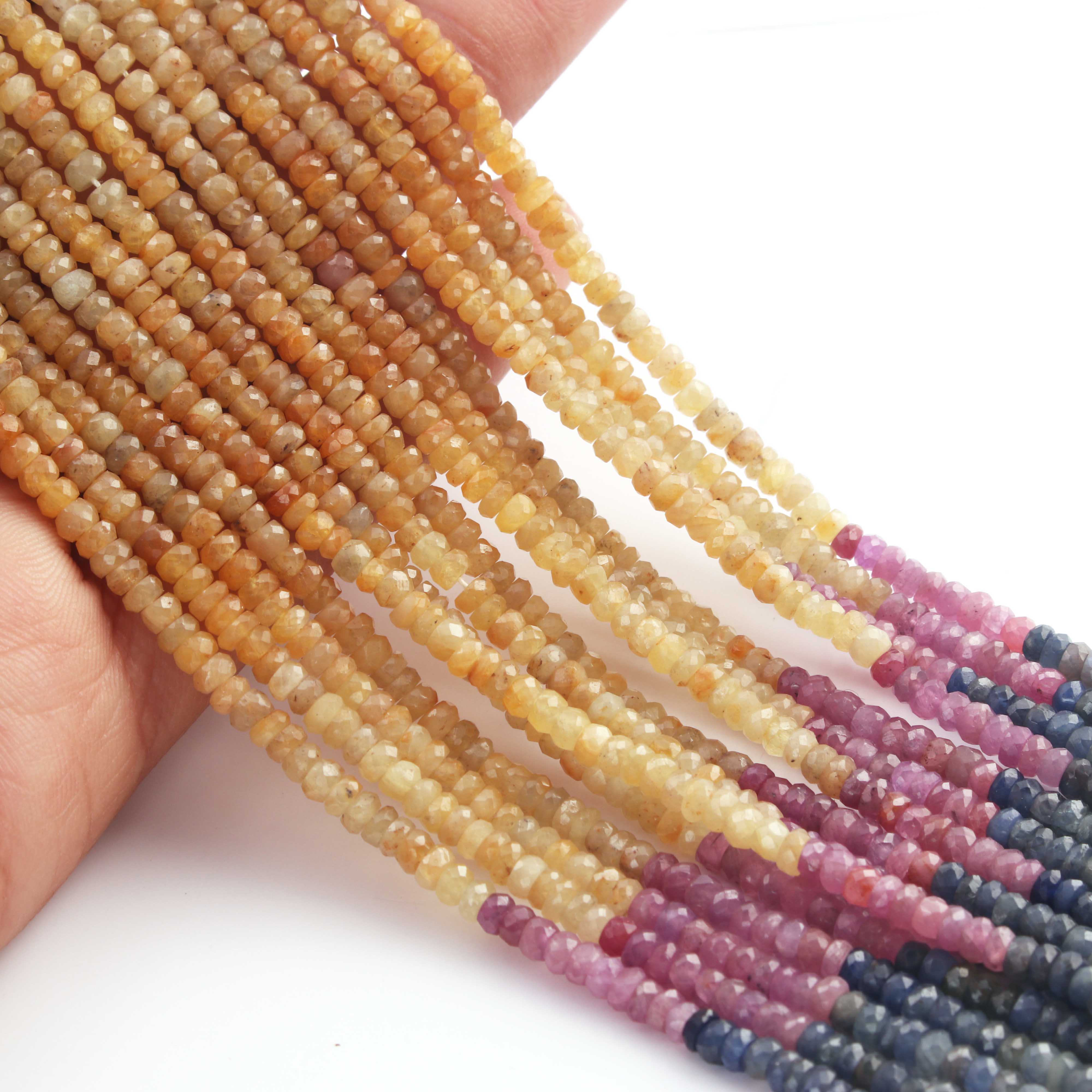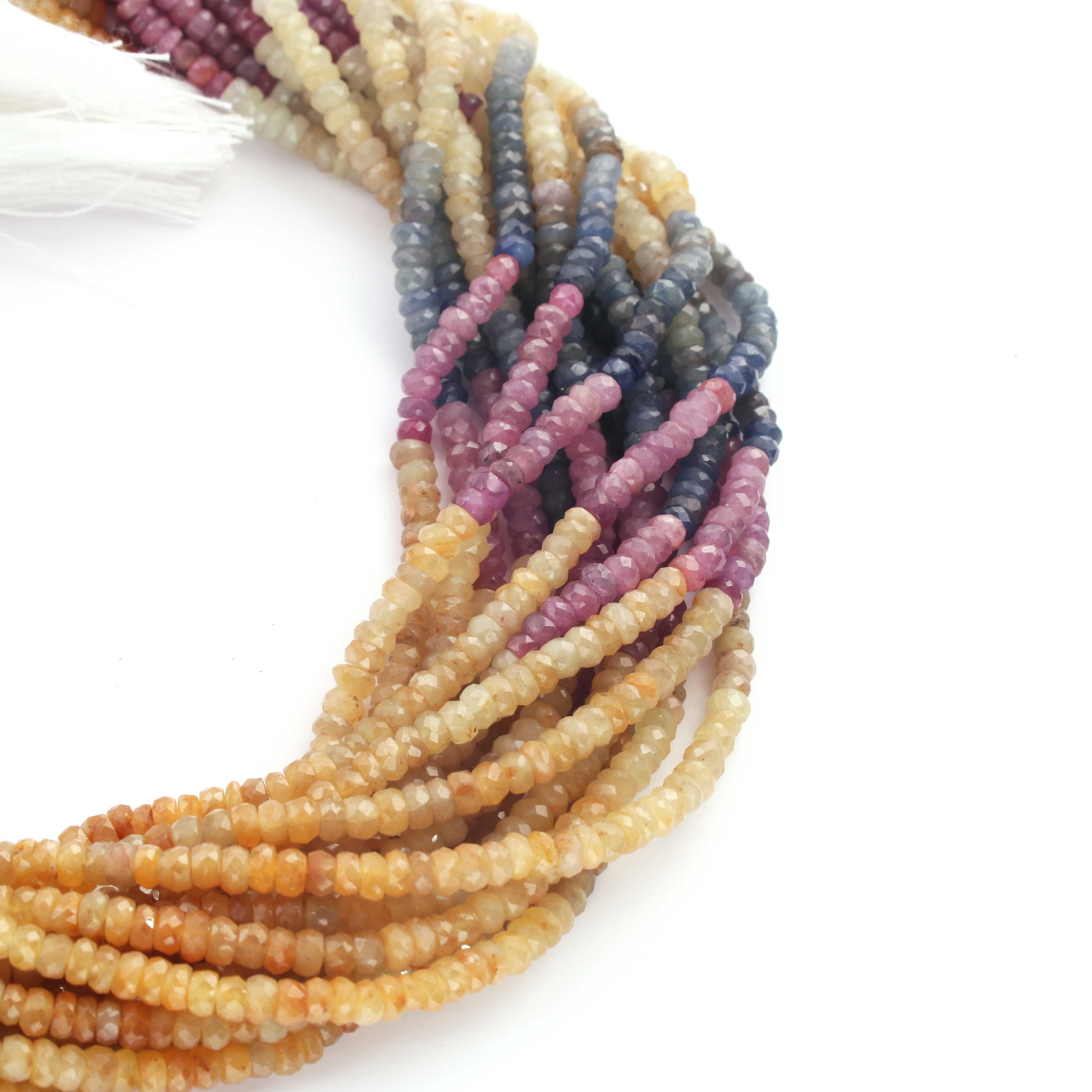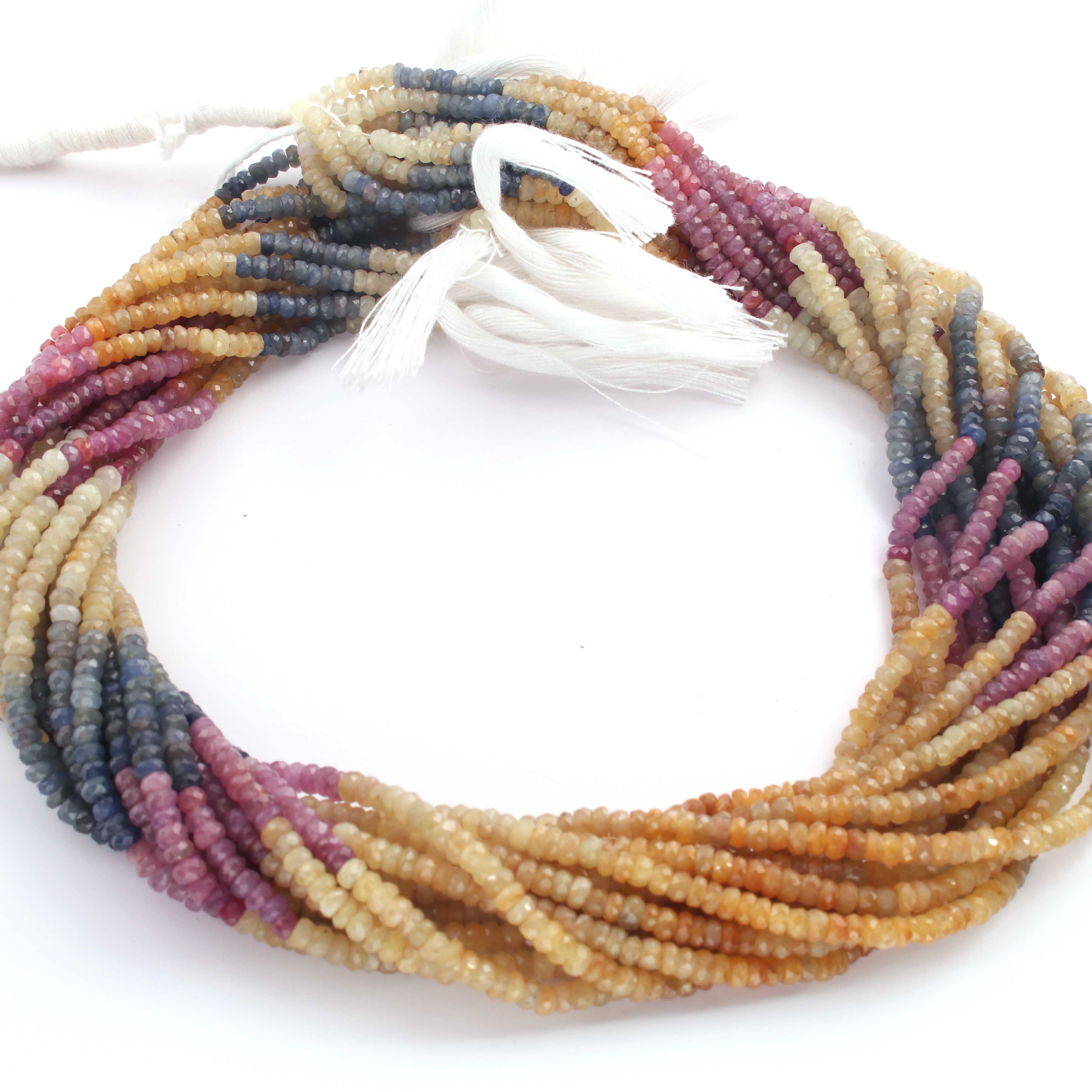 1 Strand Beautiful Multi Sapphire Faceted Rondelles - Gemstone Roundelle Beads -3mm-16 Inches- BR03064