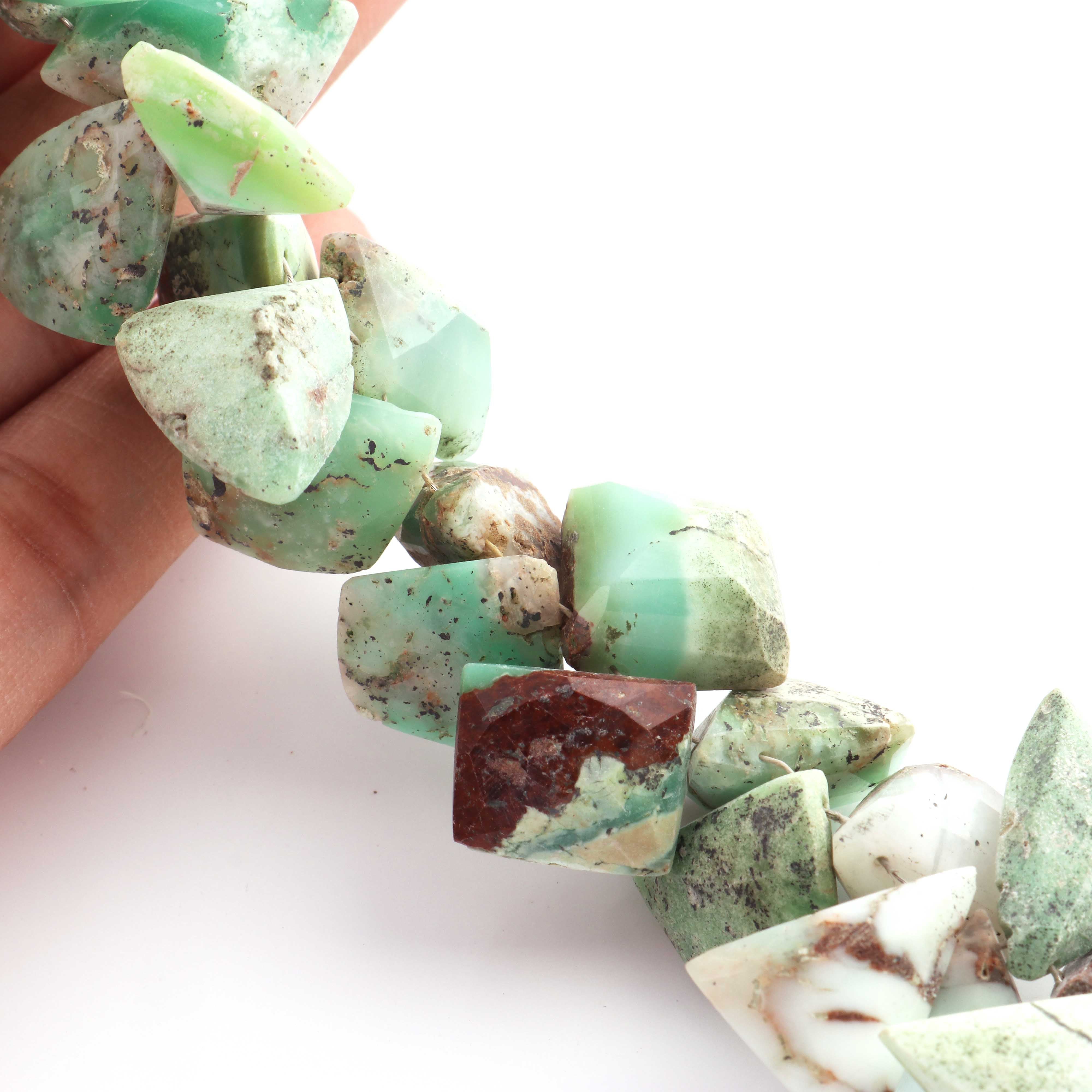 1  Strand Bio Chrysoprase  Faceted Assorted Shape Briolettes 11mmx15mm-18mmx12mm  8 Inches BR0919