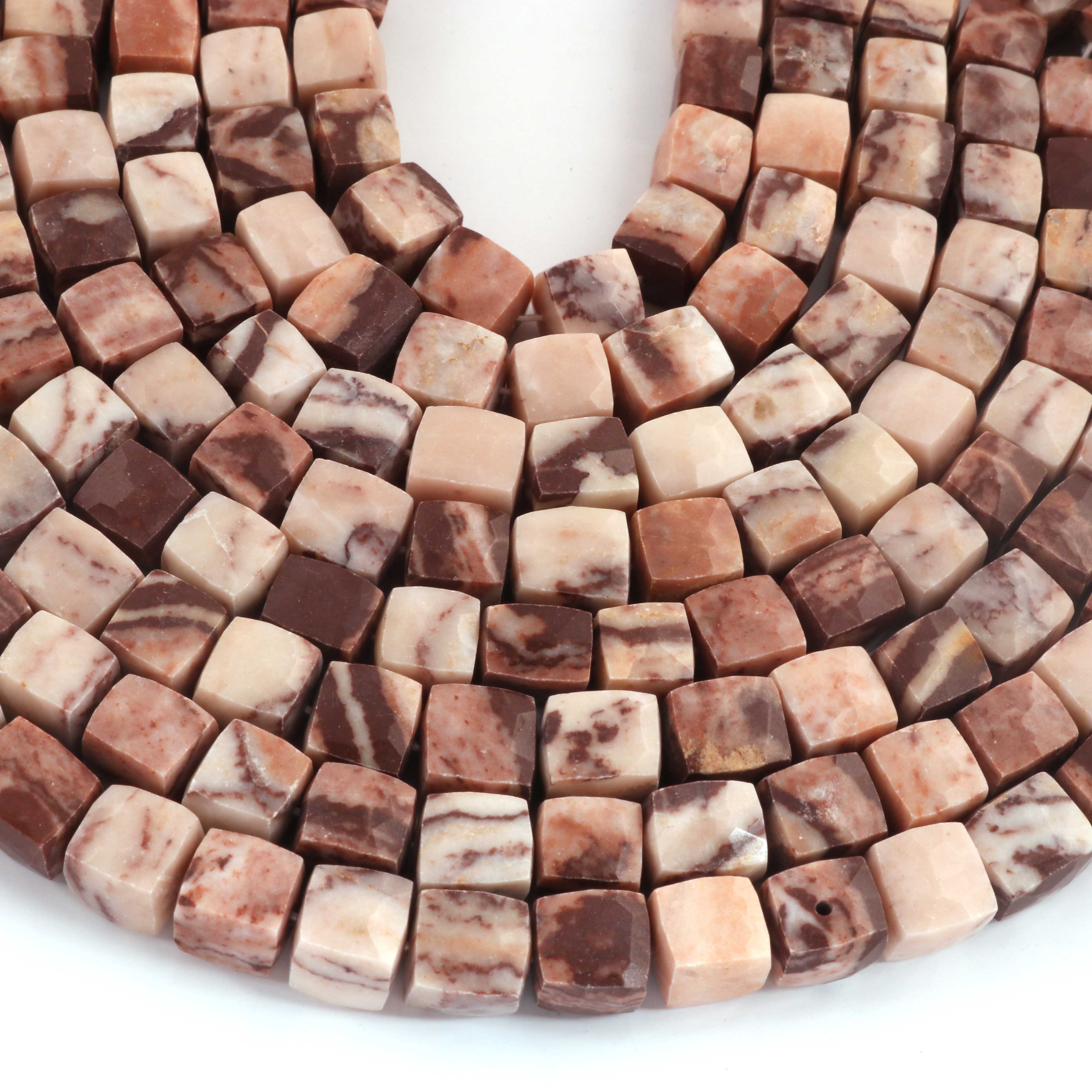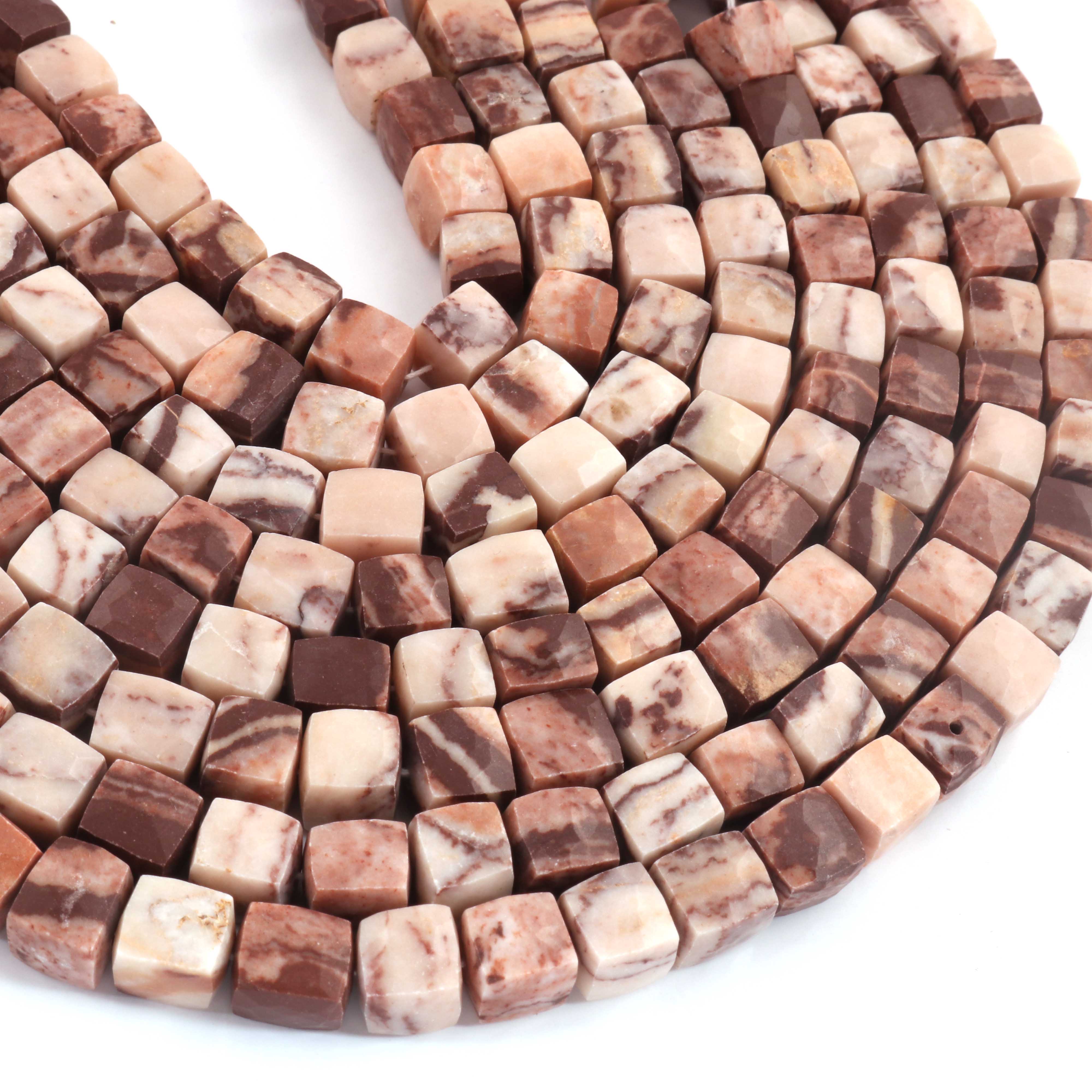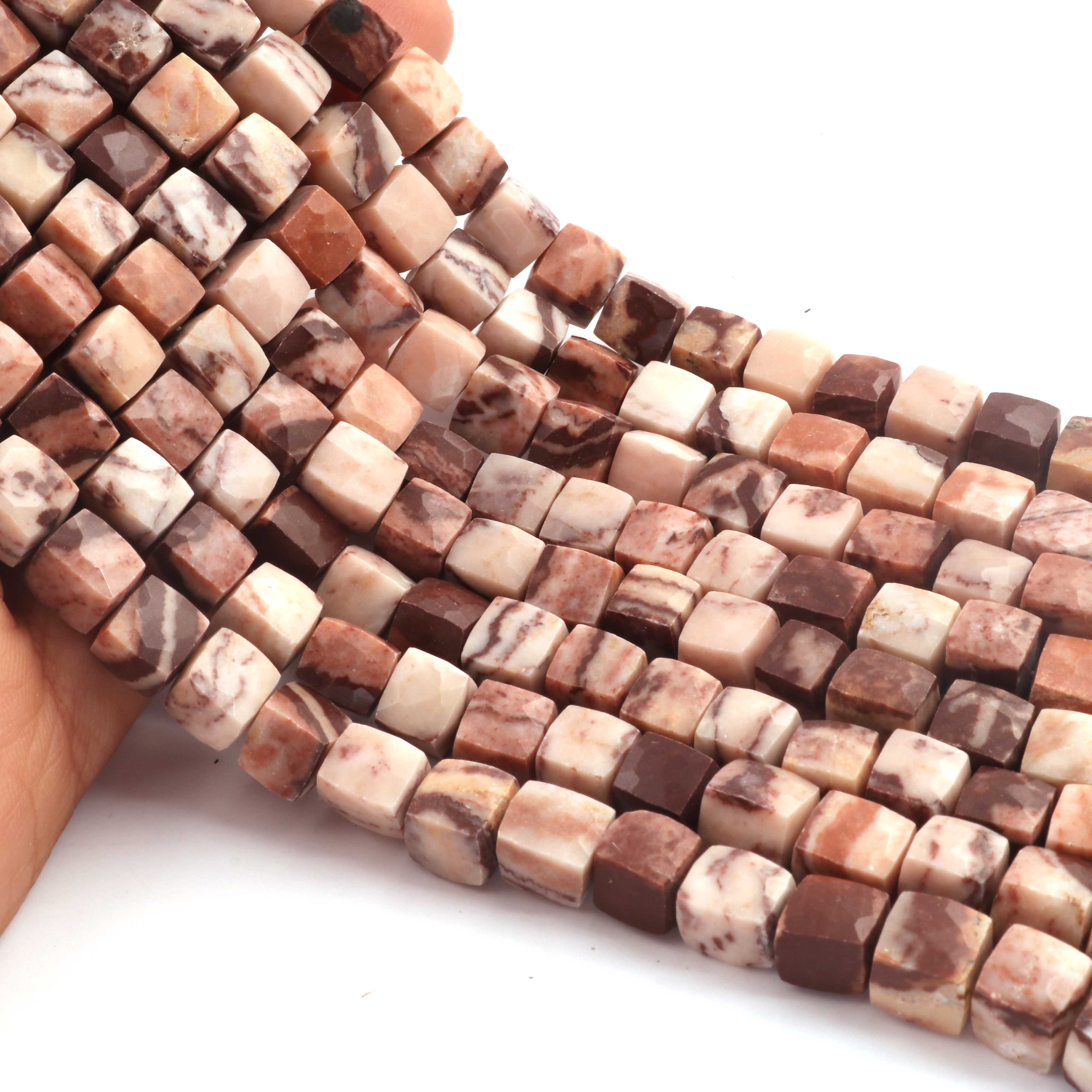 1 Strand Brown Jasper Faceted Cube Beads, 3D Box, Square, Dice Briolettes - 6mm-7mm- 8 Inches BR03954