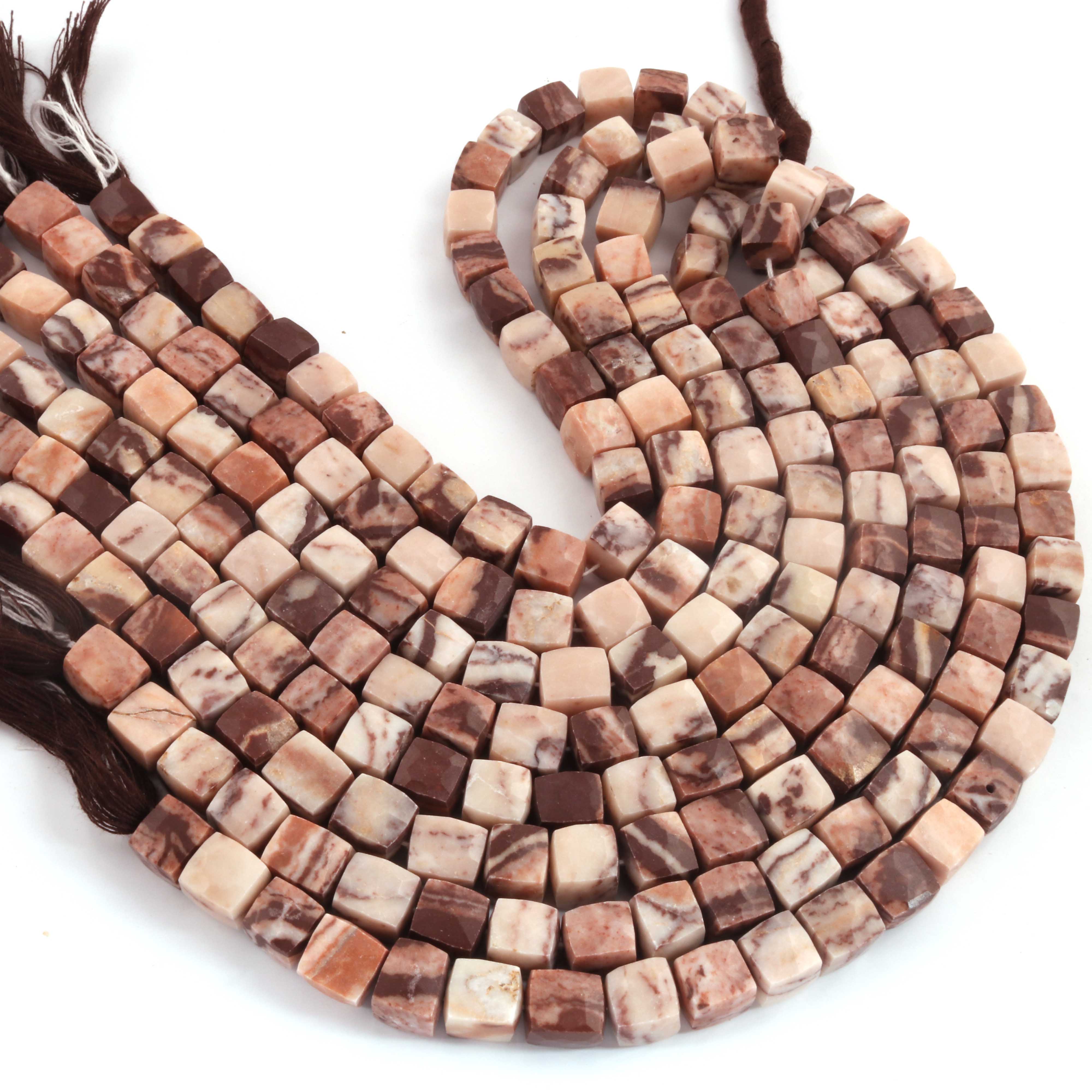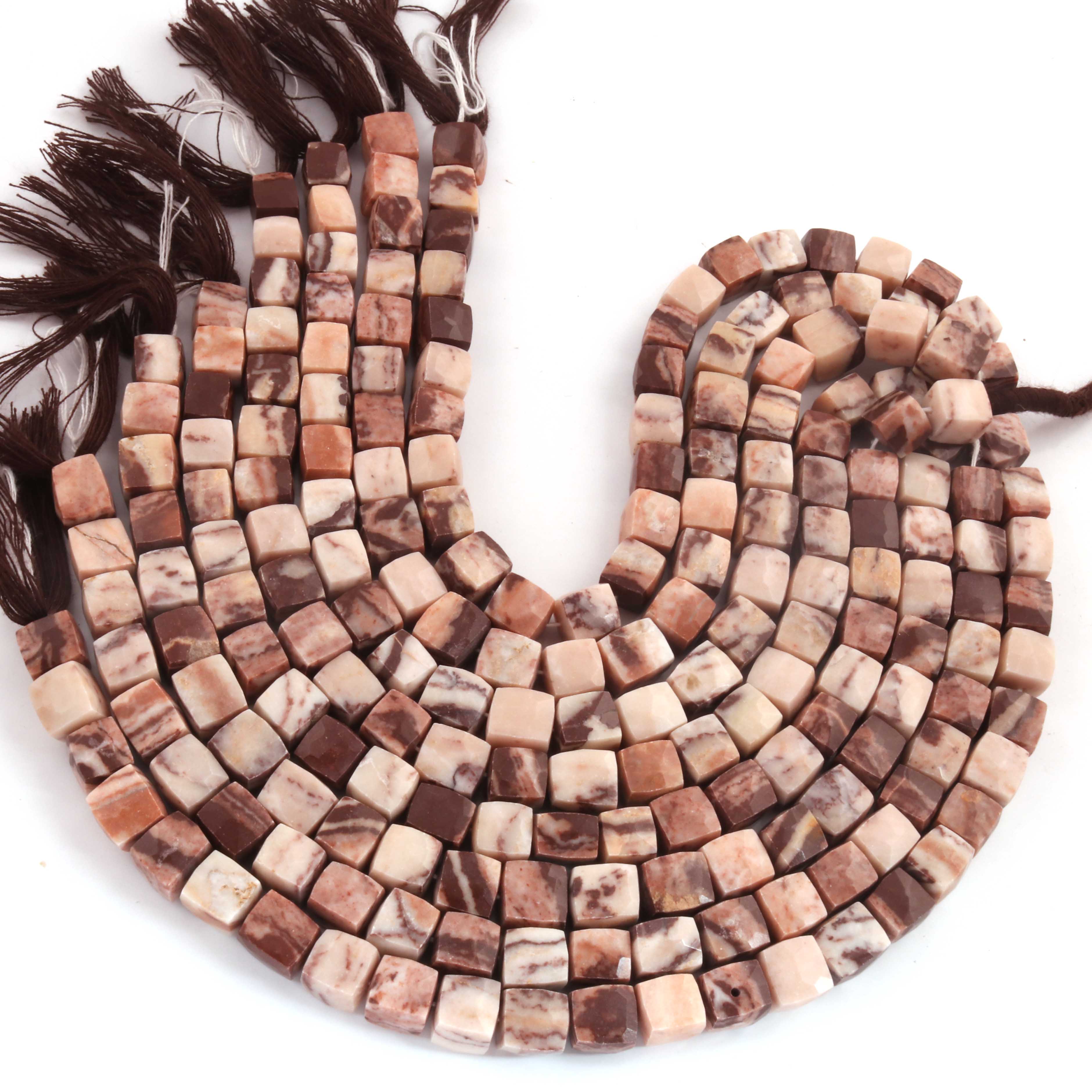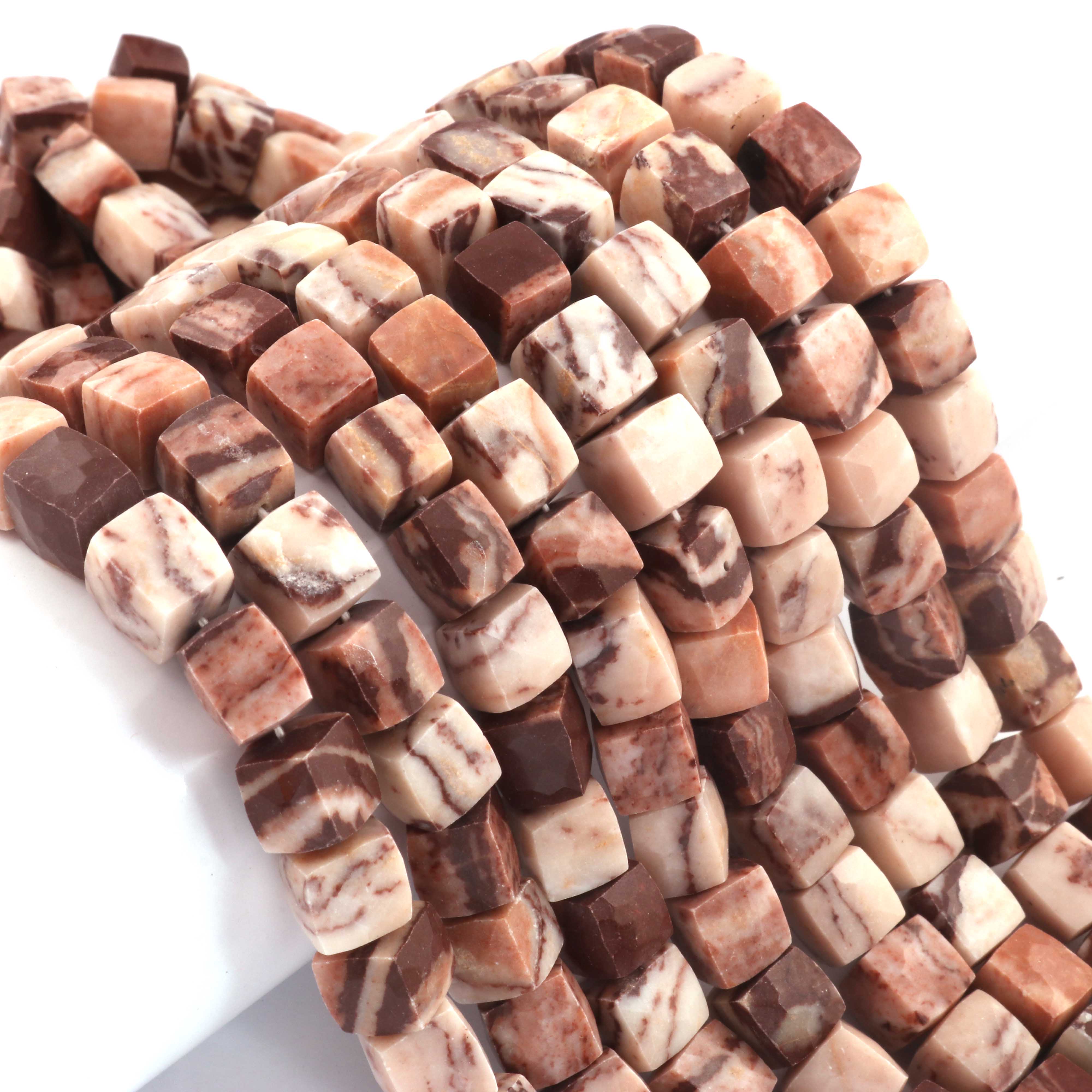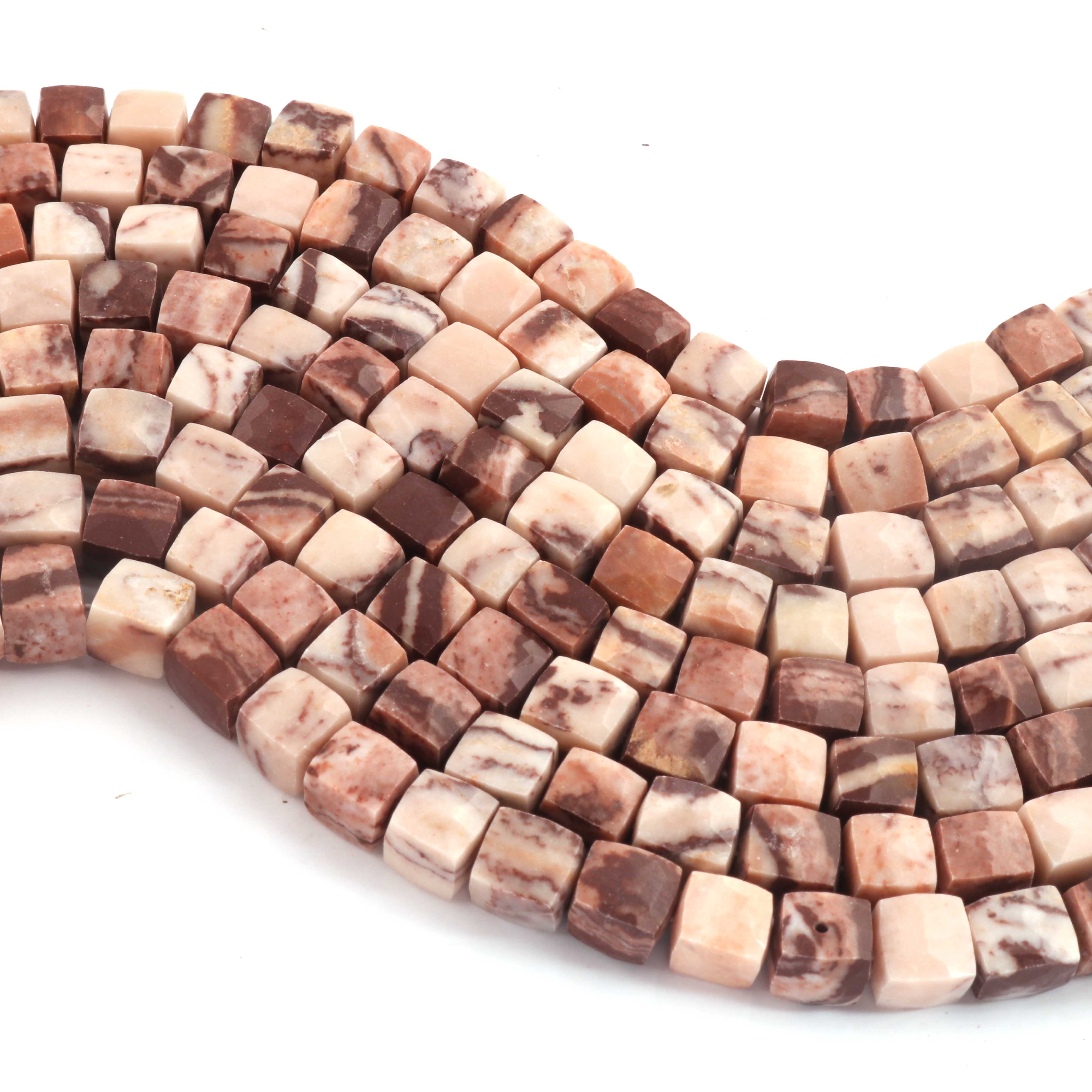 1 Strand Brown Jasper Faceted Cube Beads, 3D Box, Square, Dice Briolettes - 6mm-7mm- 8 Inches BR03954