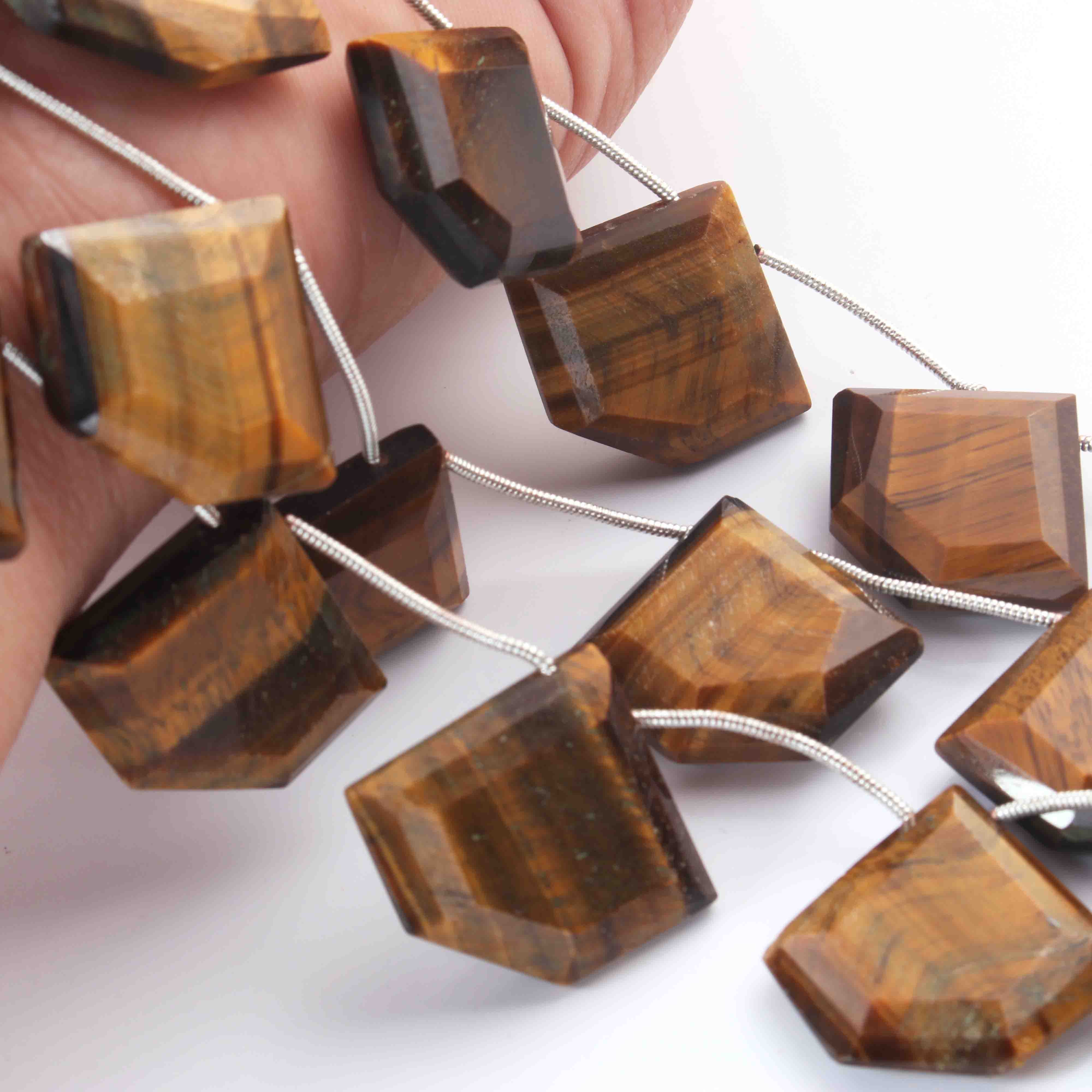 - 1 Strand Brown Tiger Eye Faceted Briolettes - Fancy Briolettes -17mmx21mm-25mmx21mm- 9.5 Inches BR01410