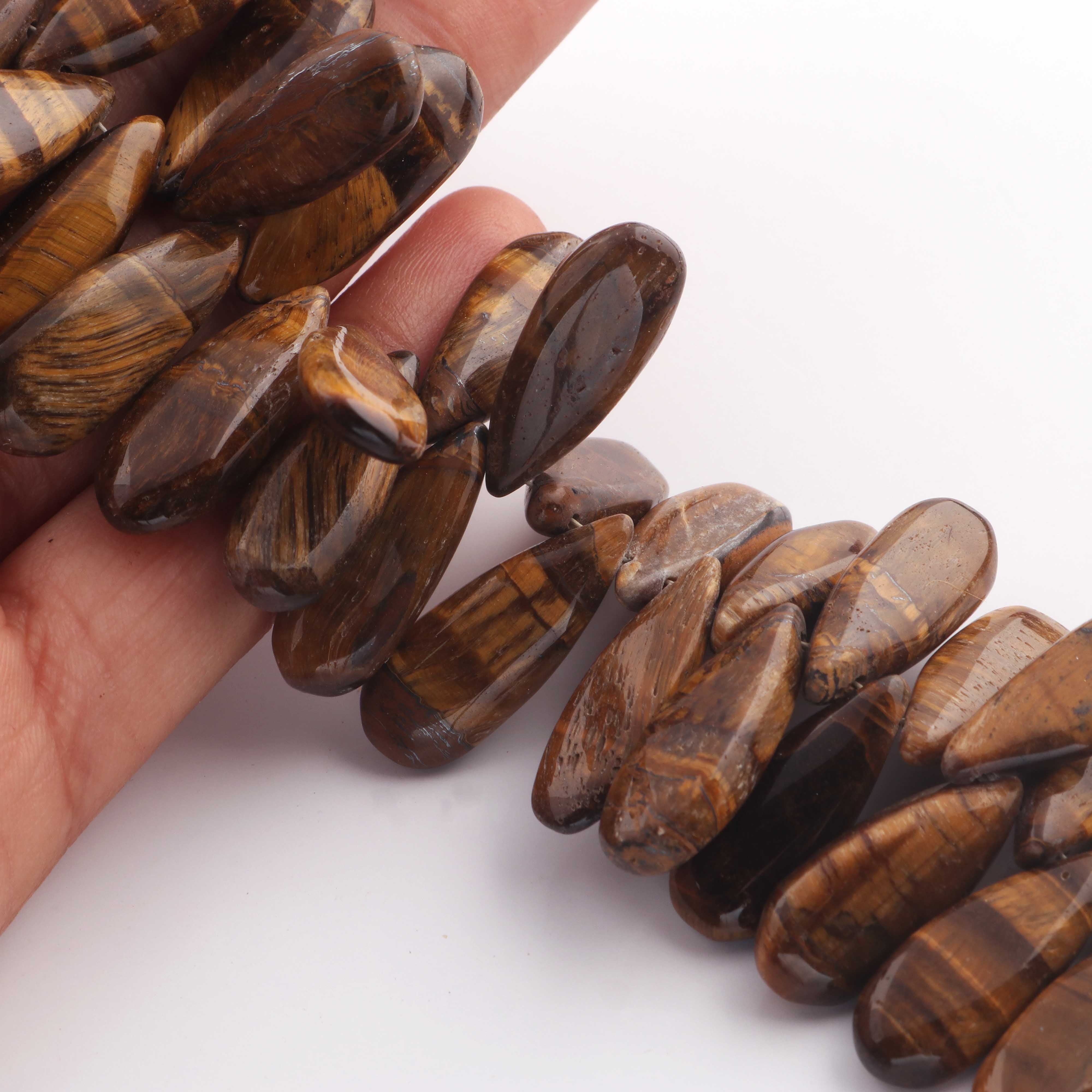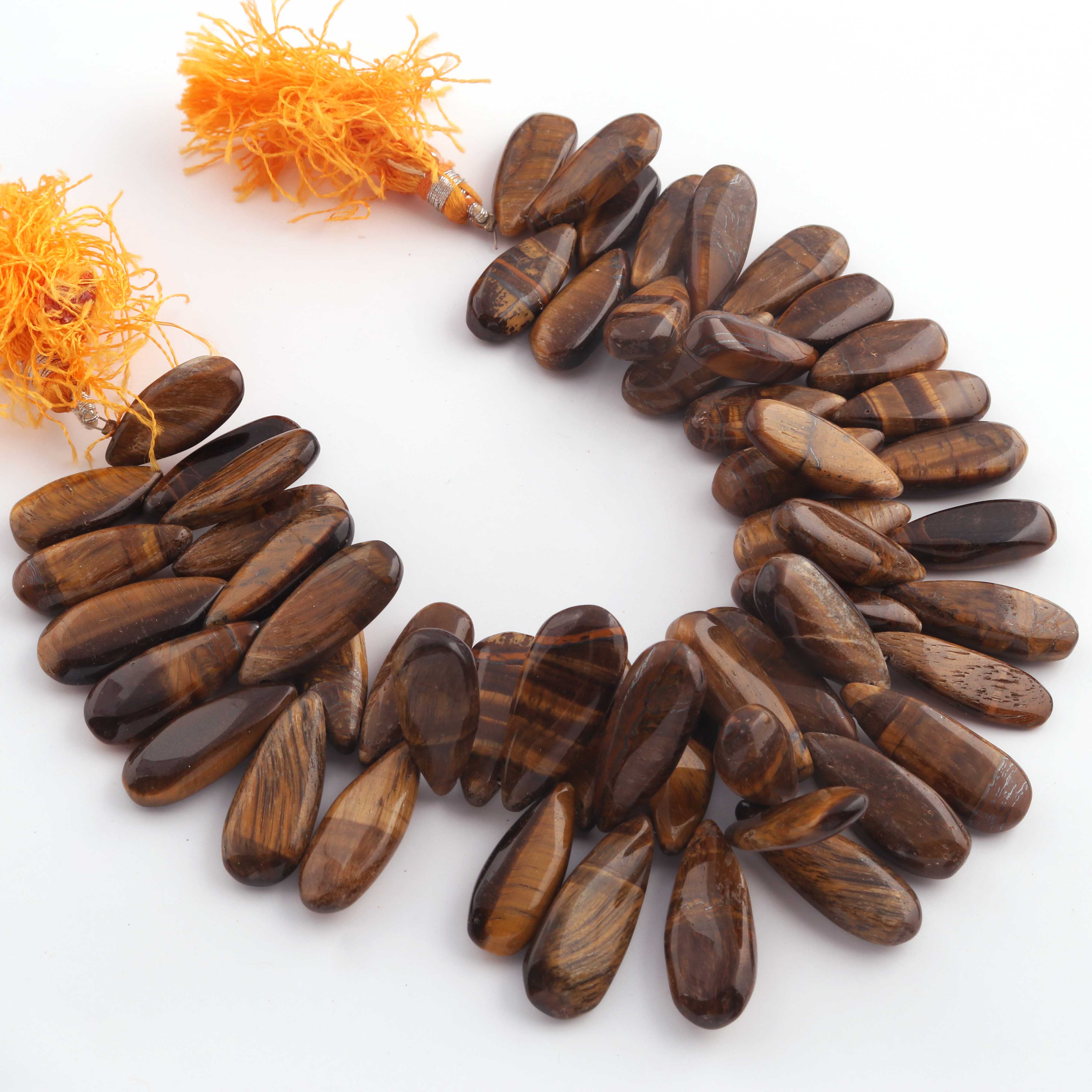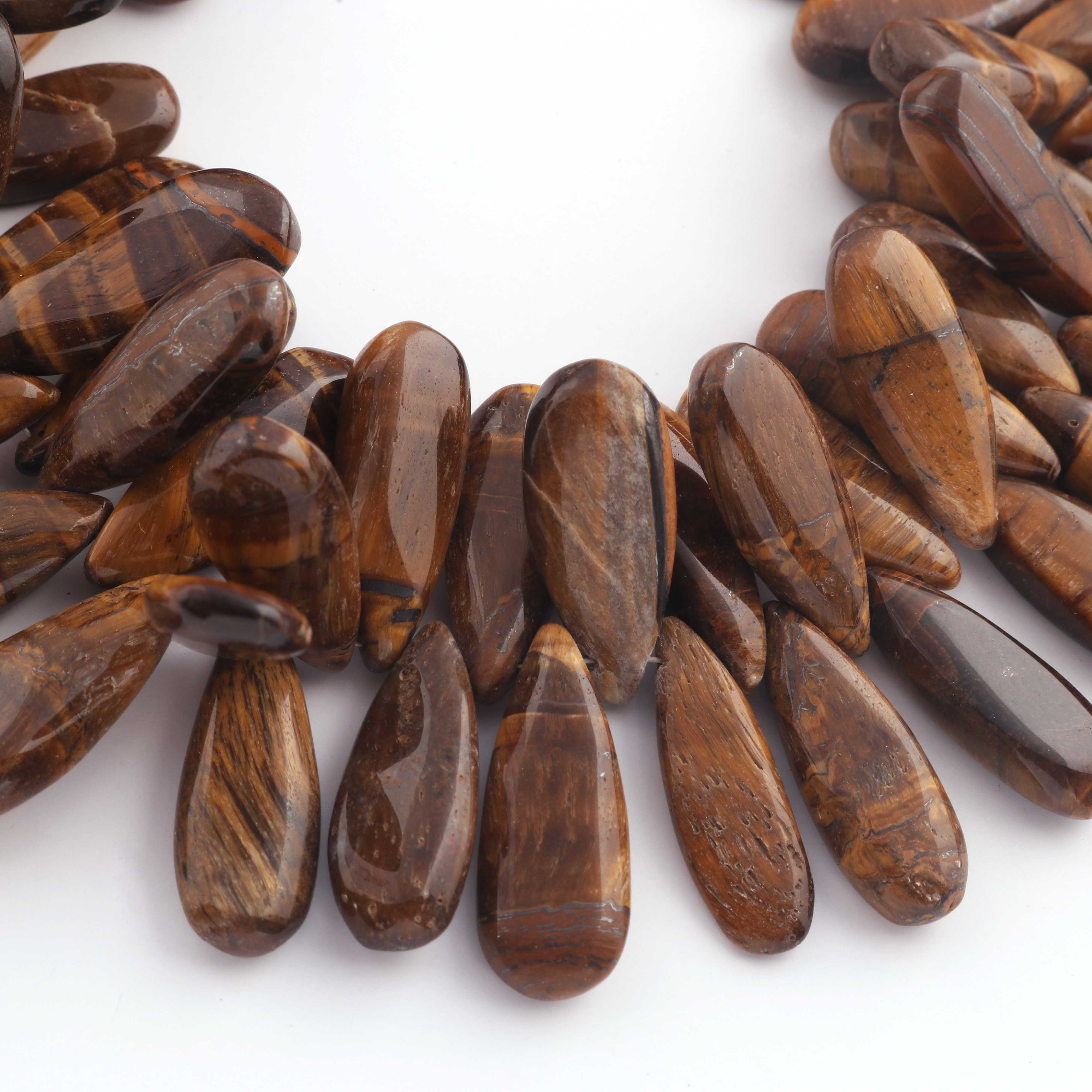 1 Strand Brown Tiger Eye Smooth Briolettes - Long Pear Shape Beads 20mmx10mm-38mmx9mm -9  Inches BR2023