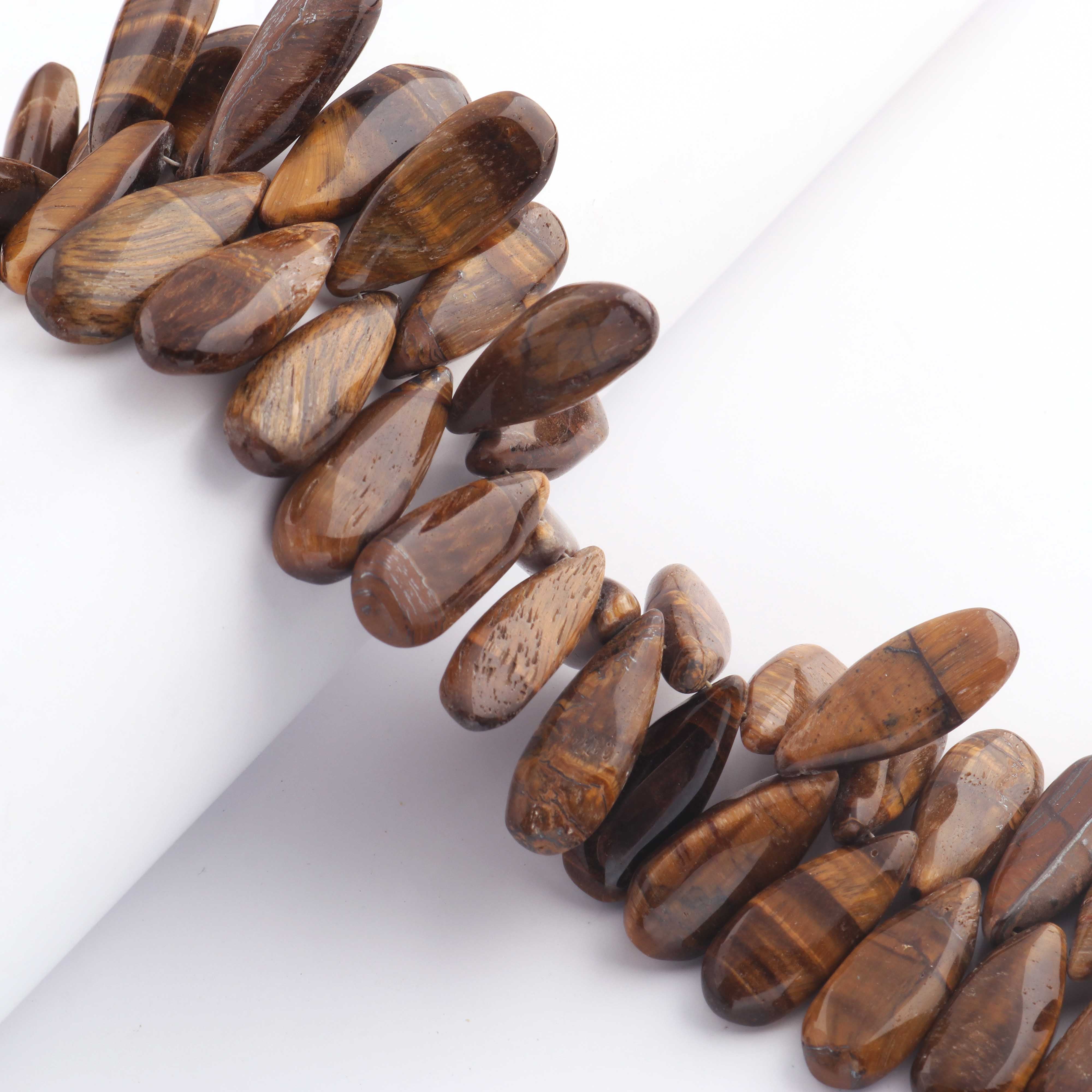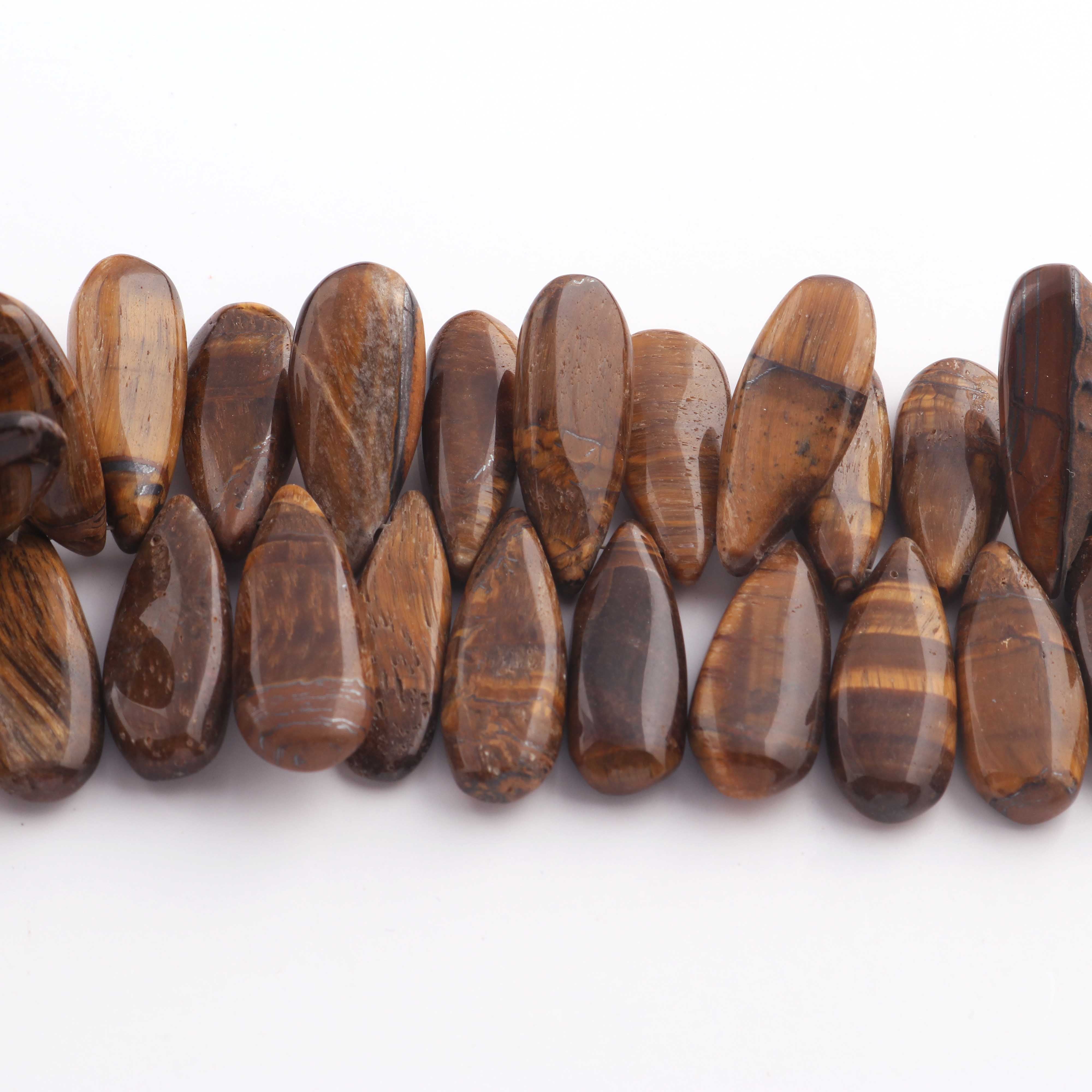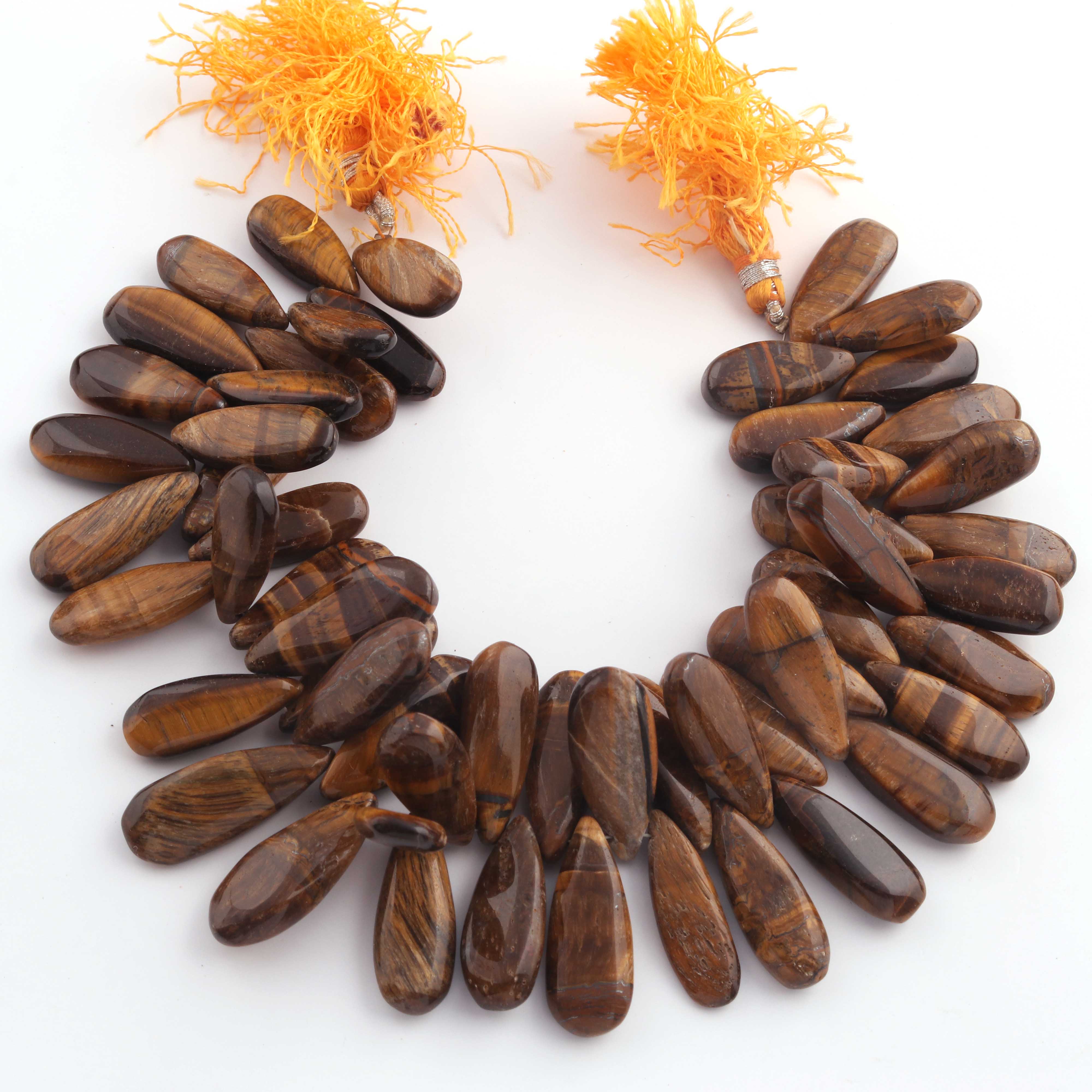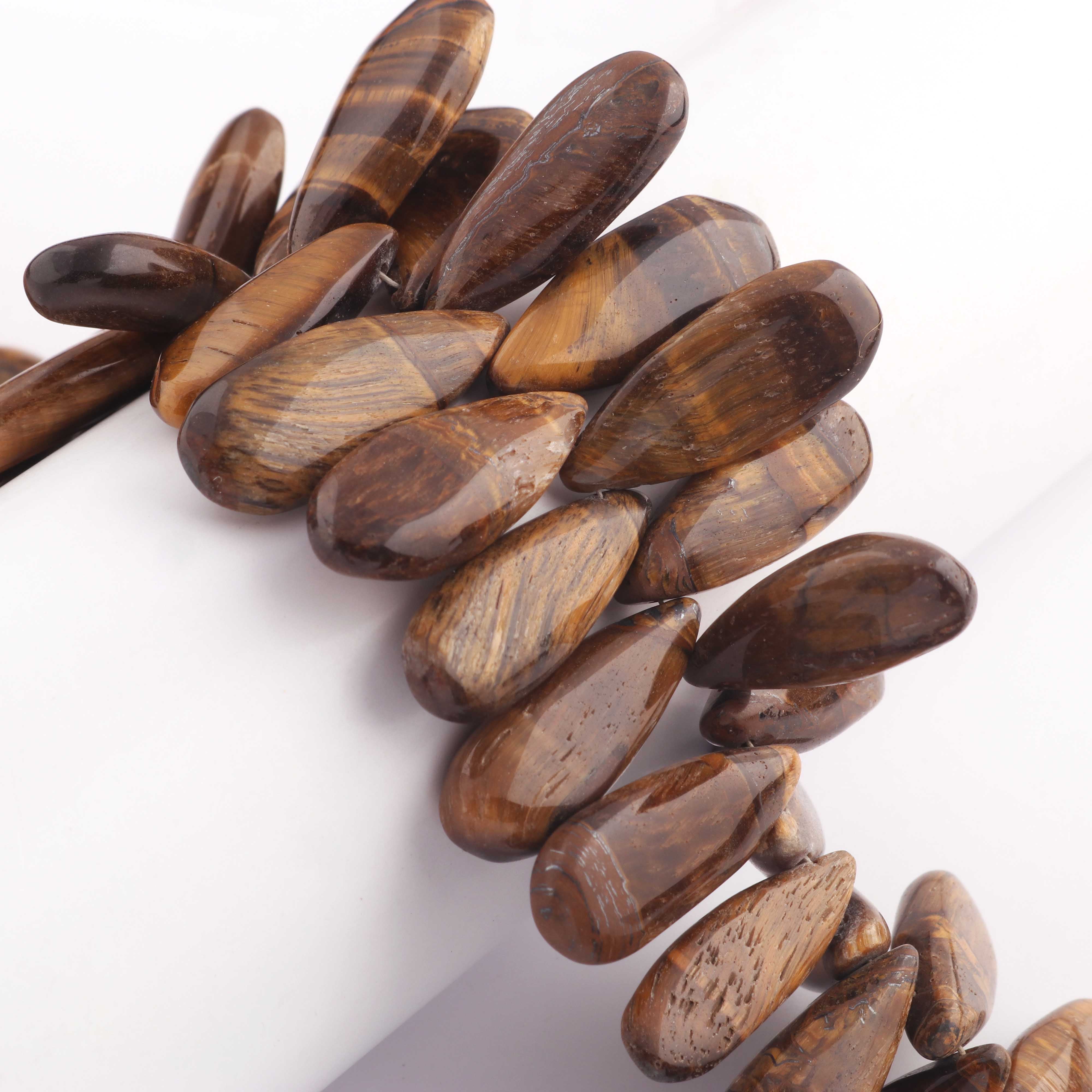 1 Strand Brown Tiger Eye Smooth Briolettes - Long Pear Shape Beads 20mmx10mm-38mmx9mm -9  Inches BR2023