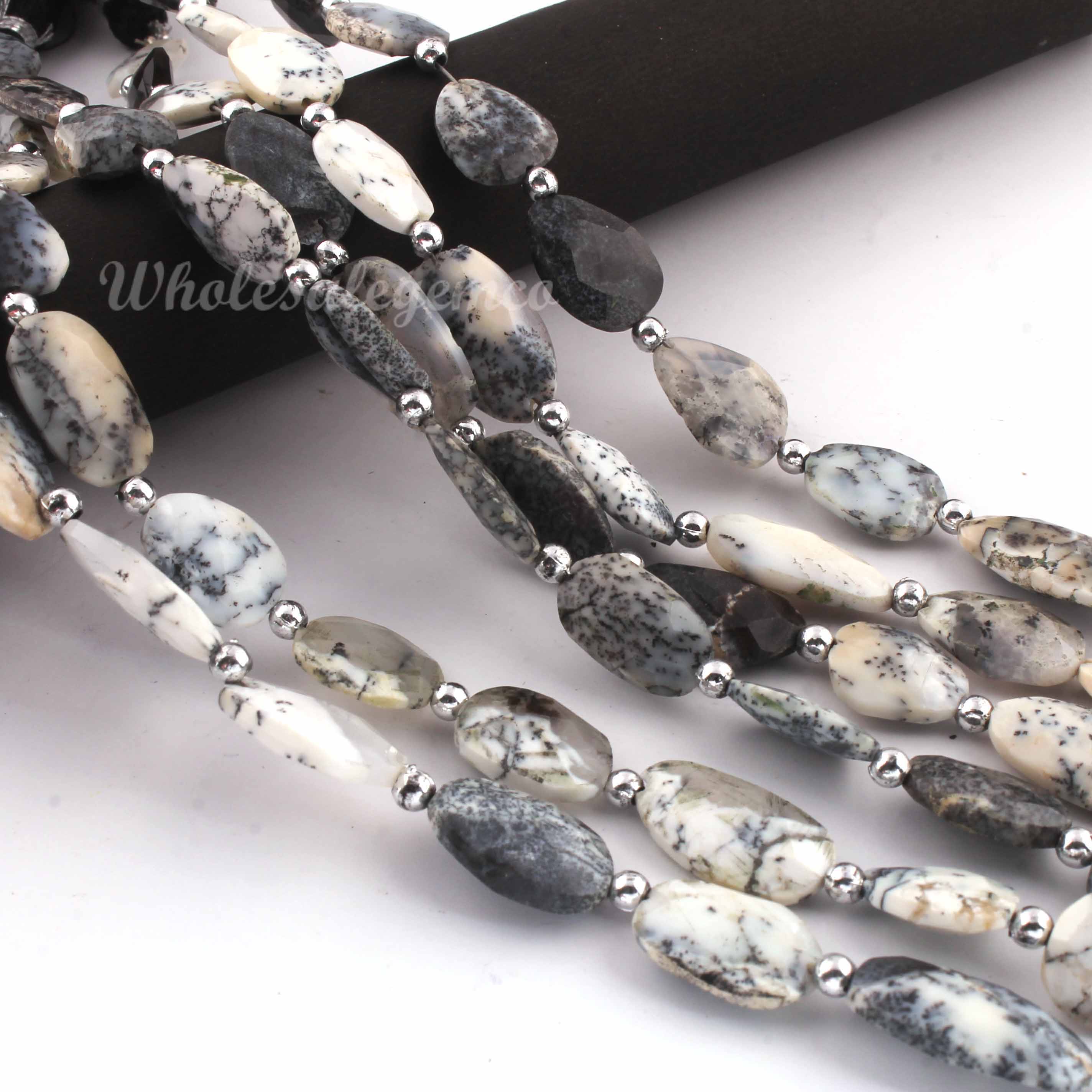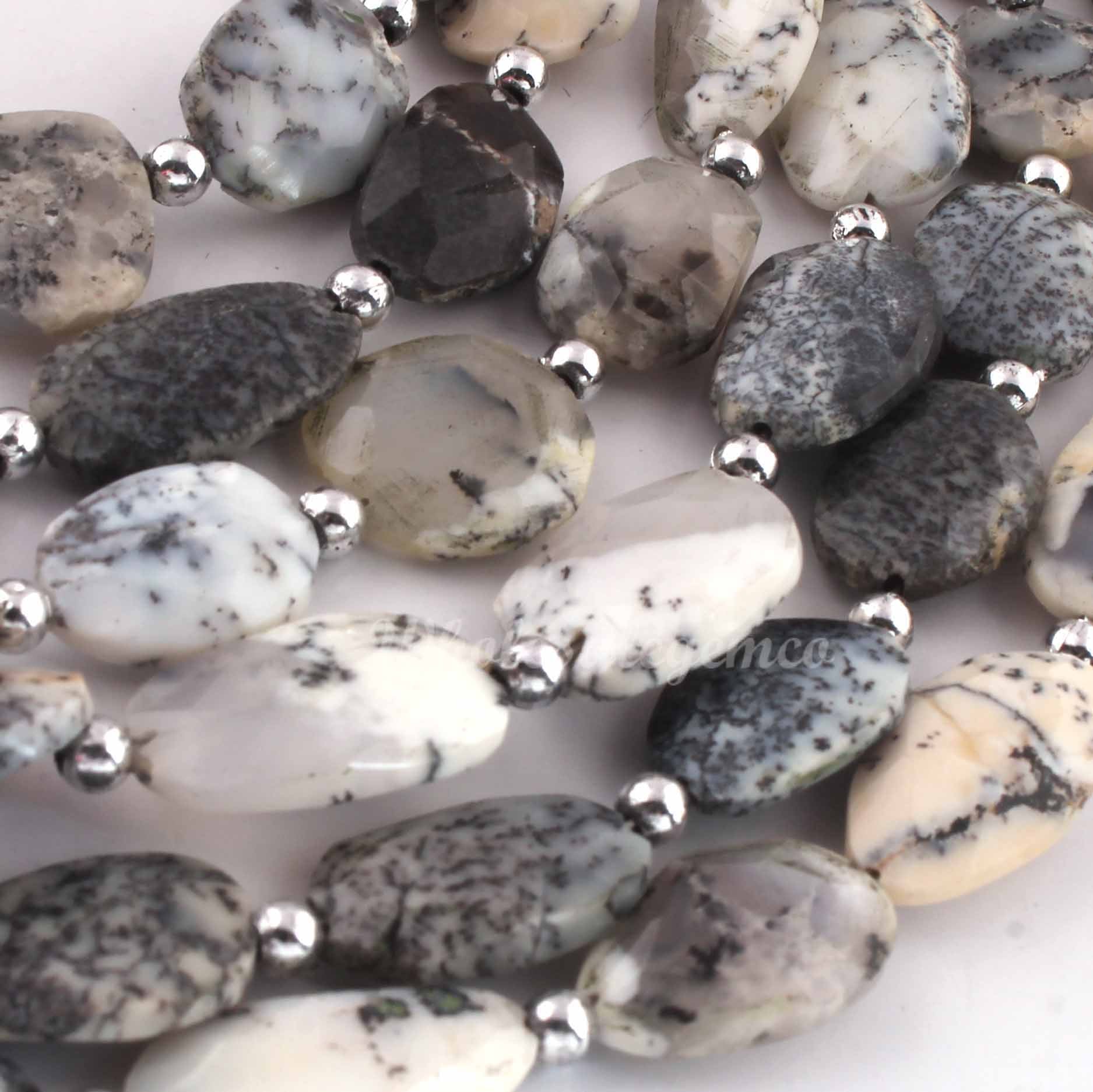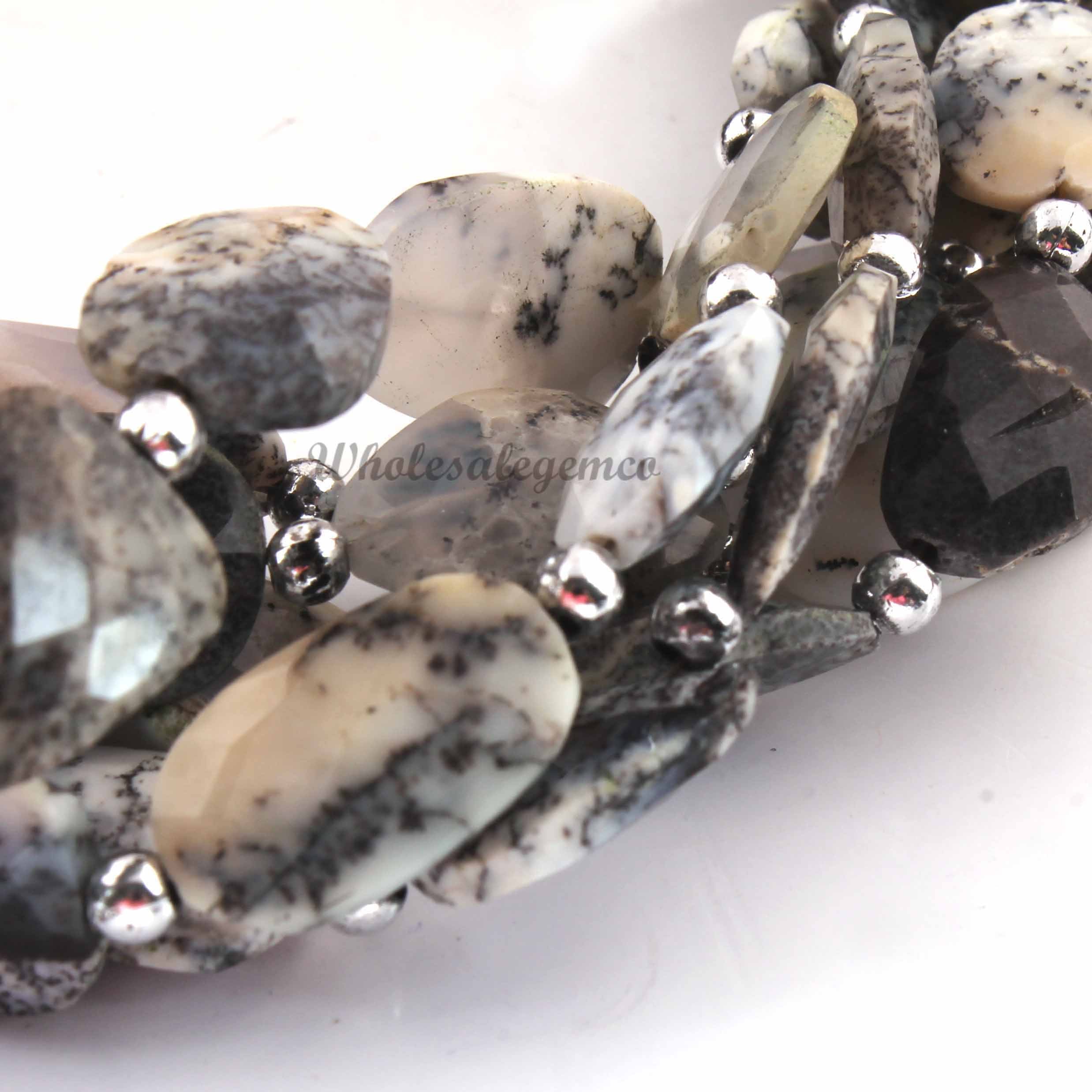 1 Strand Dendrite Opal Faceted Briolettes -Assorted Shape Briolettes -9mmx13mm-10mmx16mm- 9 inch BR0233