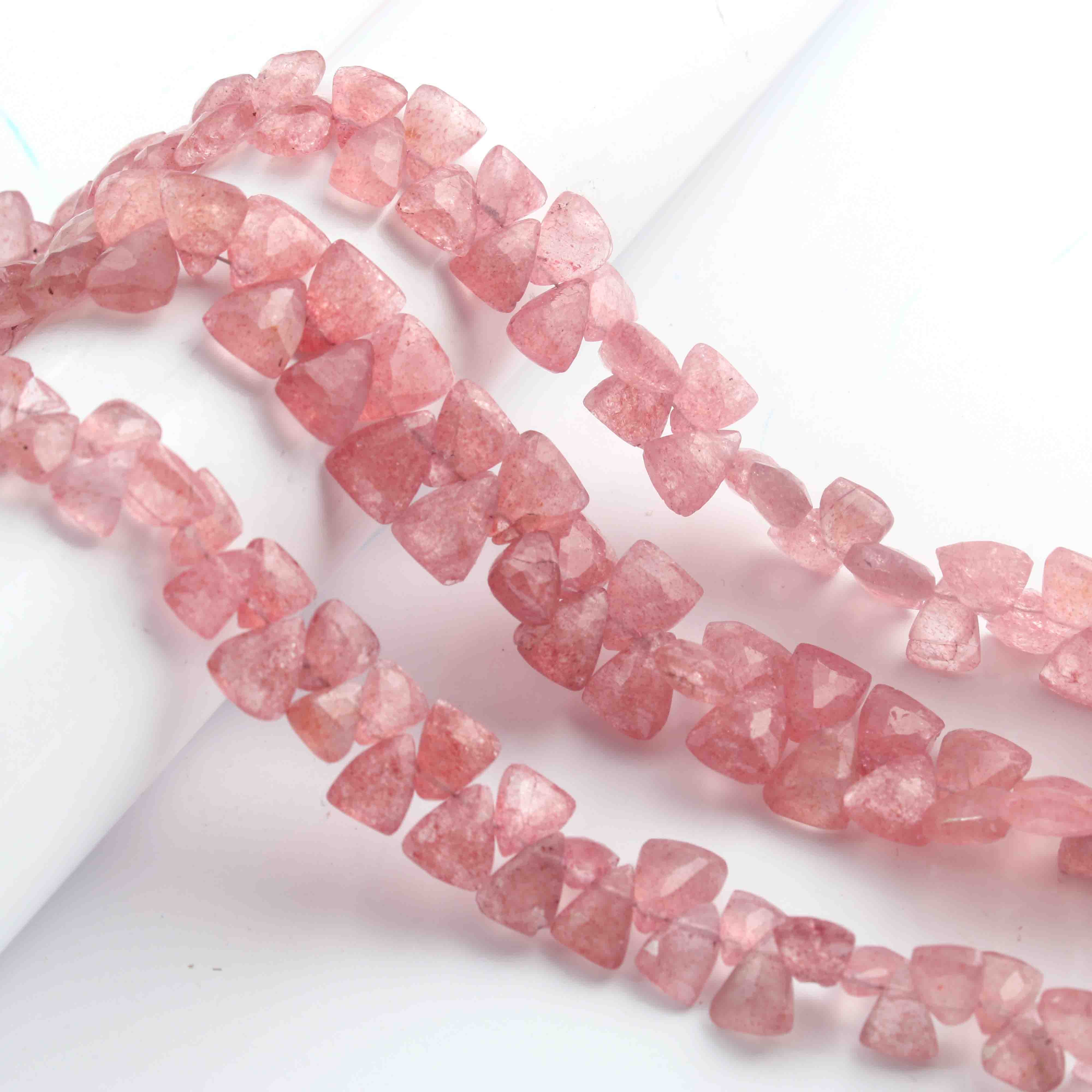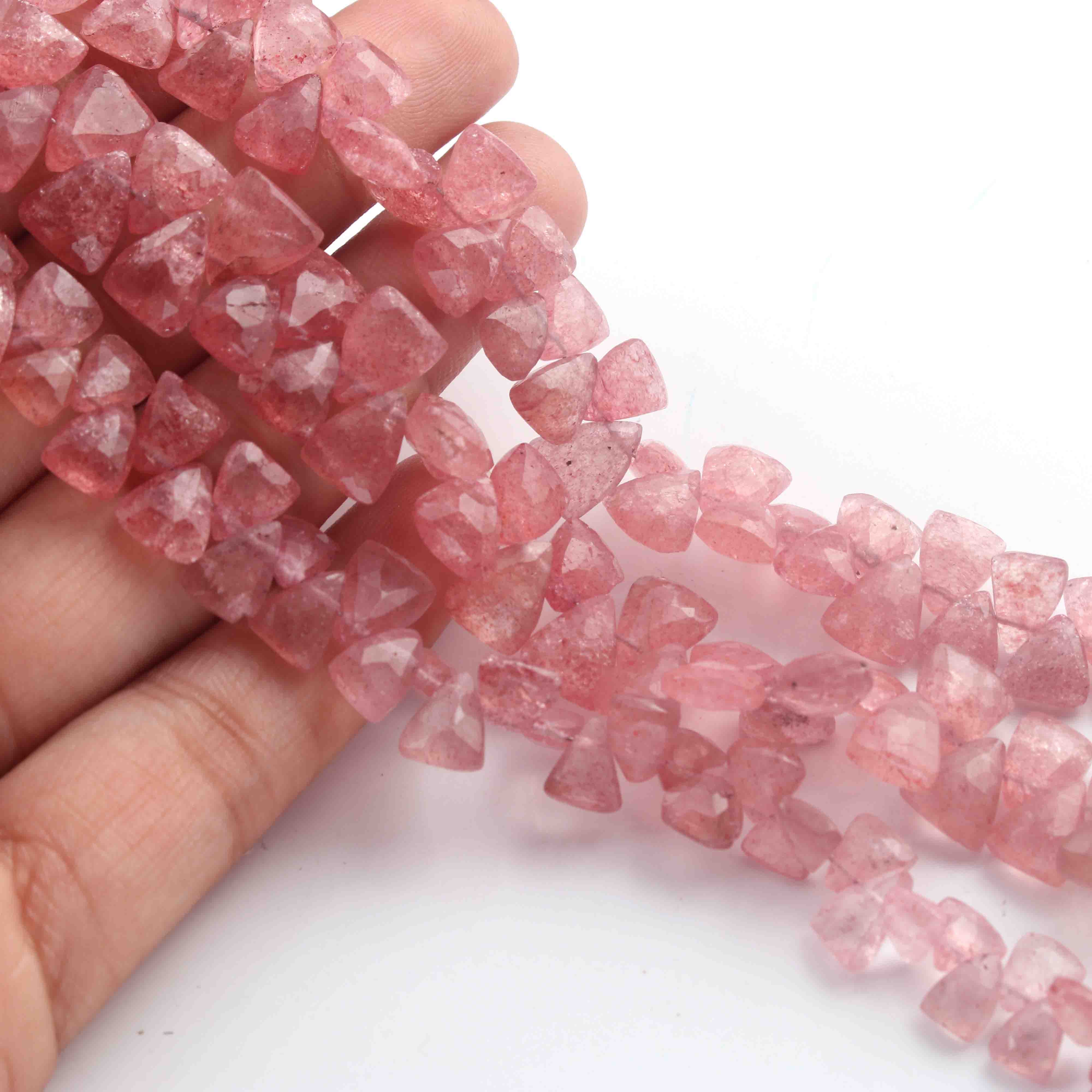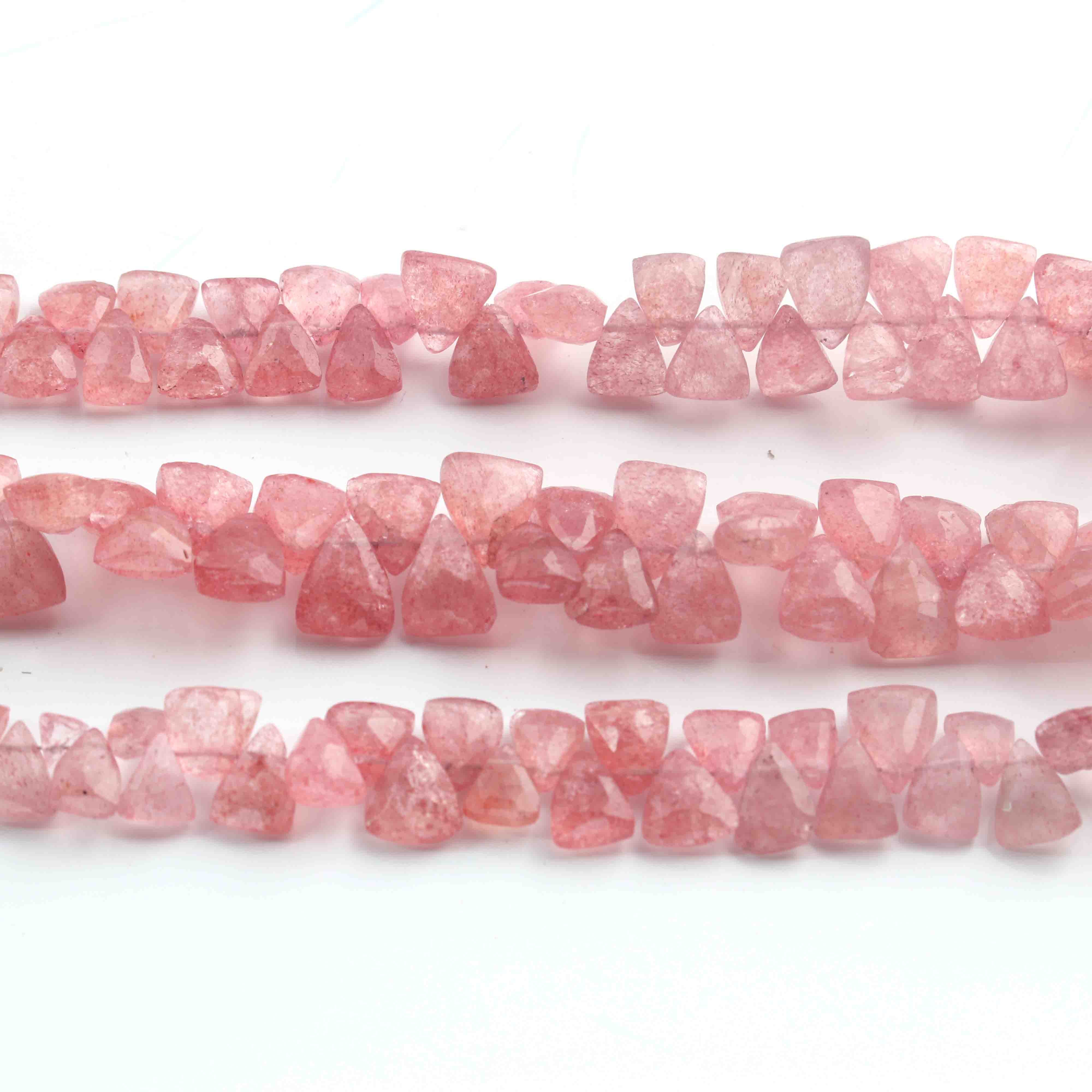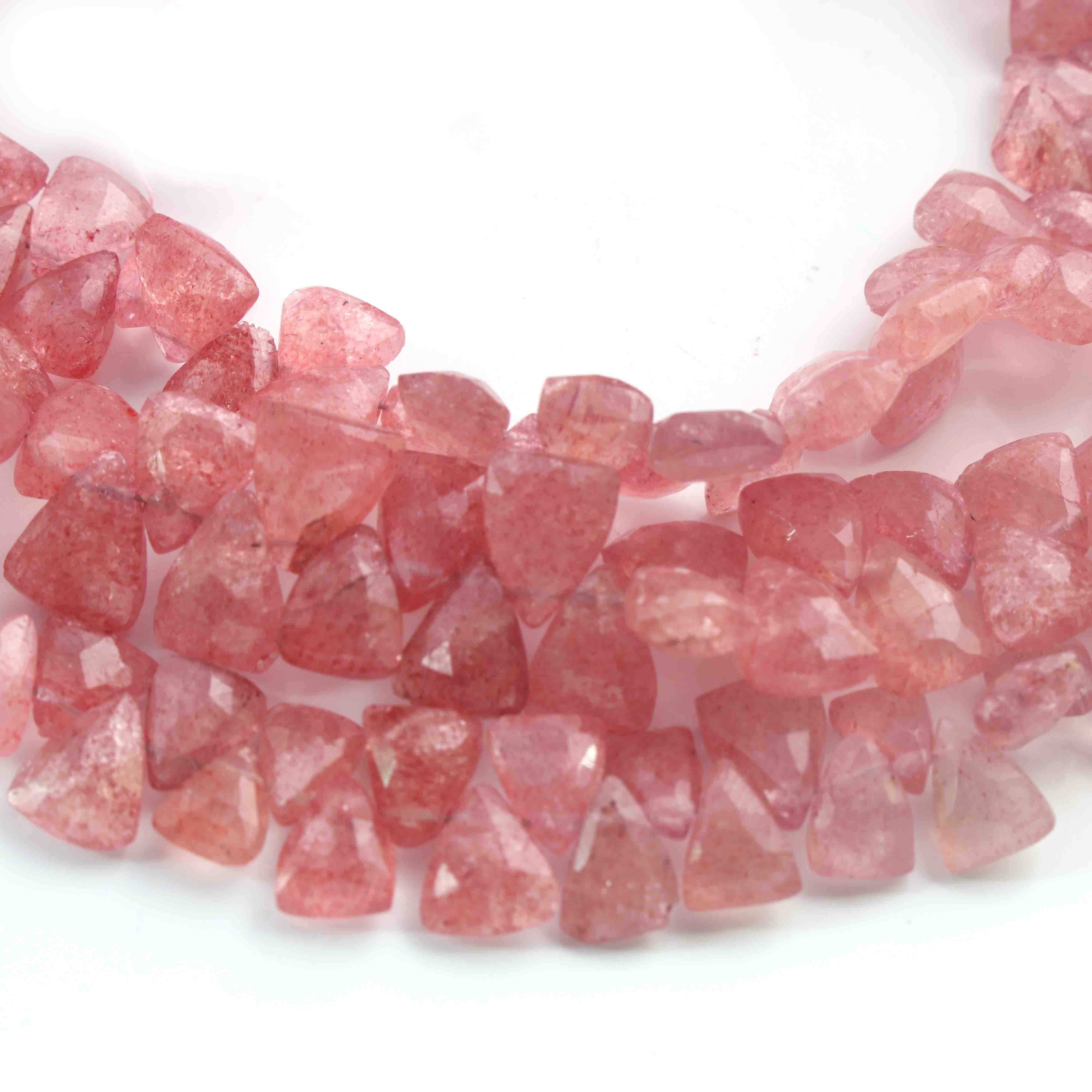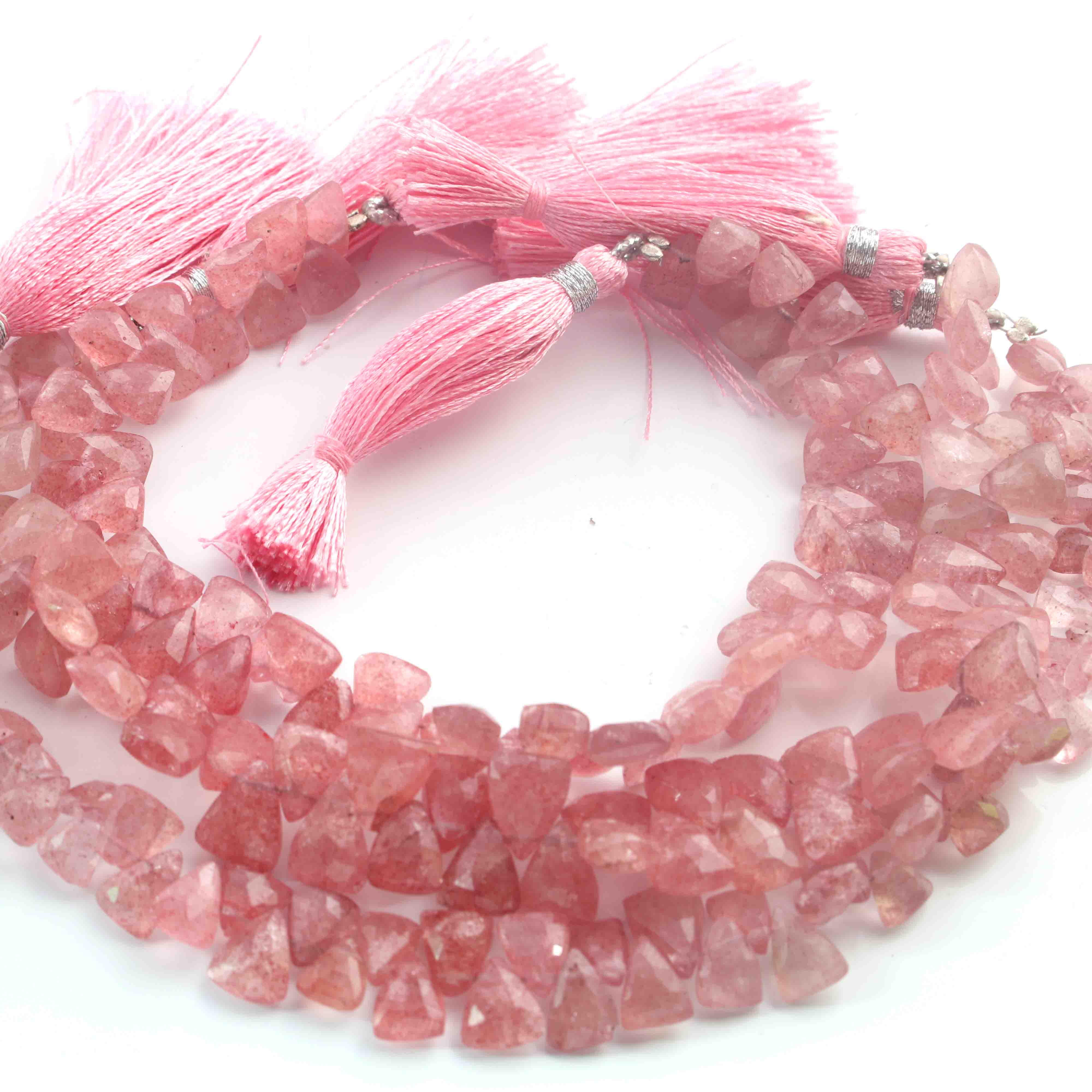 1 Strand Excellent Quality Strawberry Quartz Trillion Shape Faceted Briolettes - jewelry Making Supplies 11mmx8mm - 8 Inches BR01720
