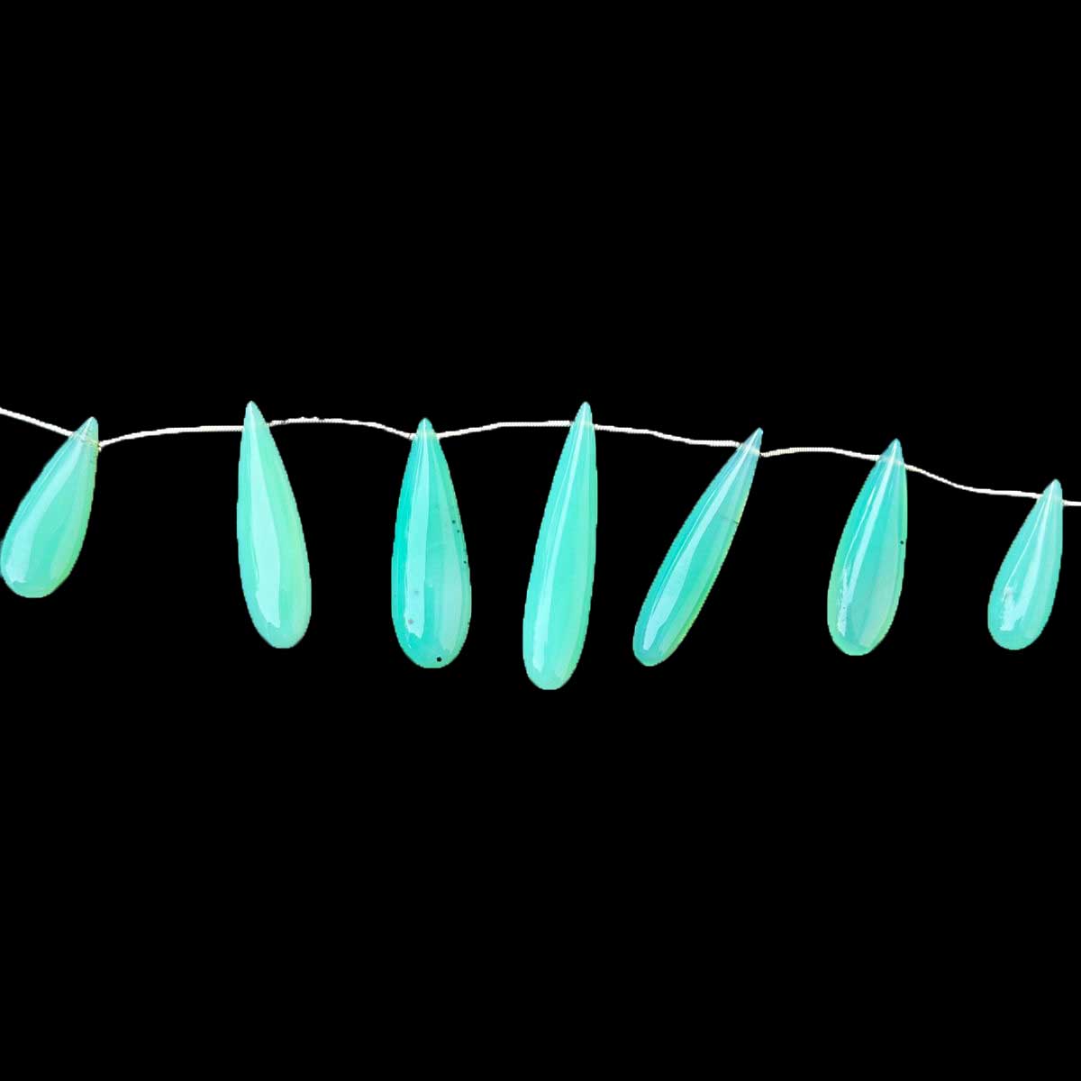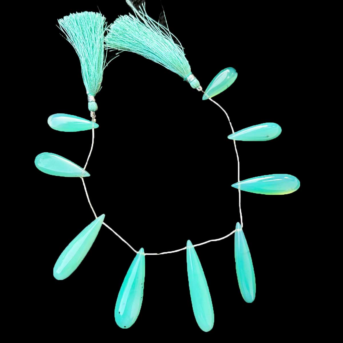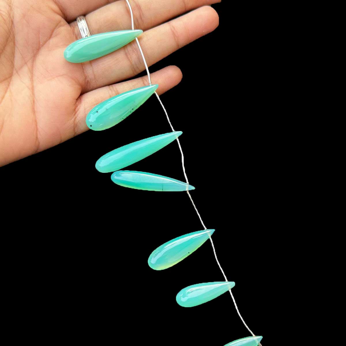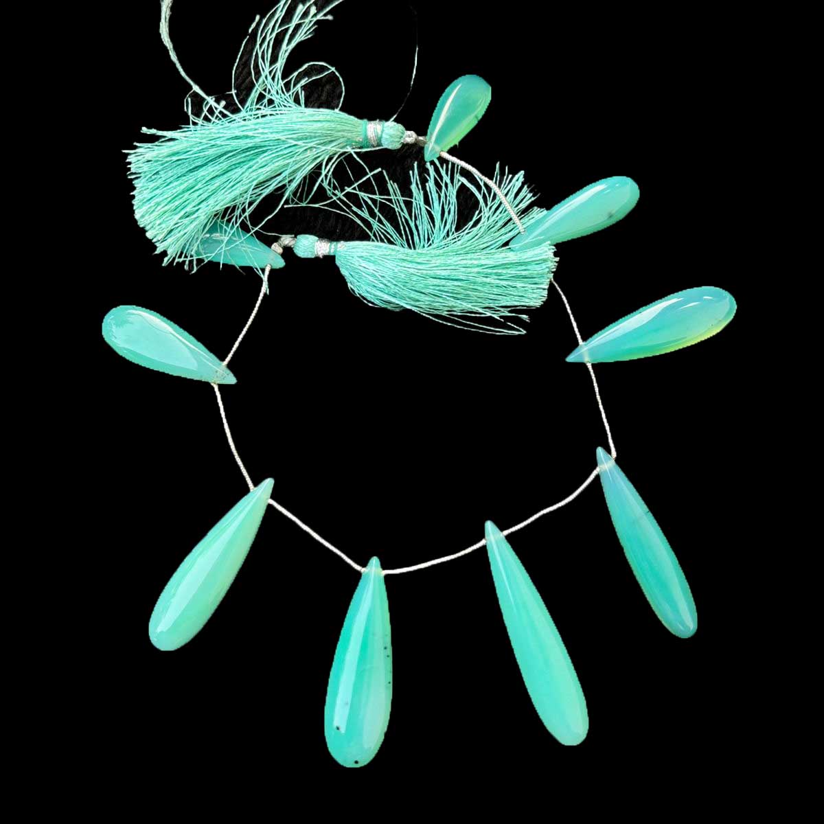 1 Strand Green Chalcedony Smooth Briolettes -Long Tear & Pear Drop Briolettes - 25mmx10mm-40mmx11mm -8 Inches BR1058