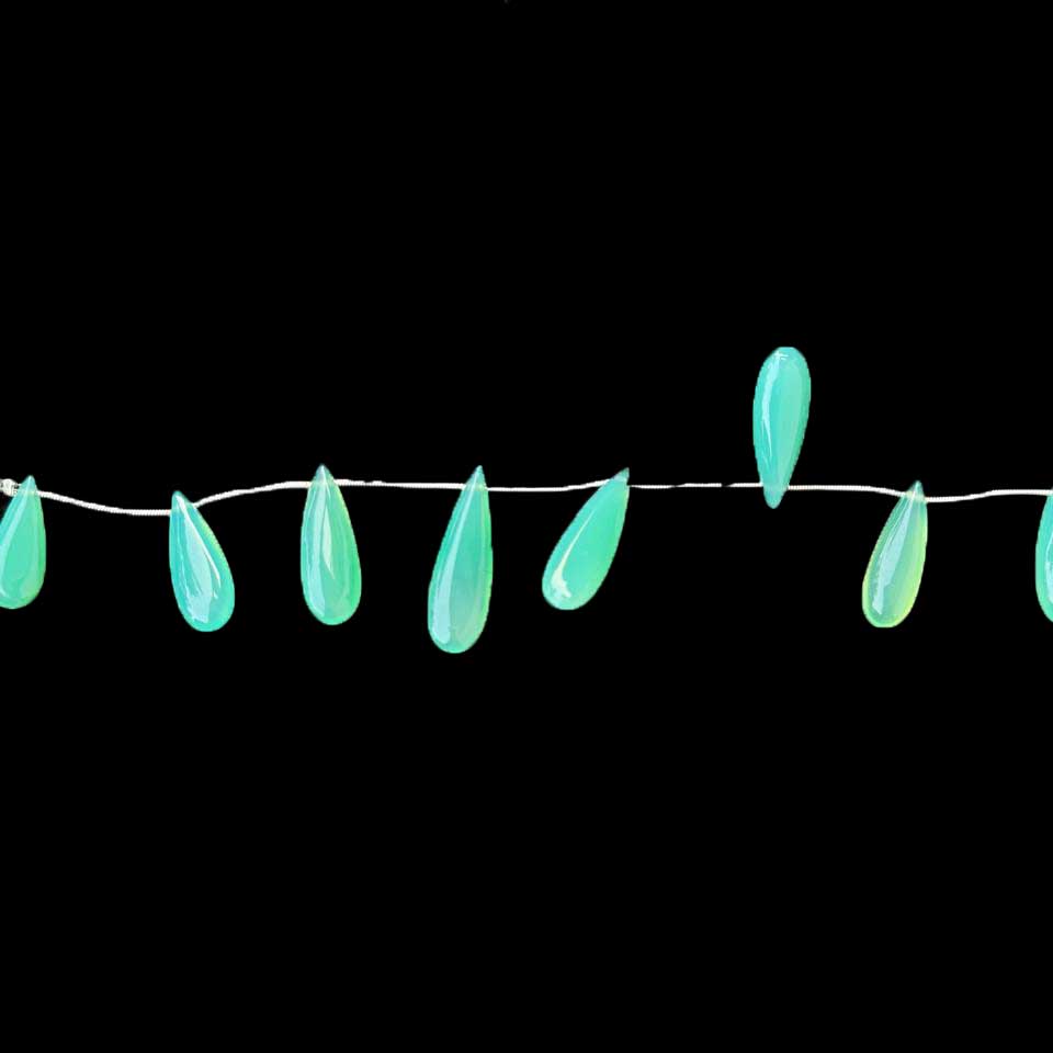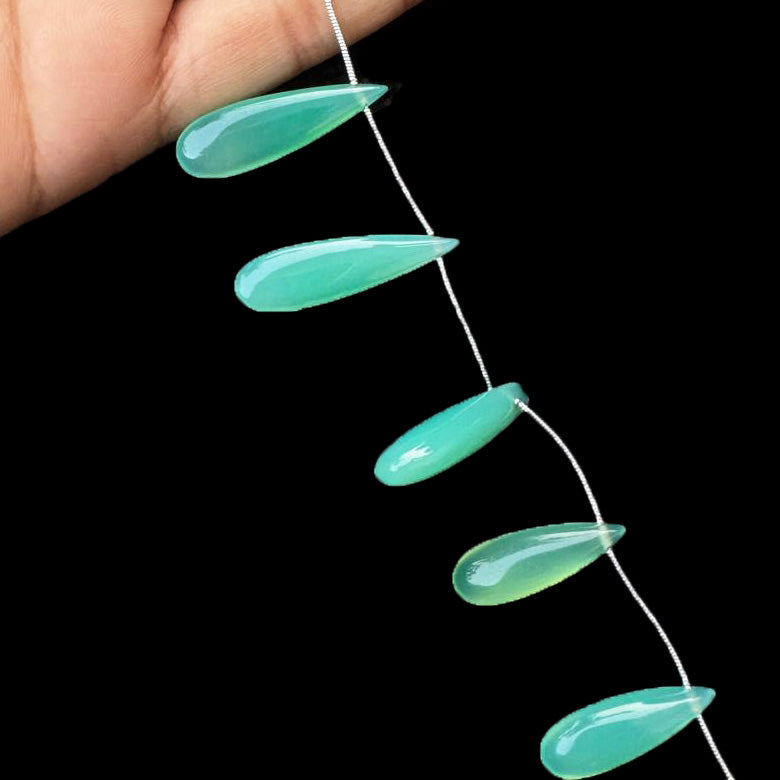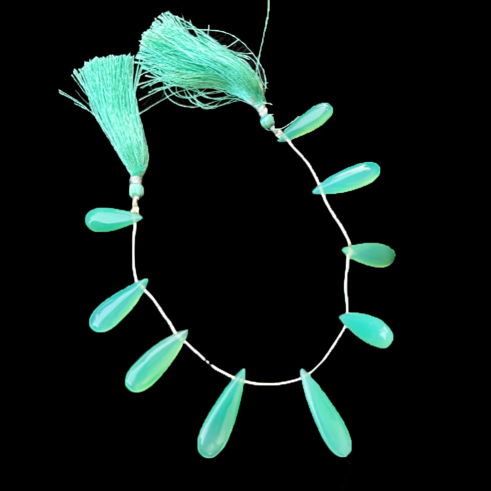1 Strand Green Chalcedony Smooth Briolettes -Long Tear & Pear Drop Briolettes - 26mmx9mm-42mmx11mm -8 Inches BR1028