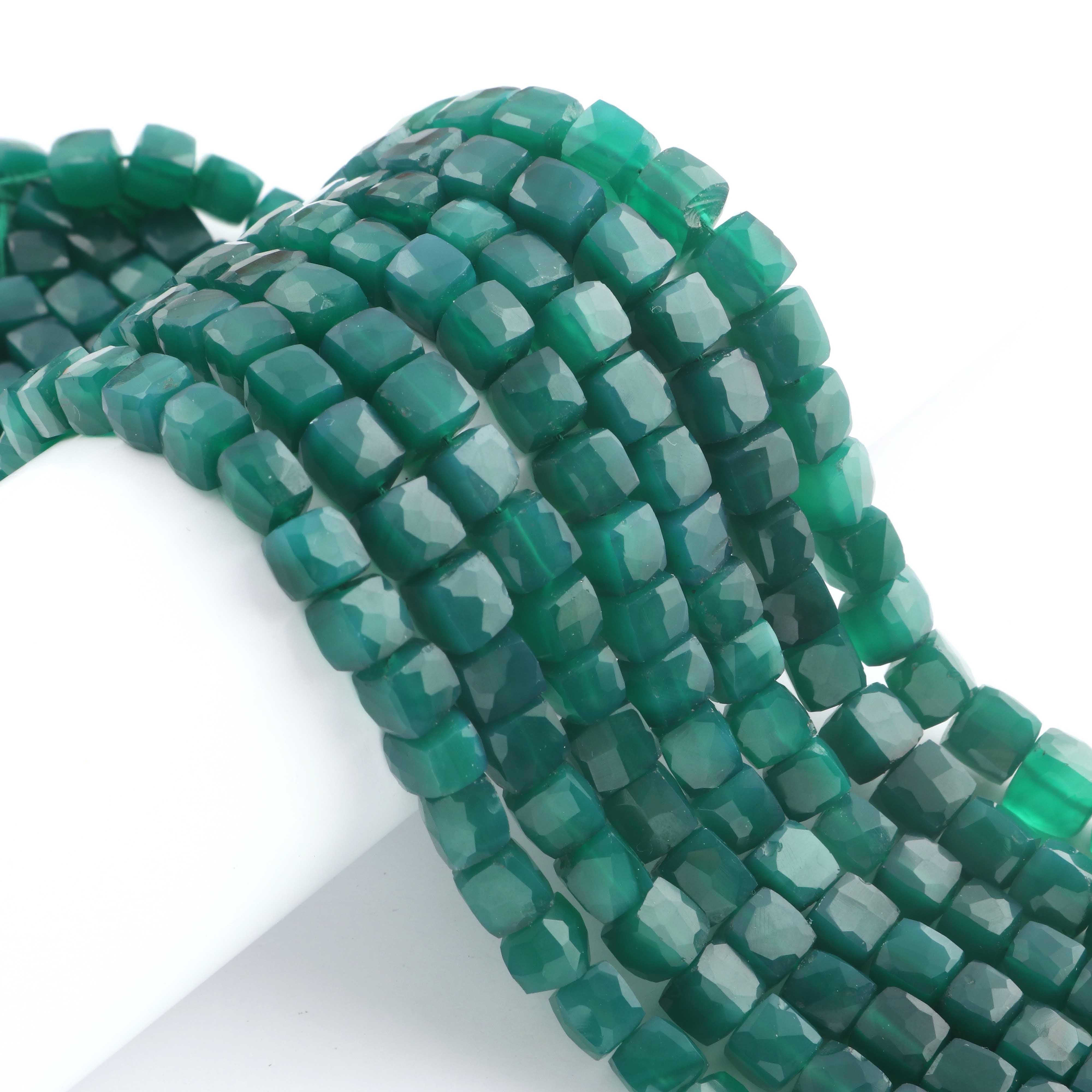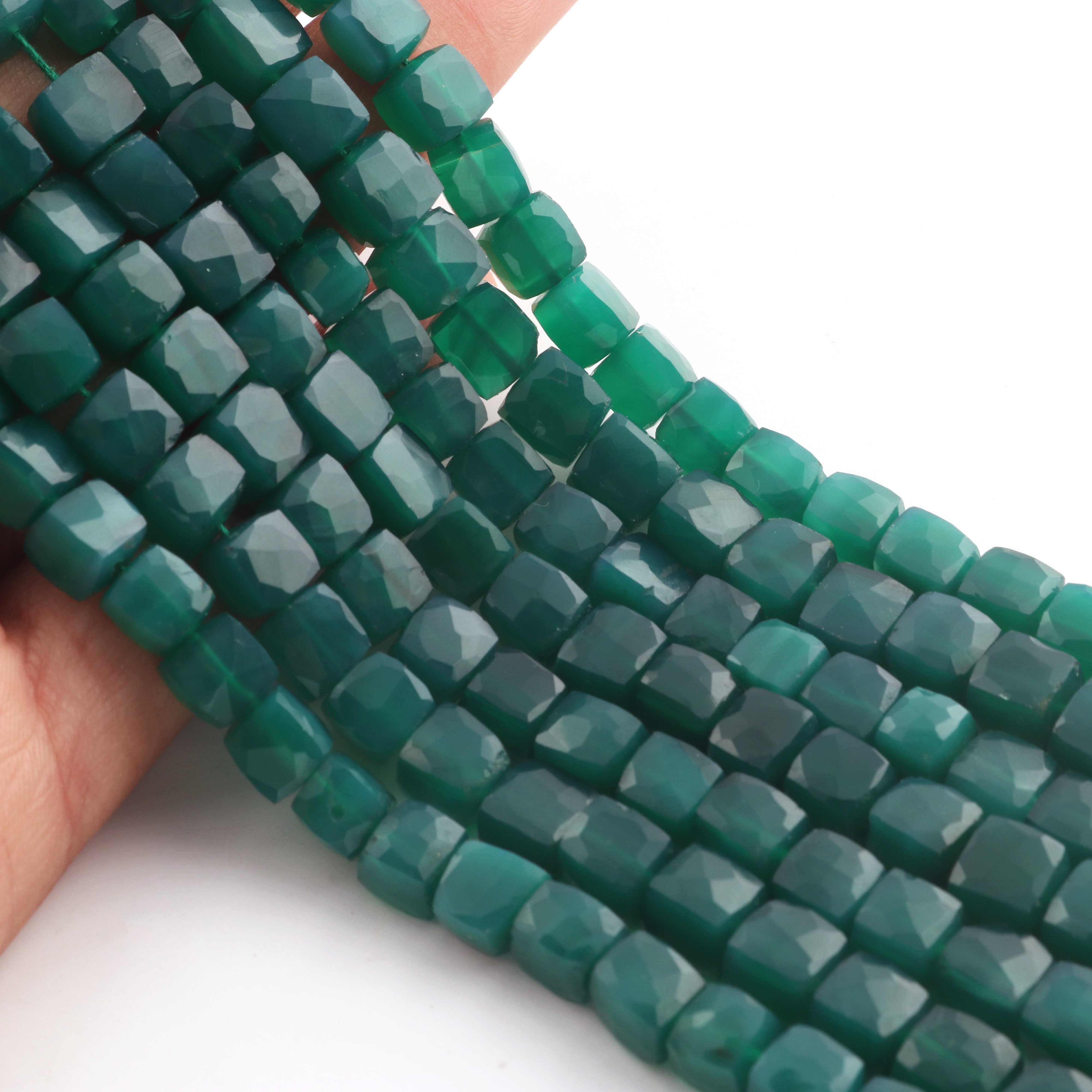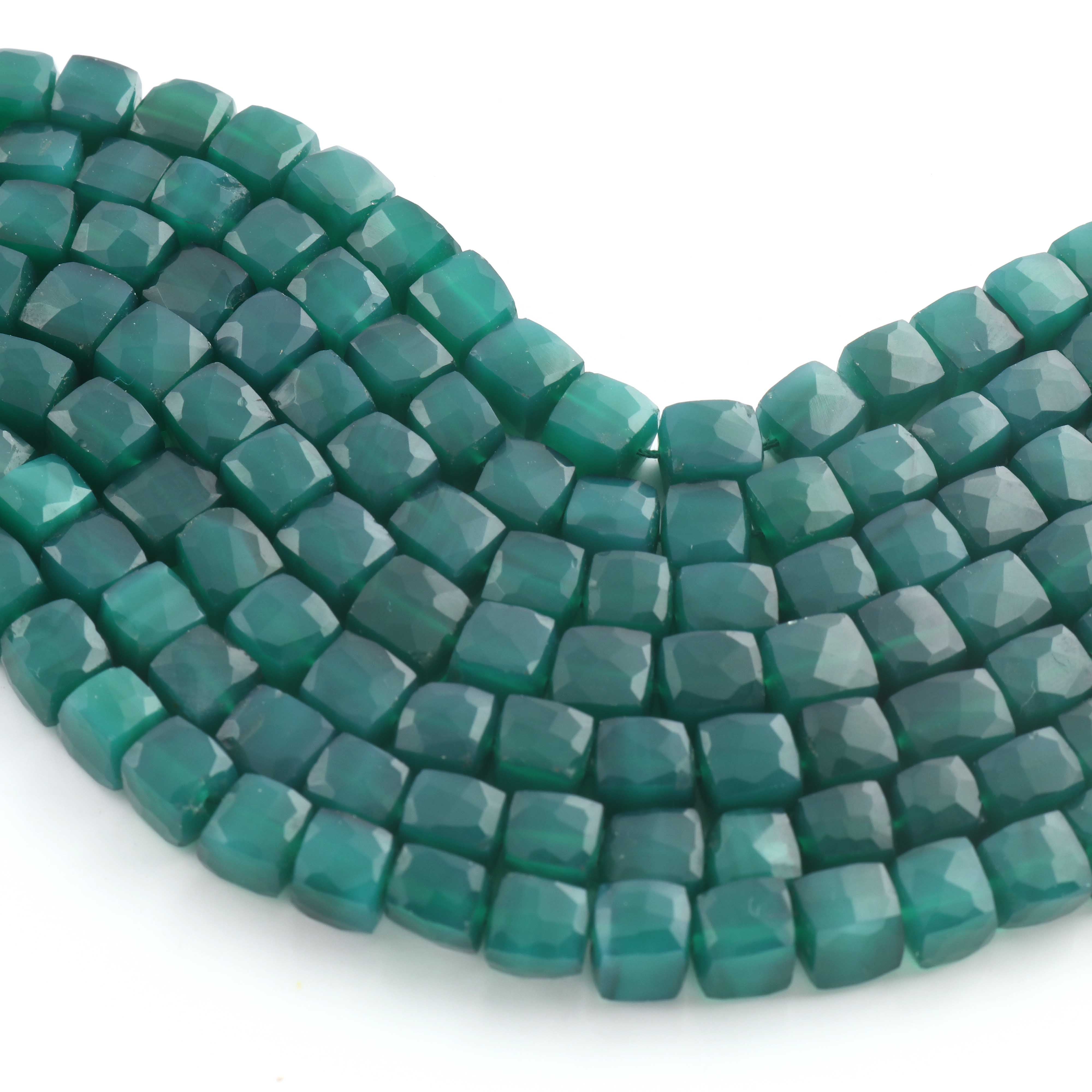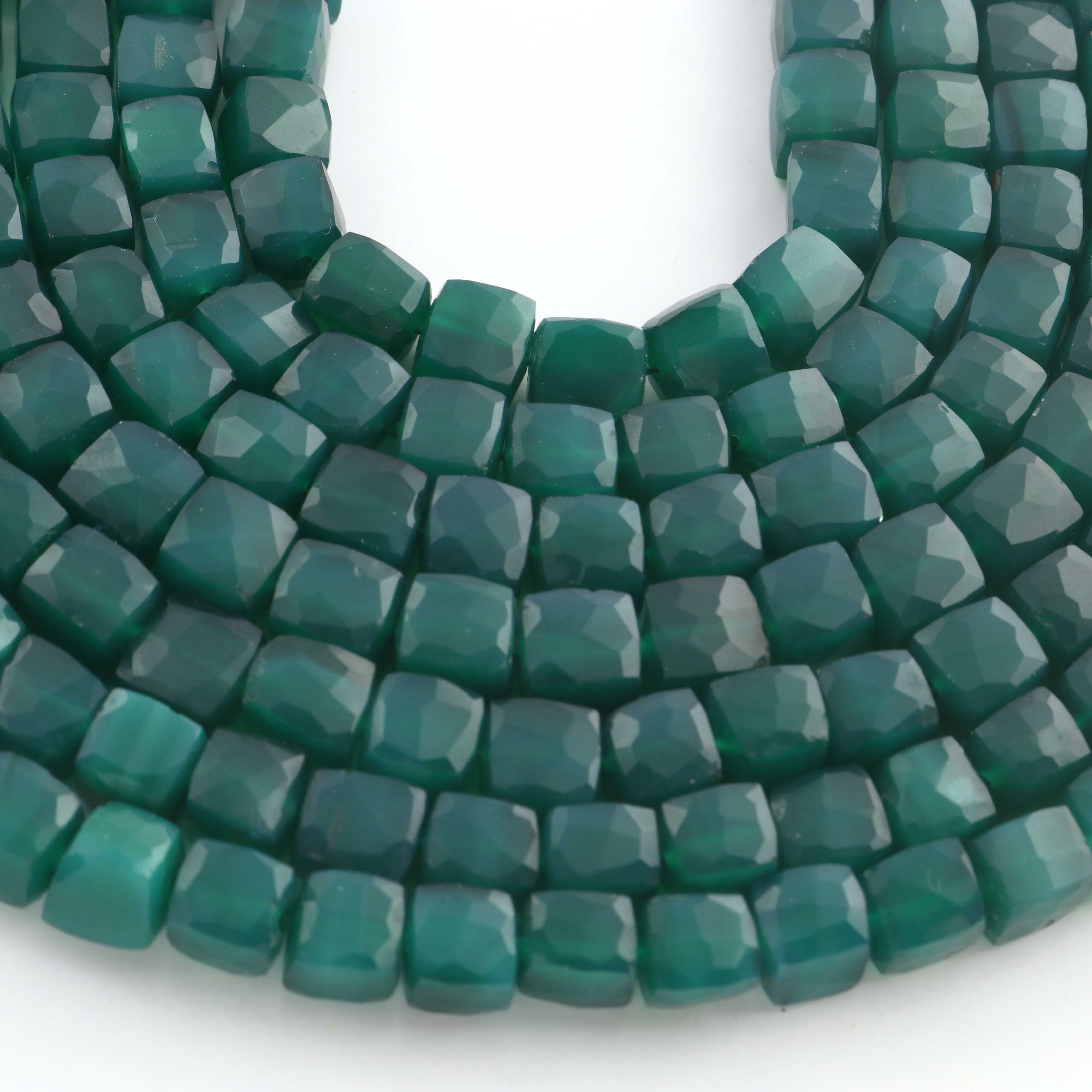 1 Strand Green Onyx Faceted Briolettes - Cube Shape Briolettes -6mmx7mm - 8mmx8mm- 8 Inches BR03421